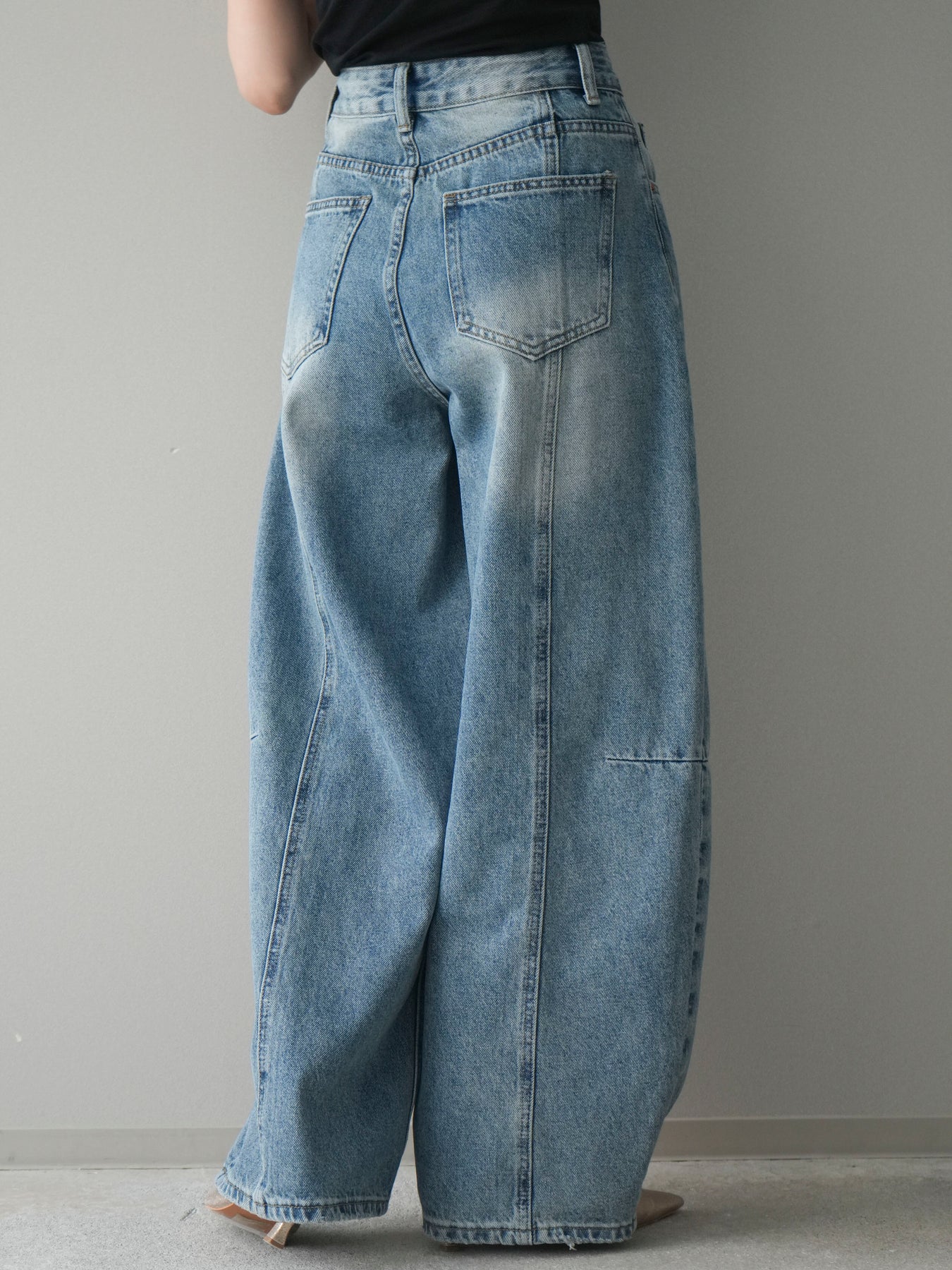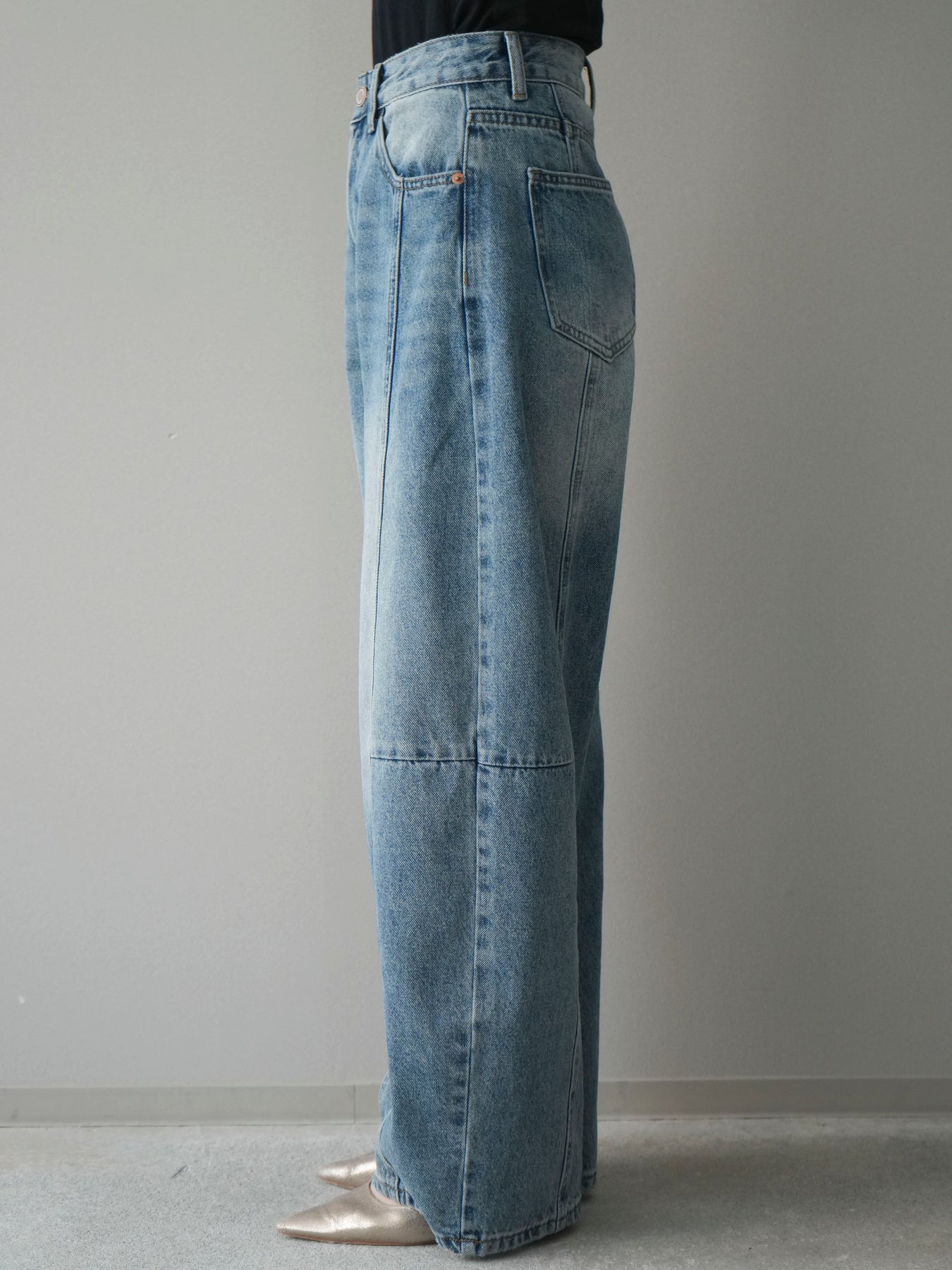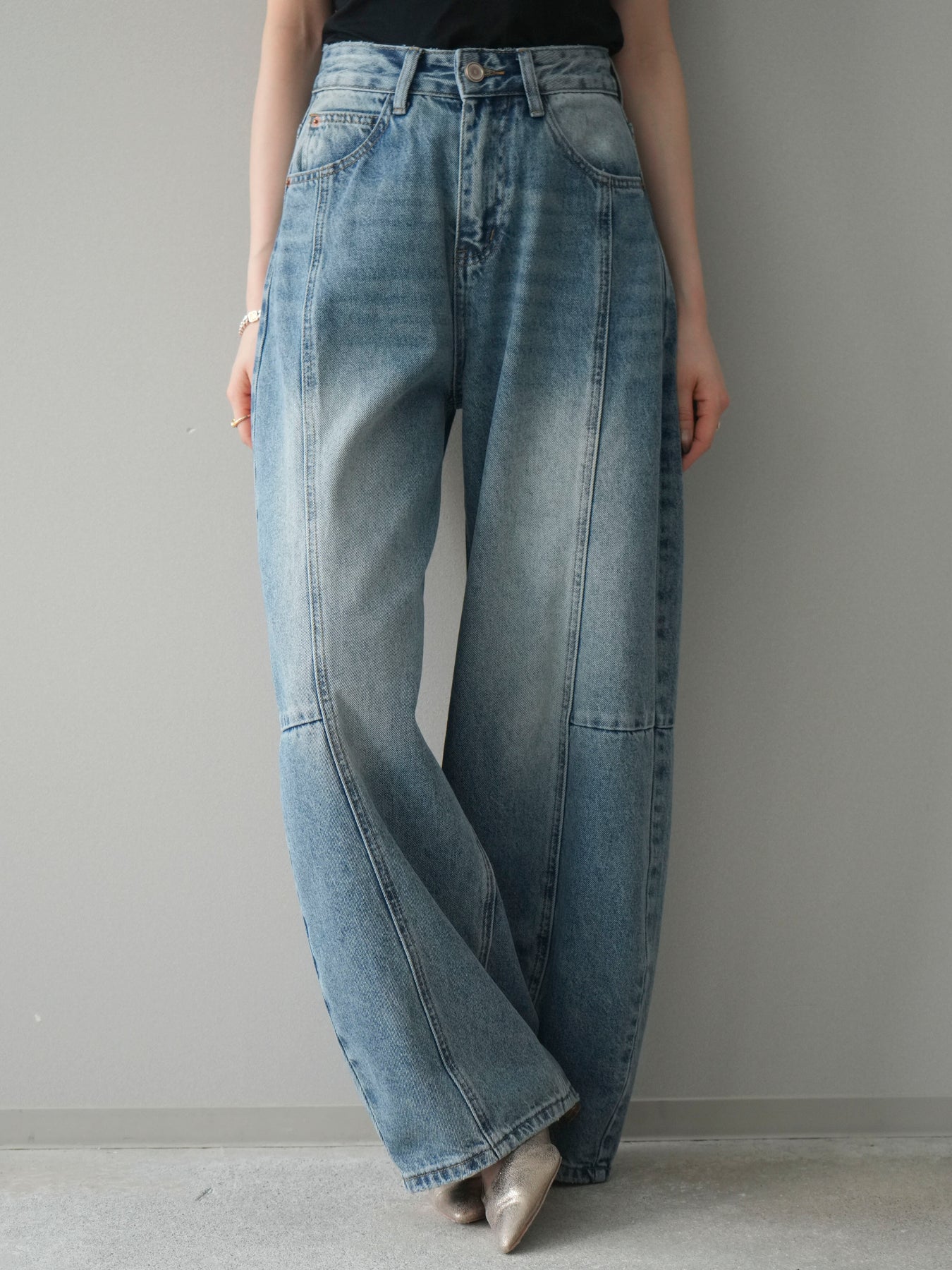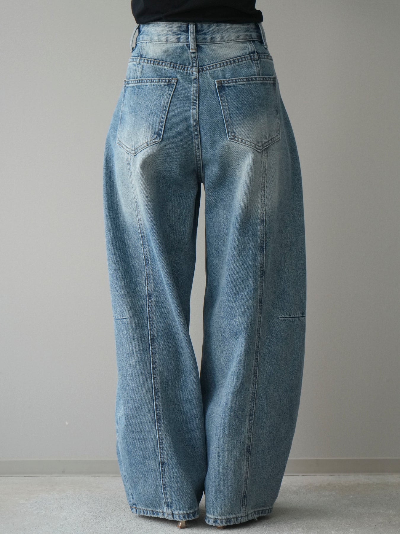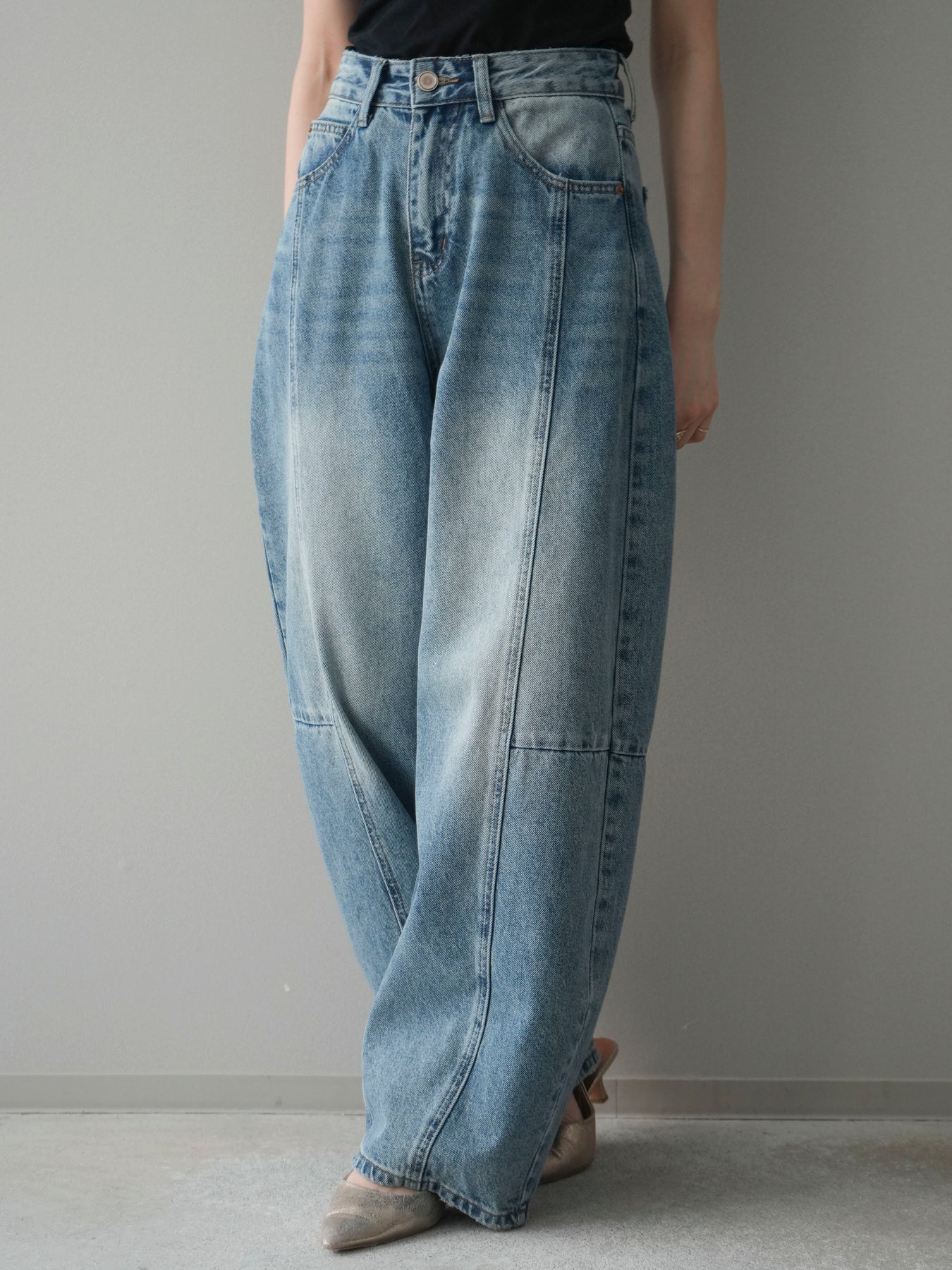 ガーメントウォッシュ加工による、こなれた風合いが魅力のカーブデニムパンツ。立体的な切り替えと丸みのあるシルエットが、脚のラインを拾いにくく、自然な体型カバーを叶えます。程よく存在感のあるデザインながら、落ち着いた印象でトップスを選ばず合わせやすいのもポイント。カジュアルスタイルはもちろん、きれいめアイテムと合わせたミックスコーデにも馴染み、デイリーに活躍する一本です。