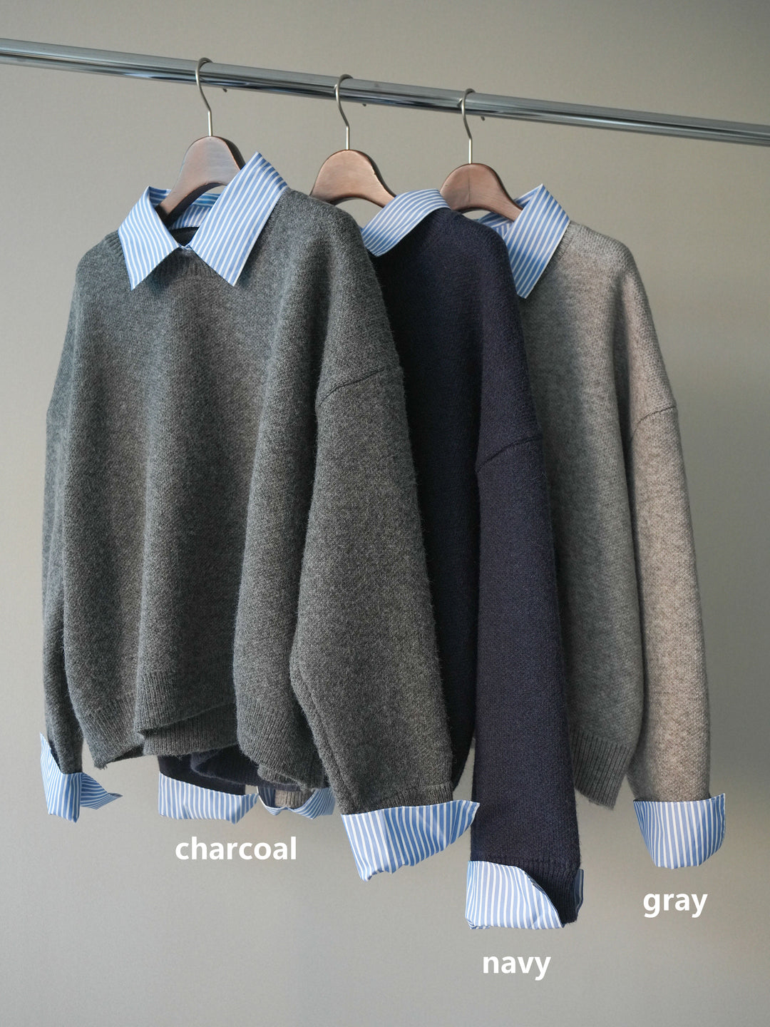 [SET]2WAYストライプ襟ニットプルオーバー+2WAYストライプ襟ニットプルオーバー(2set)
