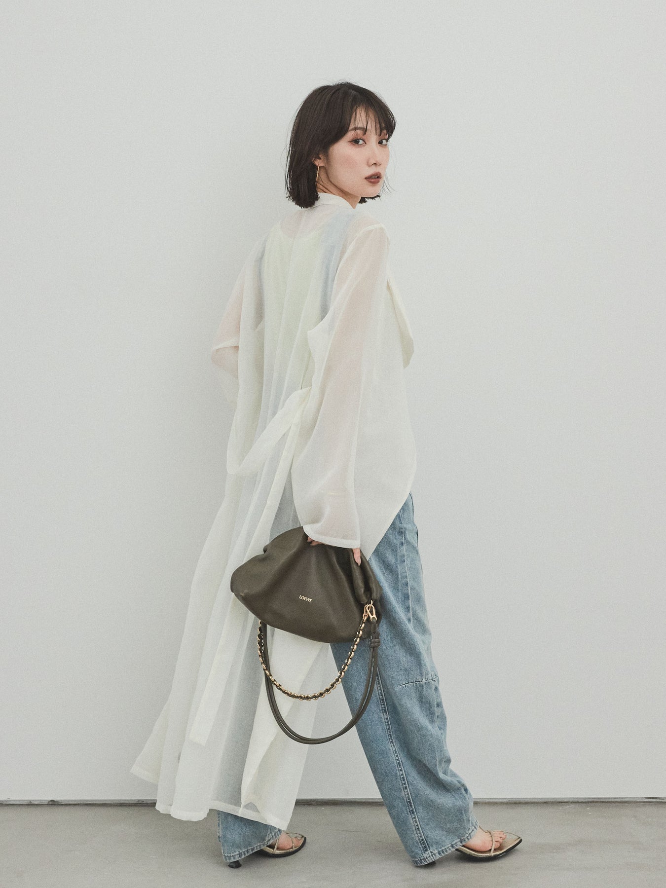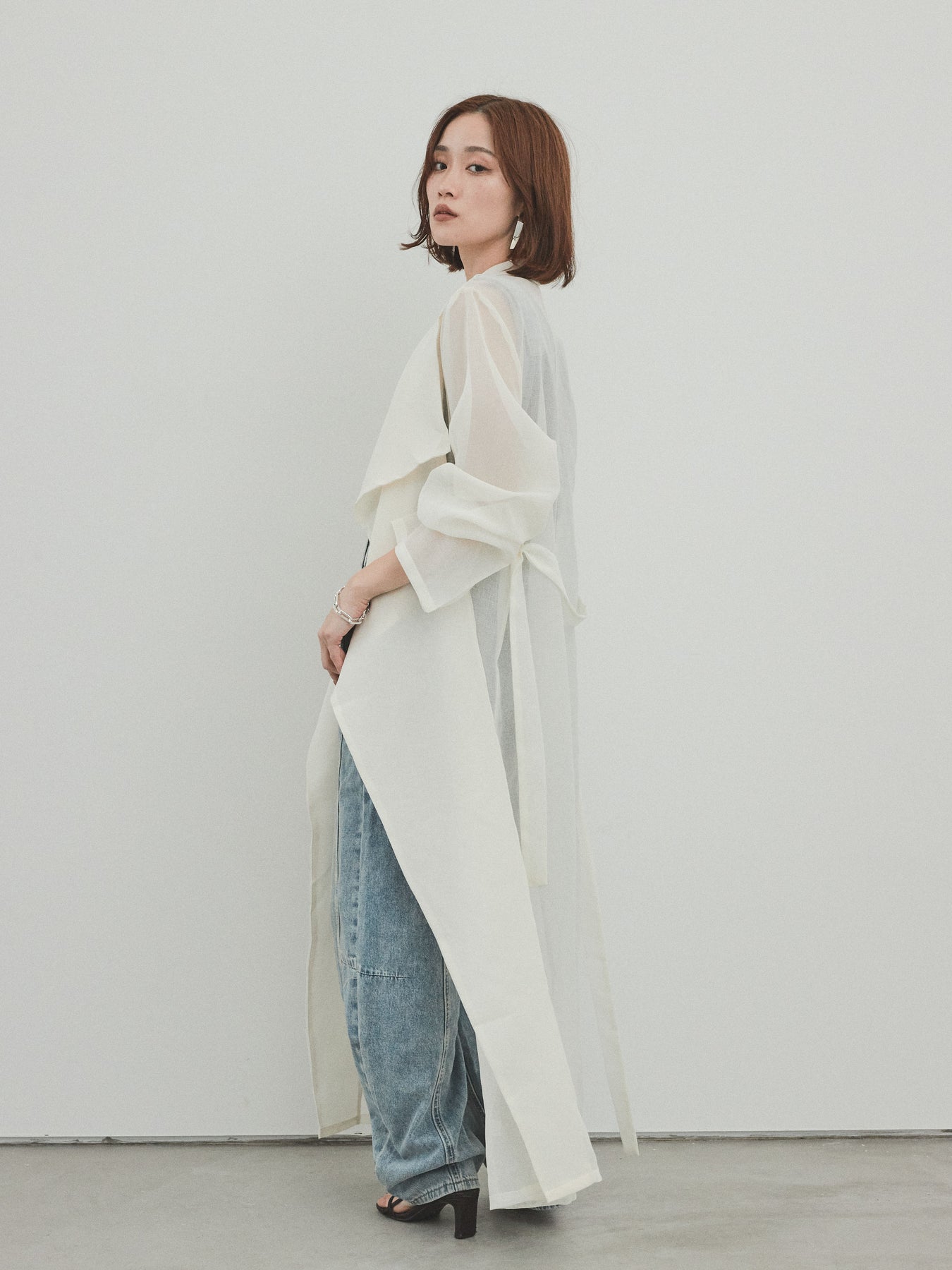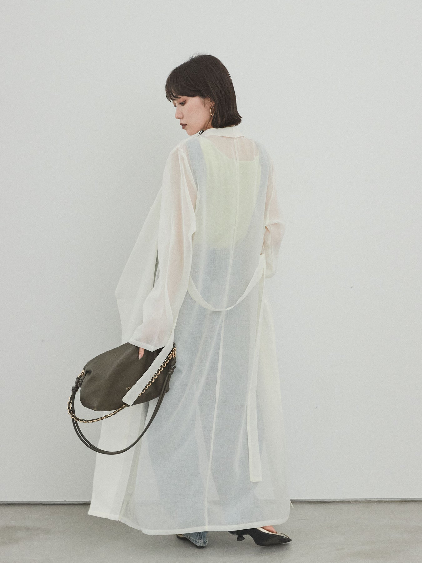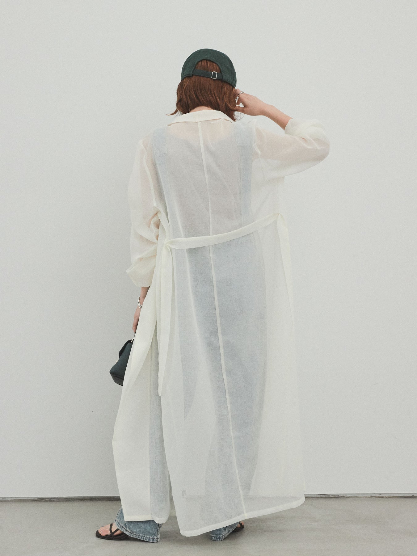 輕盈透視的長版外套。適度寬鬆的輪廓和腰帶,營造出輕鬆俐落的造型。只要輕輕一披,就能為你的造型增添一抹魅力與精緻。它是一款百搭單品,可搭配褲裝或洋裝等不同單品,輕鬆變換風格。享受清爽成熟的疊穿風格,完美契合春夏季節。 ※除下裝、吊帶背心(內衣)以外的商品均不含內衣。