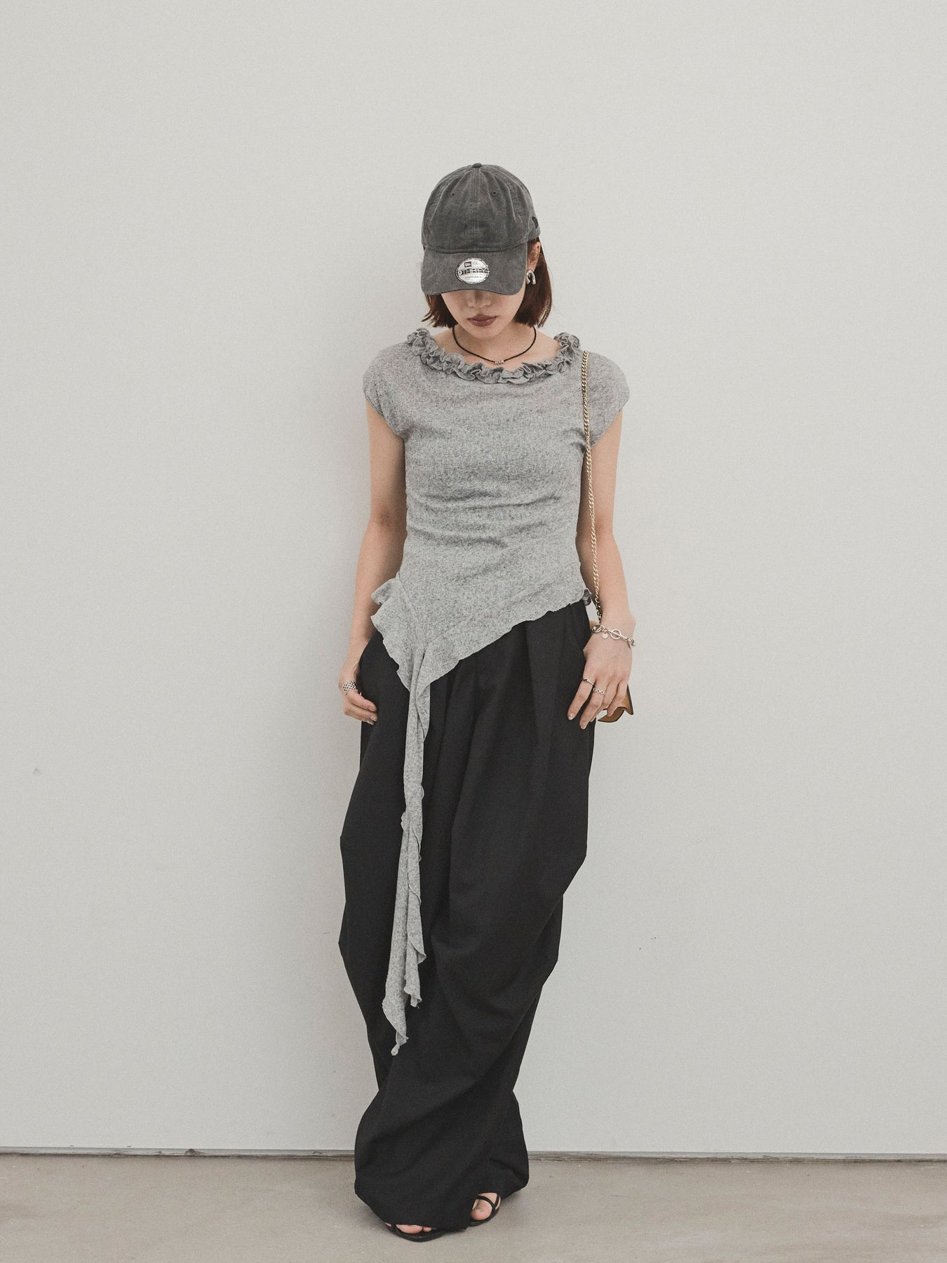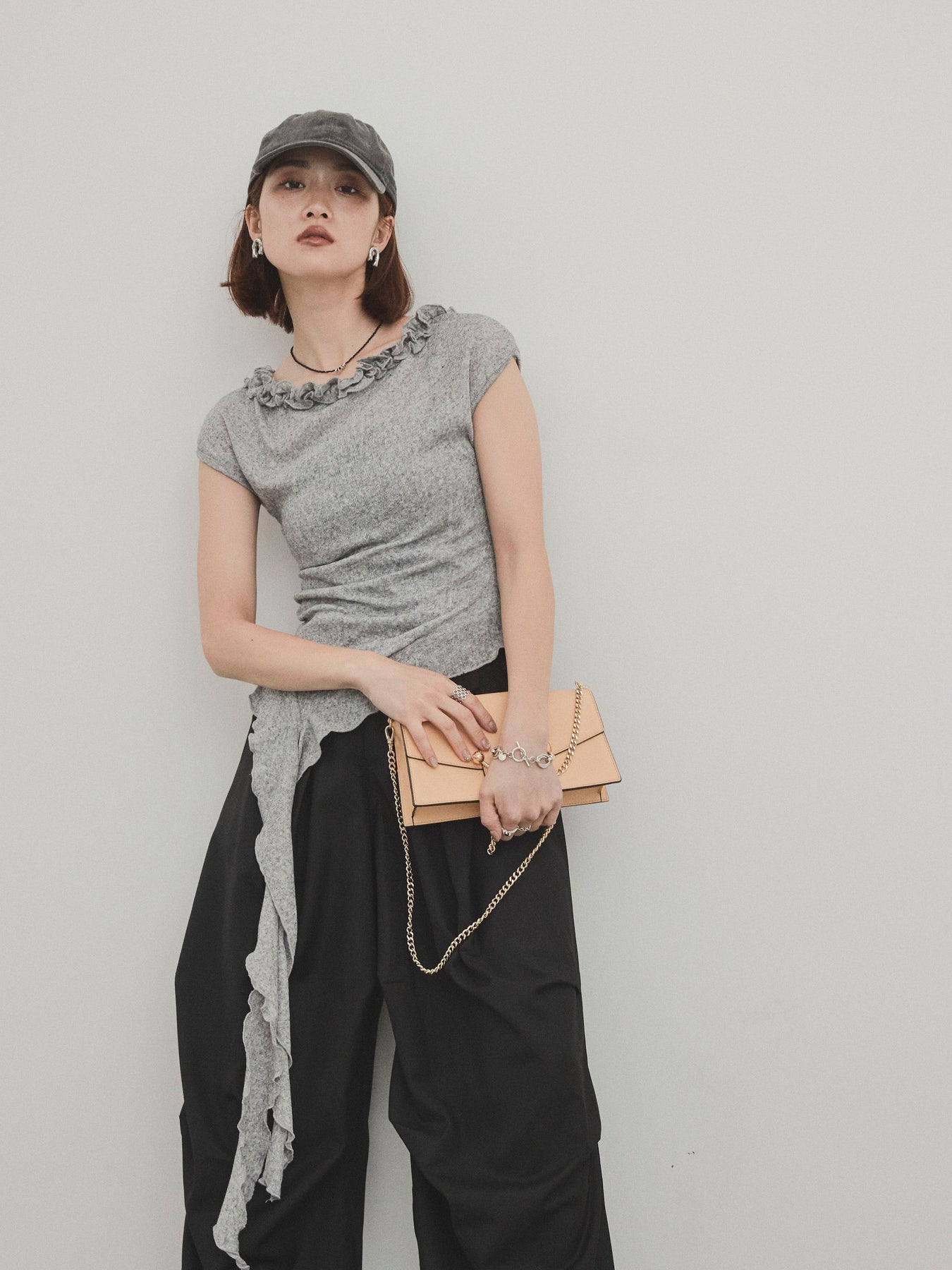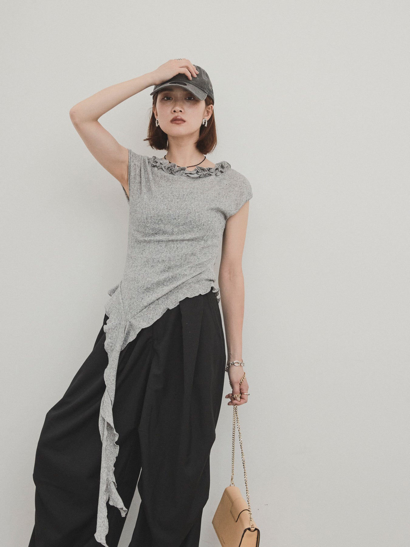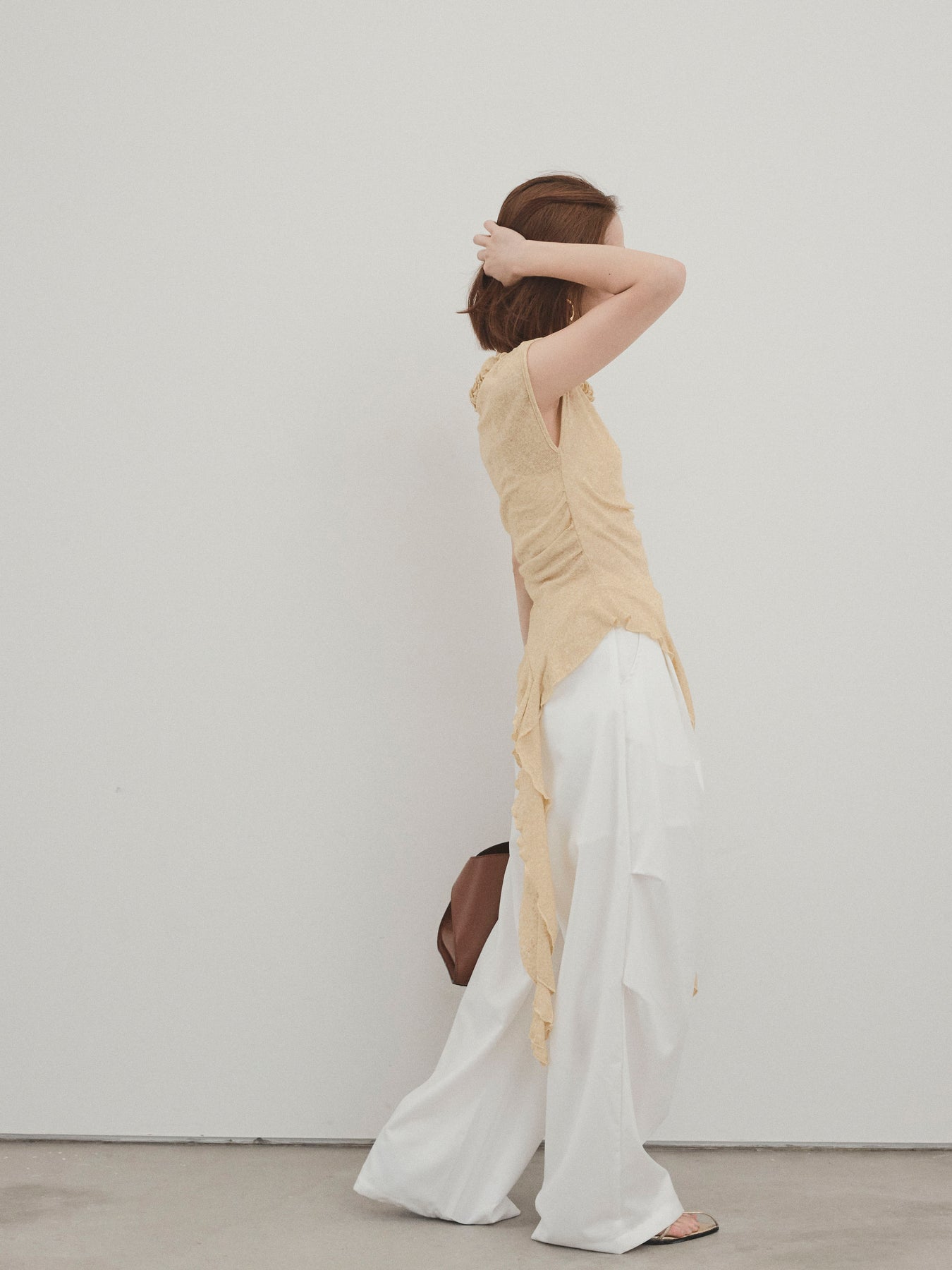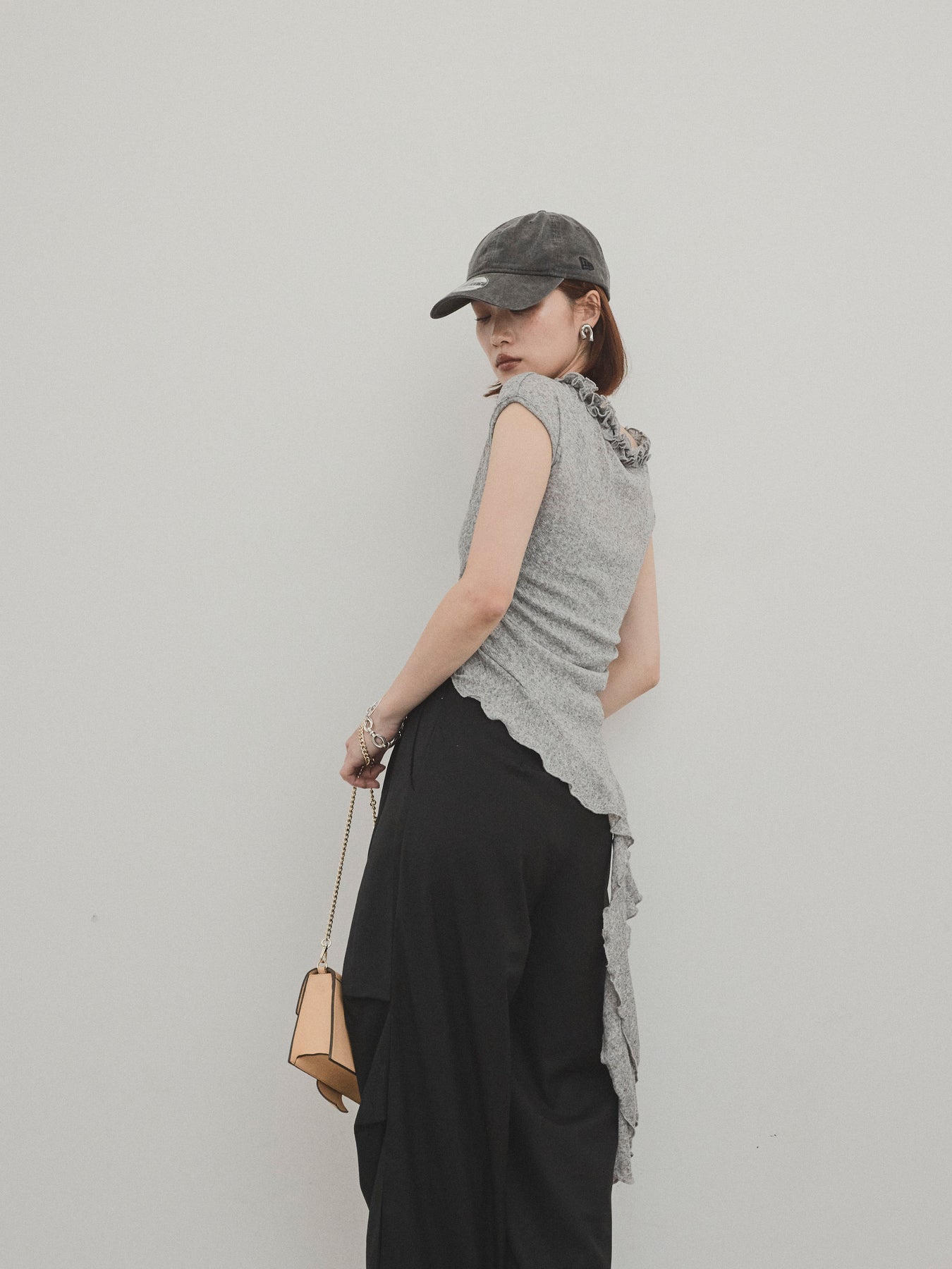 [套裝] 荷葉邊透視針織背心 + 設計環側褶褲 (2 套)
