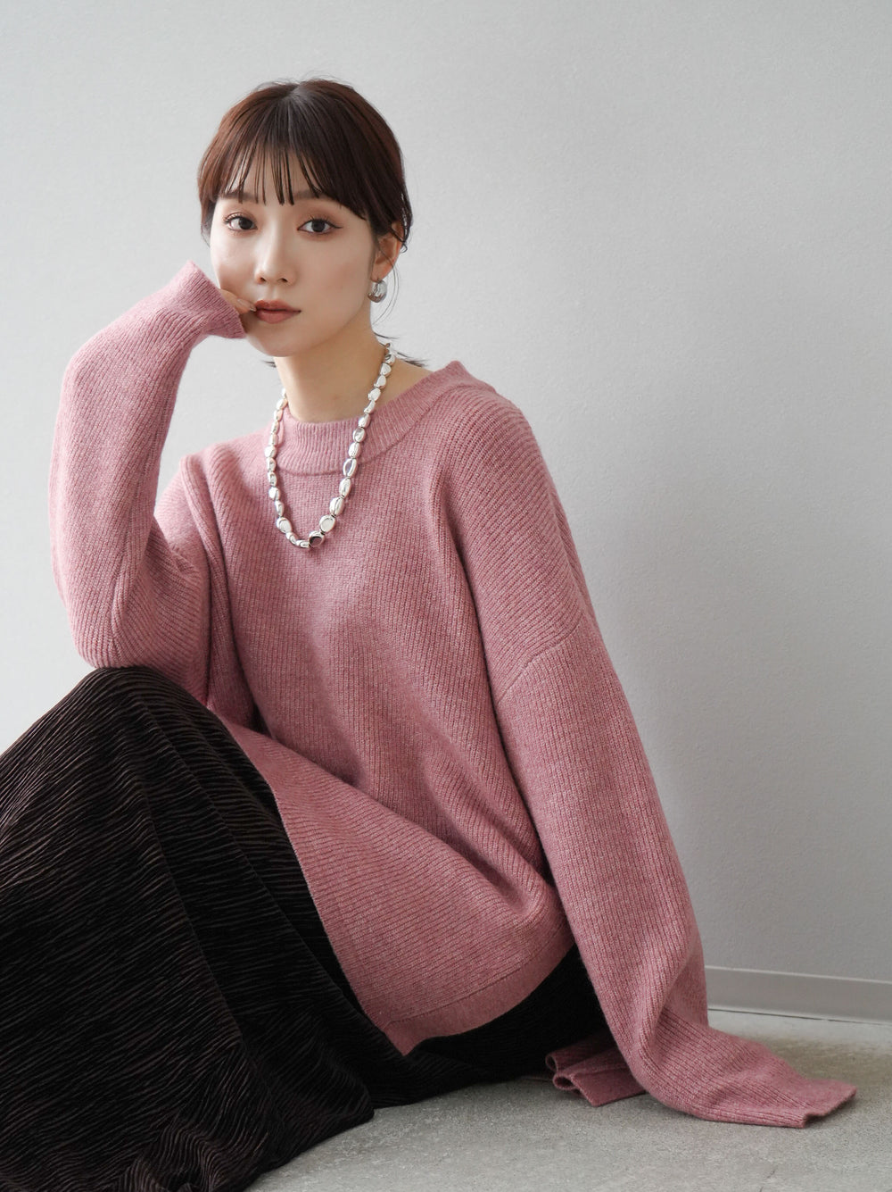 [預訂] 側開衩針織套衫/粉紅色