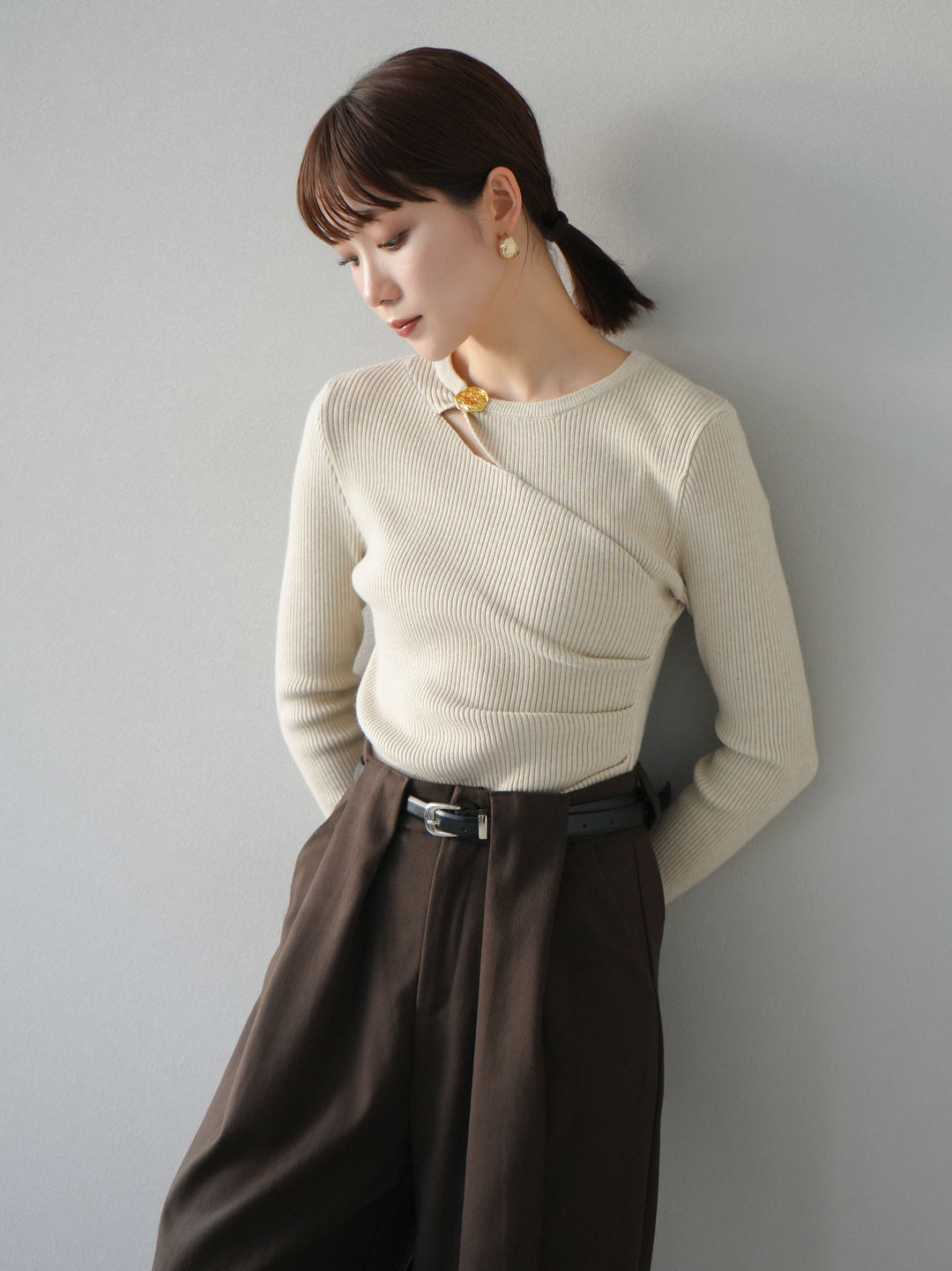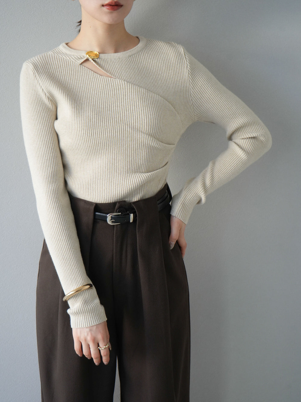 [套裝] 金色扣環緊湊針織開襟衫 + 腰帶不對稱破洞牛仔褲(2 套)
