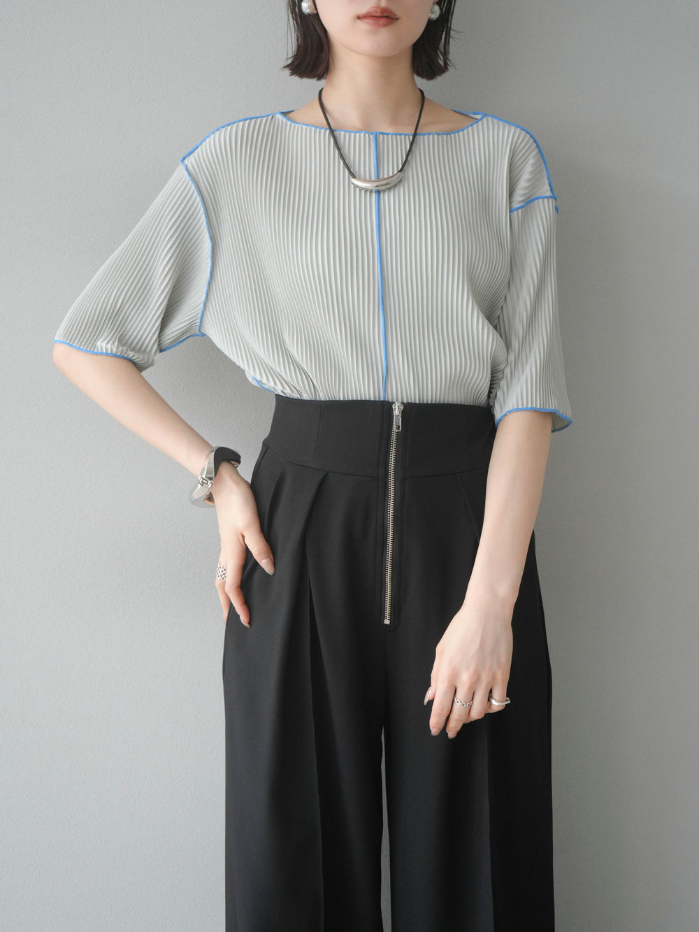 [予約]ボトルネック配色リブニットプルオーバー/ブラック×エクリュ