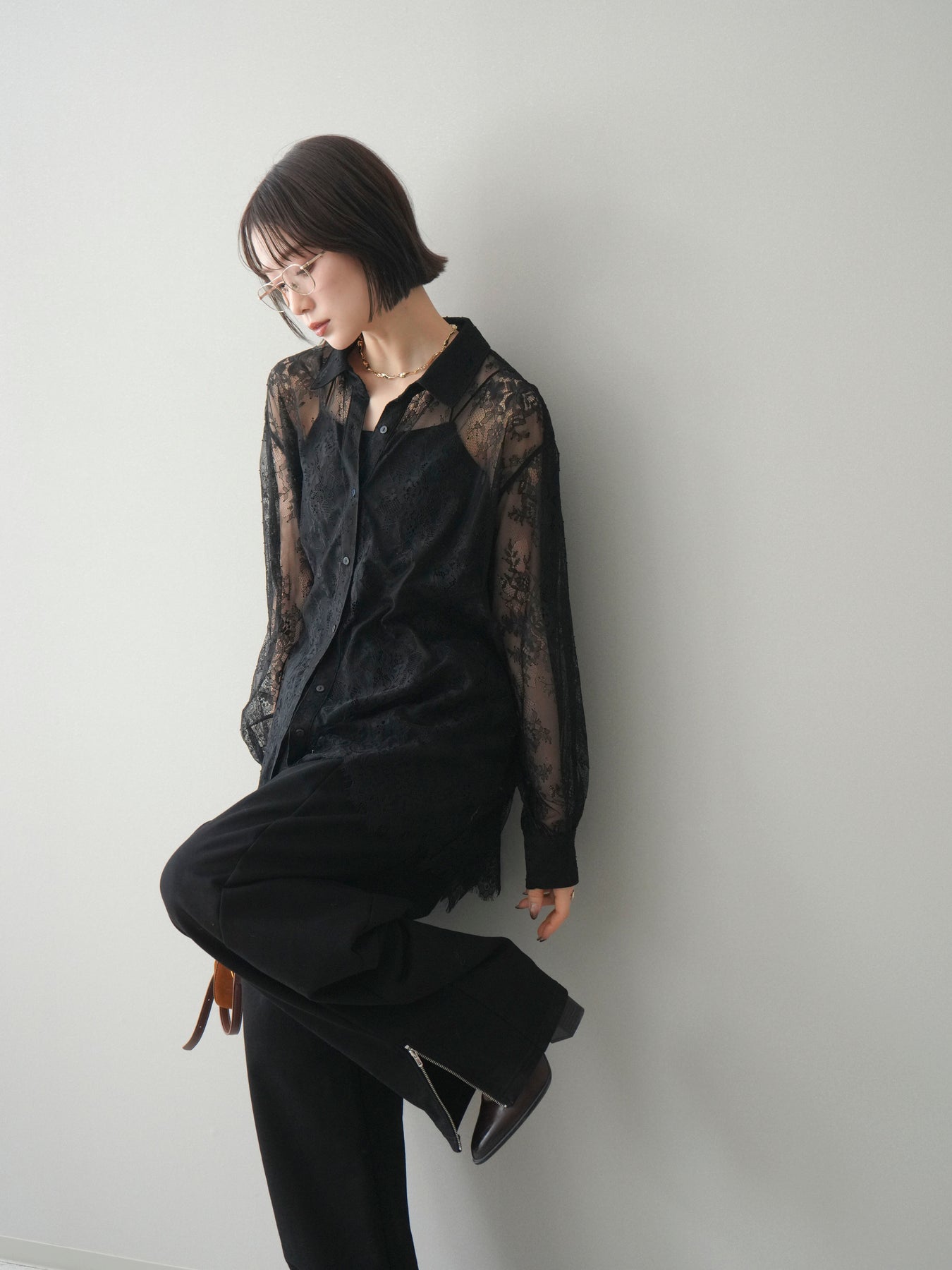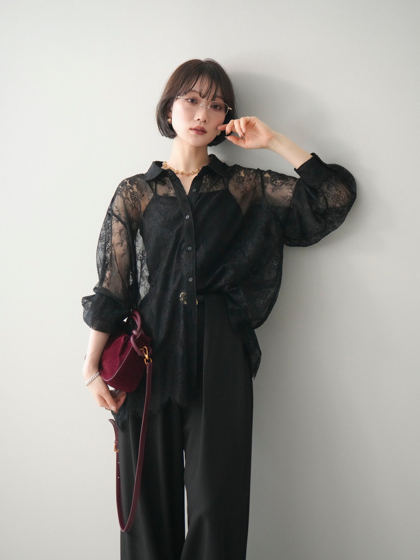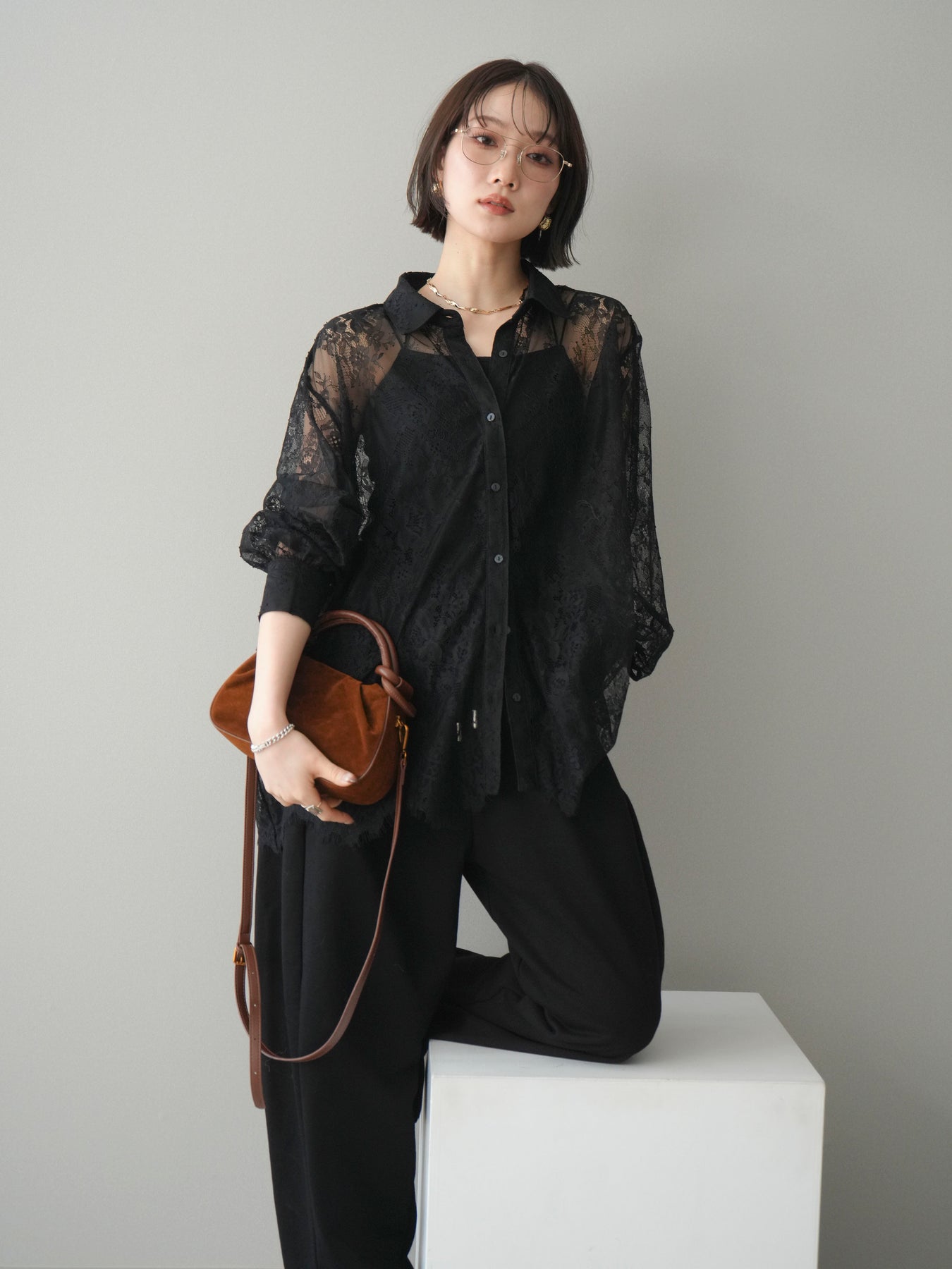 繊細な総レース素材を贅沢に使用した、存在感のあるボリュームスリーブシャツ。透け感のあるレースが軽やかで女性らしい印象を演出し、スタイリングに上品な華やかさをプラスします。程よくゆとりを持たせたシルエットと、ふんわりとしたスリーブデザインが抜け感を生み、甘くなりすぎないバランスに。前を閉じてトップスとしてはもちろん、羽織りとしても着用でき、デイリーからきれいめシーンまで幅広く活躍する一着です。 ※ボトムス、キャミソール(インナー)以外の商品は一律でインナーは付属していません。