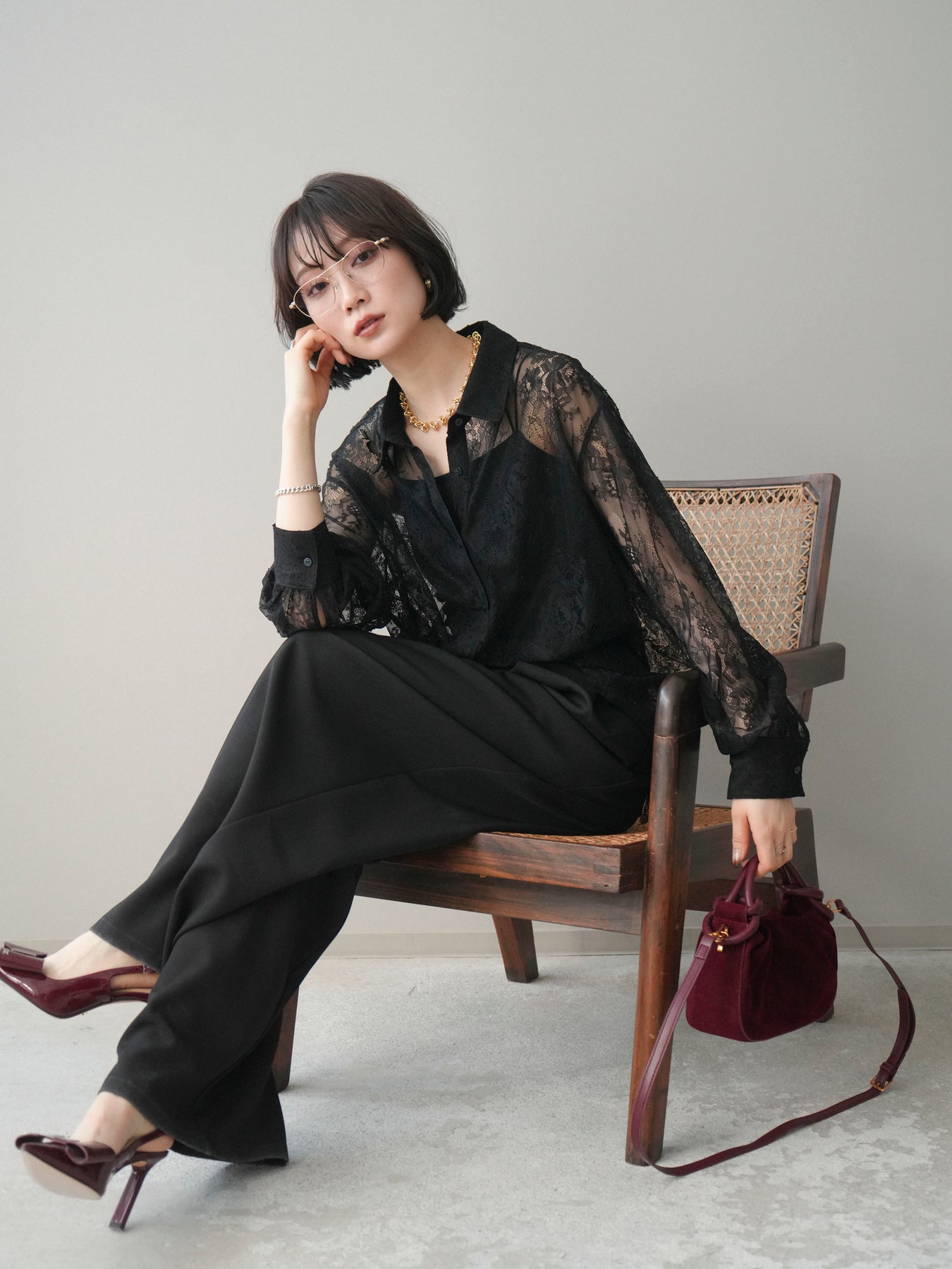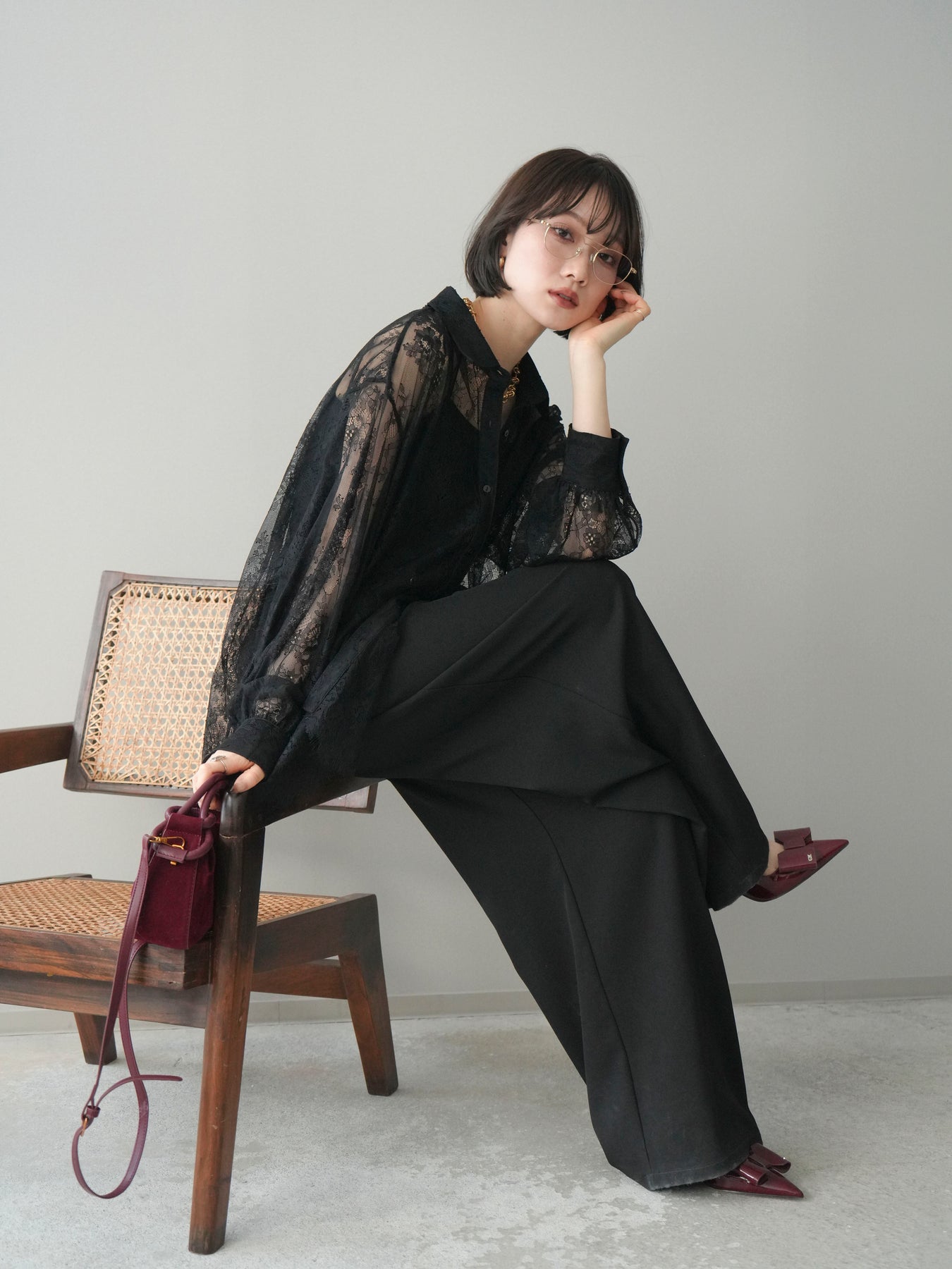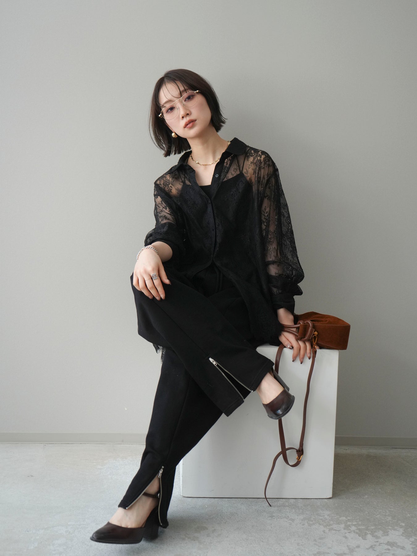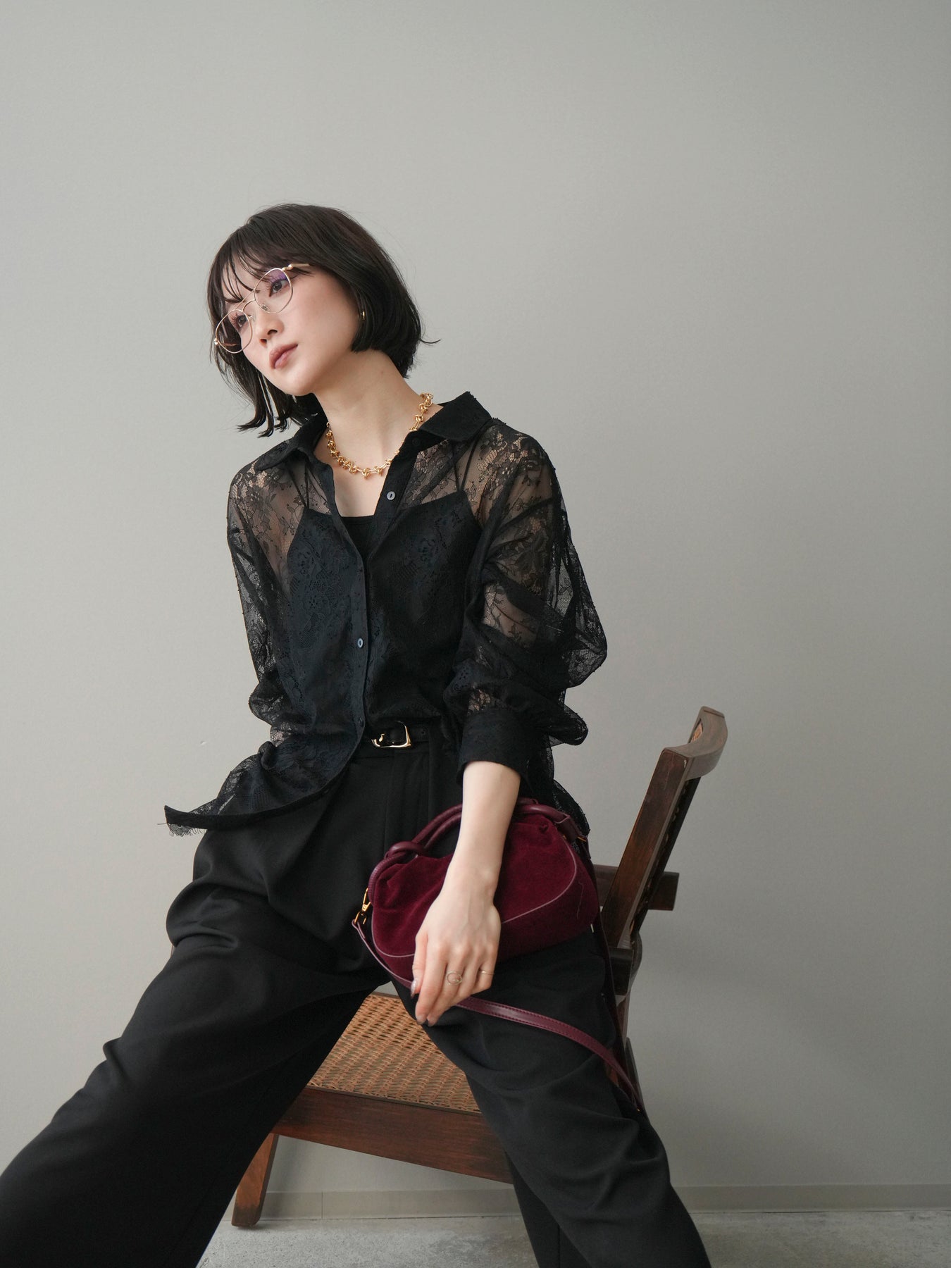 繊細な総レース素材を贅沢に使用した、存在感のあるボリュームスリーブシャツ。透け感のあるレースが軽やかで女性らしい印象を演出し、スタイリングに上品な華やかさをプラスします。程よくゆとりを持たせたシルエットと、ふんわりとしたスリーブデザインが抜け感を生み、甘くなりすぎないバランスに。前を閉じてトップスとしてはもちろん、羽織りとしても着用でき、デイリーからきれいめシーンまで幅広く活躍する一着です。 ※ボトムス、キャミソール(インナー)以外の商品は一律でインナーは付属していません。