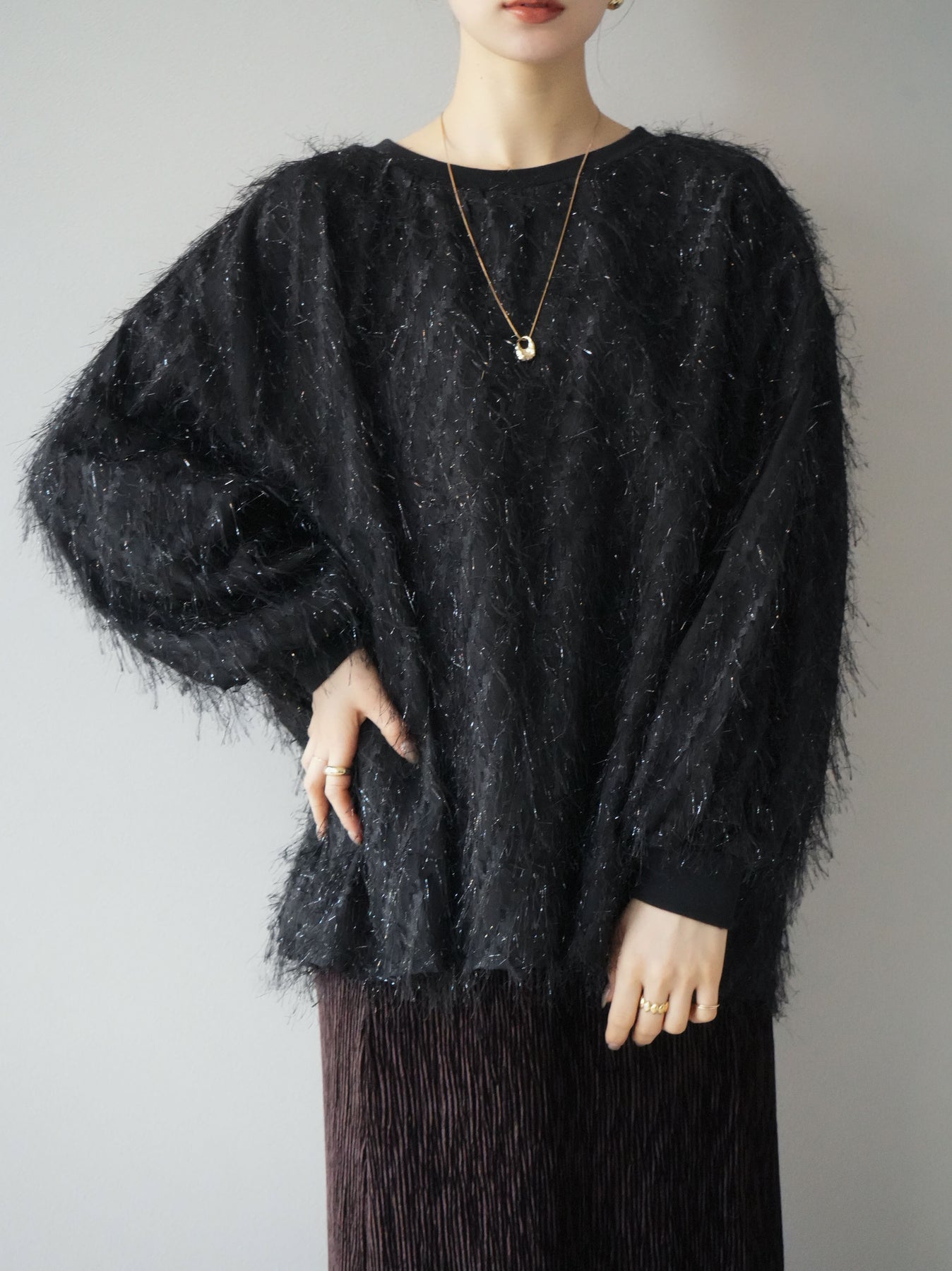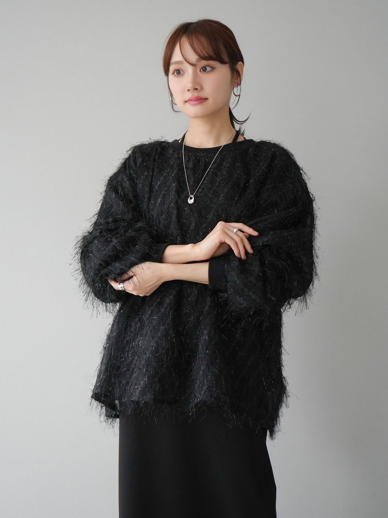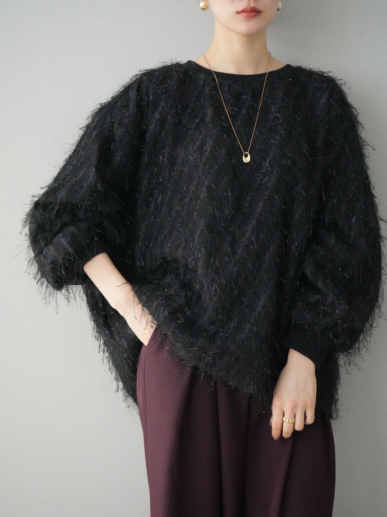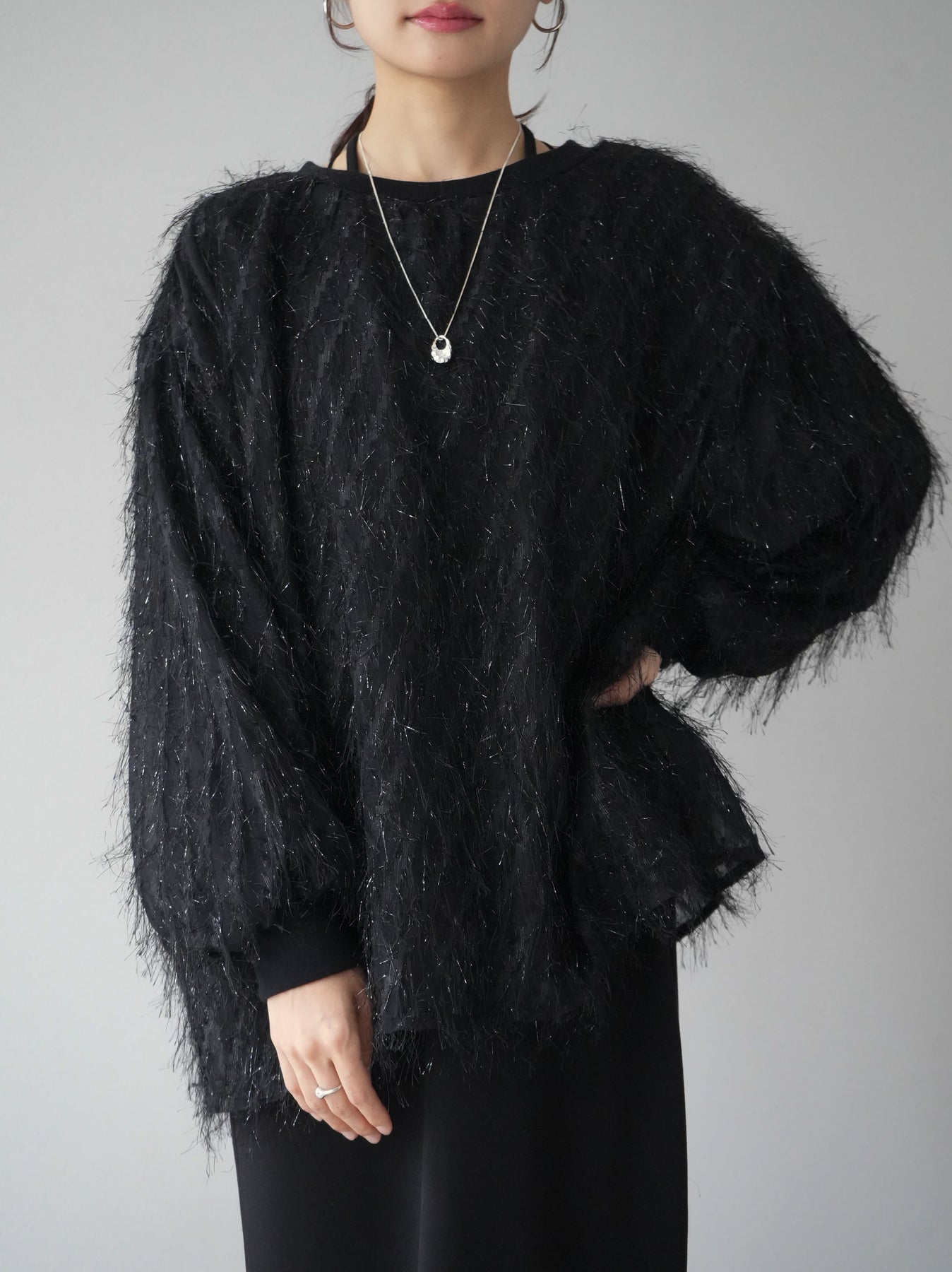 這款套頭衫設計精美,層疊輕盈的流蘇薄紗。羊毛襯裡使其穿著極為舒適。簡單的輪廓增添了時尚的精髓,為您的日常服裝增添了個性。這是一件引人注目的物品,非常適合作為您造型的焦點。 ※除下裝、吊帶背心(內衣)以外的商品均為標準品,不含內衣。