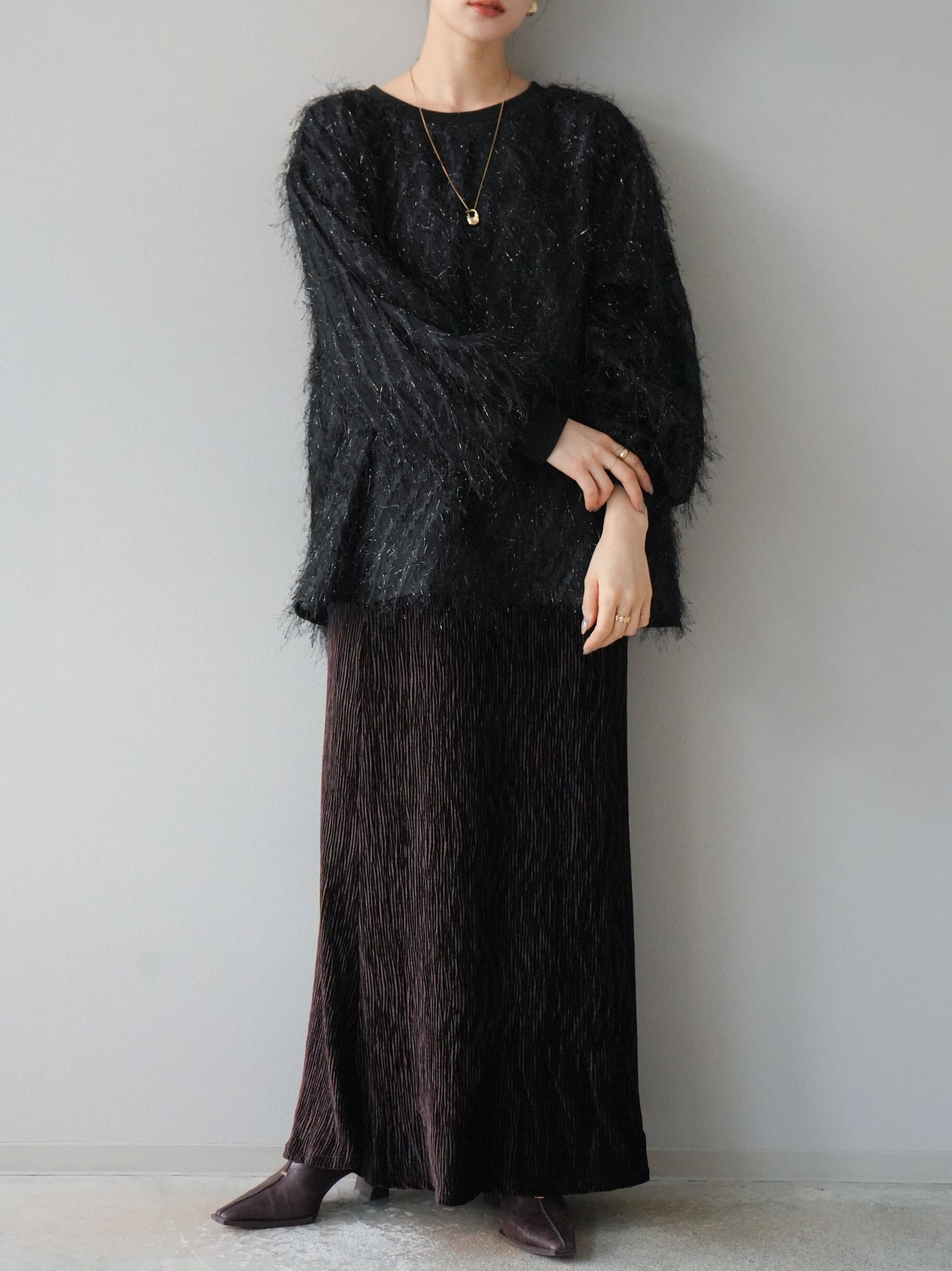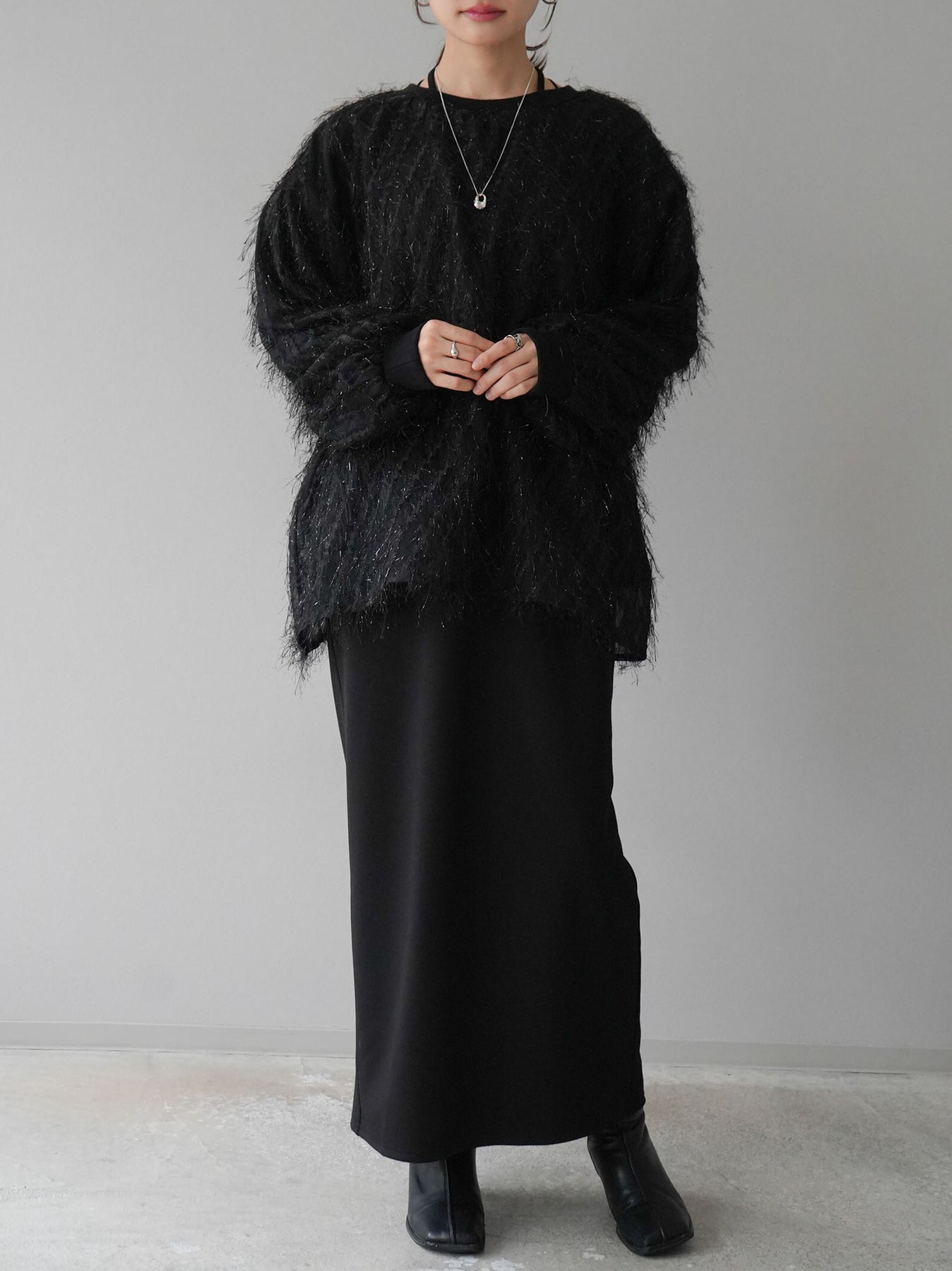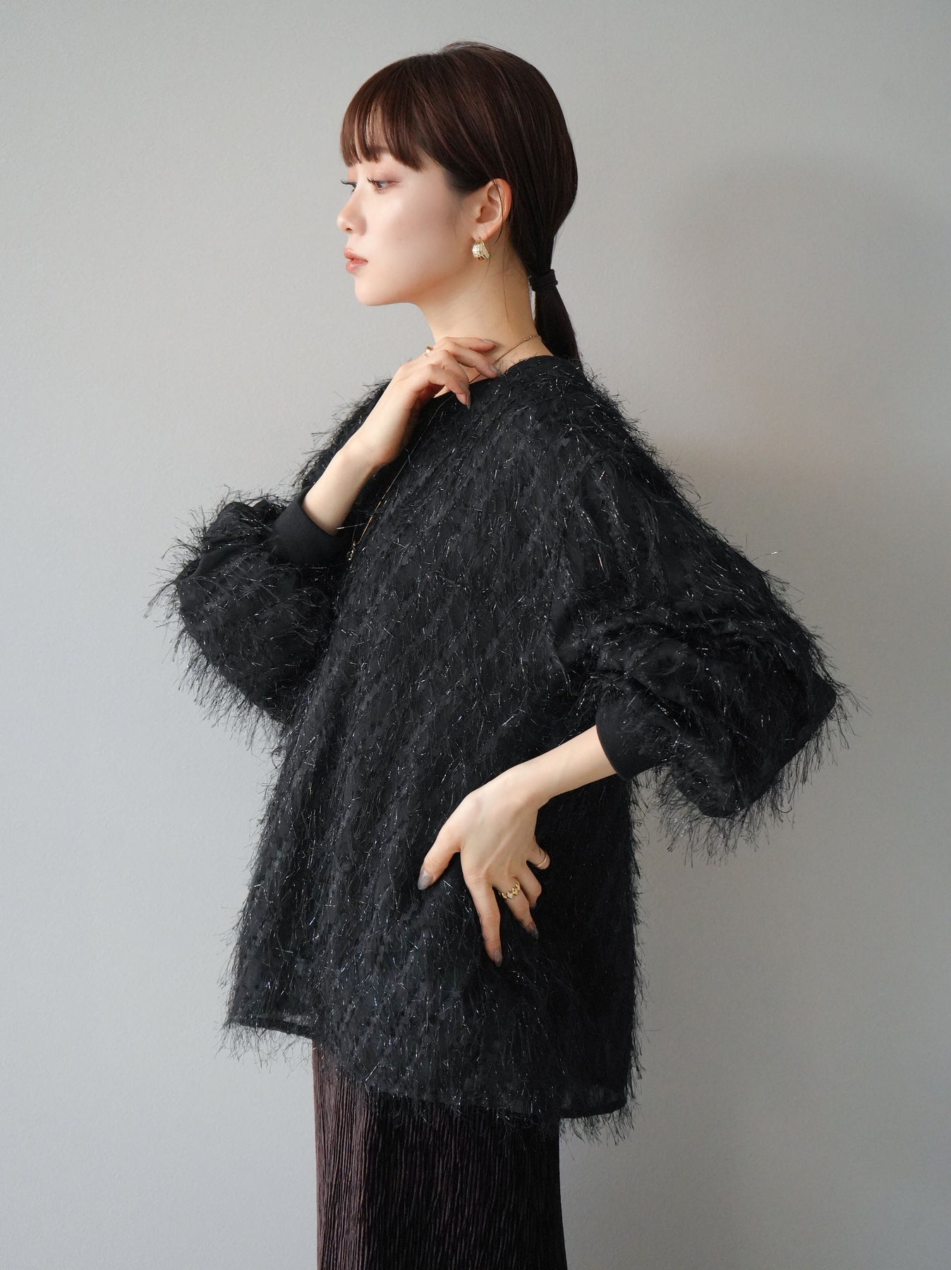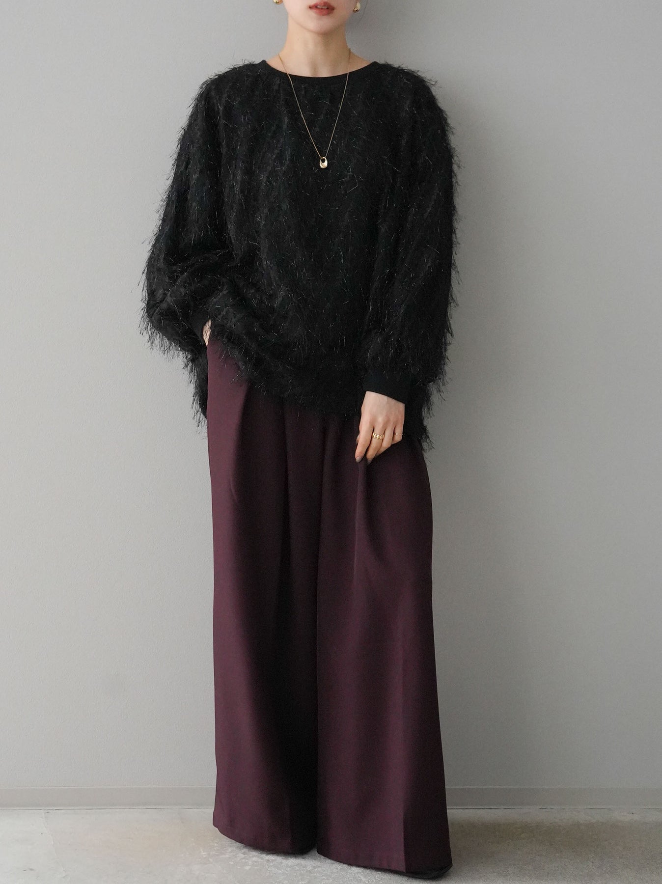 這款套頭衫設計精美,層疊輕盈的流蘇薄紗。羊毛襯裡使其穿著極為舒適。簡單的輪廓增添了時尚的精髓,為您的日常服裝增添了個性。這是一件引人注目的物品,非常適合作為您造型的焦點。 ※除下裝、吊帶背心(內衣)以外的商品均為標準品,不含內衣。