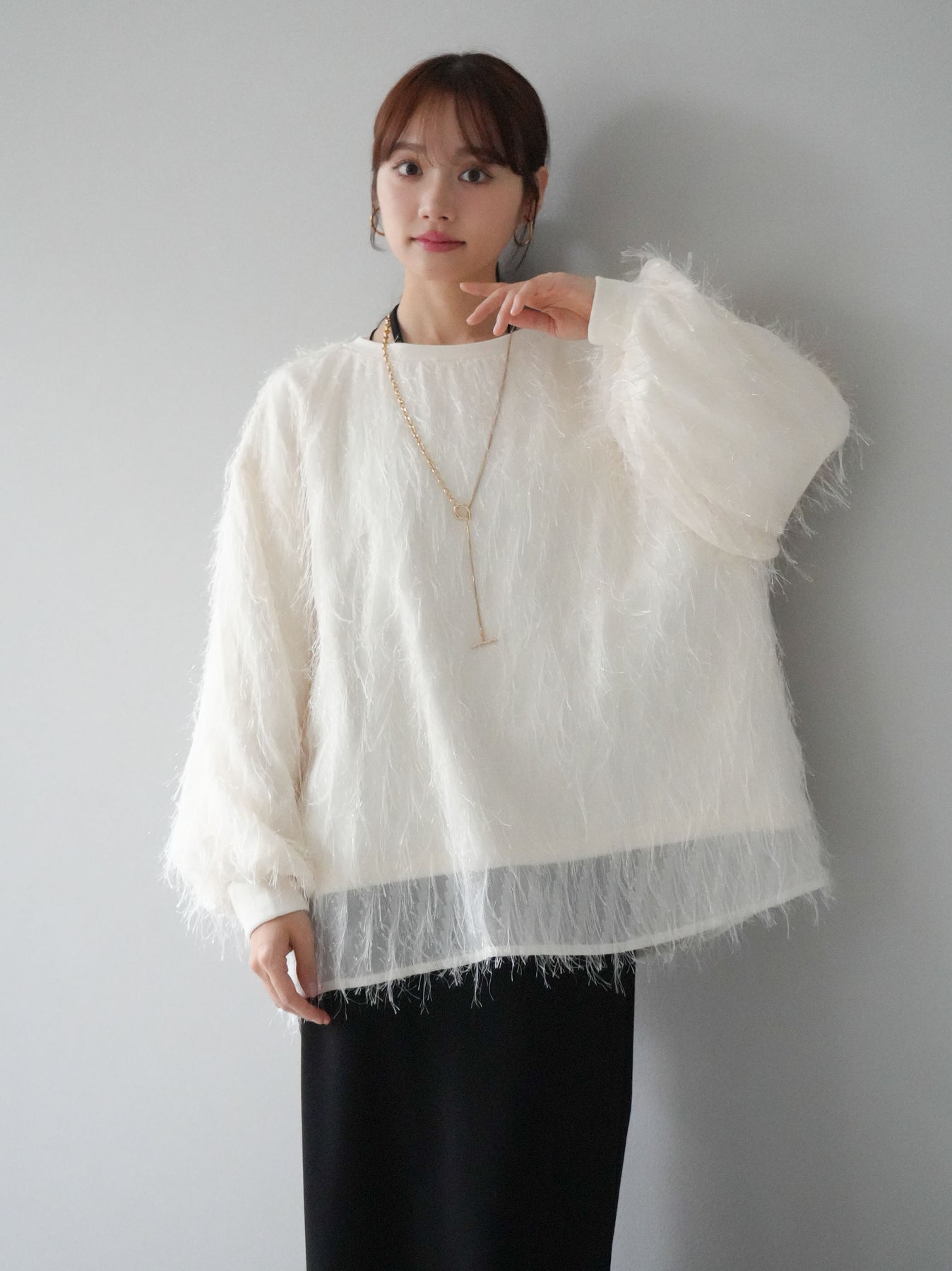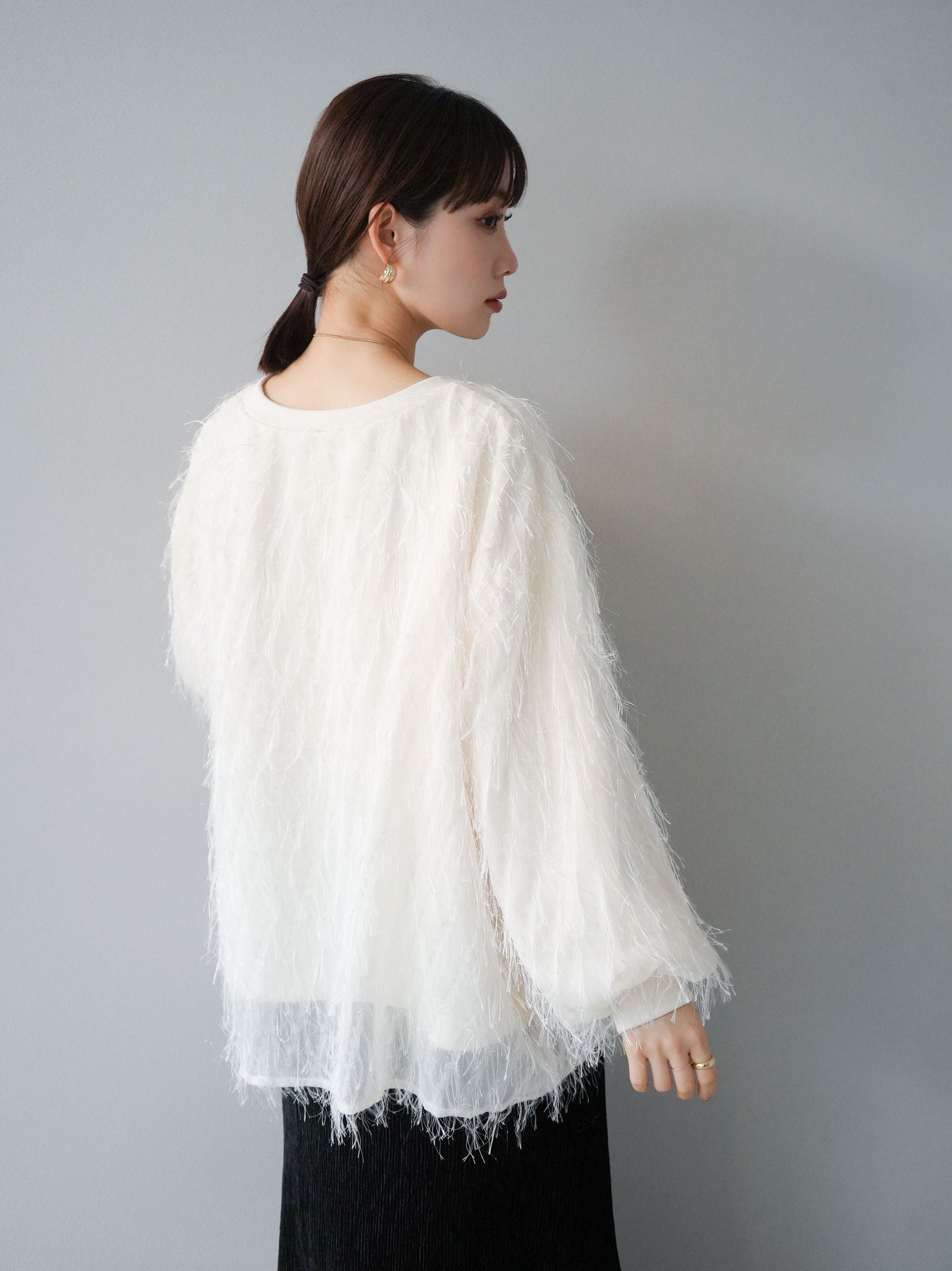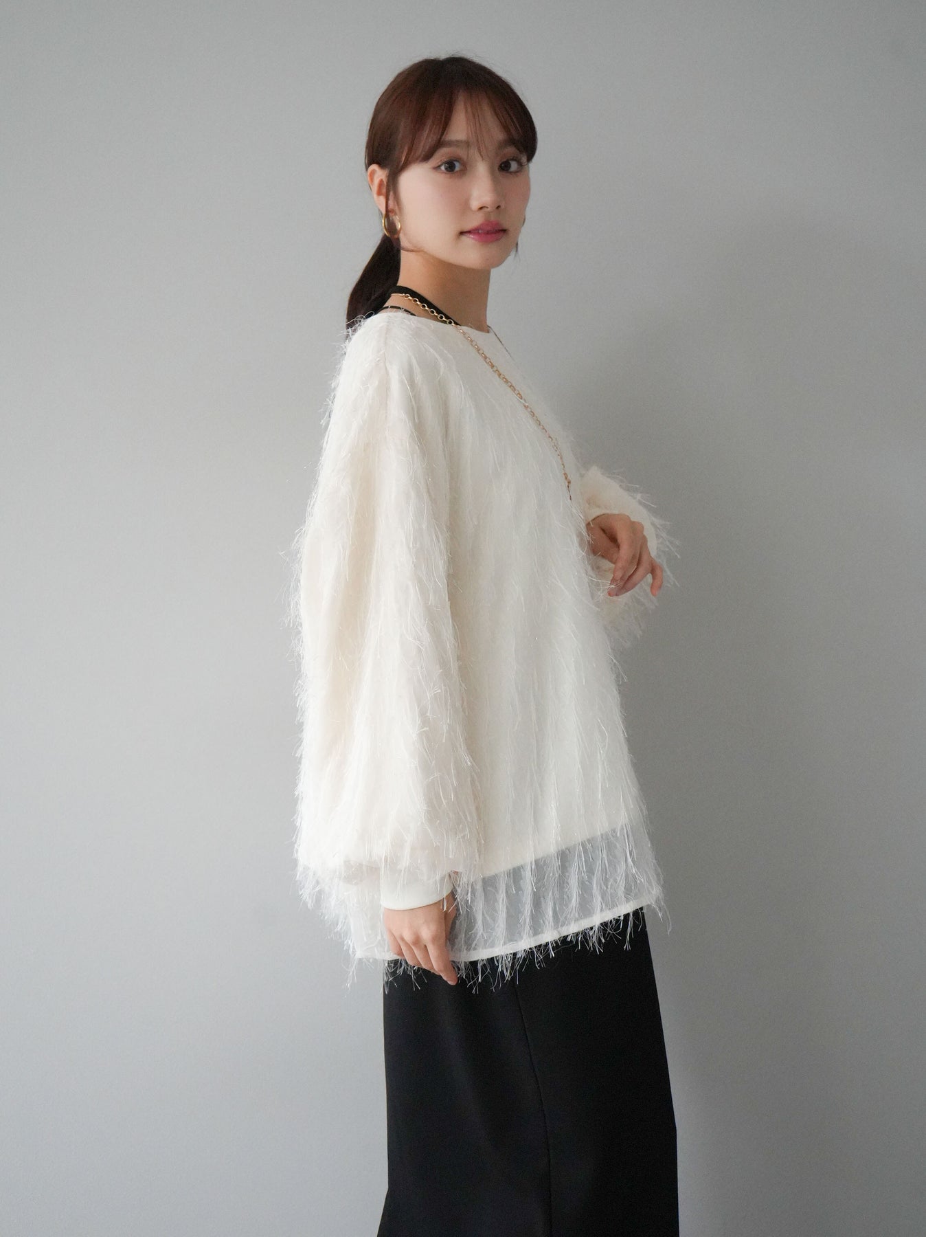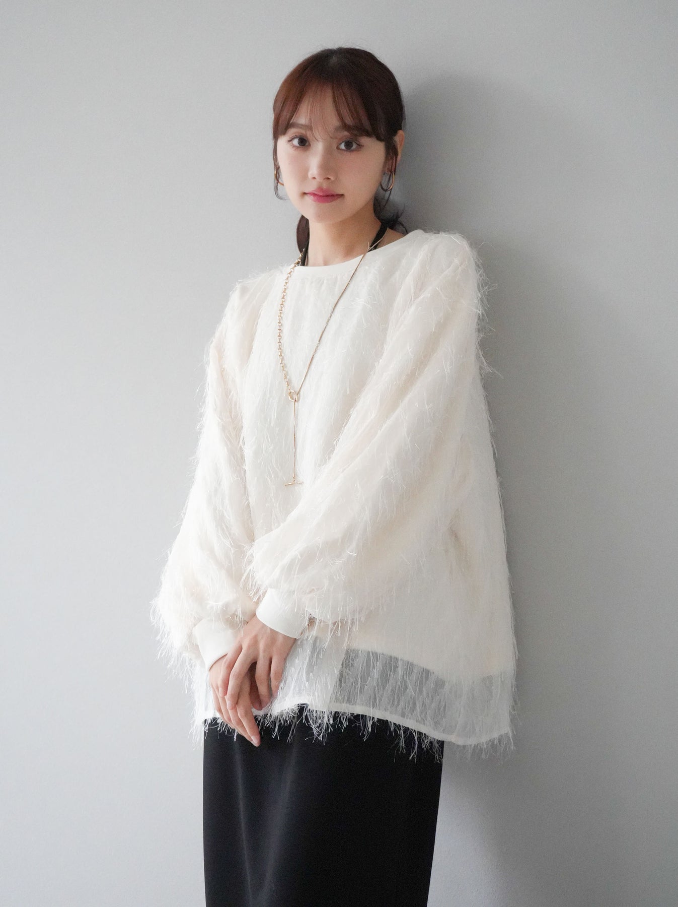 【預購】流蘇薄紗多層抓絨套頭衫/象牙色