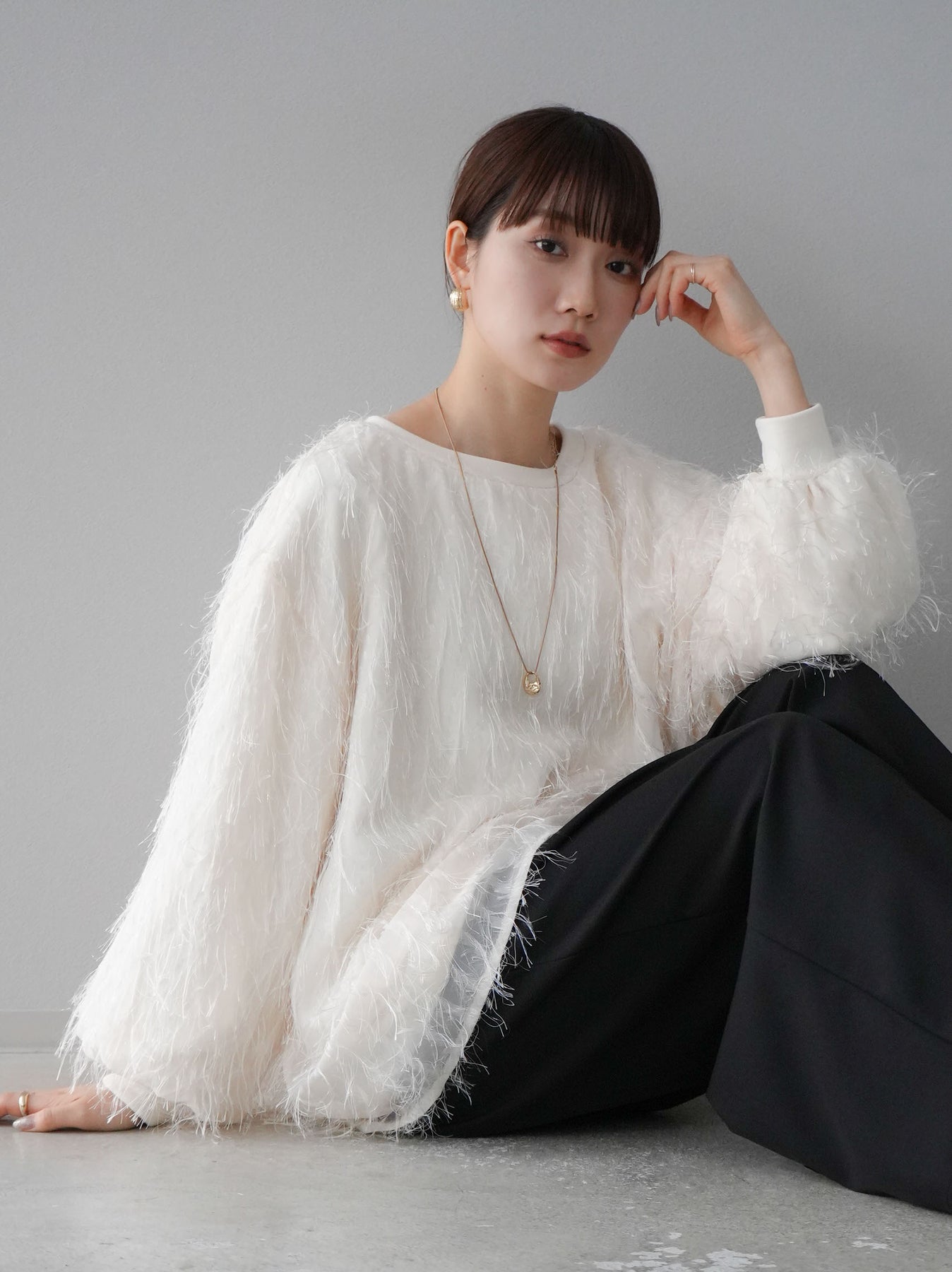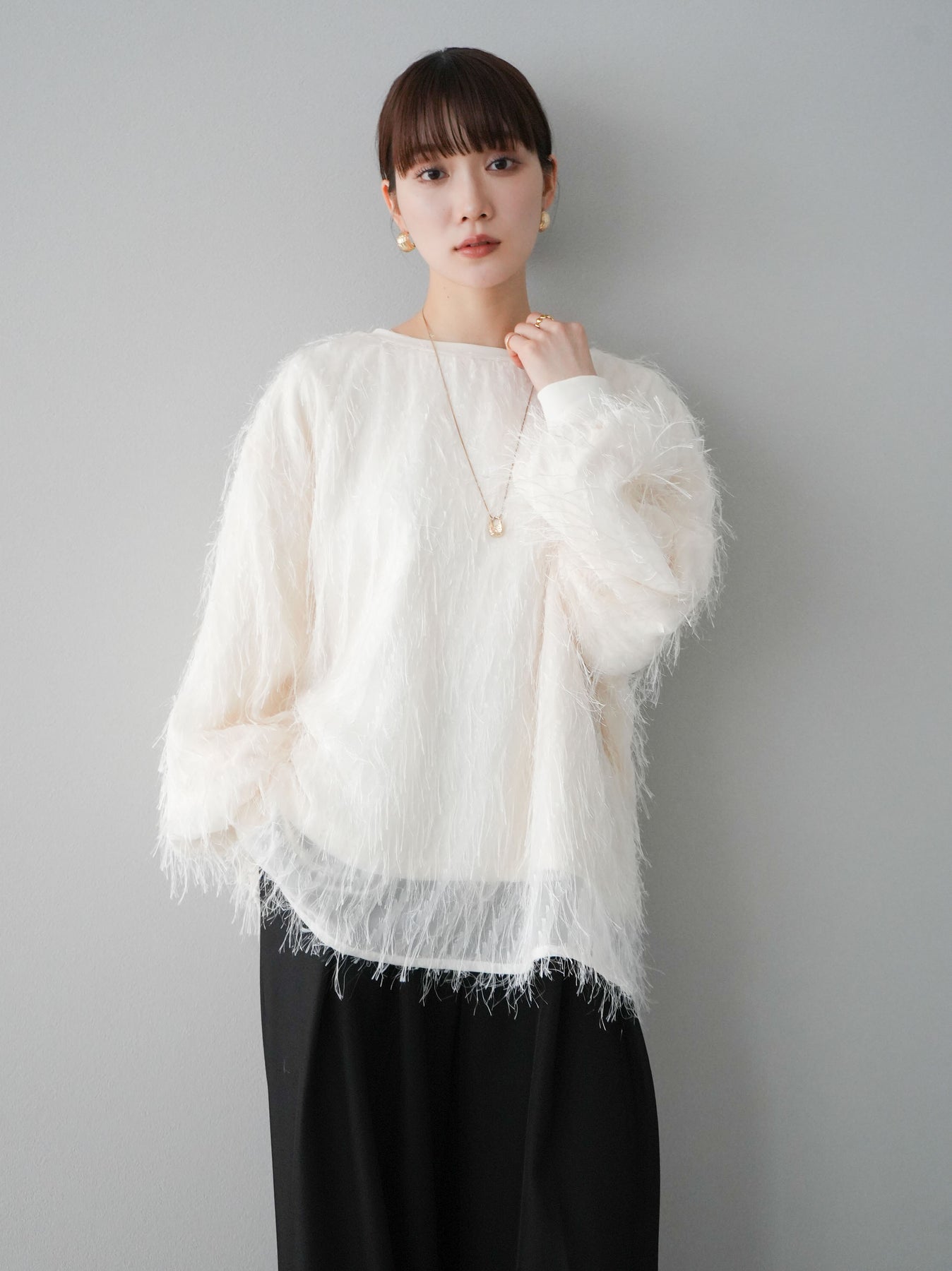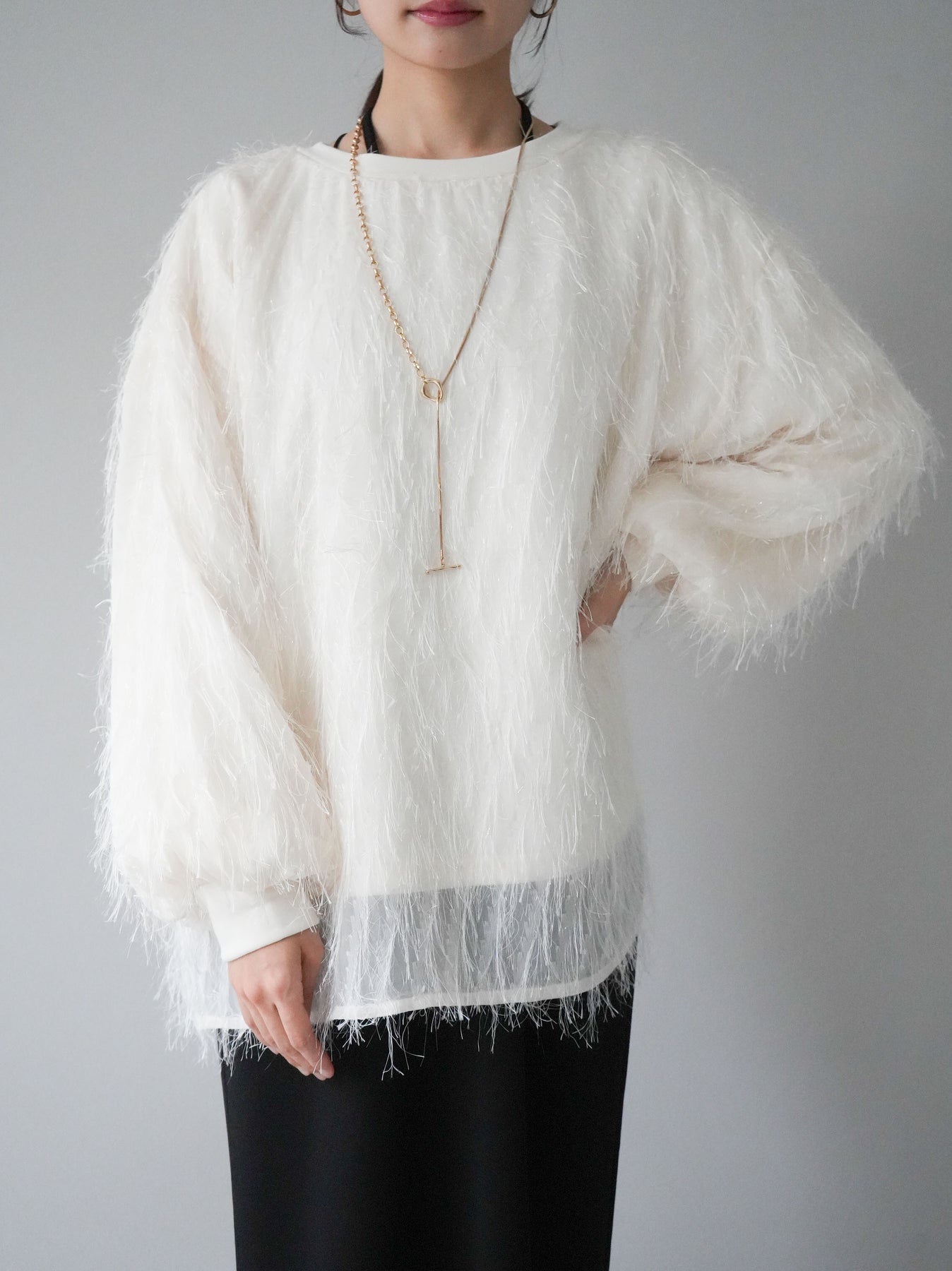 【預購】流蘇薄紗多層抓絨套頭衫/象牙色