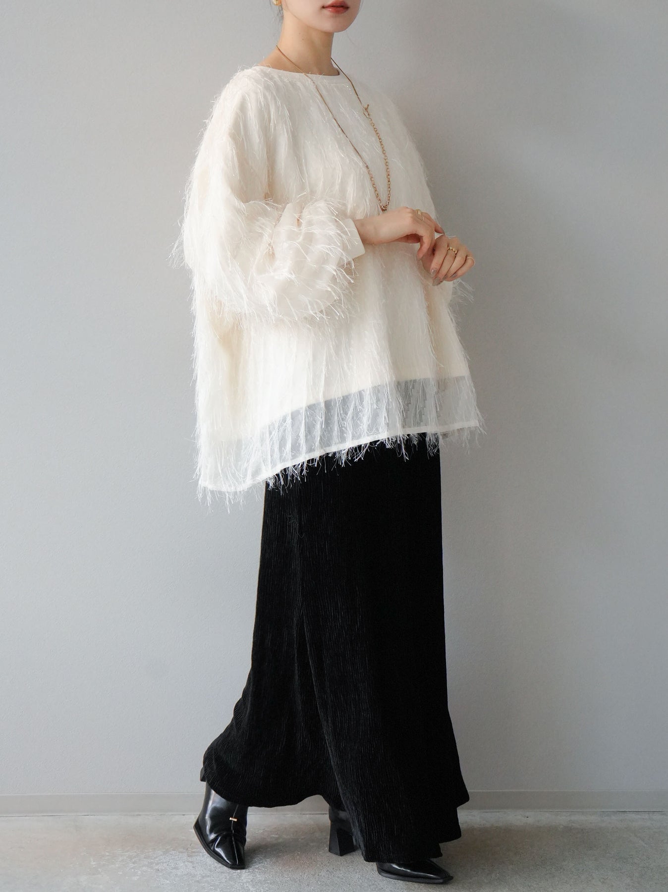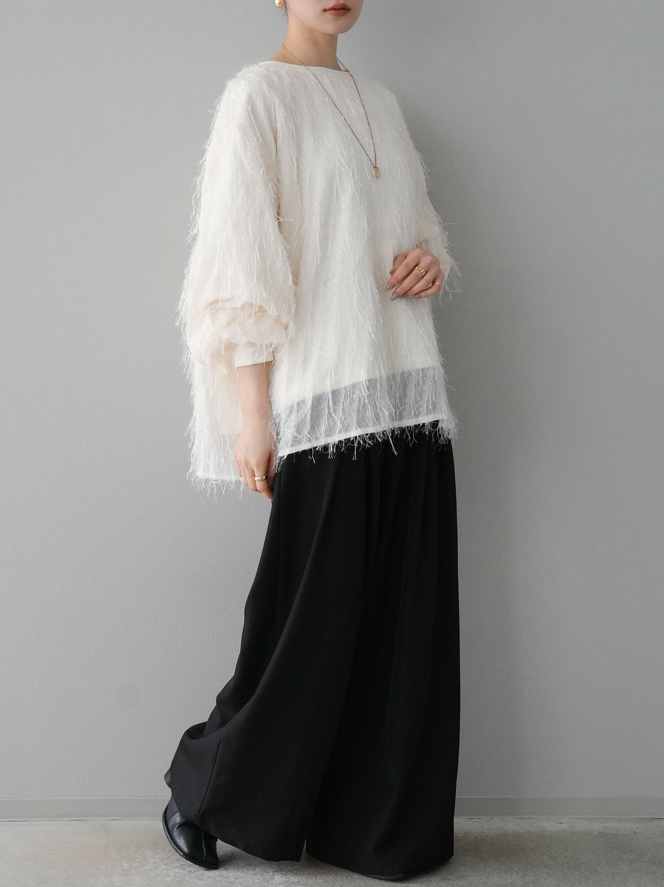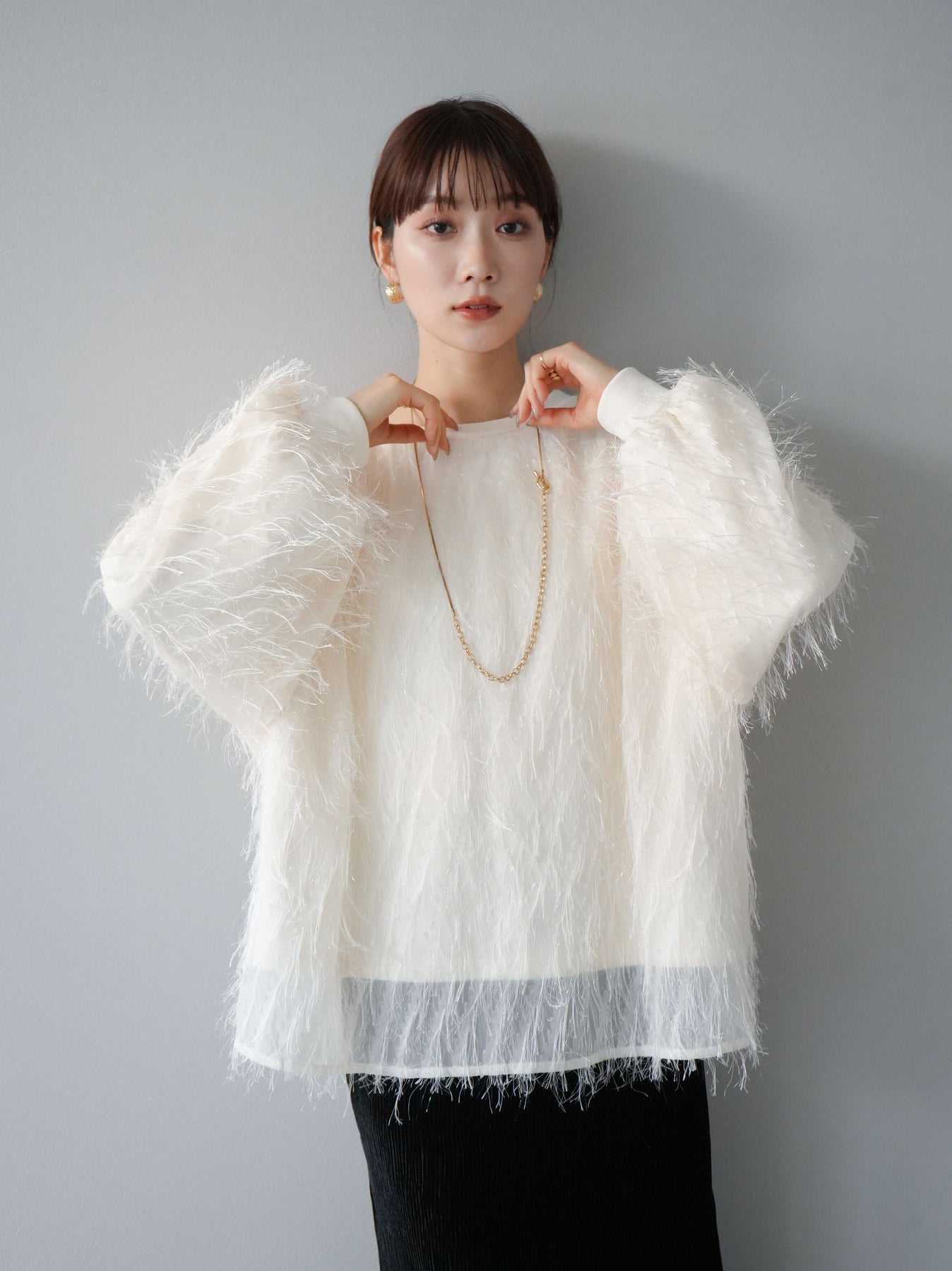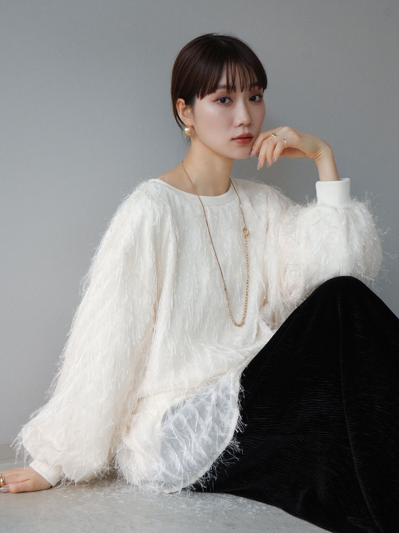【預購】流蘇薄紗多層抓絨套頭衫/象牙色