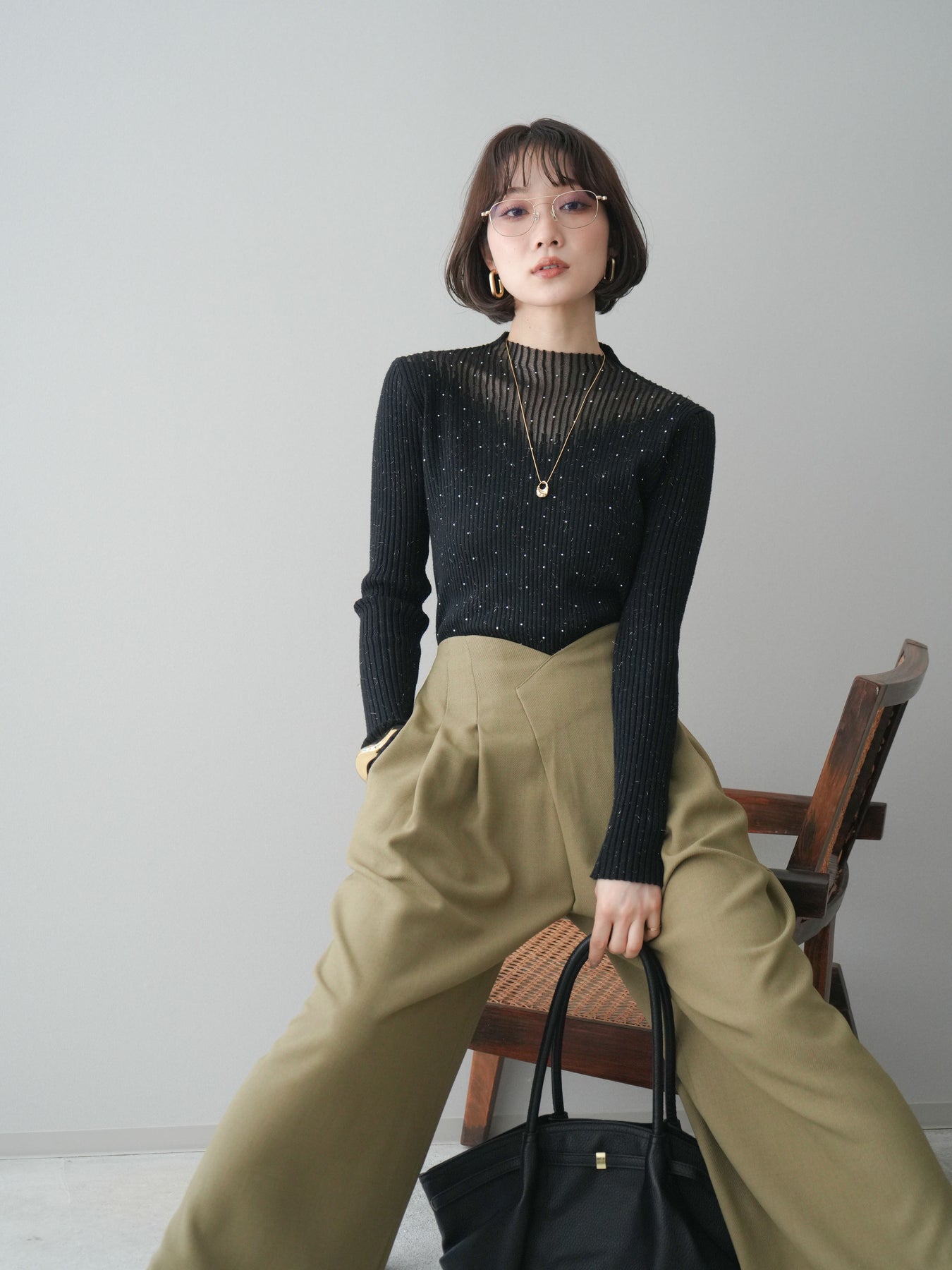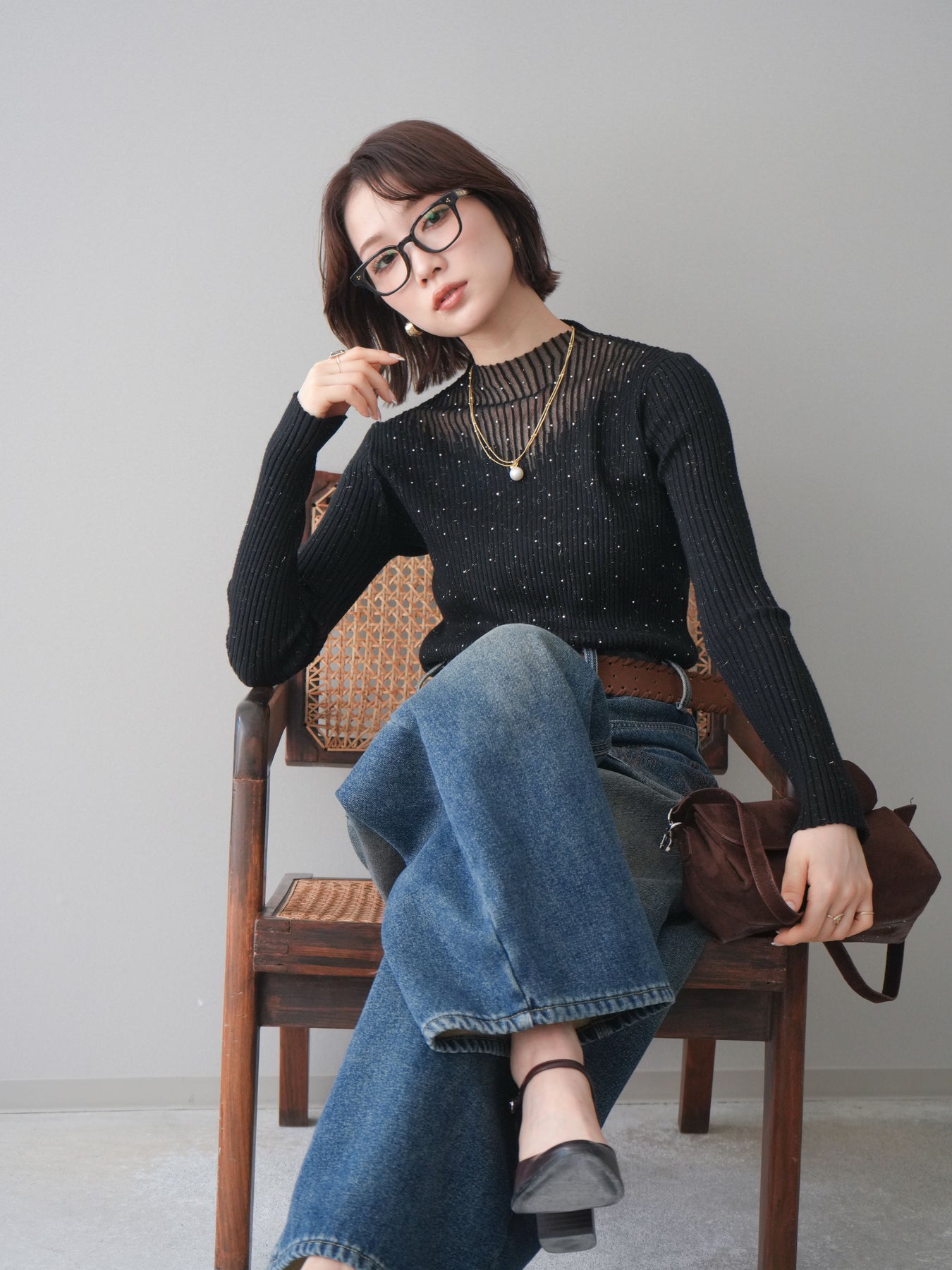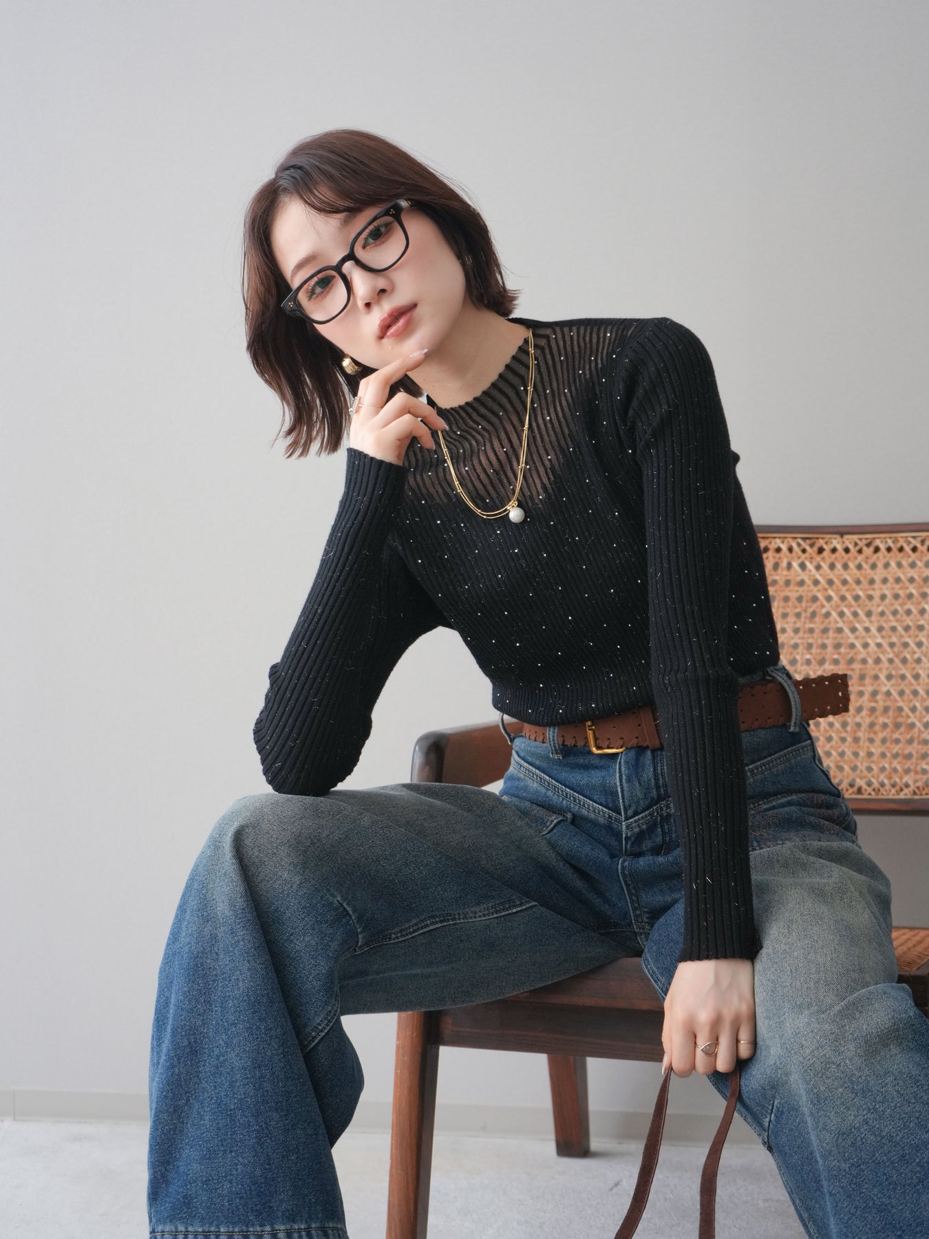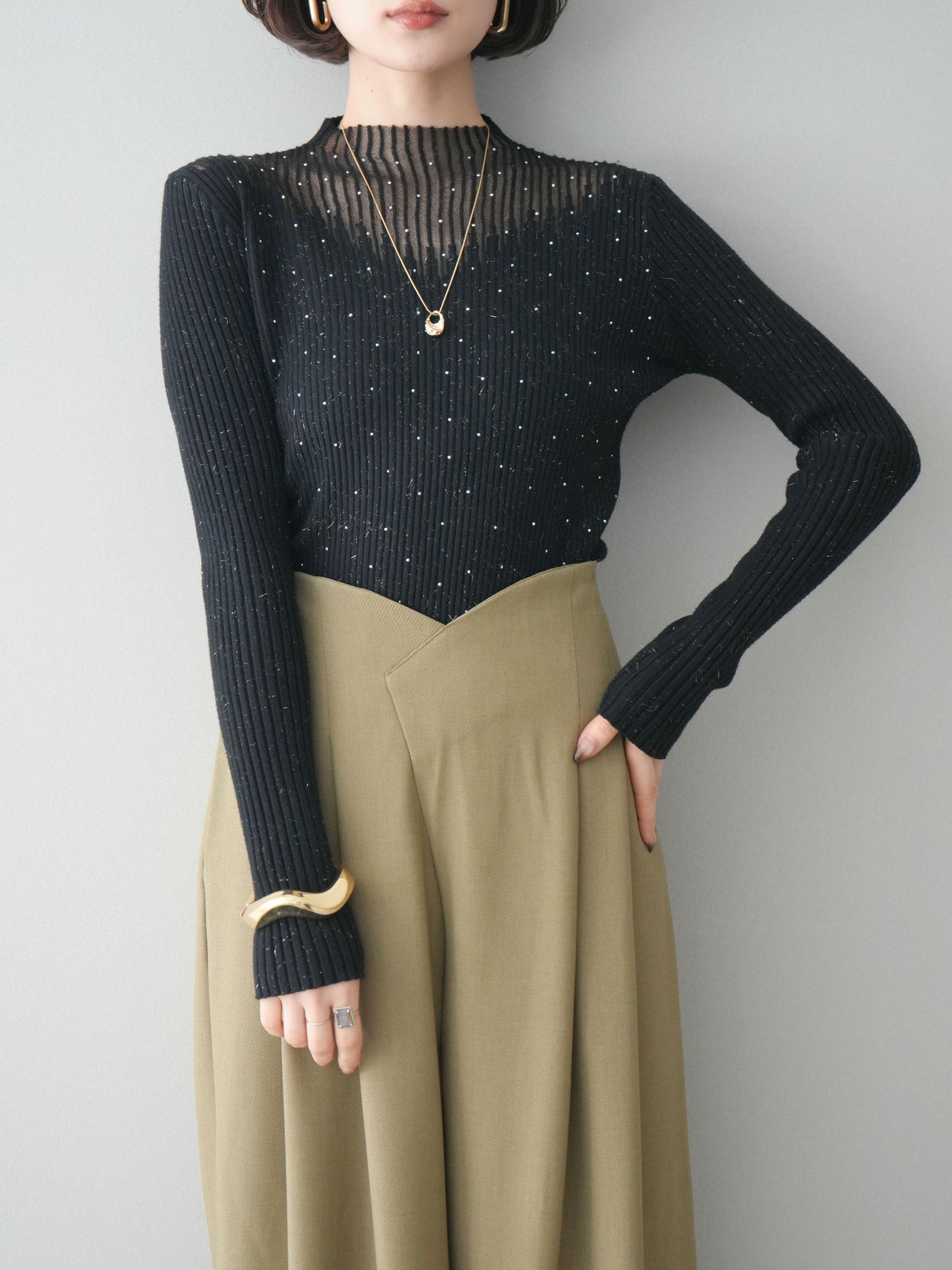 [予約]シアー切替スパンコールリブニットトップスに関連する商品を探す↓