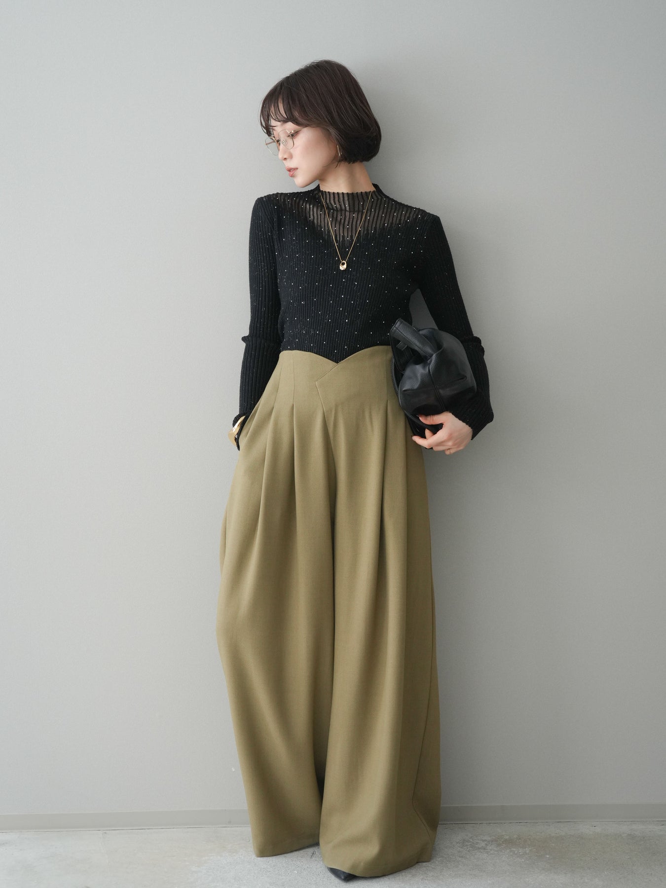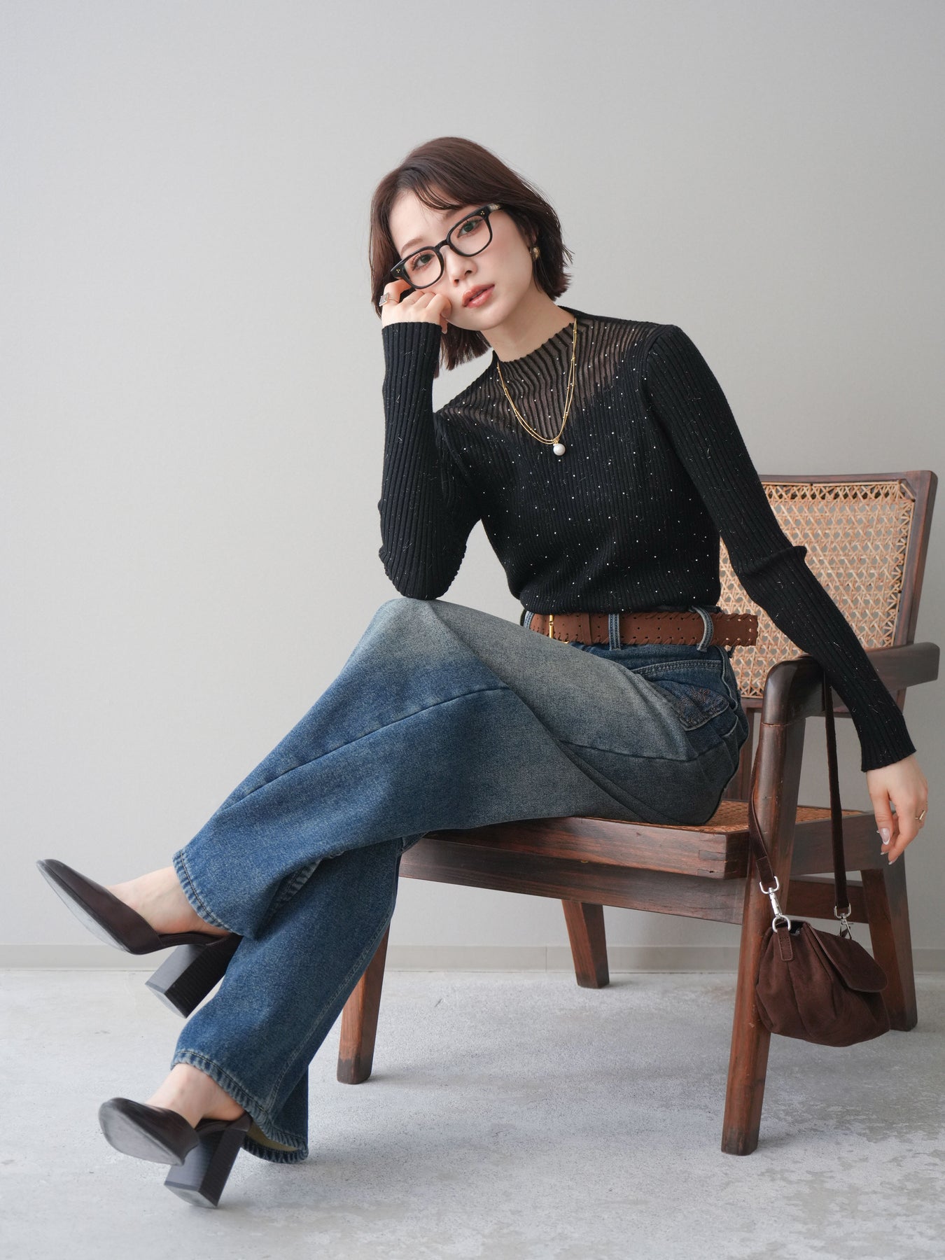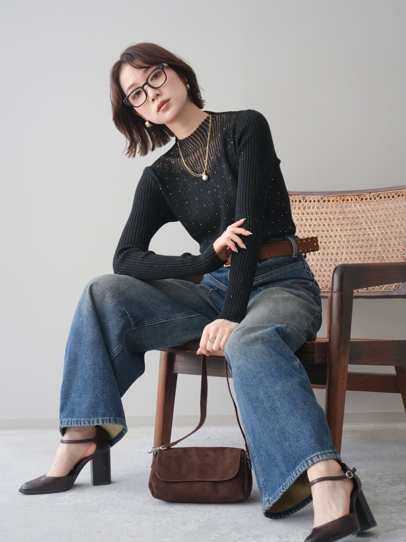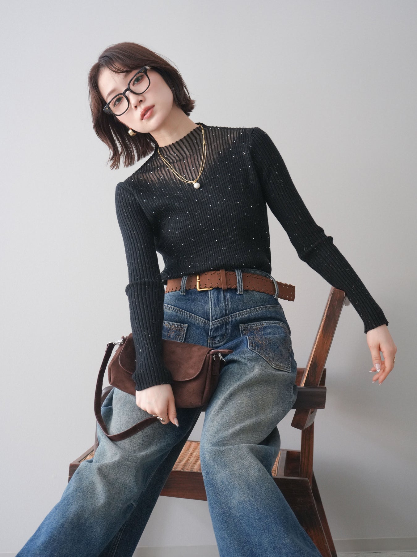 [予約]シアー切替スパンコールリブニットトップスに関連する商品を探す↓