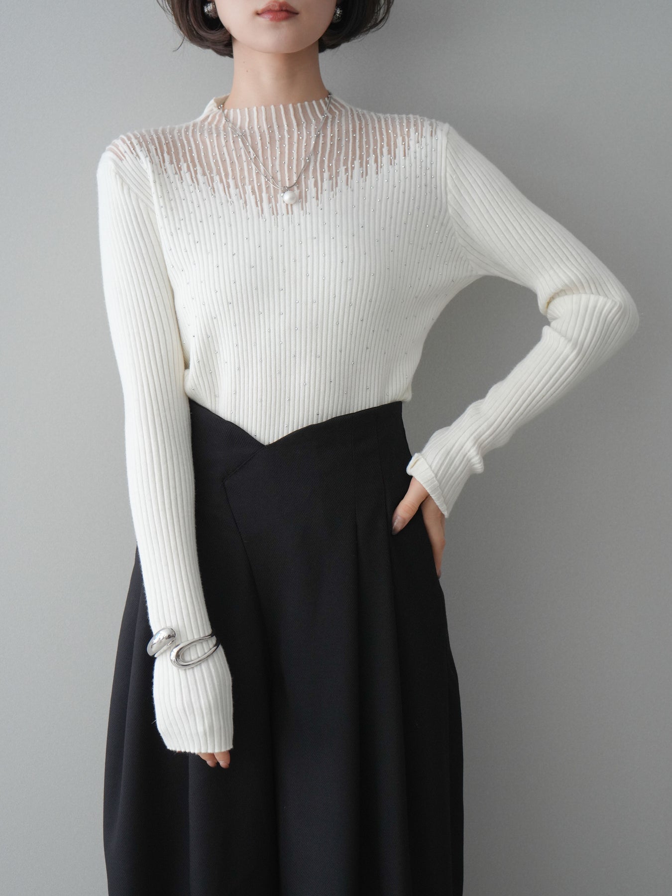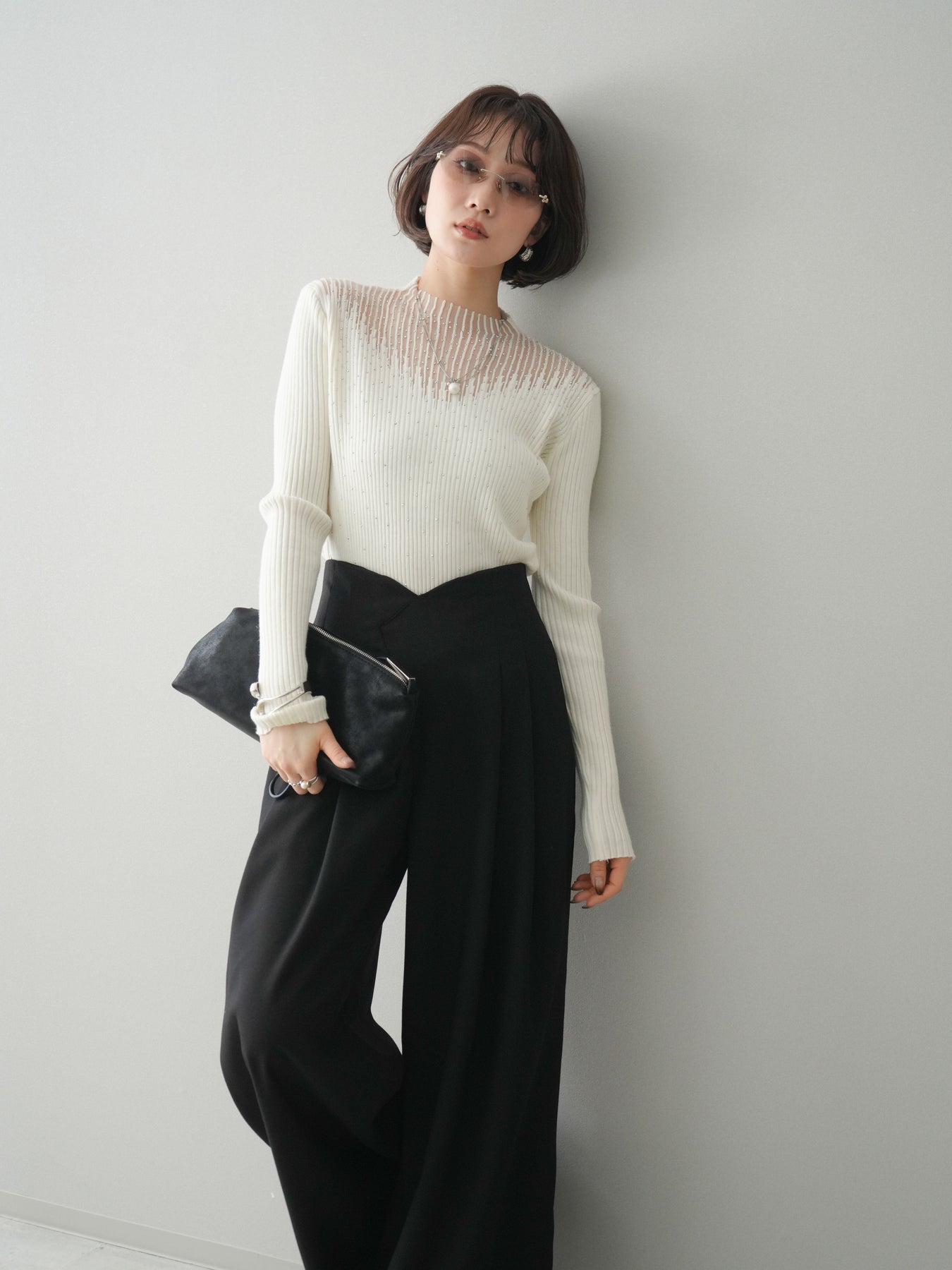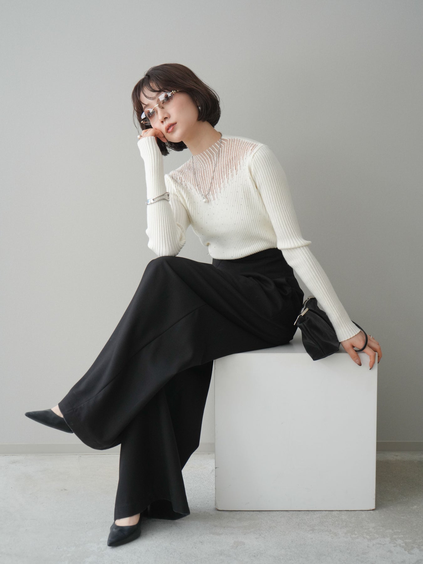 [予約]シアー切替スパンコールリブニットトップスに関連する商品を探す↓