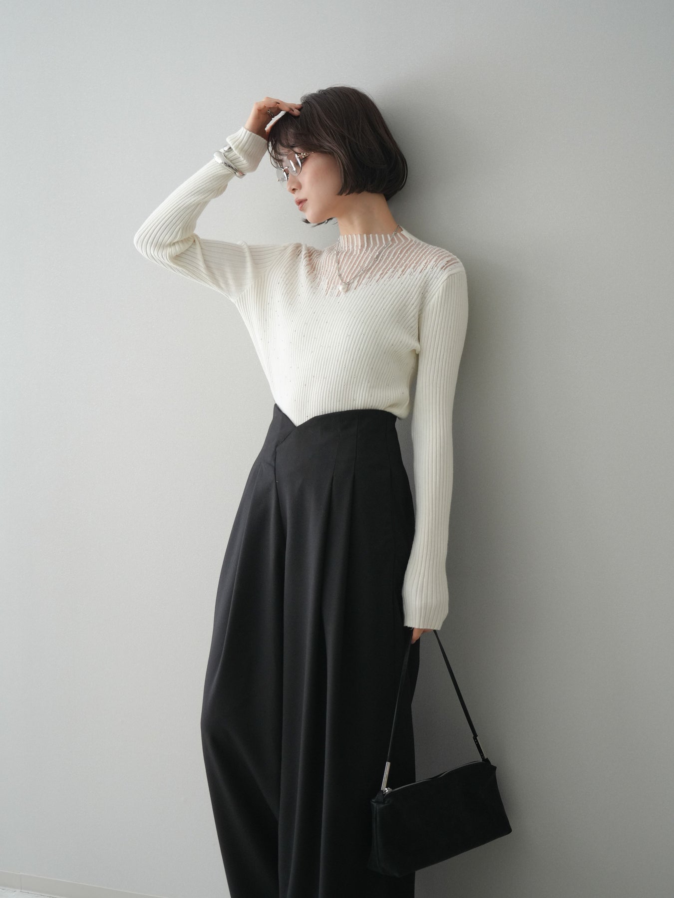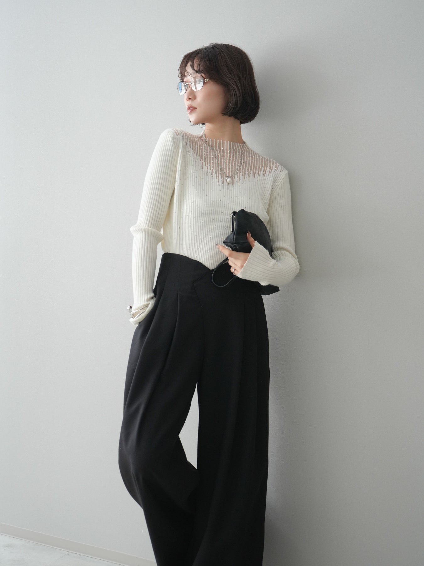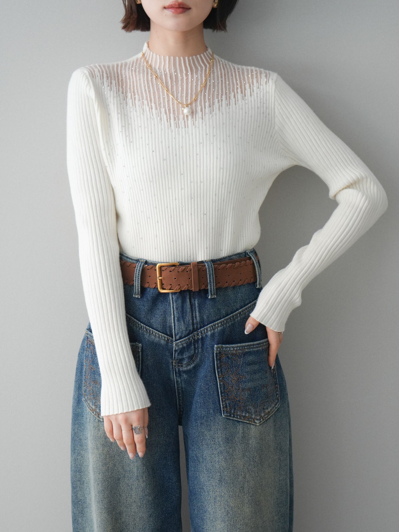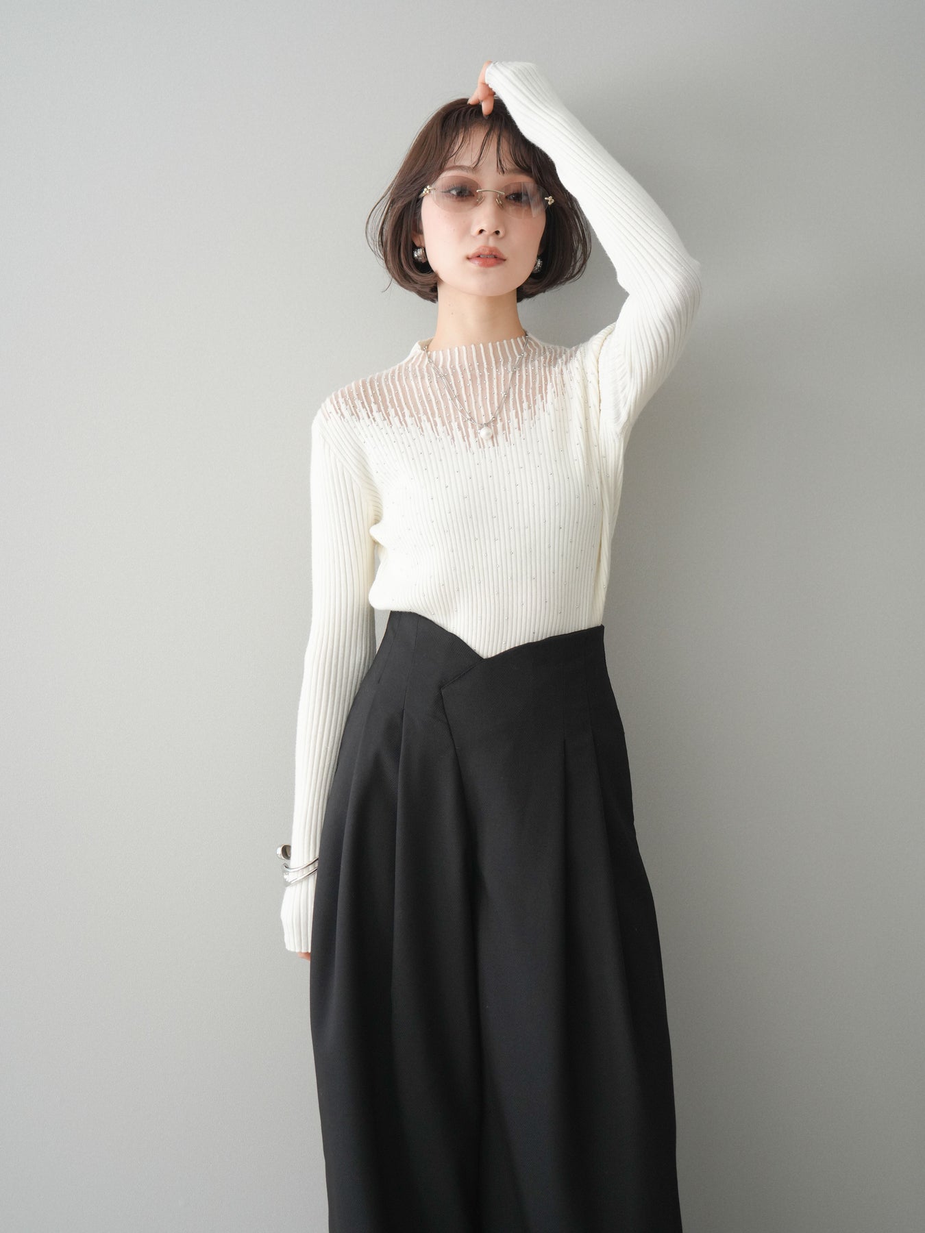 [予約]シアー切替スパンコールリブニットトップスに関連する商品を探す↓