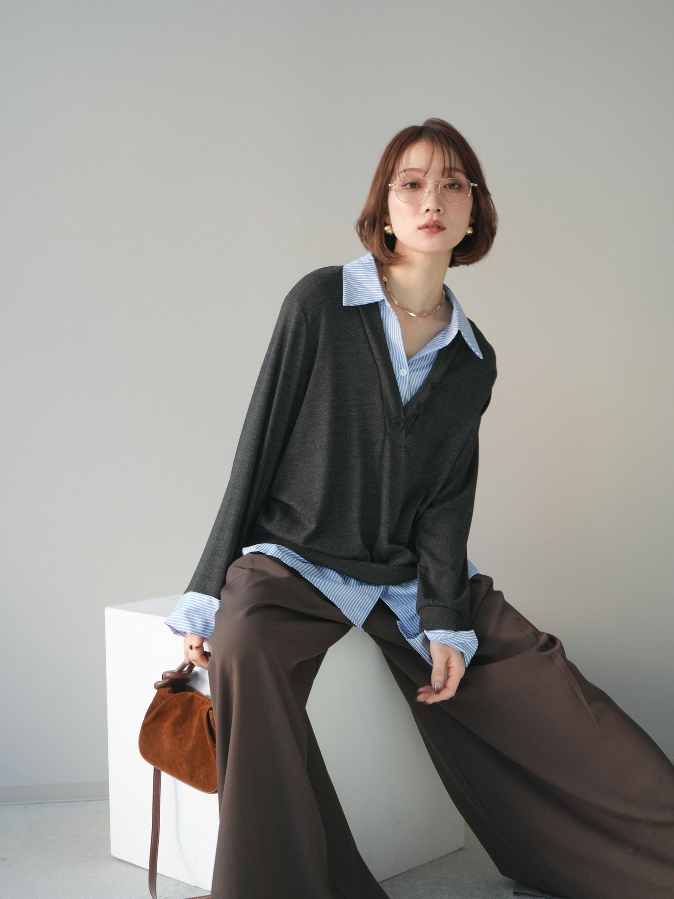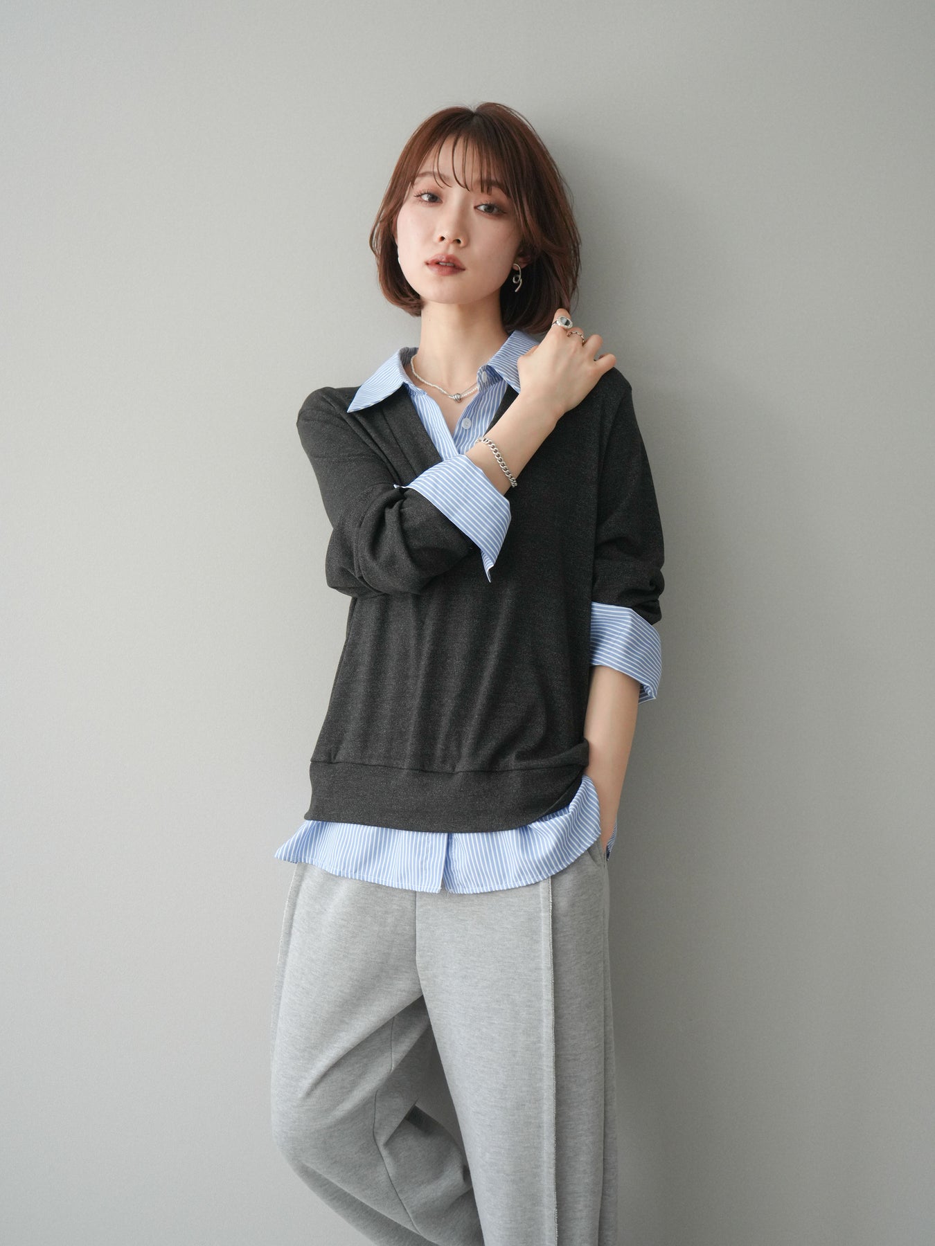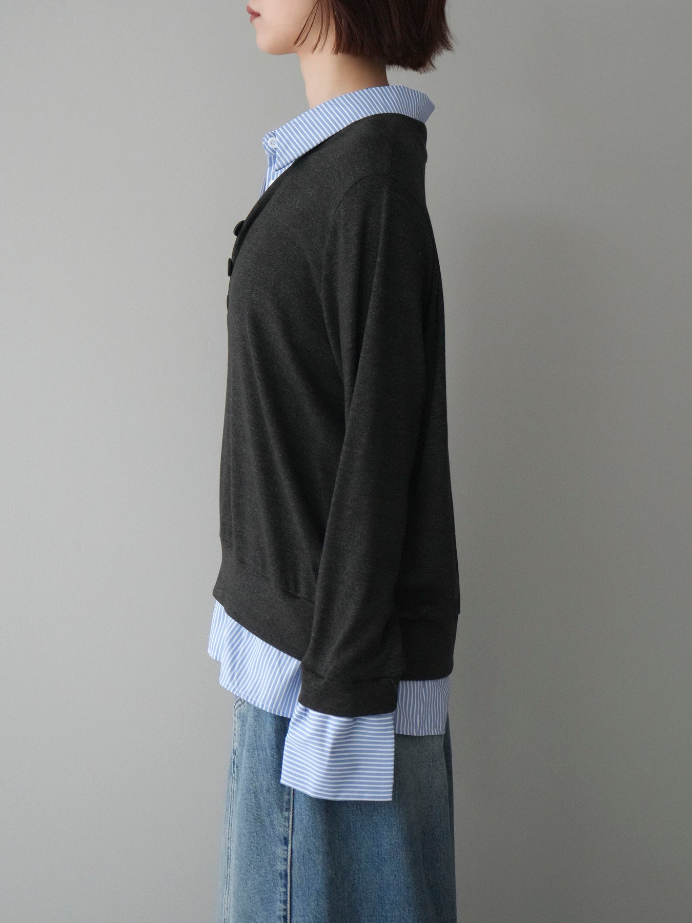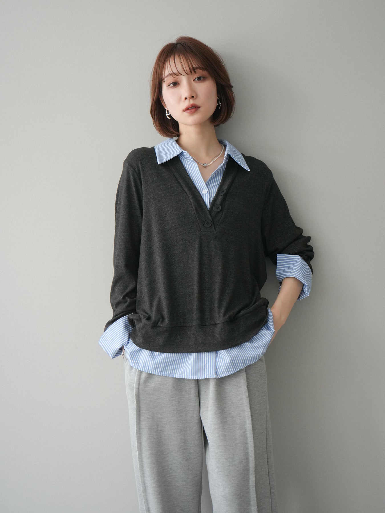 [予約]シャツレイヤードデザインカットプルオーバー/charcoal