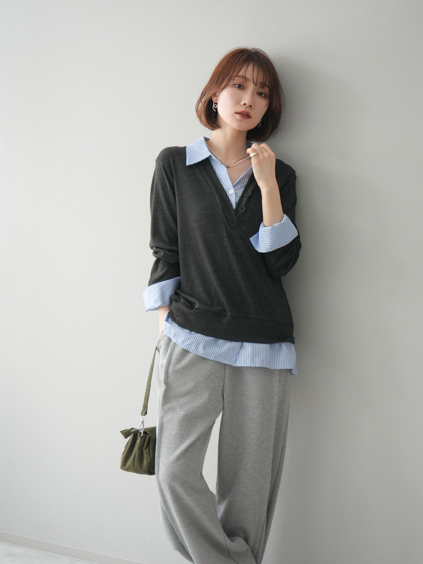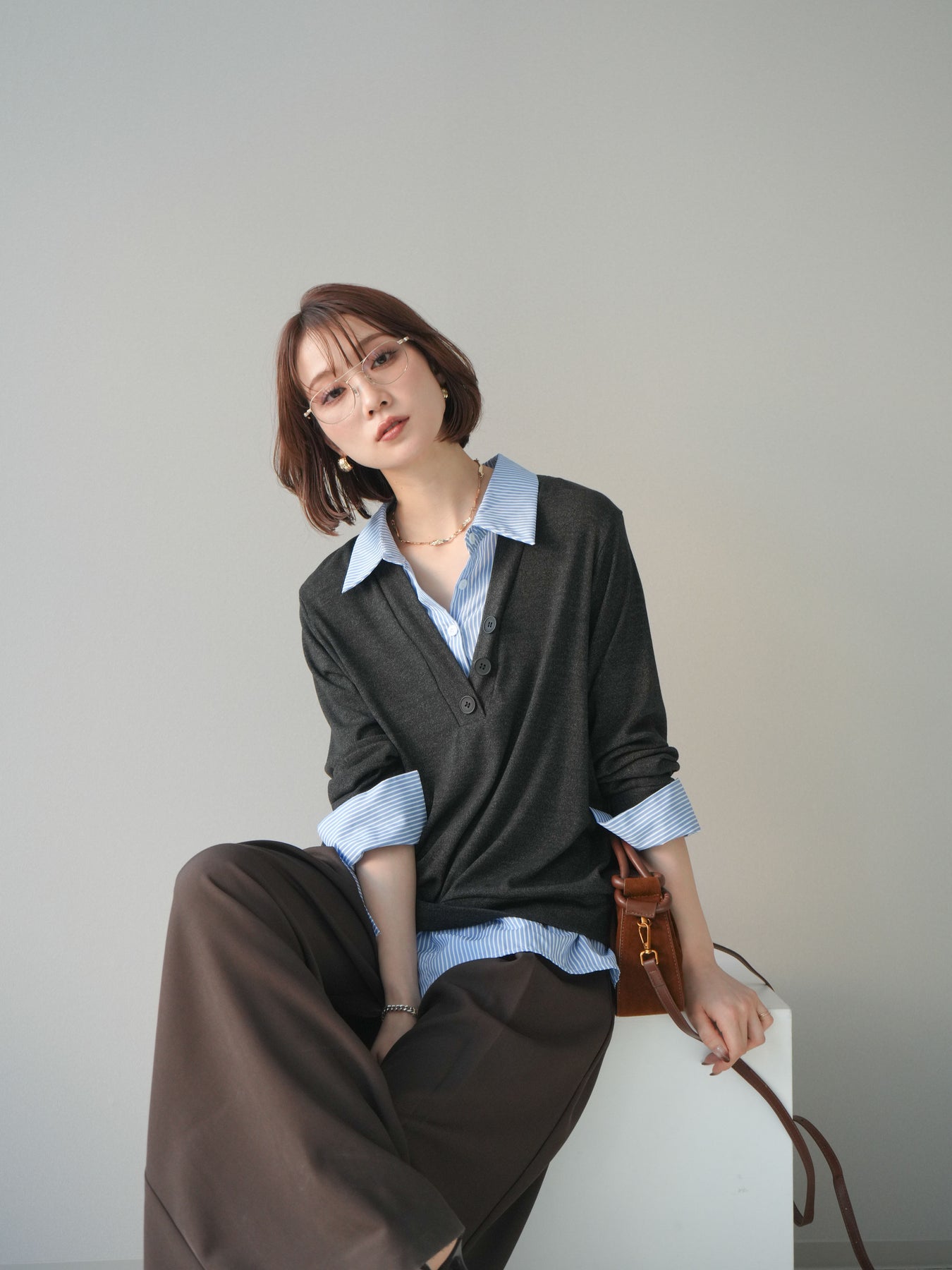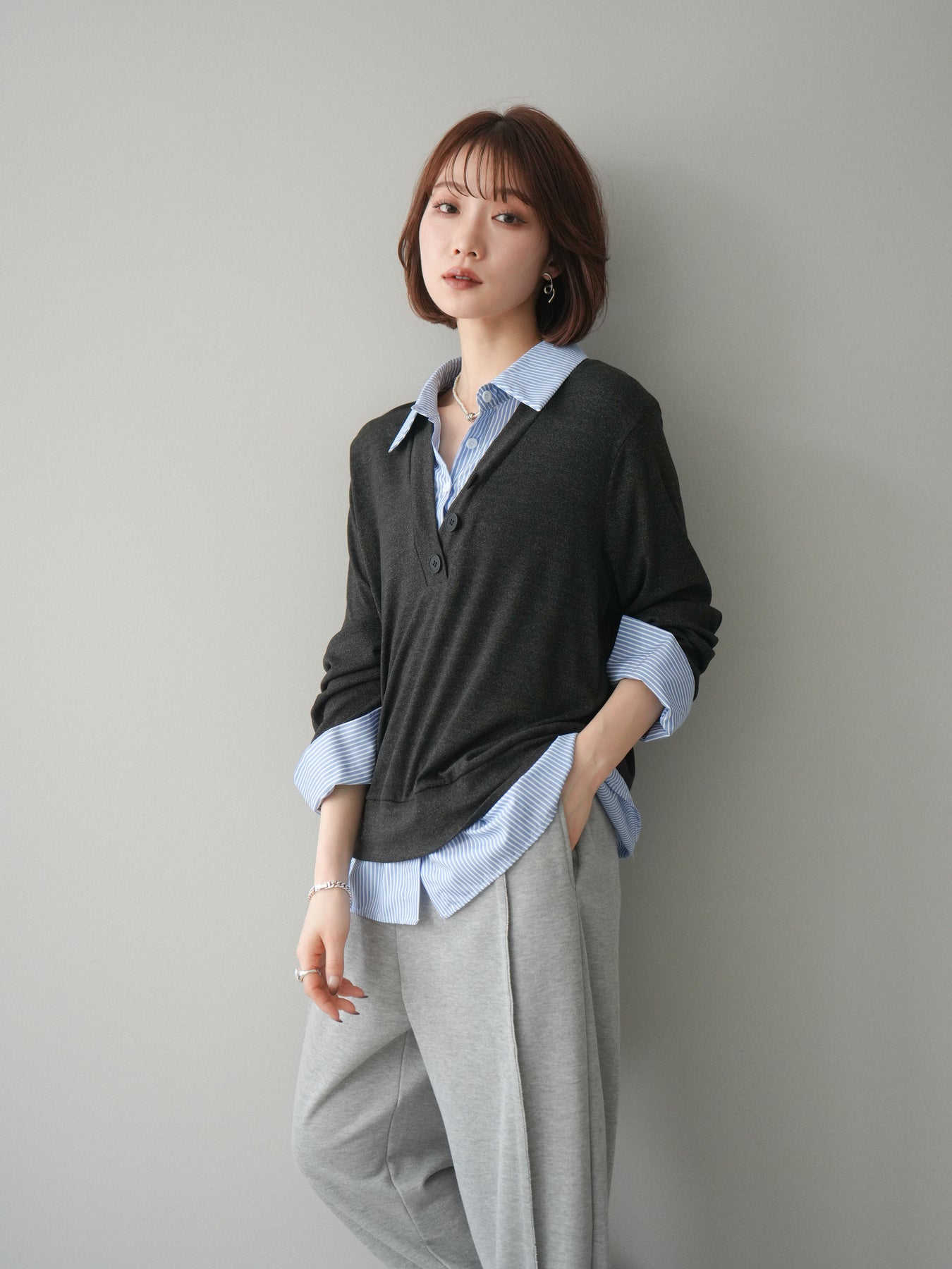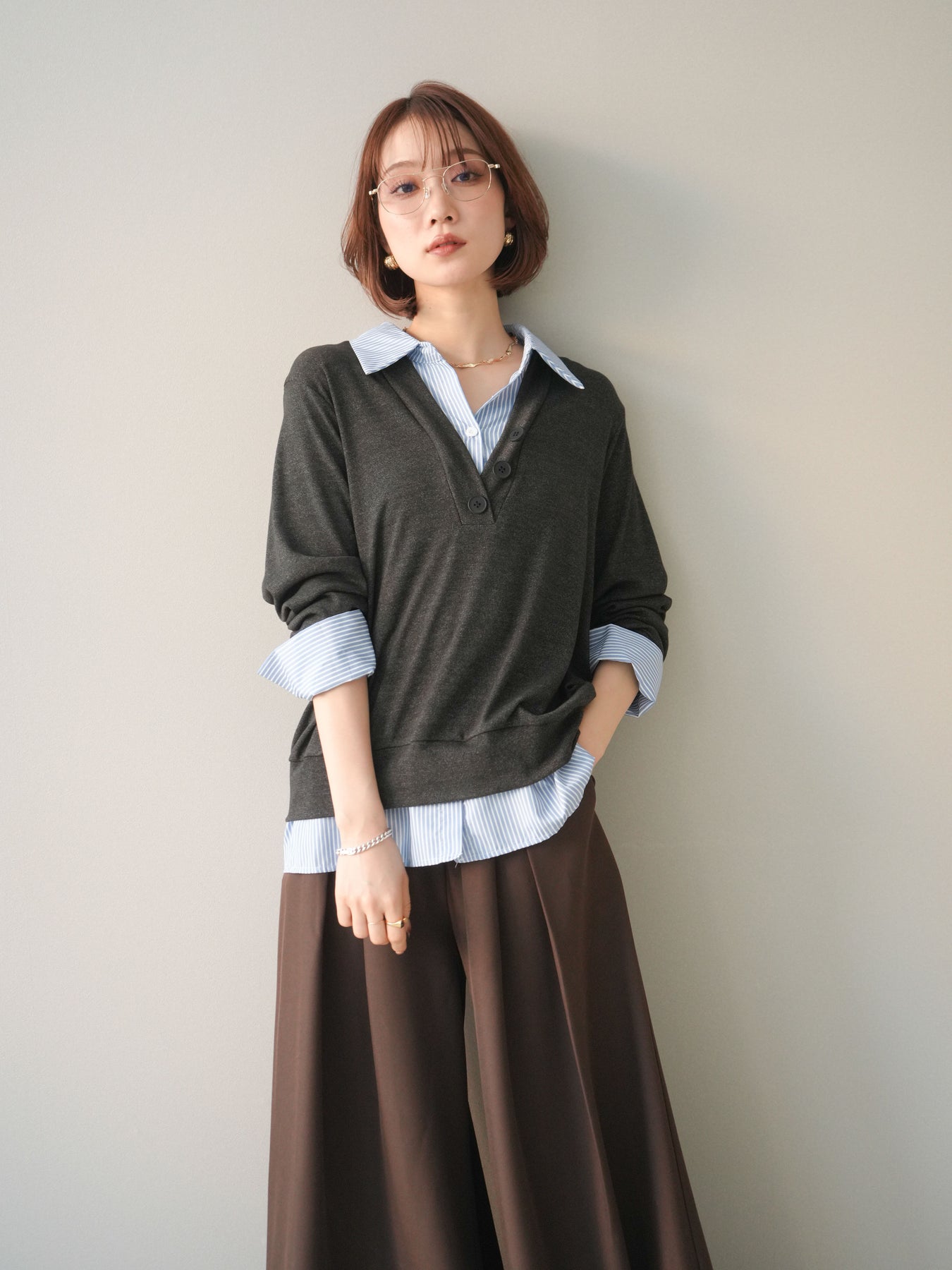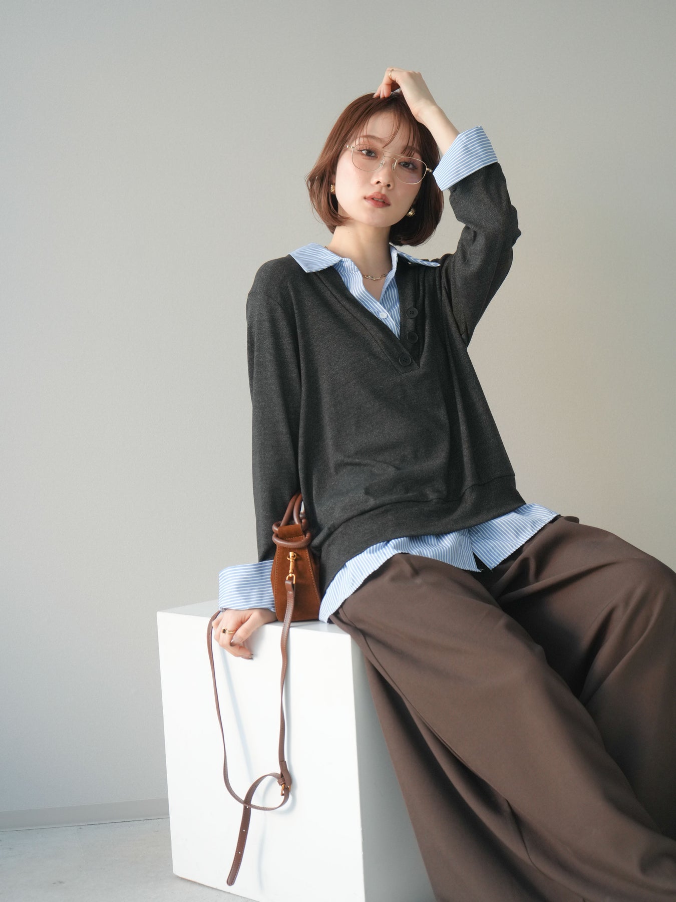 [予約]シャツレイヤードデザインカットプルオーバー/charcoal