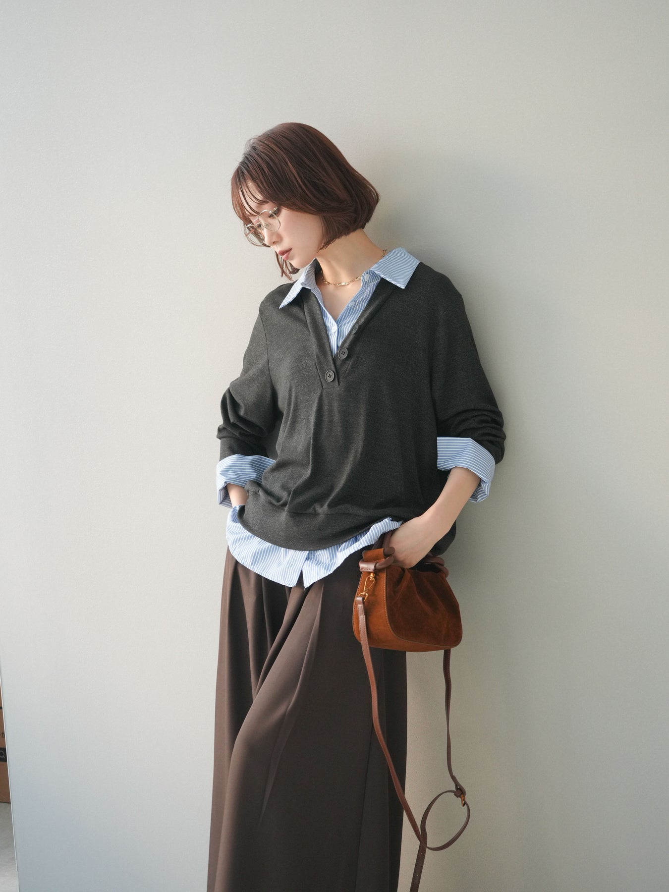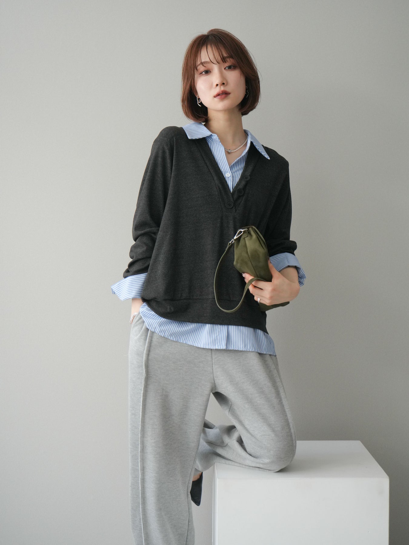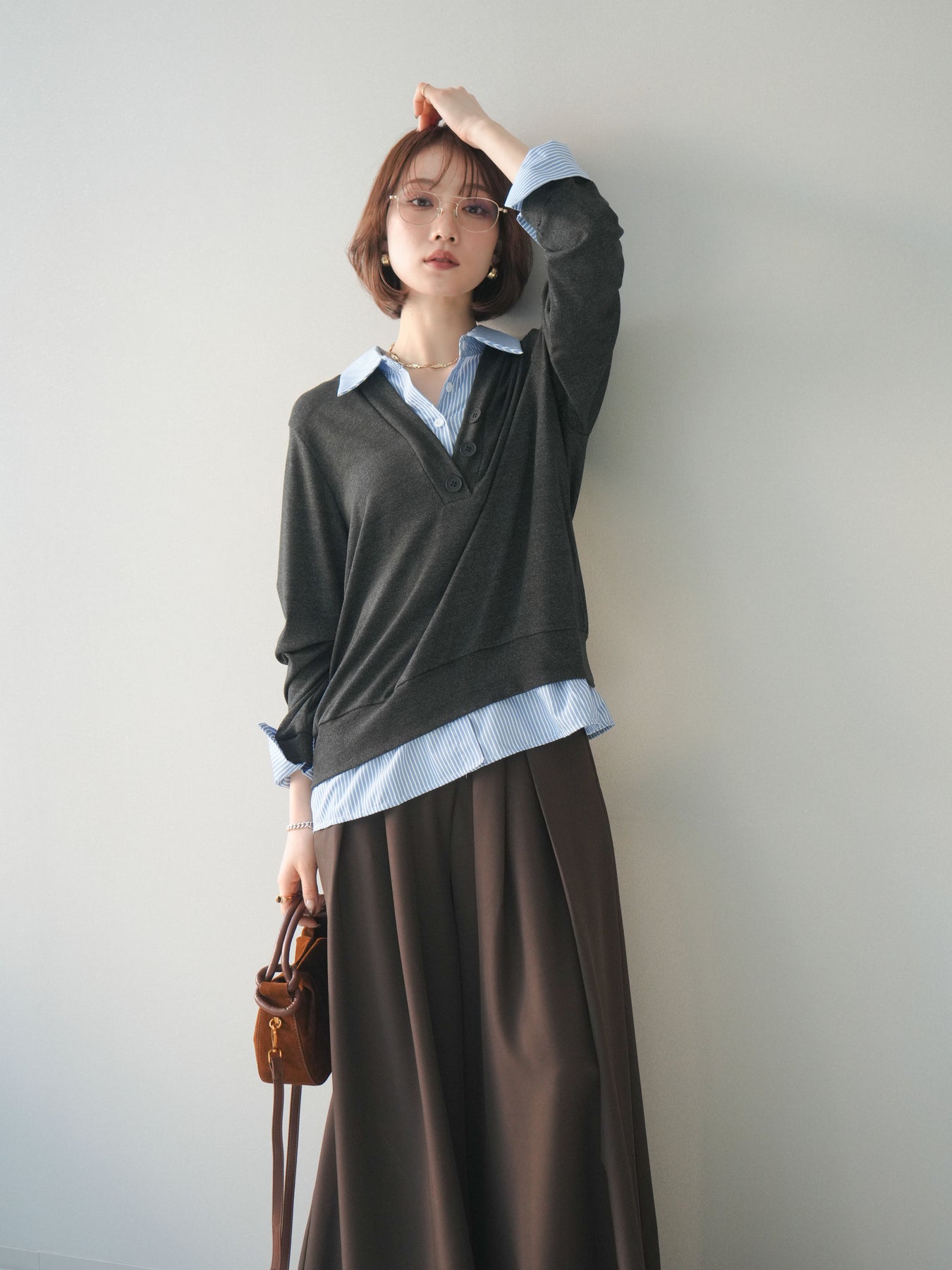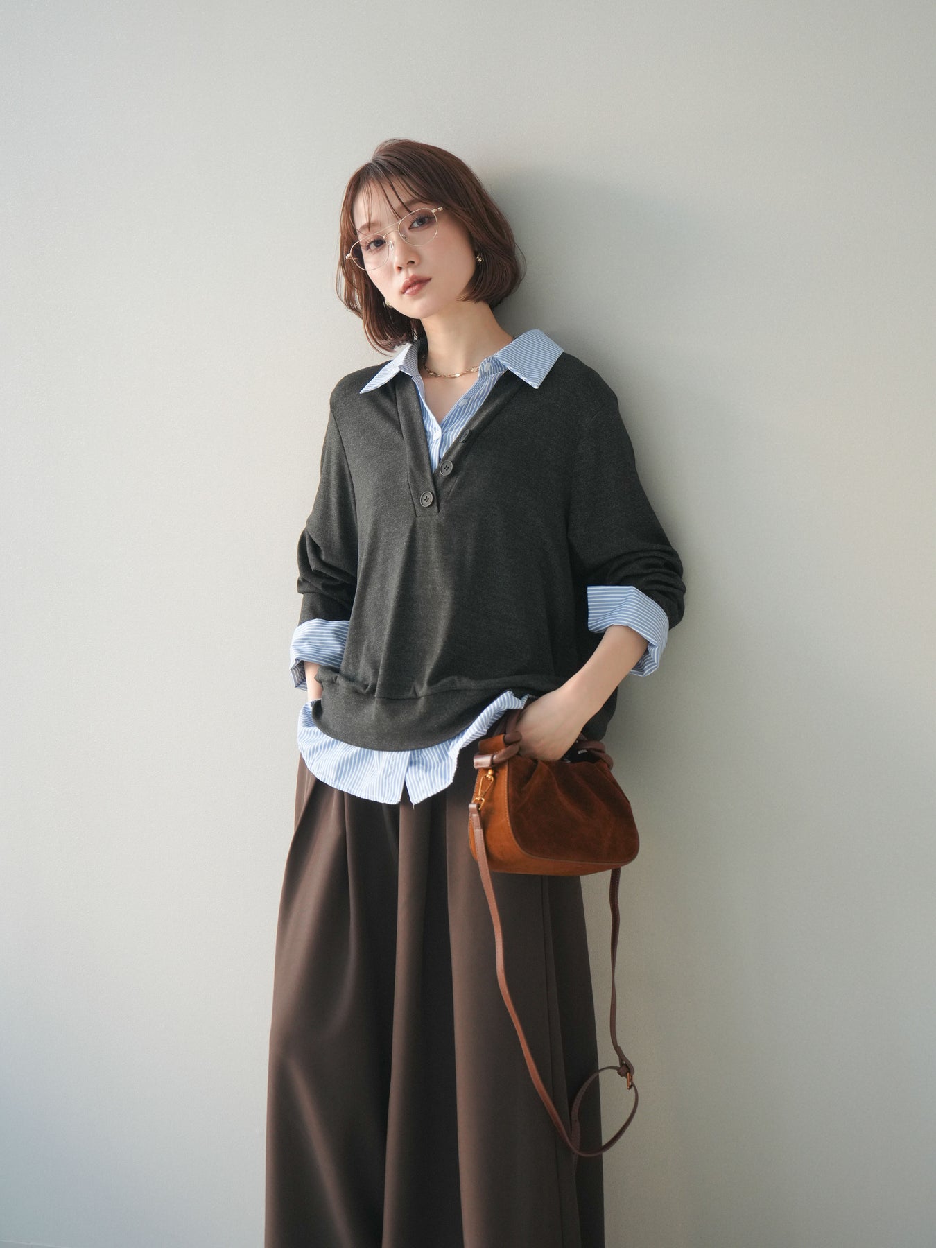 [予約]シャツレイヤードデザインカットプルオーバー/charcoal