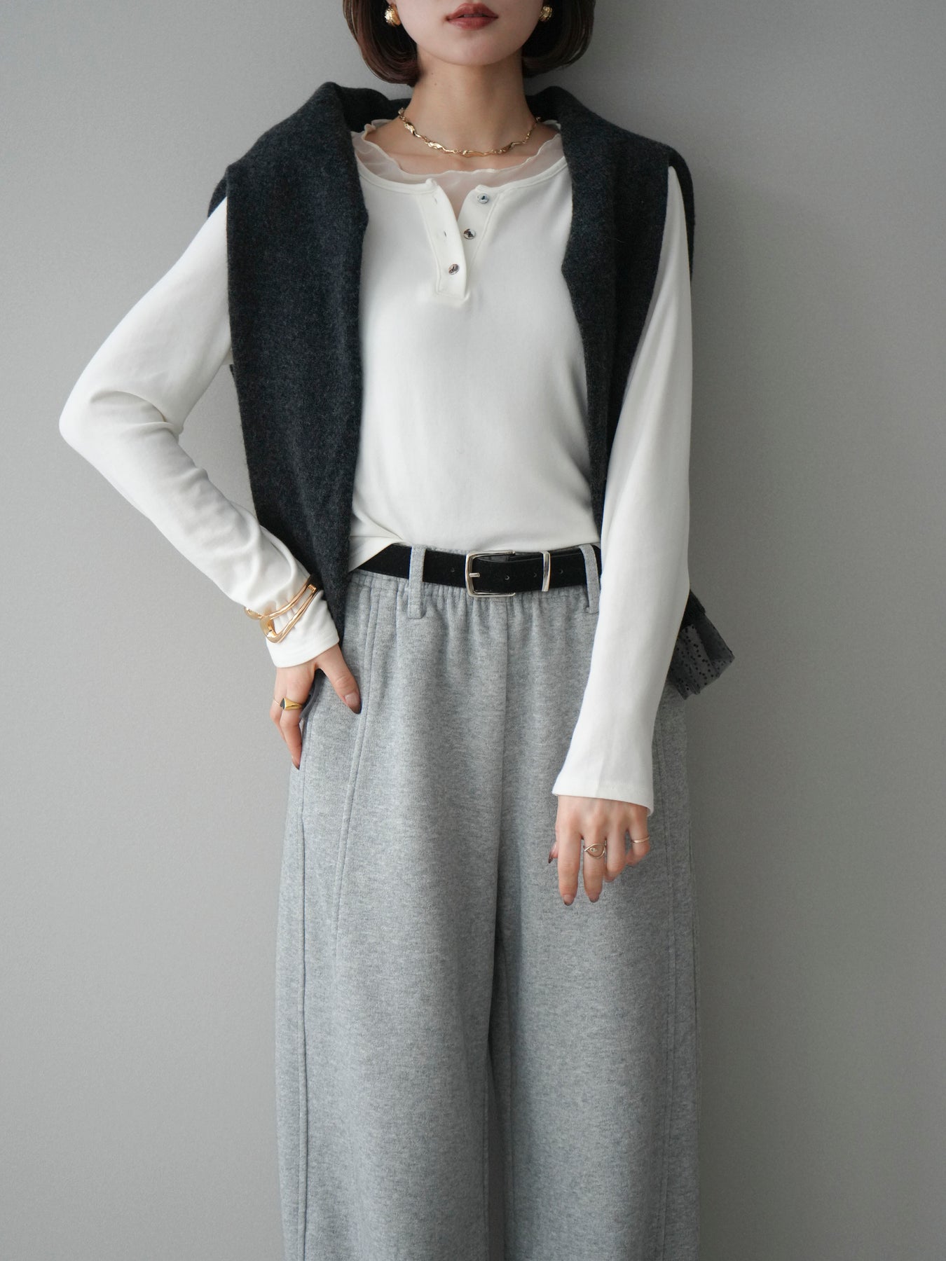 [予約]チュールレイヤードヘンリーネックカットソーに関連する商品を探す↓