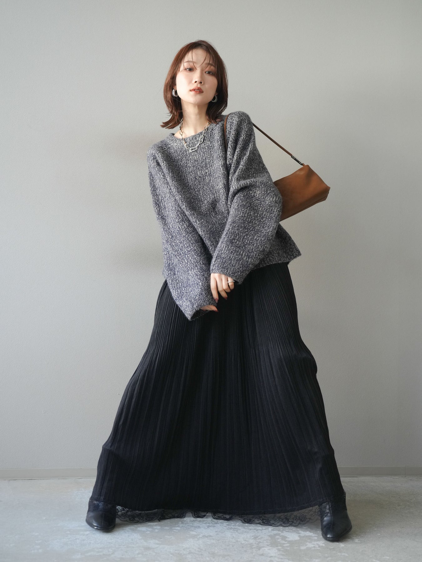 立体感のある畦編みが特徴的なミックスニットプルオーバー。 ふんわりとした柔らかさと程よい厚みで、暖かく包み込まれるような着心地です。 クルーネックのシンプルなデザインながら、編地の表情が奥行きを生み出し、スタイリングに上品な印象をプラス。 ゆったりとしたシルエットでリラックス感があり、カジュアルにもきれいめにも着回せます。 デニムやスラックスなど、合わせるボトムを選ばずデイリーに活躍する万能アイテムです。 ※ボトムス、キャミソール(インナー)以外の商品は一律でインナーは付属していません。
