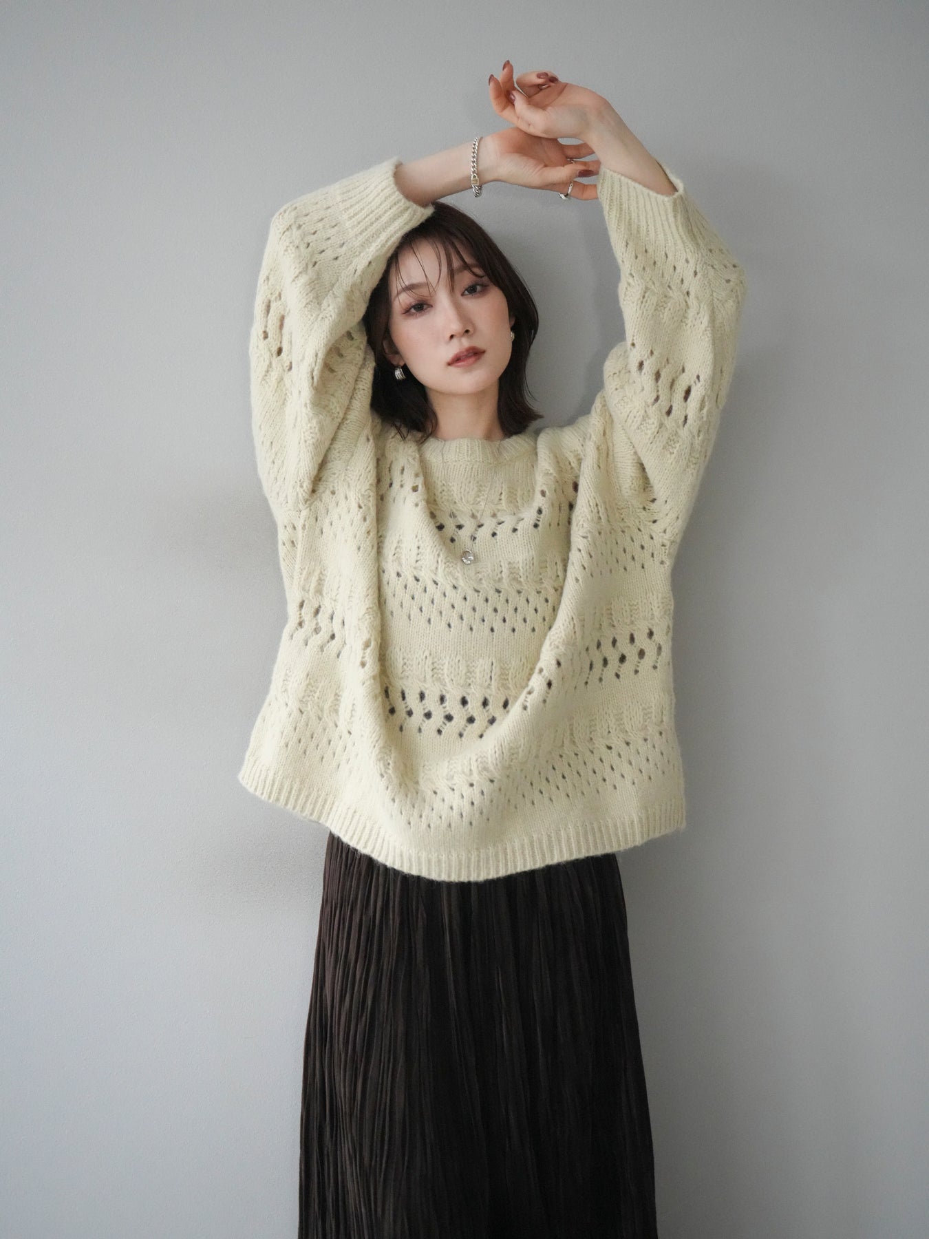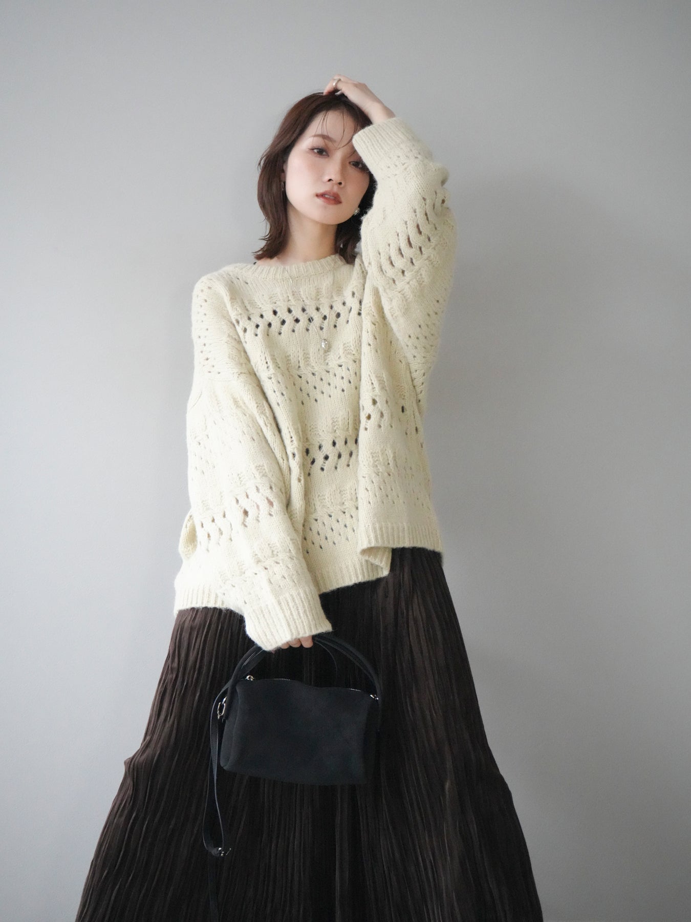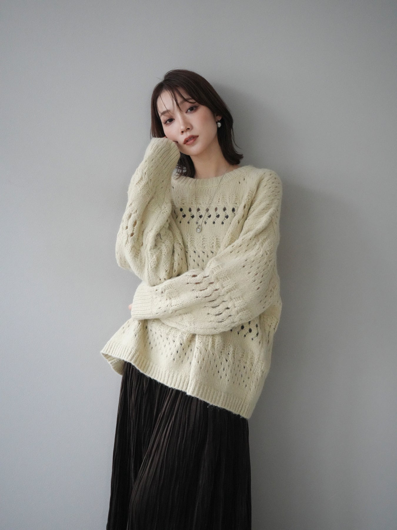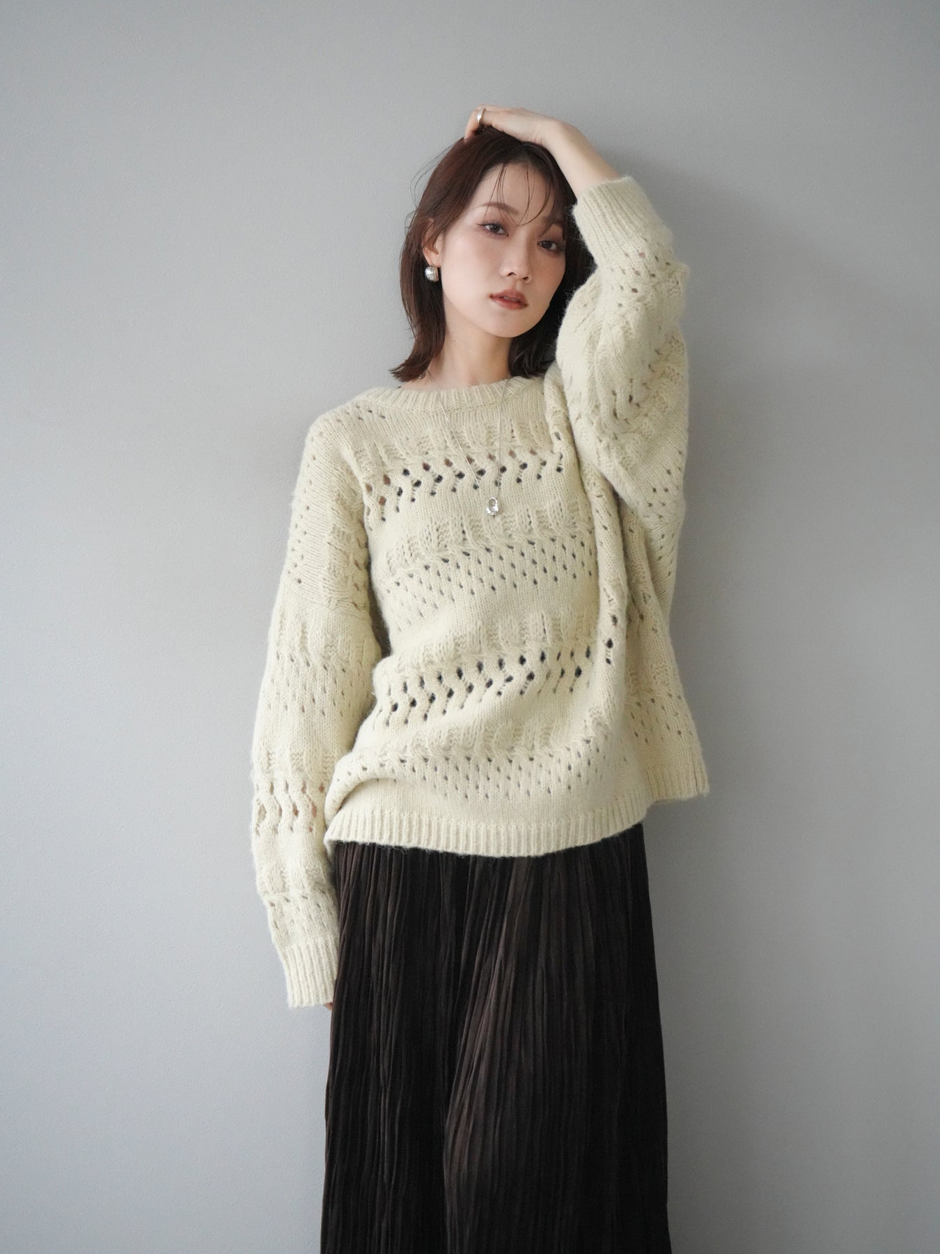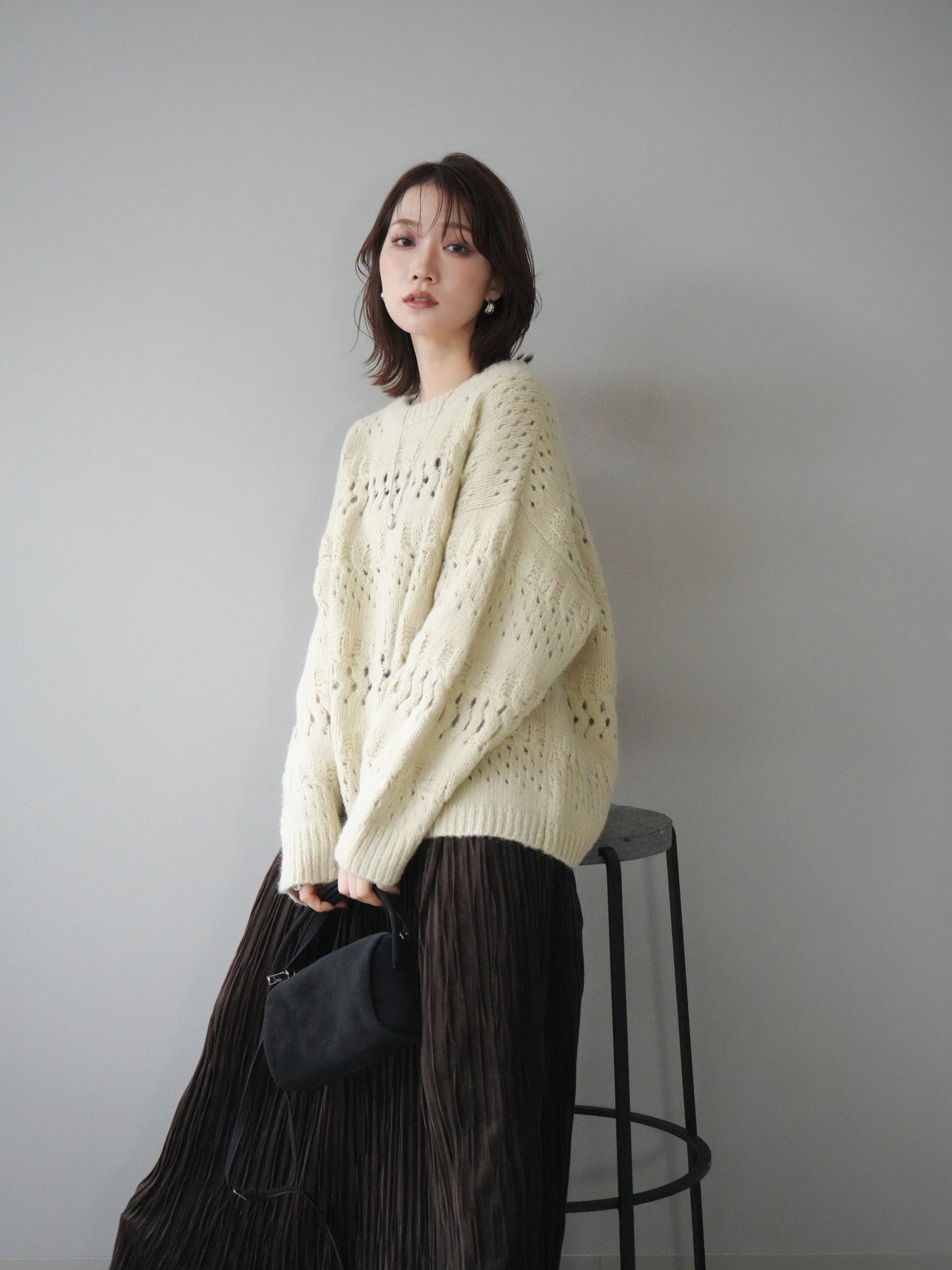 [予約]透かし編みクルーネックニットプルオーバーに関連する商品を探す↓