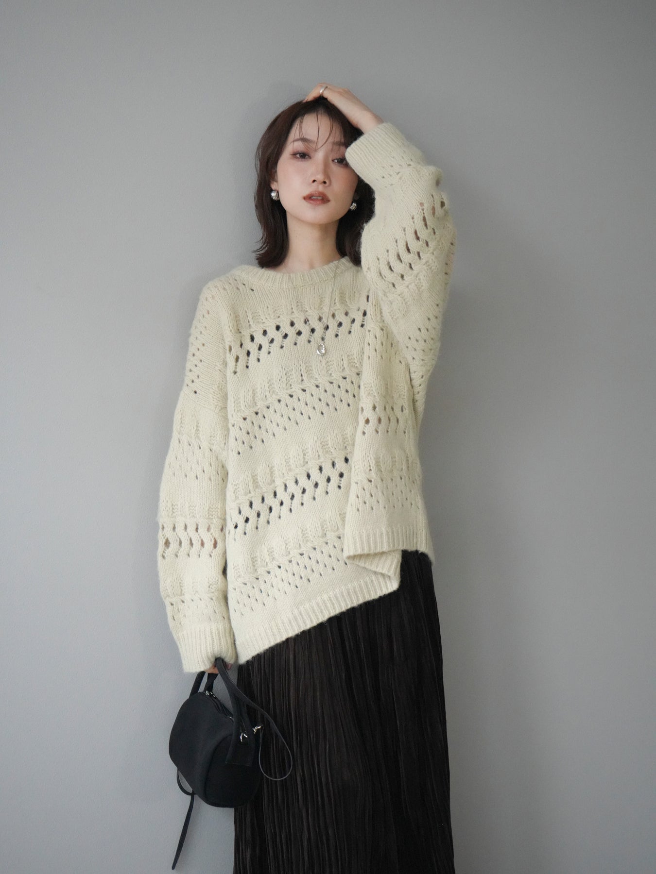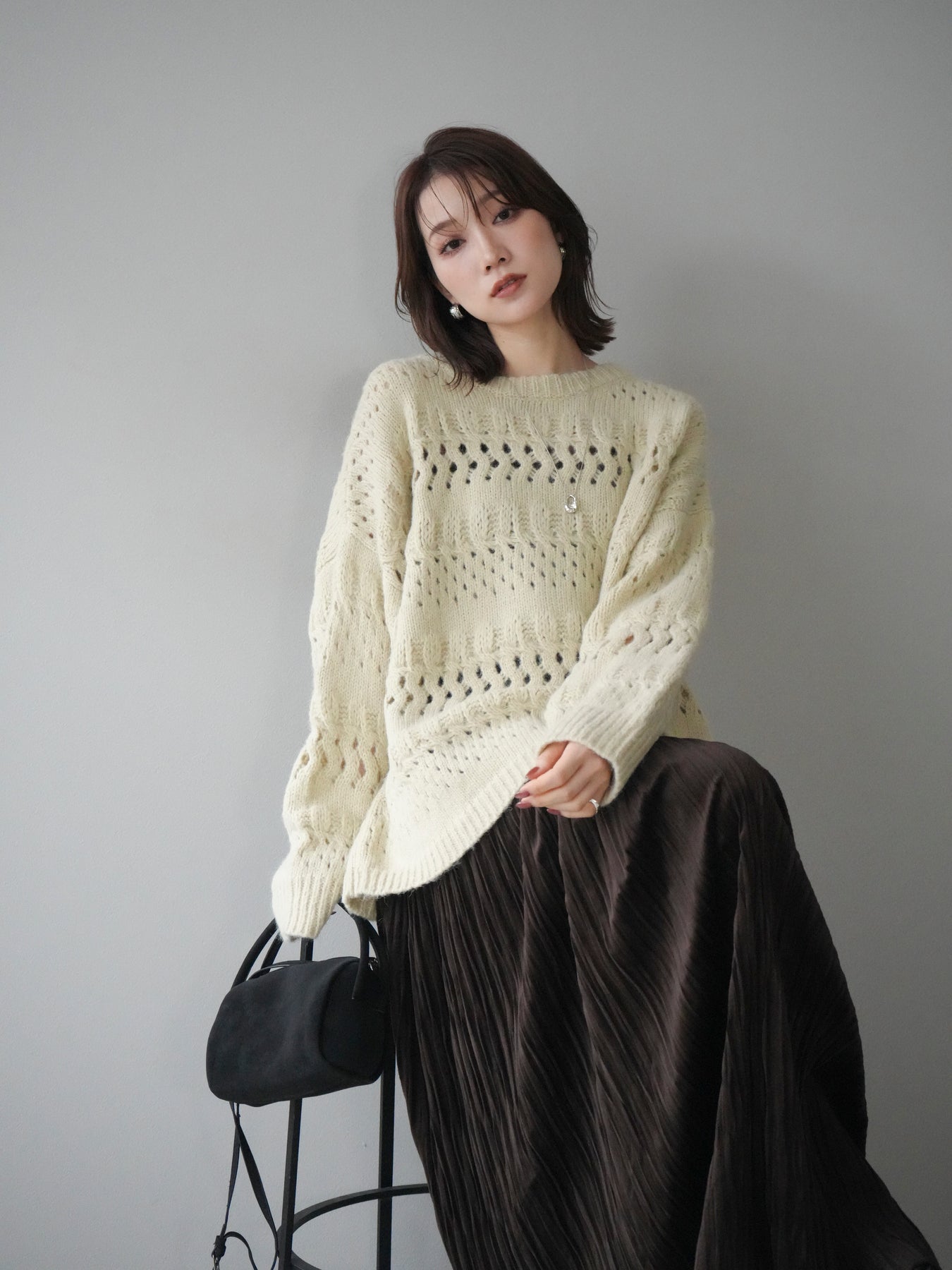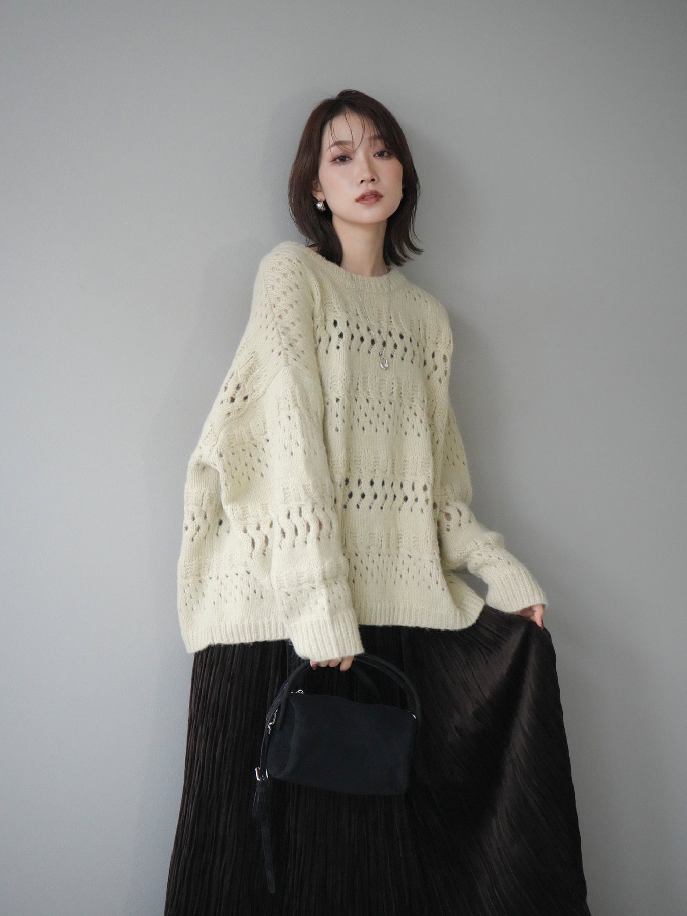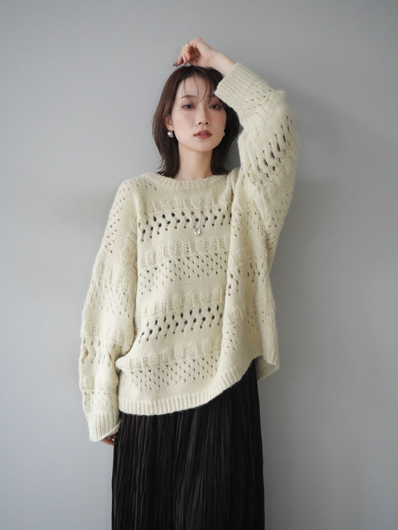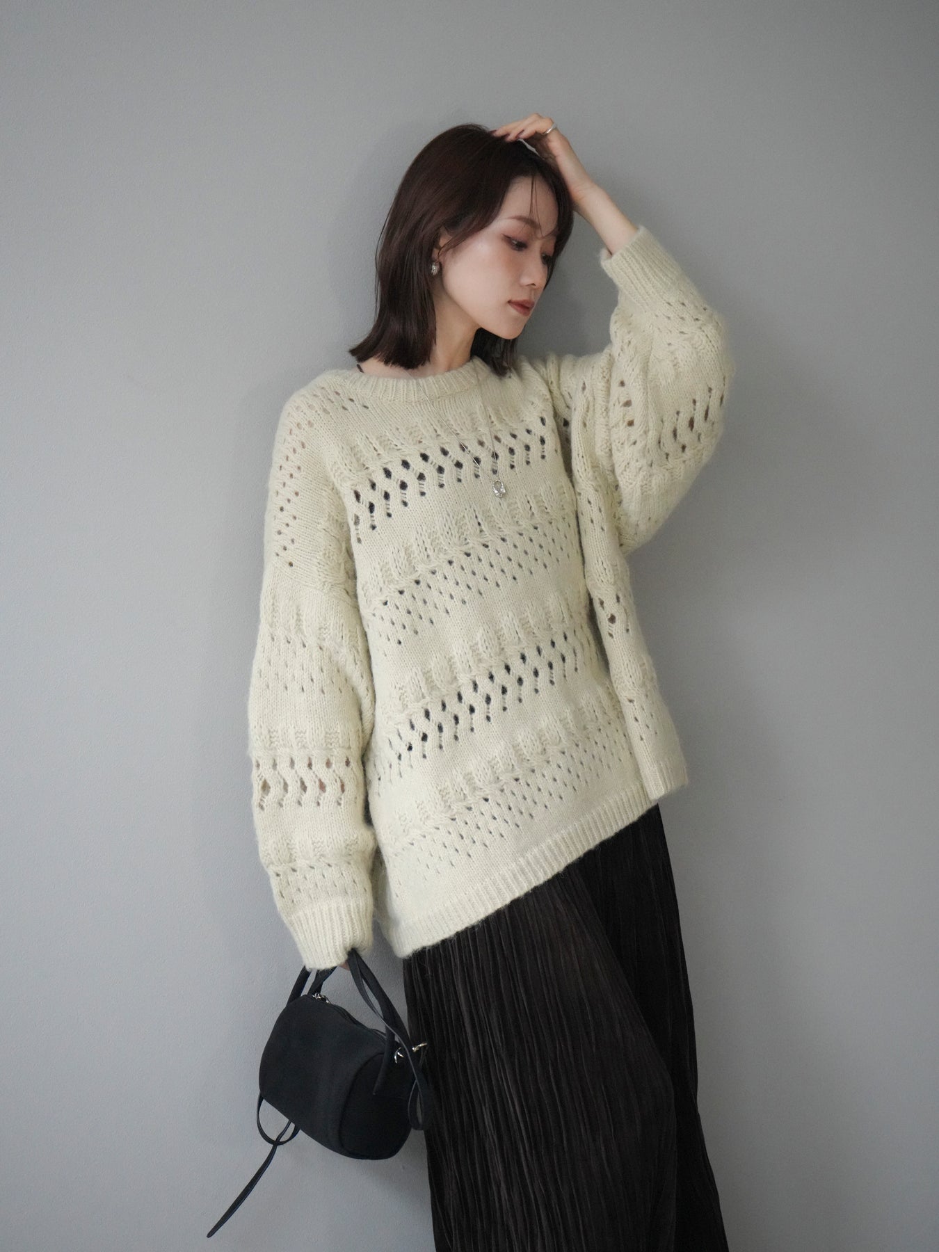 [予約]透かし編みクルーネックニットプルオーバーに関連する商品を探す↓