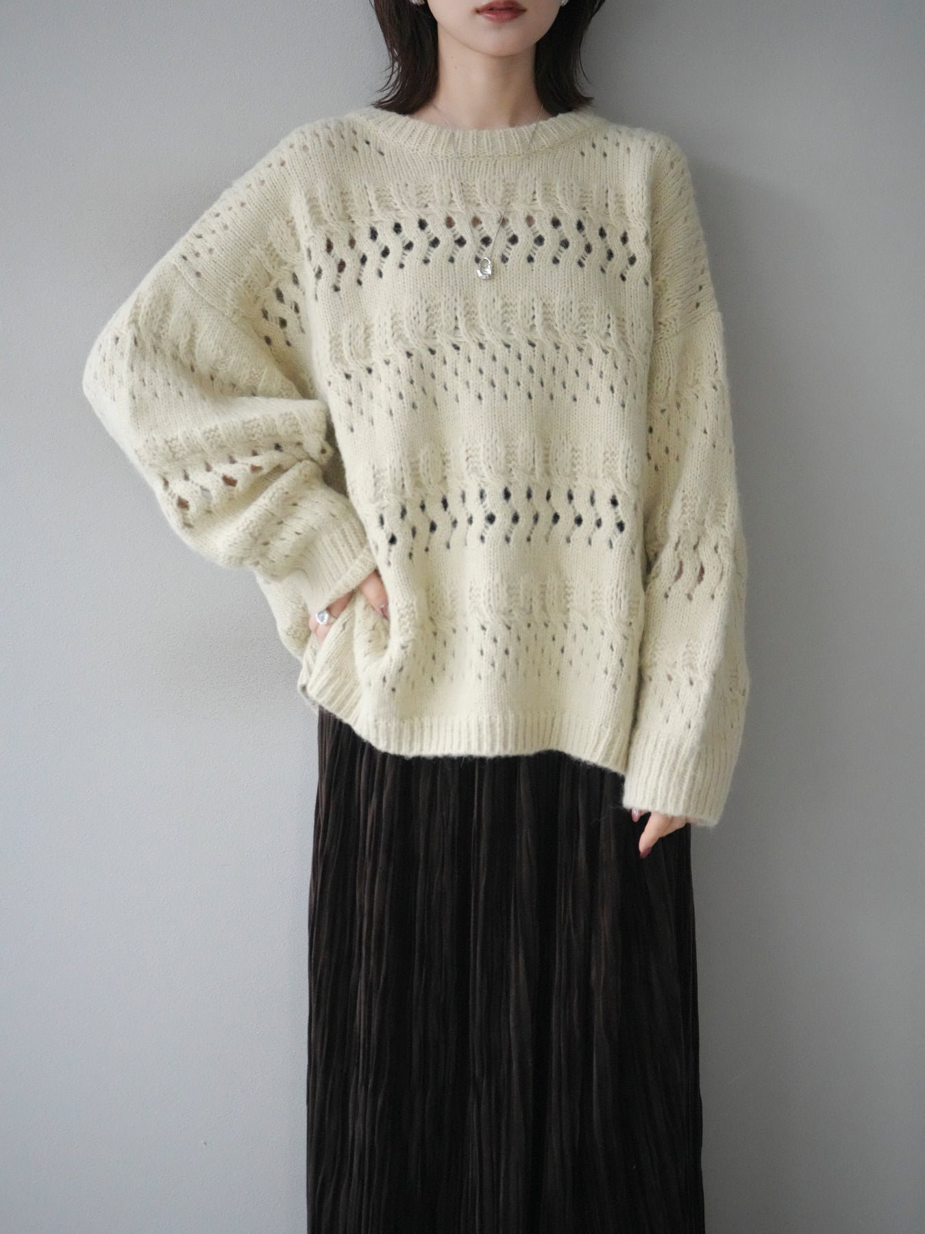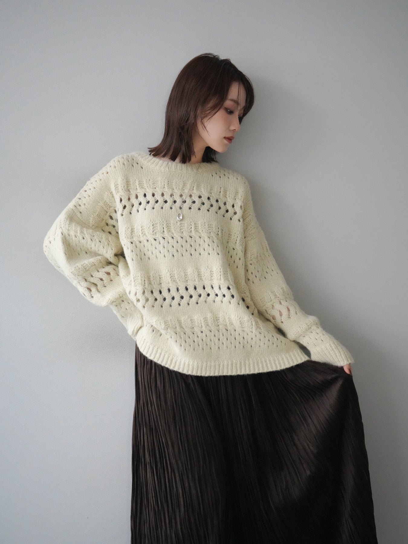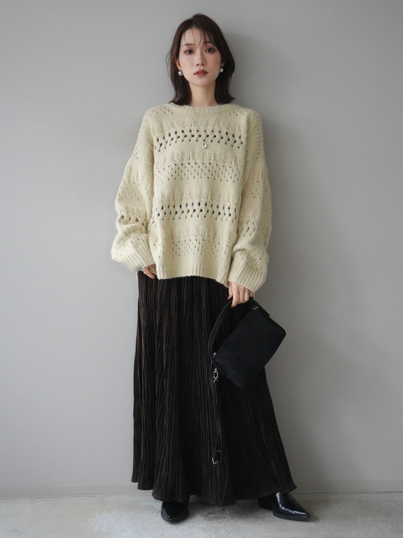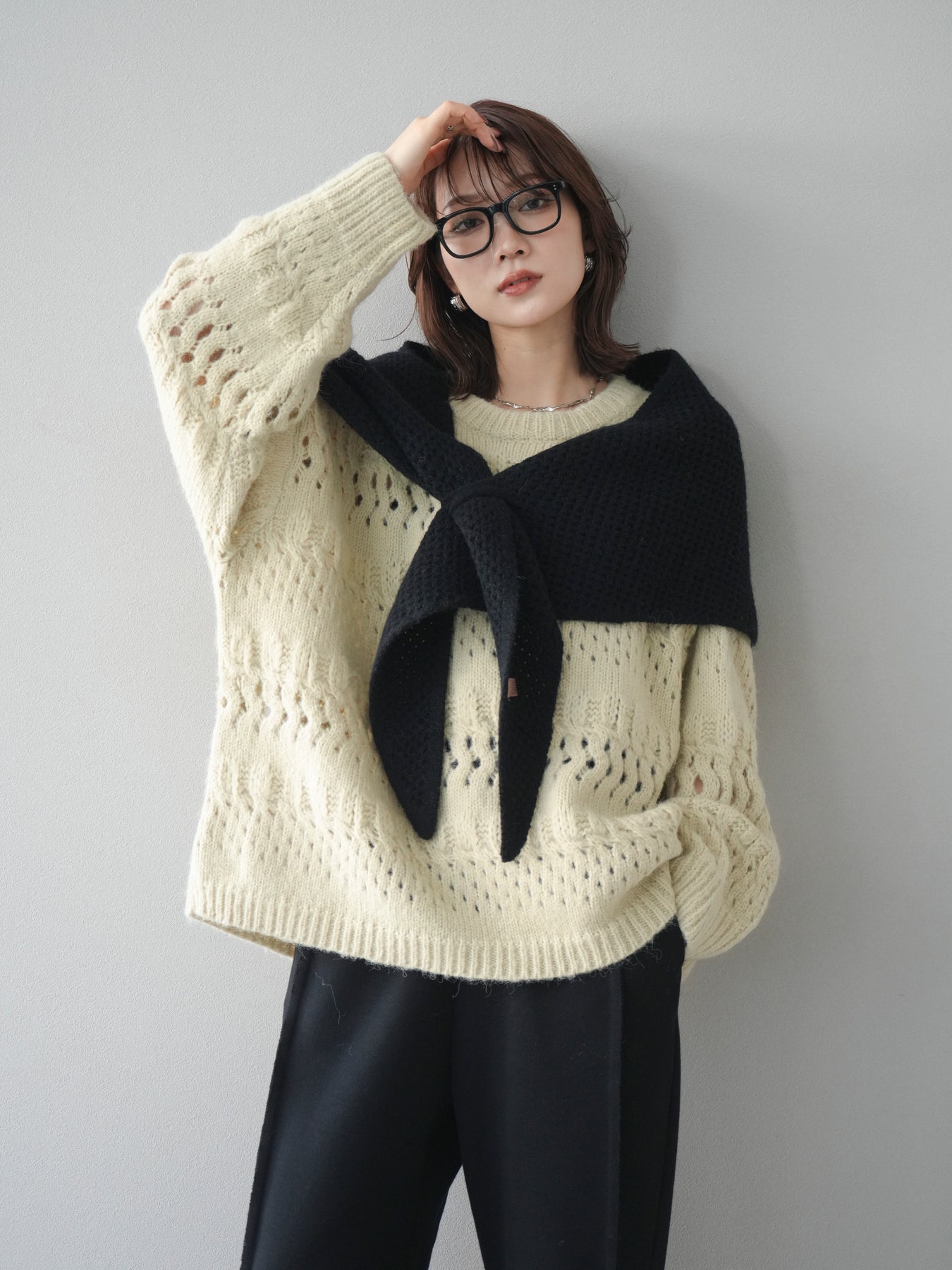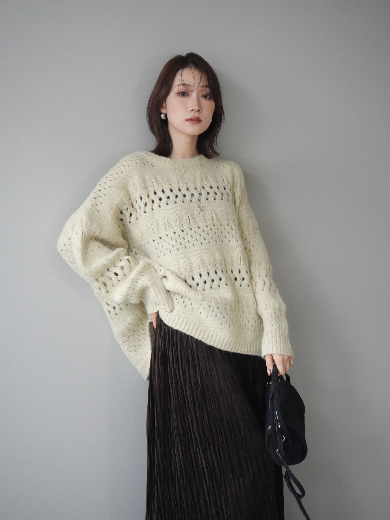 [予約]透かし編みクルーネックニットプルオーバーに関連する商品を探す↓