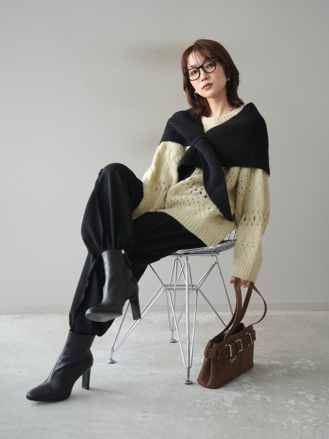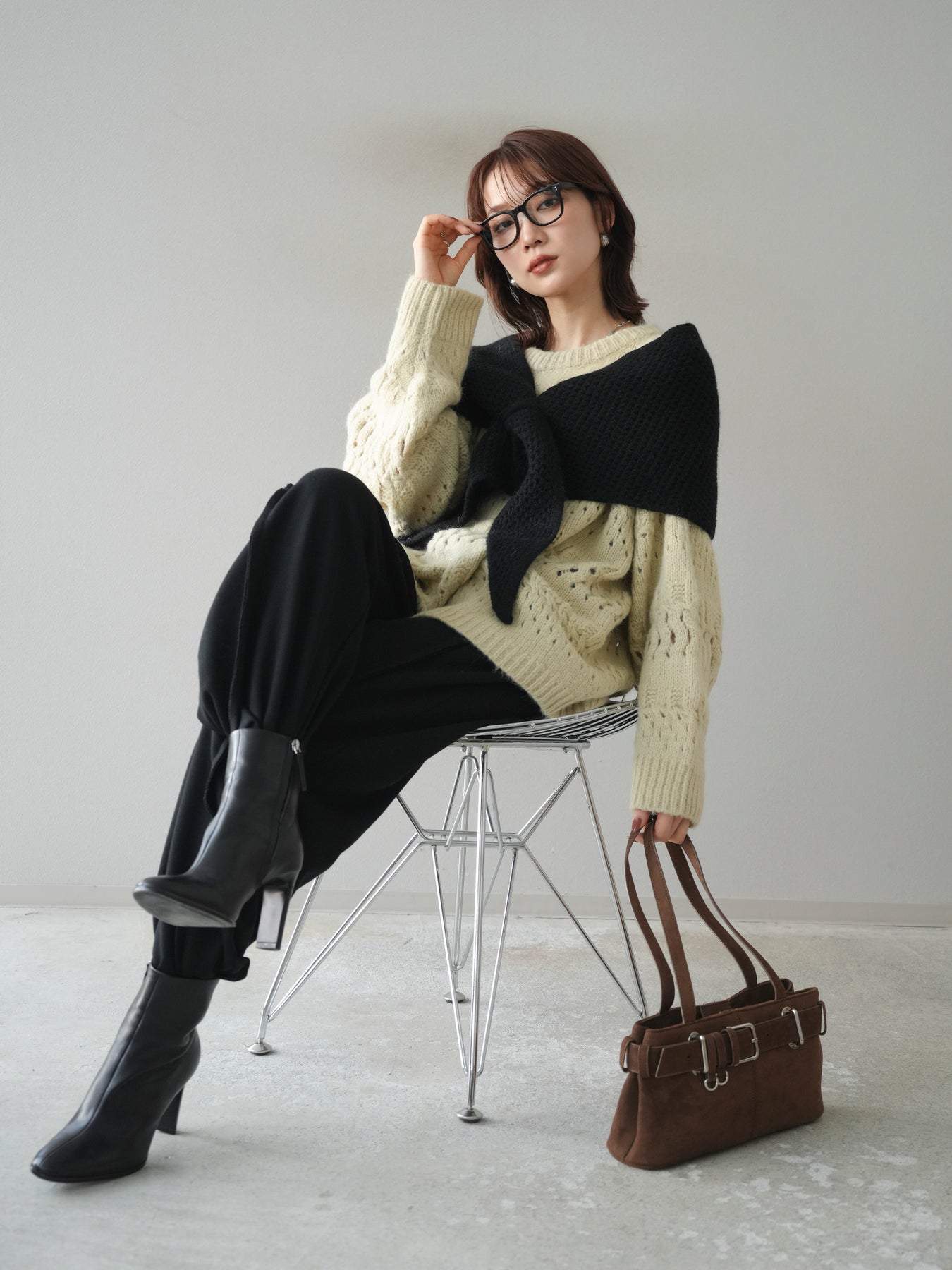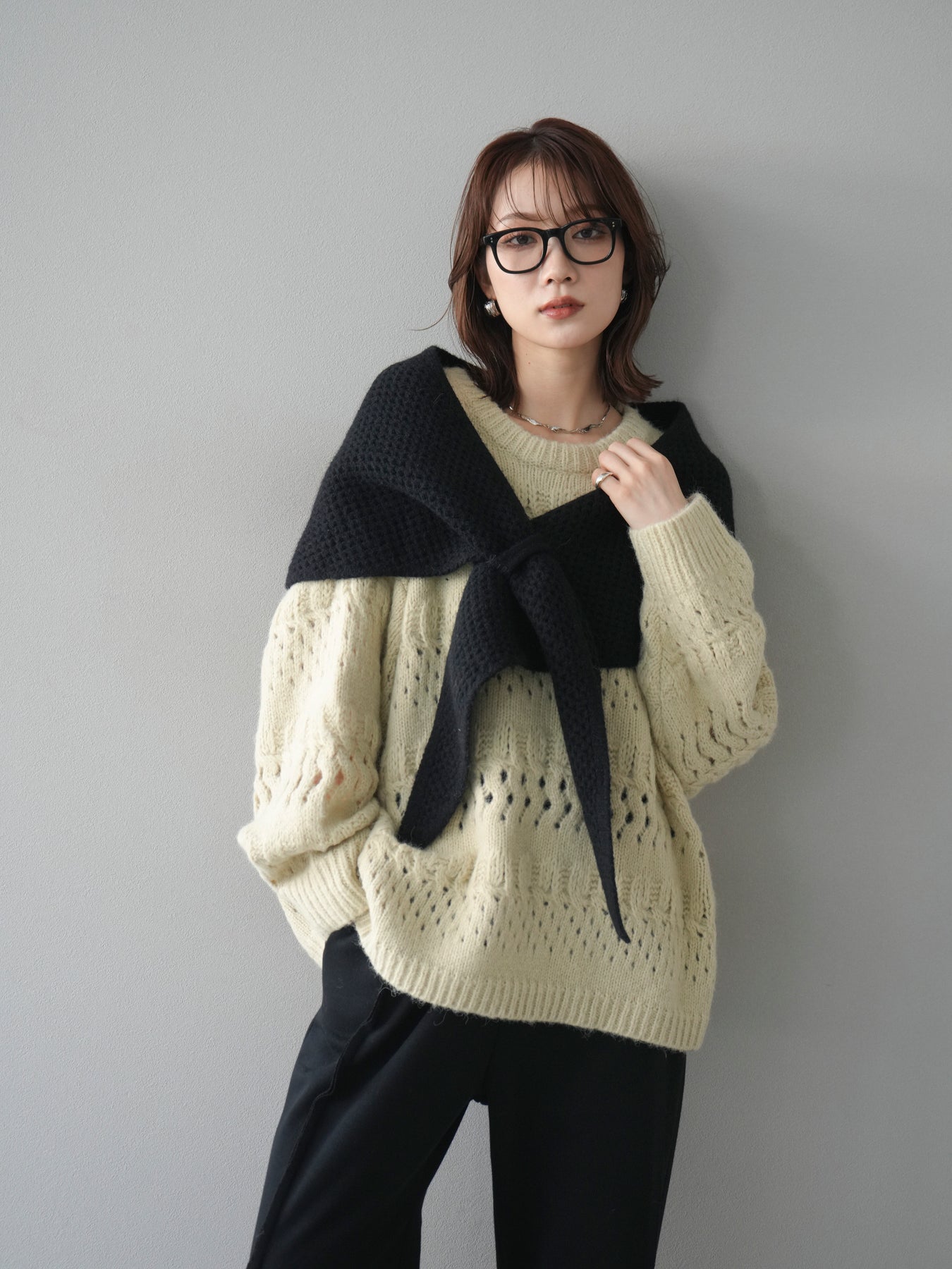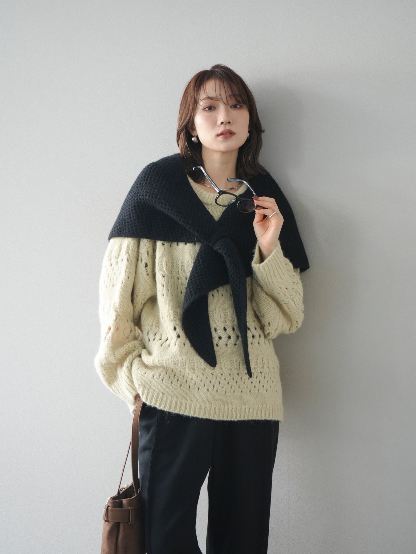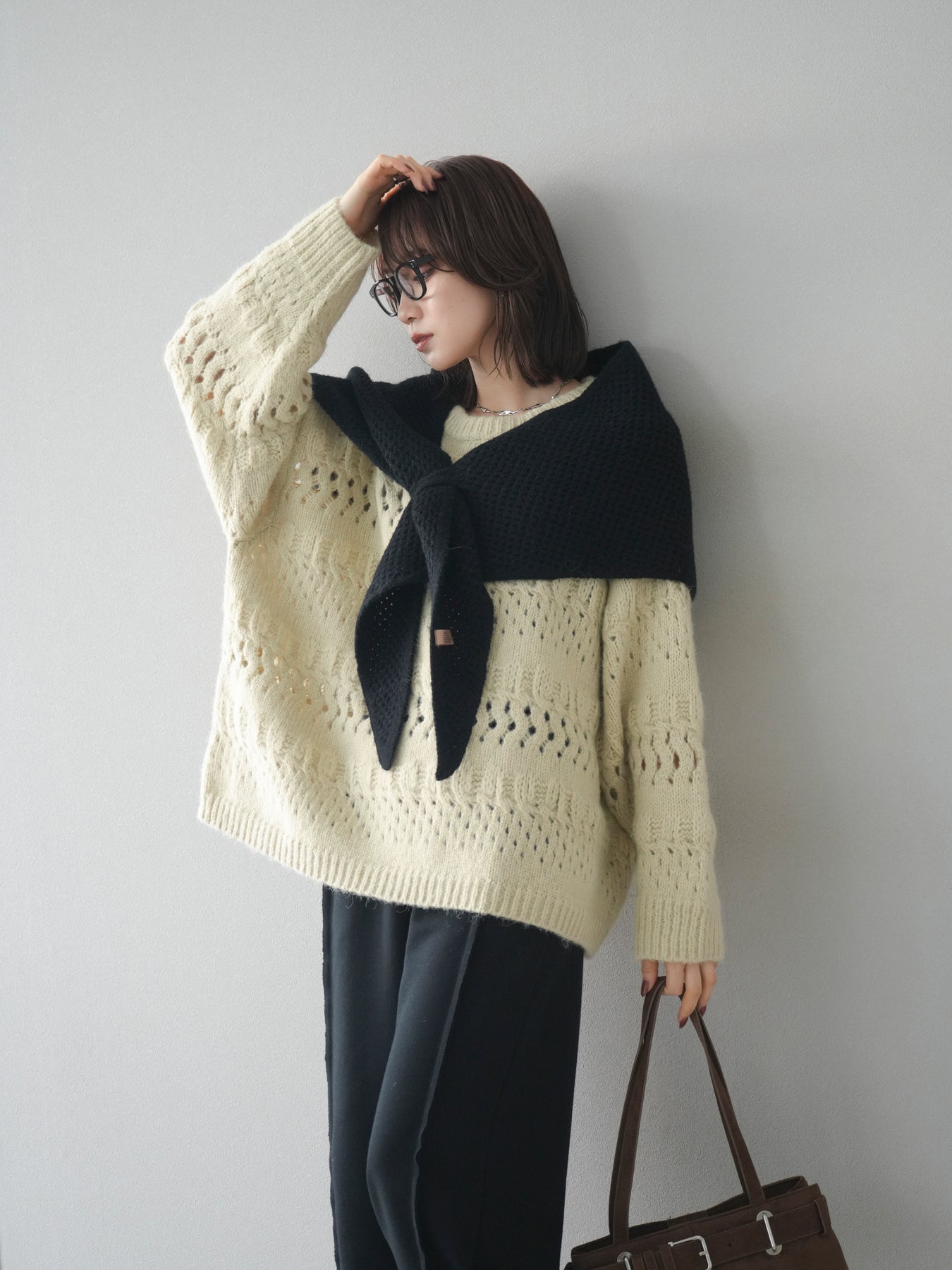 [予約]透かし編みクルーネックニットプルオーバーに関連する商品を探す↓