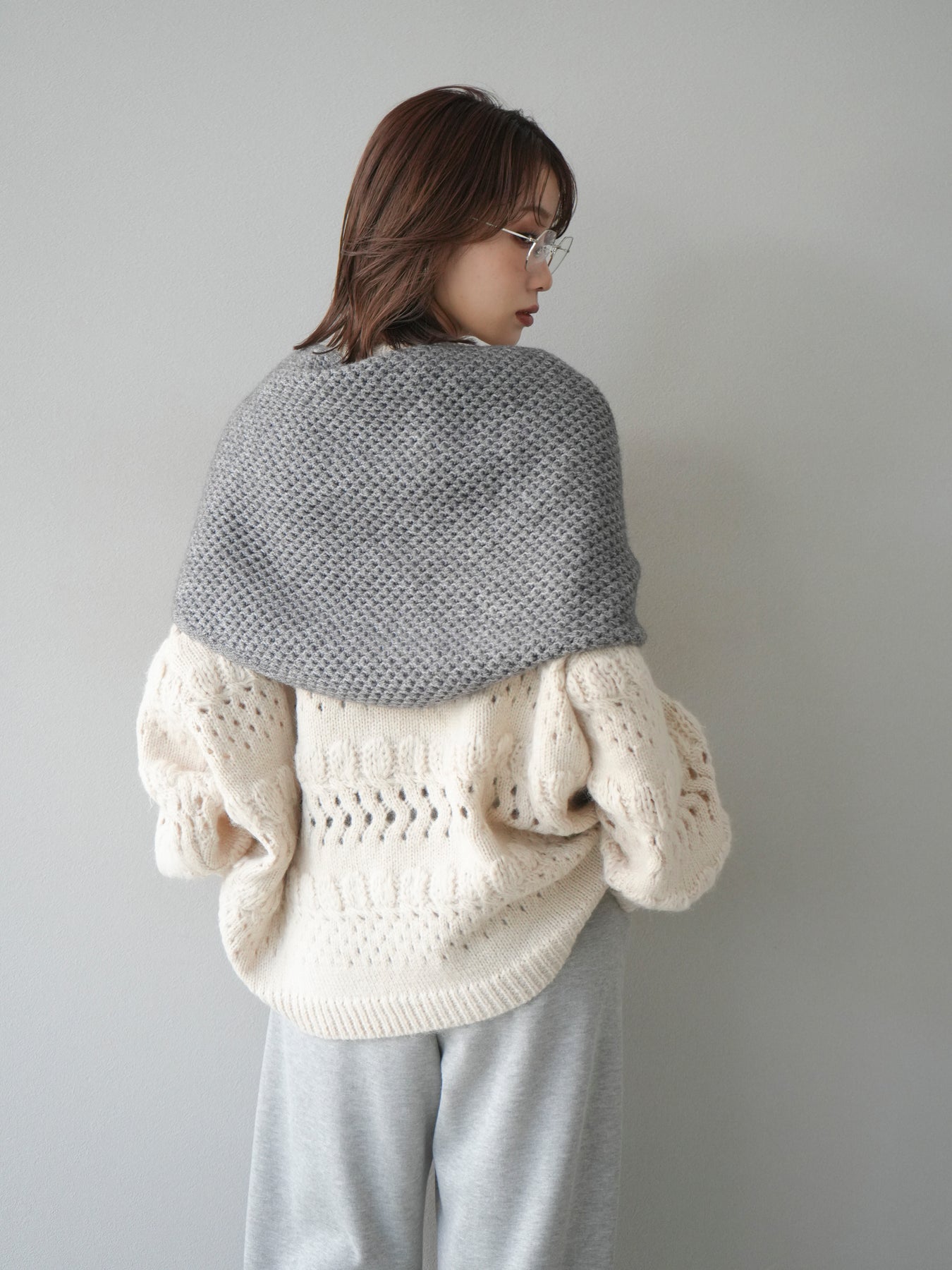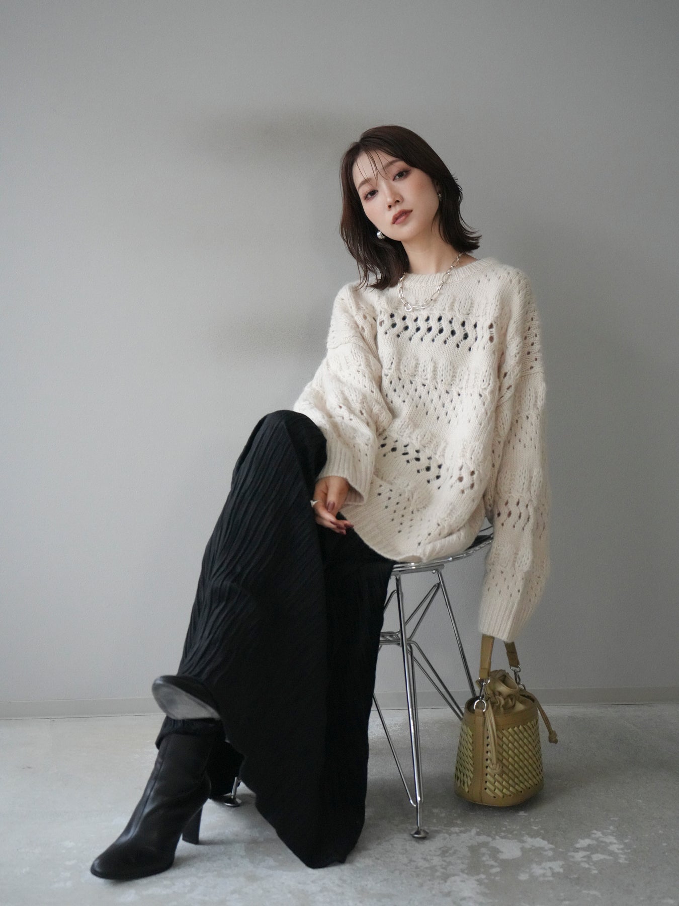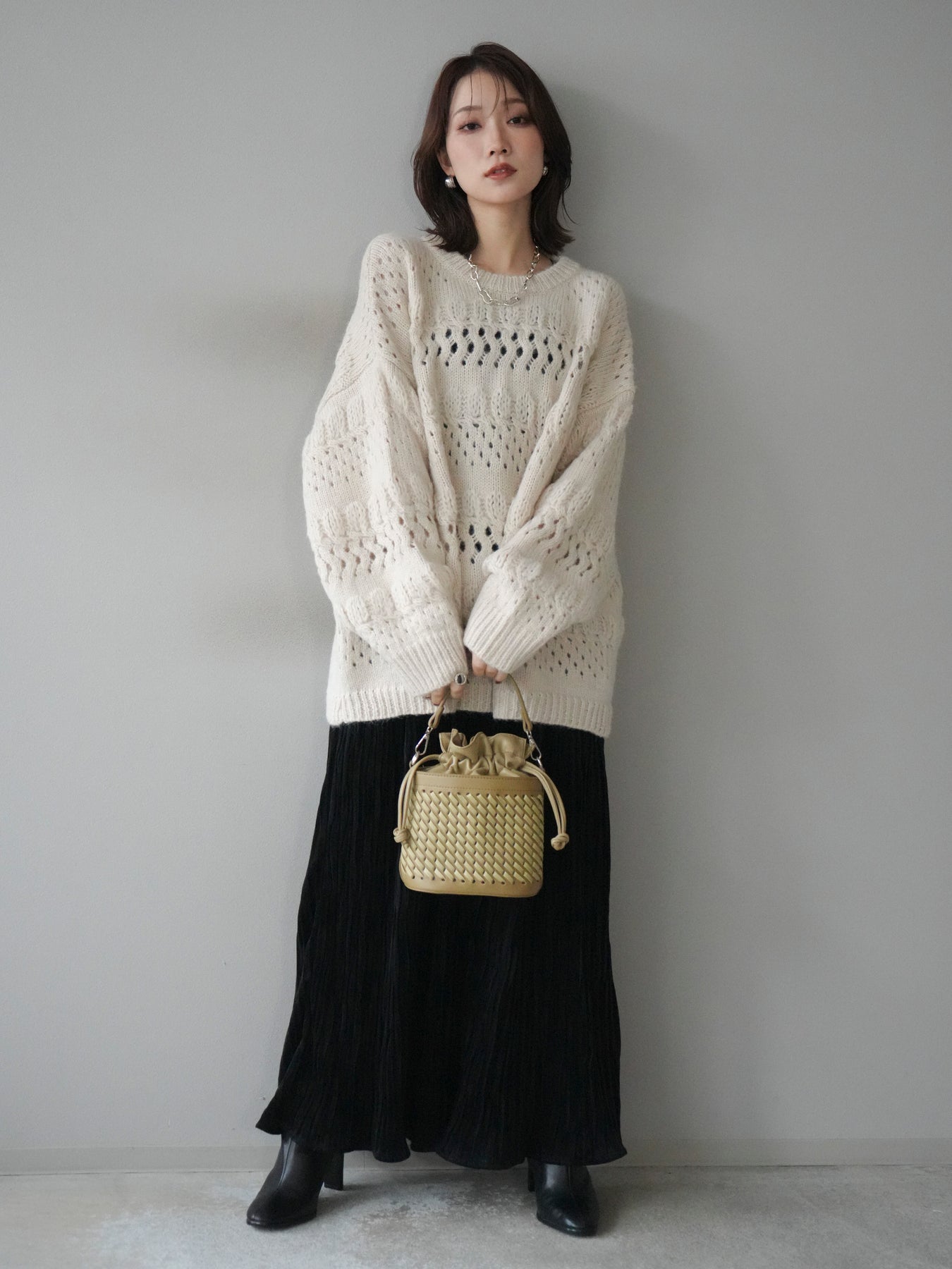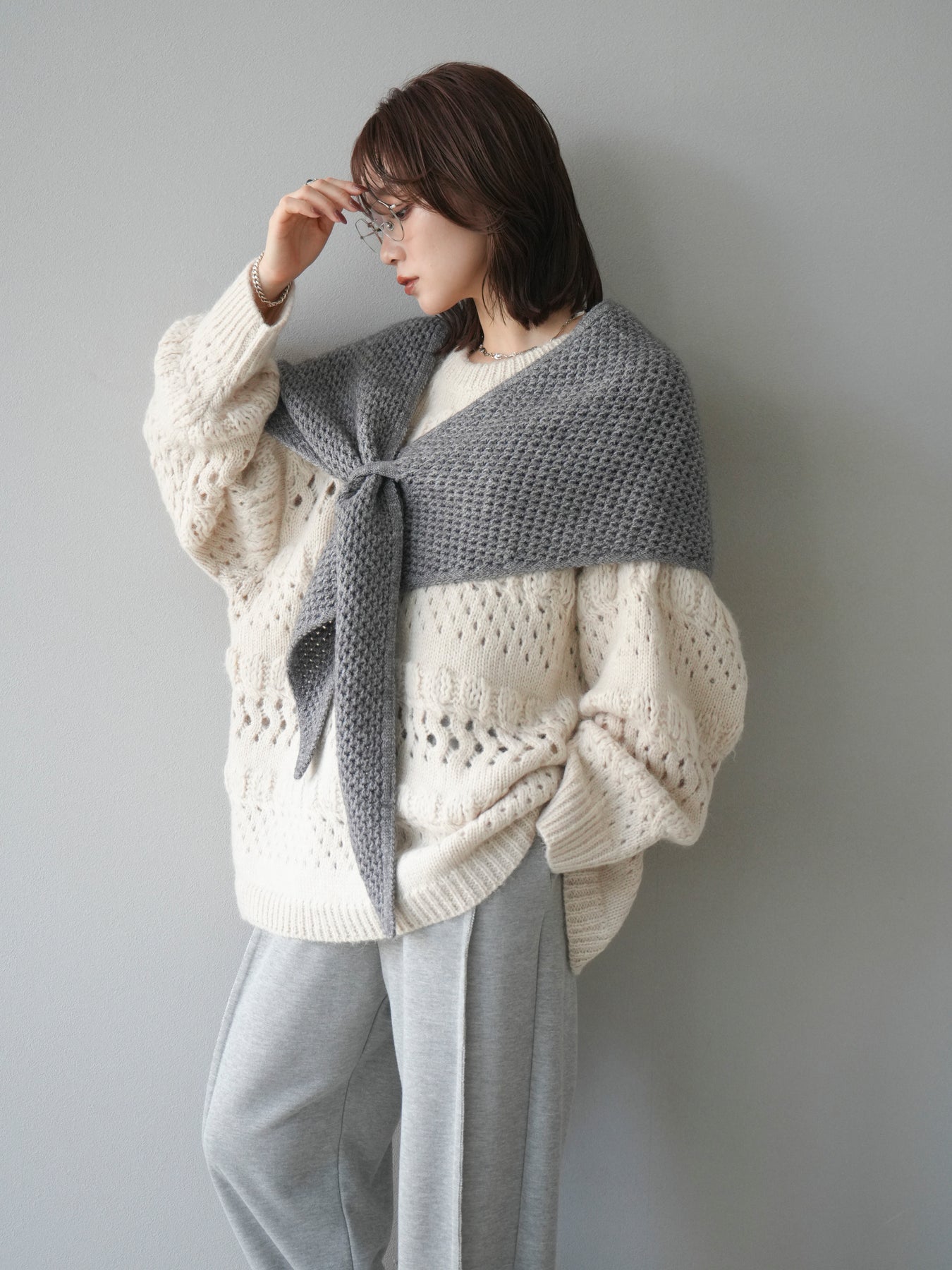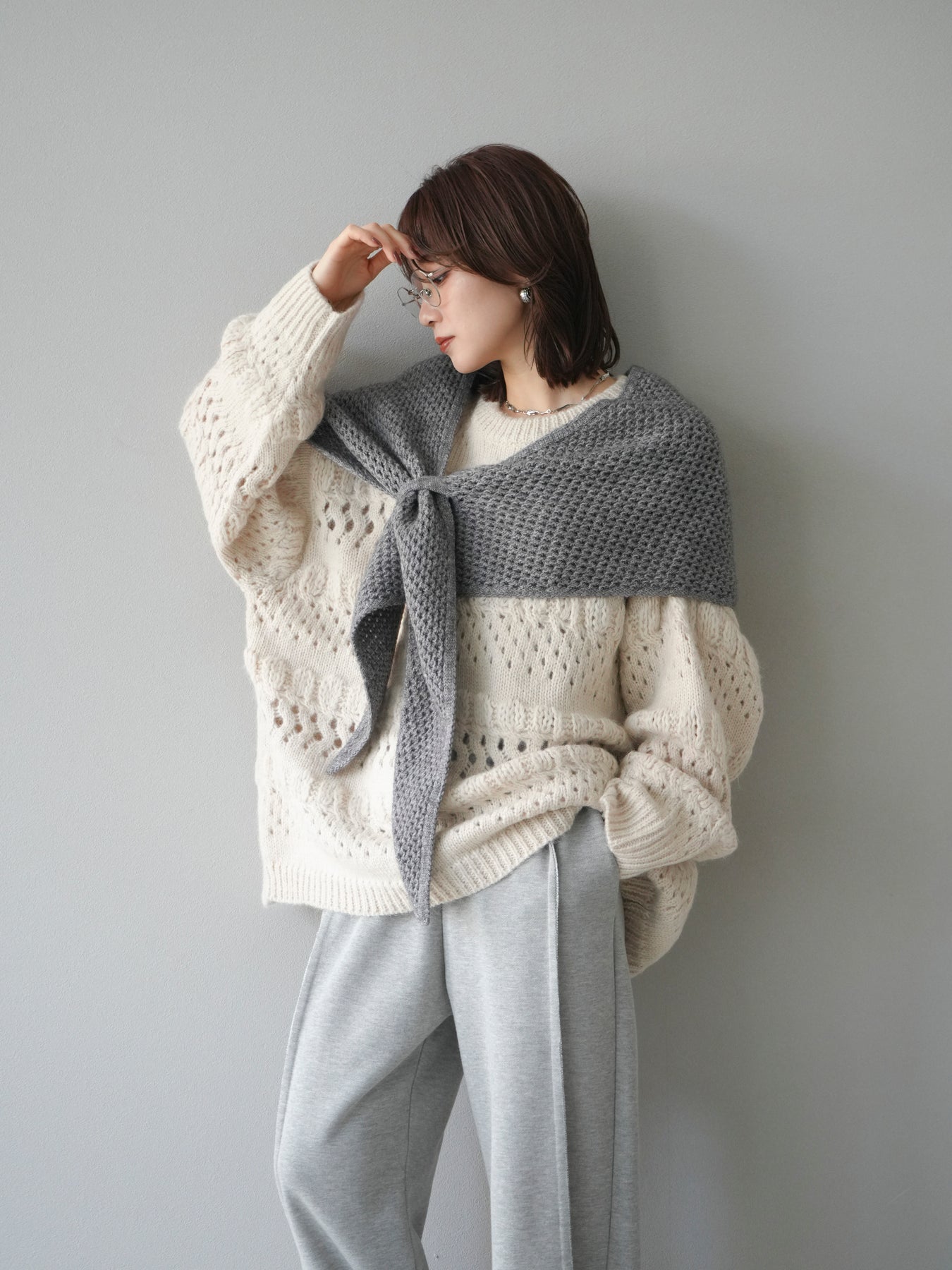 [予約]透かし編みクルーネックニットプルオーバー/ivory