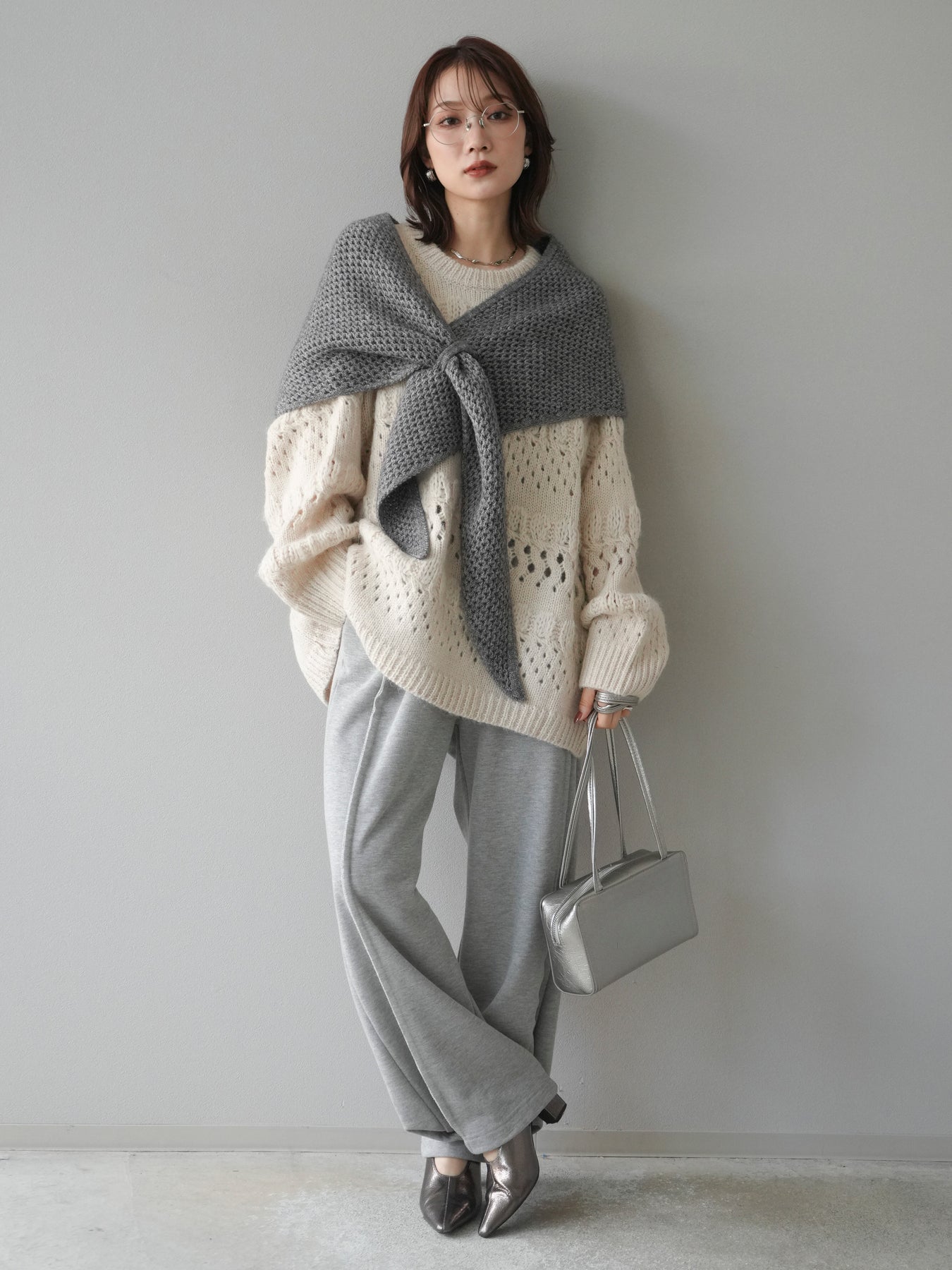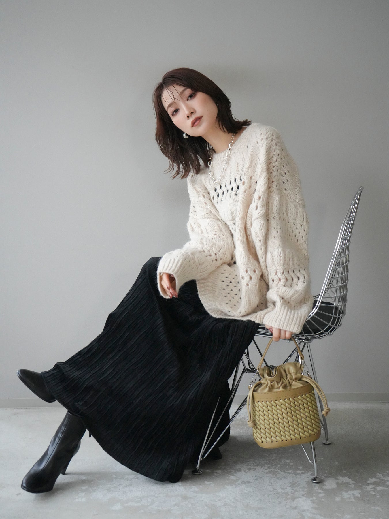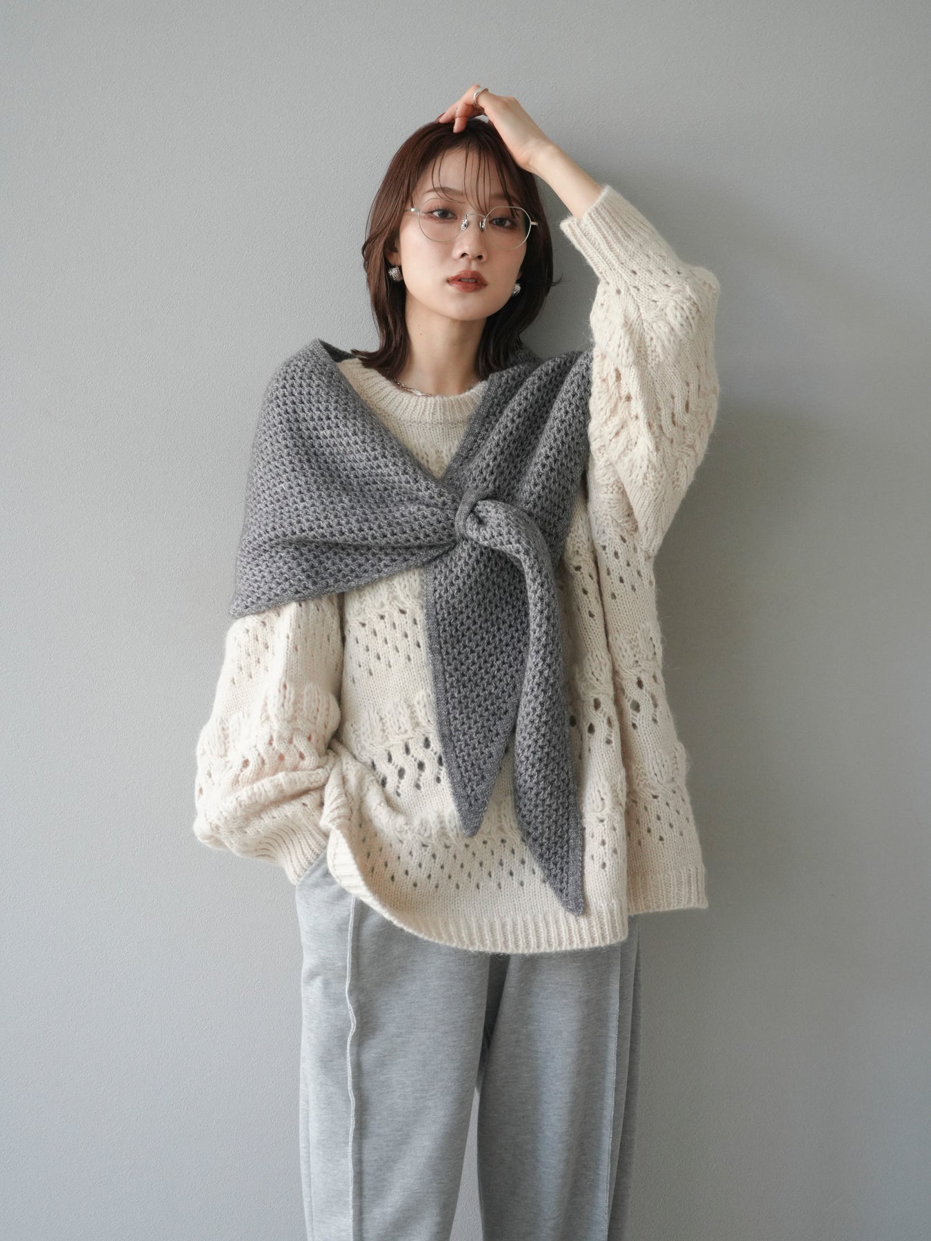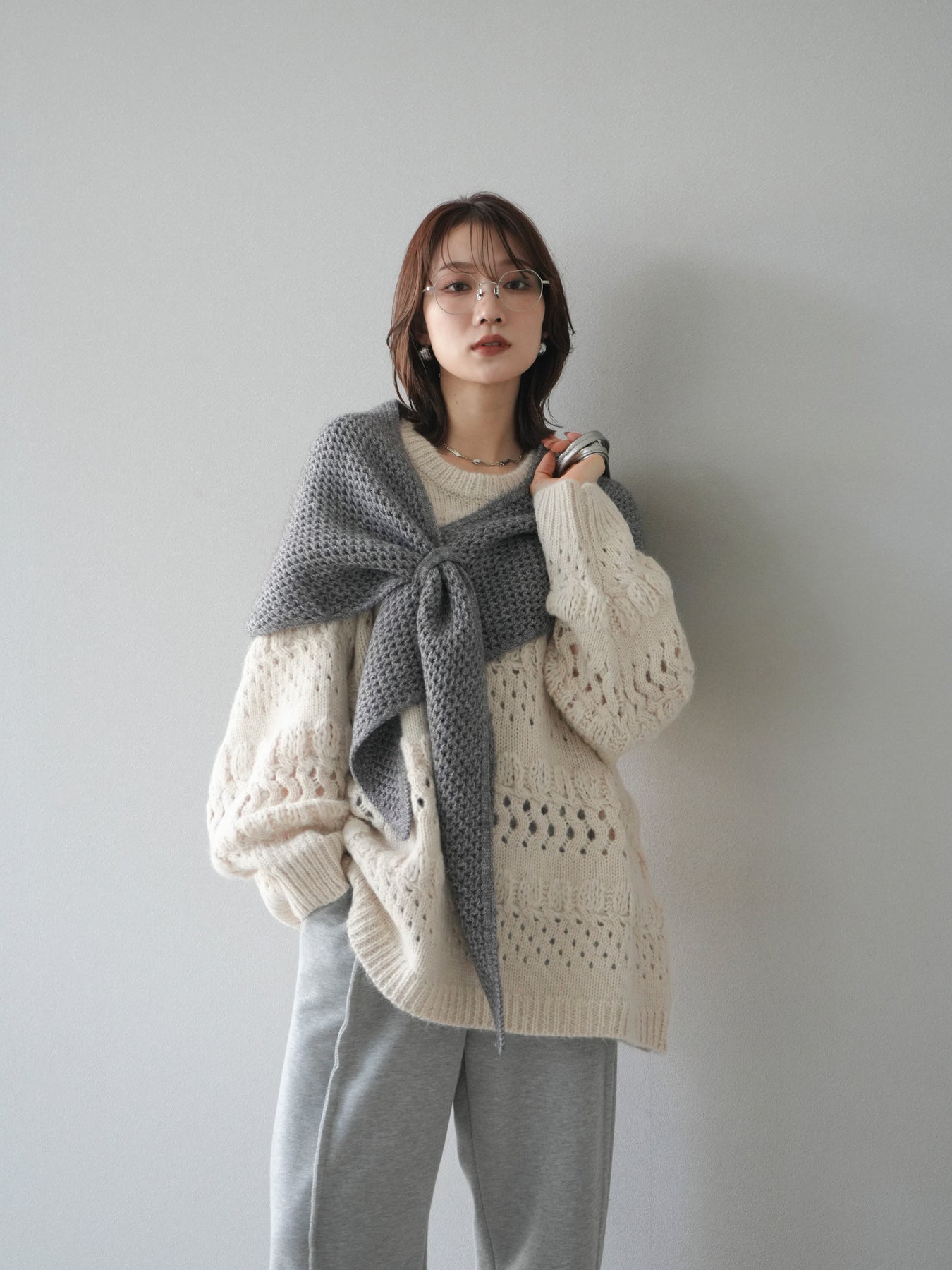 立体感のある透かし編みデザインが目を惹くクルーネックニットプルオーバー。 ふんわりとした風合いと軽やかな着心地で、シーズンムードを高めてくれる1枚です。 程よくゆとりのあるシルエットが抜け感を演出し、リラックス感のあるスタイリングに仕上がります。 デニムやスカートなど、合わせるボトムによってカジュアルにもフェミニンにも着回せる万能アイテム。 インナーを重ねたレイヤードスタイルも楽しめる、コーデの主役になるニットです。 ※ボトムス、キャミソール(インナー)以外の商品は一律でインナーは付属していません。