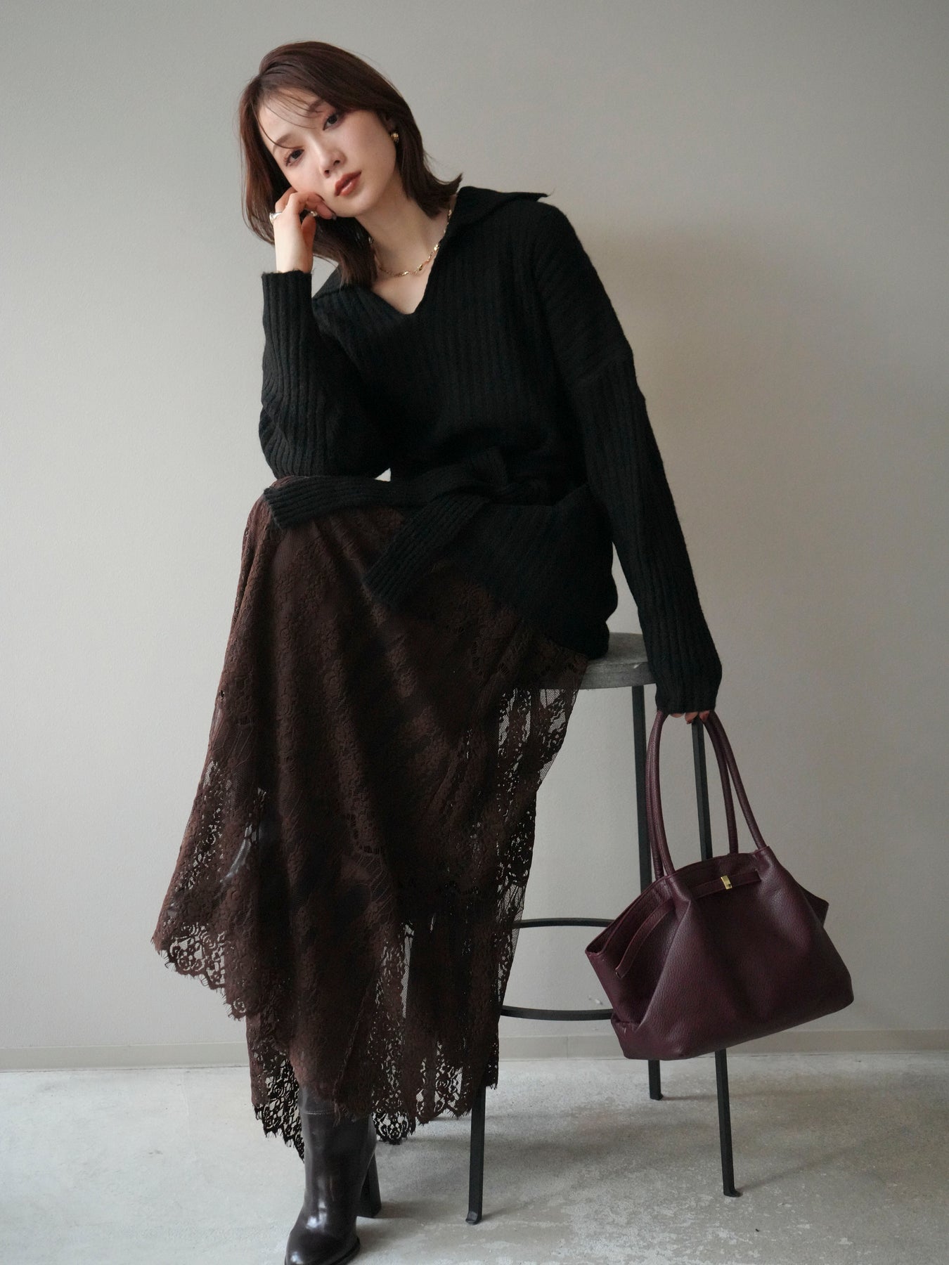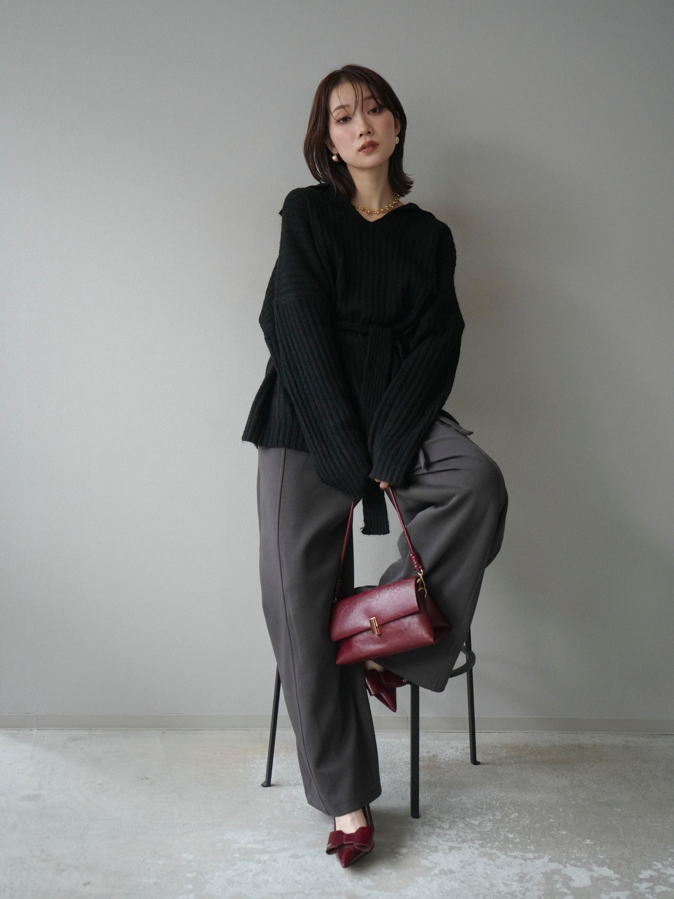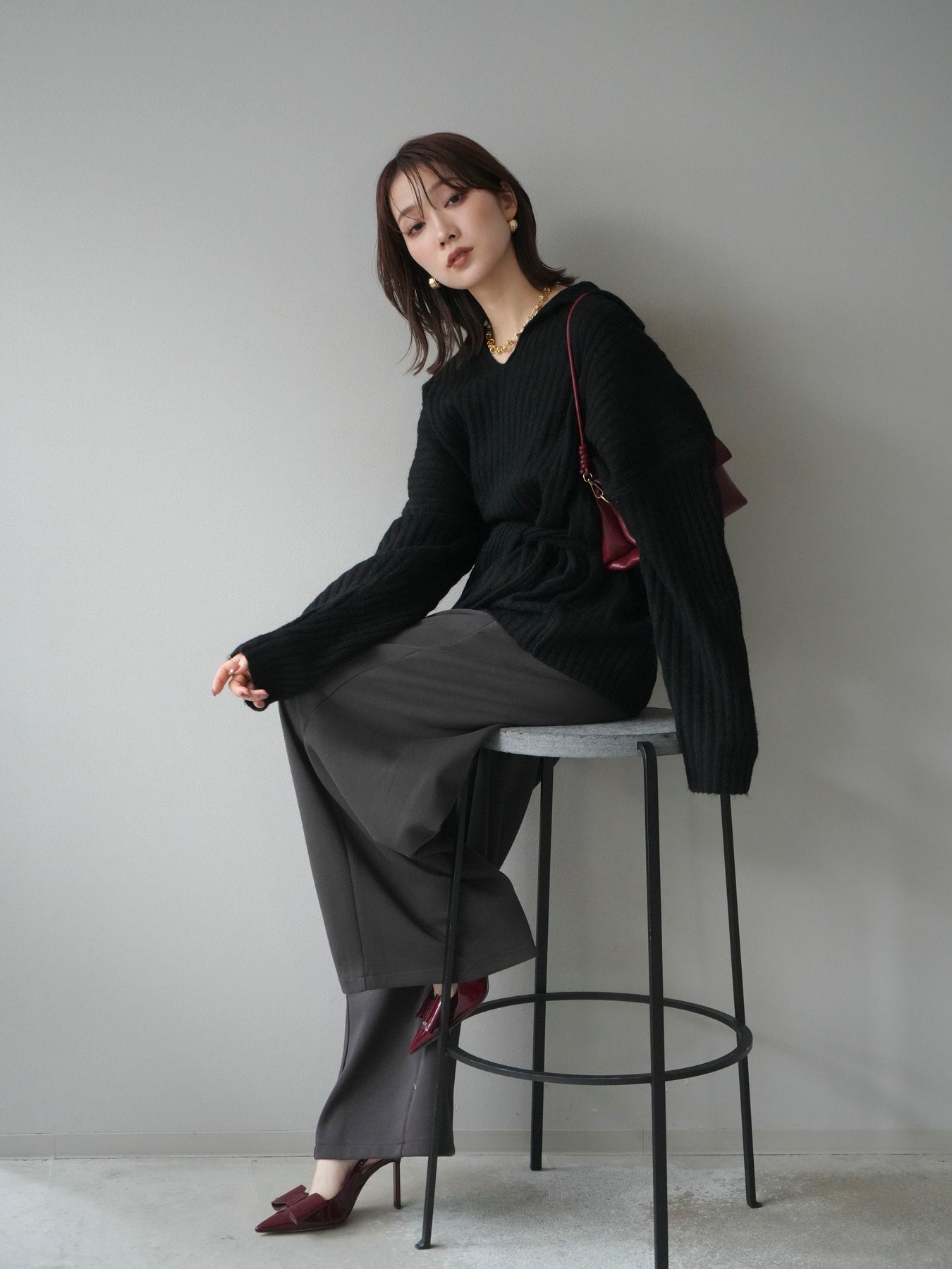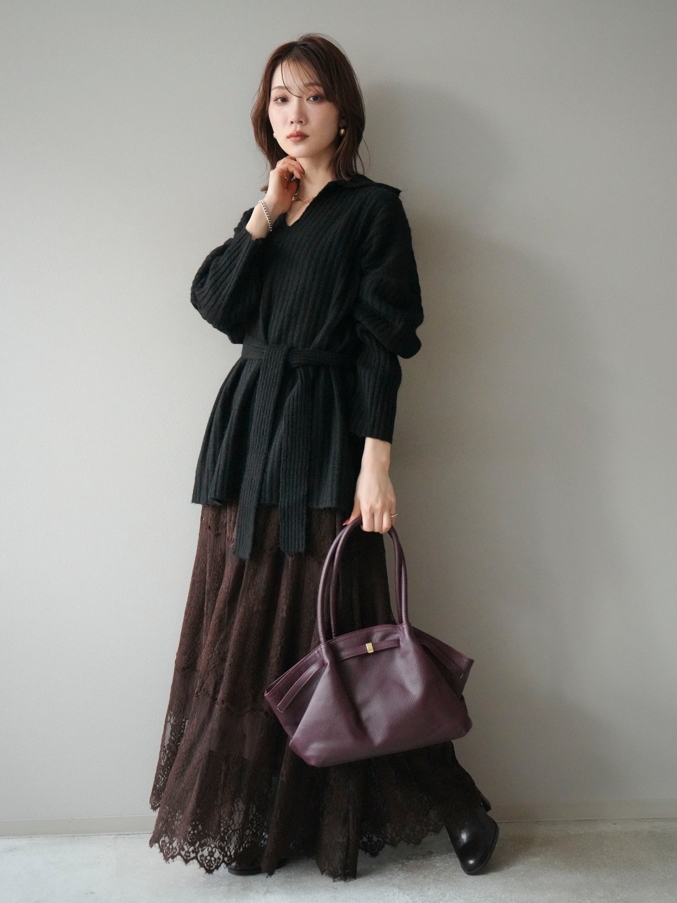 表情豊かなワイドリブ編みが特徴のポロニットプルオーバー。 柔らかな風合いと軽やかな着心地で、シーズンムードを高めてくれる一枚です。 深めのVネックラインがデコルテをきれいに見せ、抜け感のある大人な印象を演出。 付属のウエストベルトでシルエットにメリハリをつければ、スタイルアップ効果も抜群です。 デニムやスカートなど、幅広いボトムと好相性で、オンオフ問わず活躍するアイテムです。 ※ボトムス、キャミソール(インナー)以外の商品は一律でインナーは付属していません。