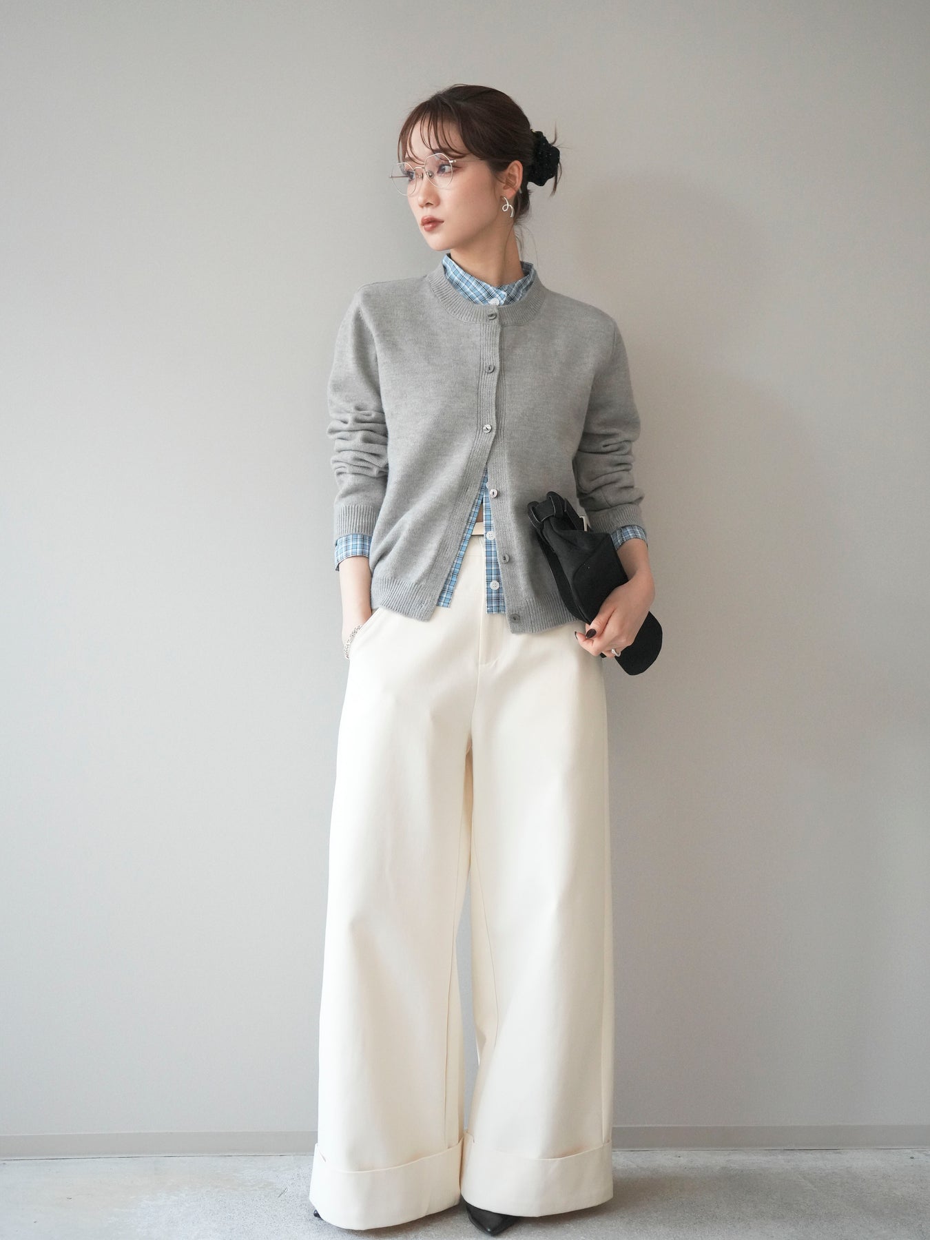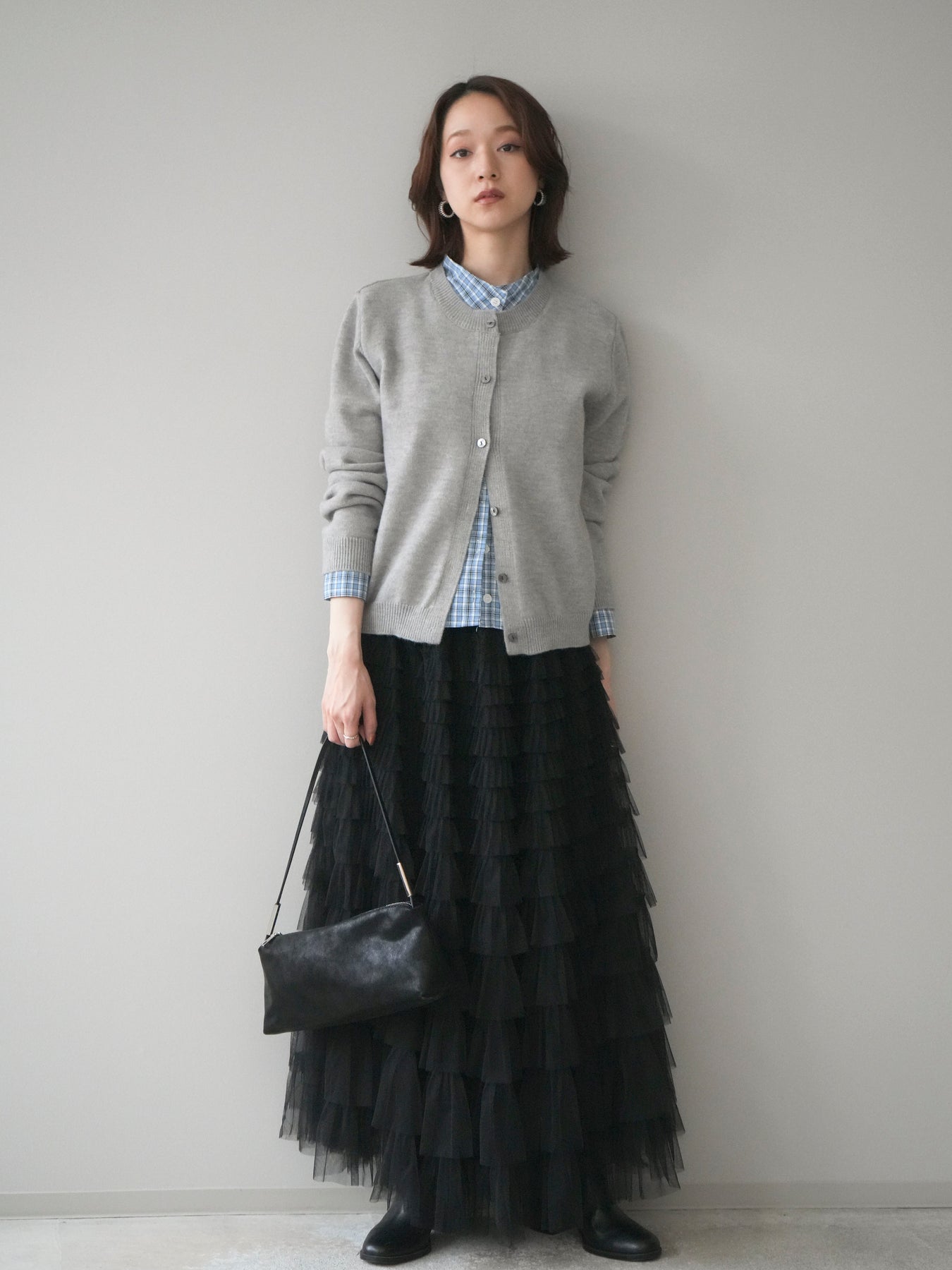 シャツをレイヤードしたようなデザインが魅力のニットカーディガン。 襟元や裾から覗くチェック柄がアクセントになり、1枚でコーディネートが完成する優秀アイテムです。 程よくゆとりのあるシルエットで、抜け感のあるリラックススタイルを演出。 軽やかなニット素材で着心地が良く、季節の変わり目からロングシーズン活躍します。 シンプルながらもレイヤード見えのディテールが映える、大人カジュアルな一枚です。