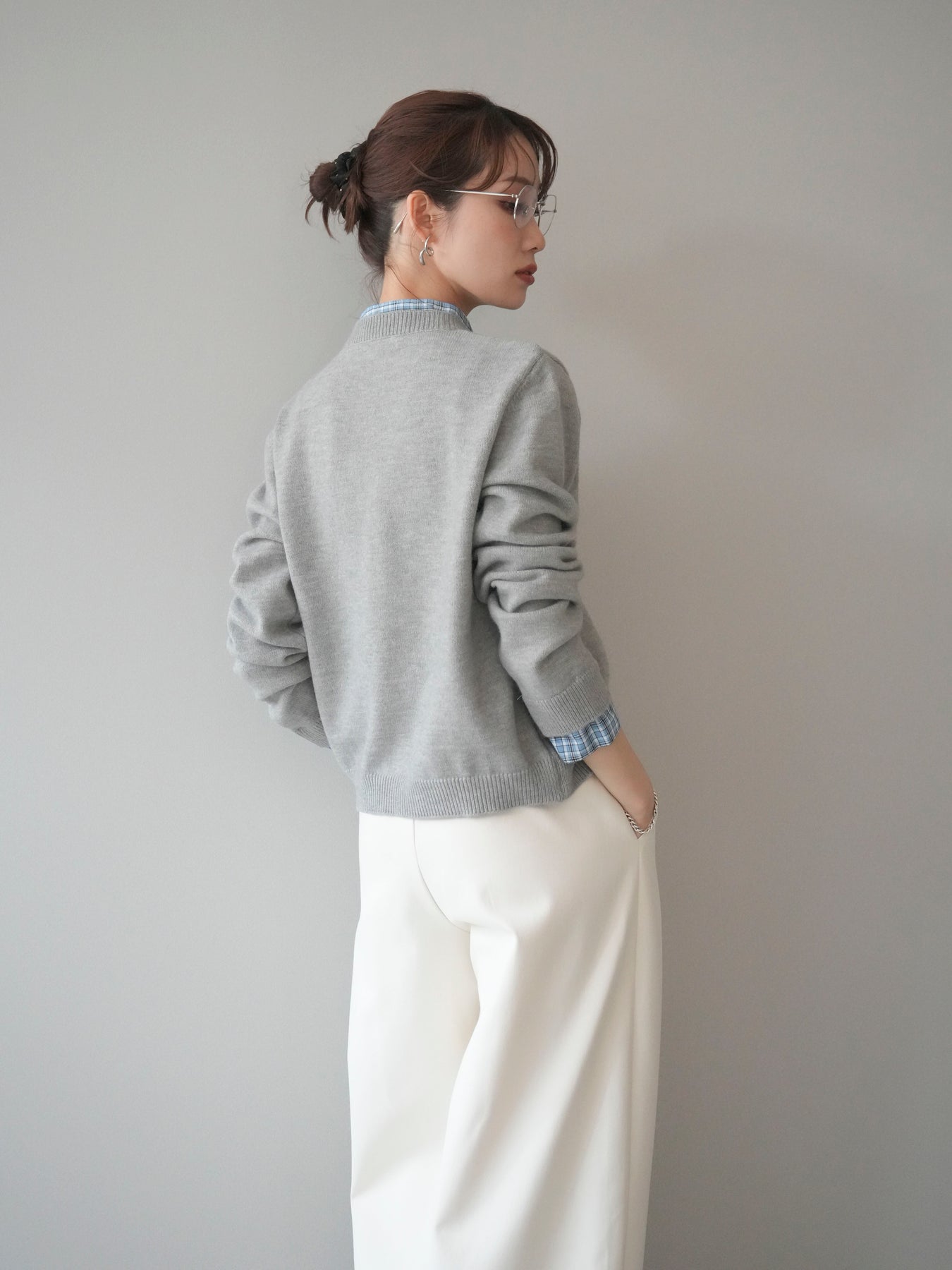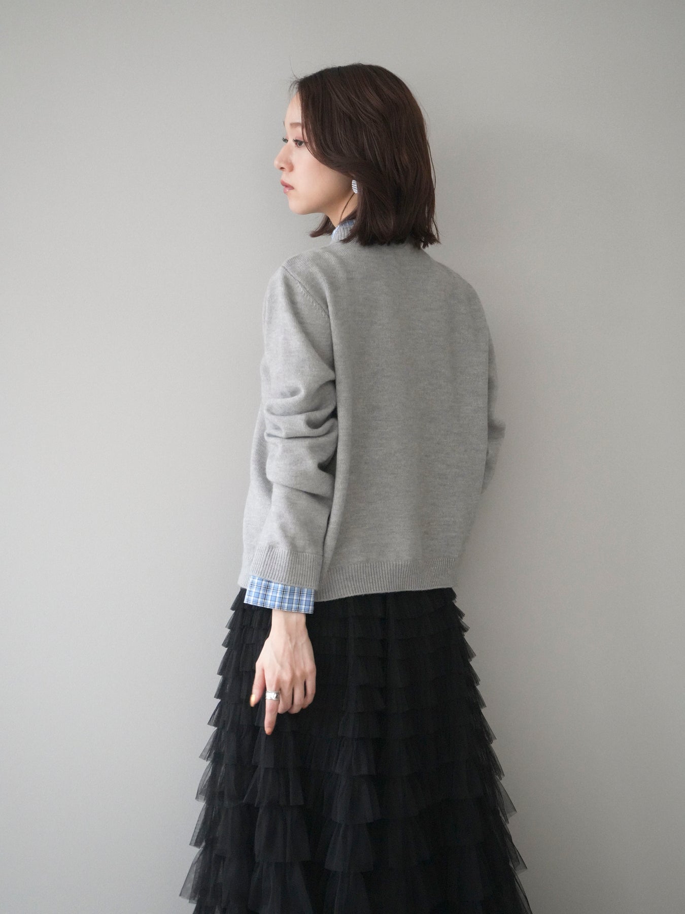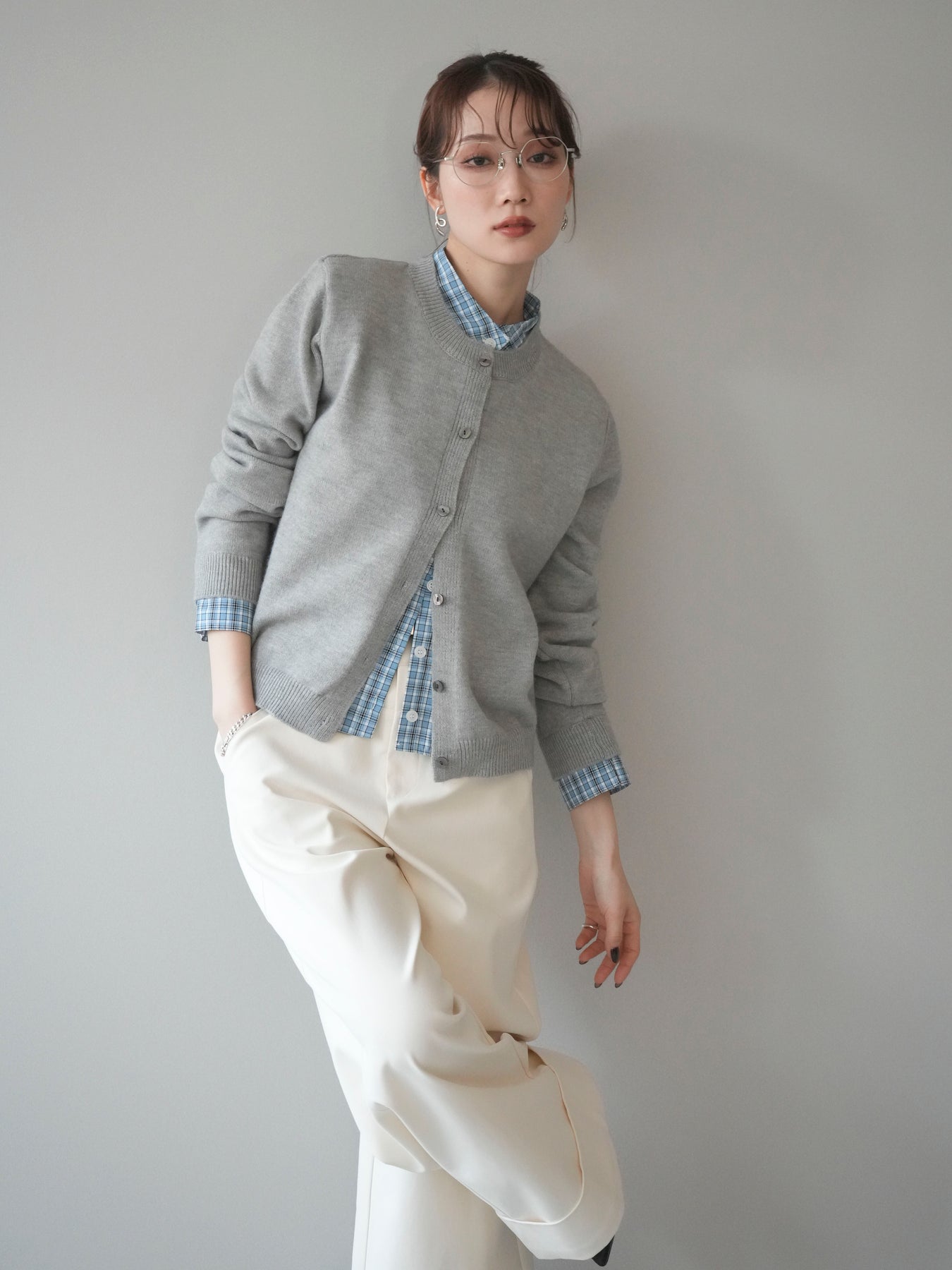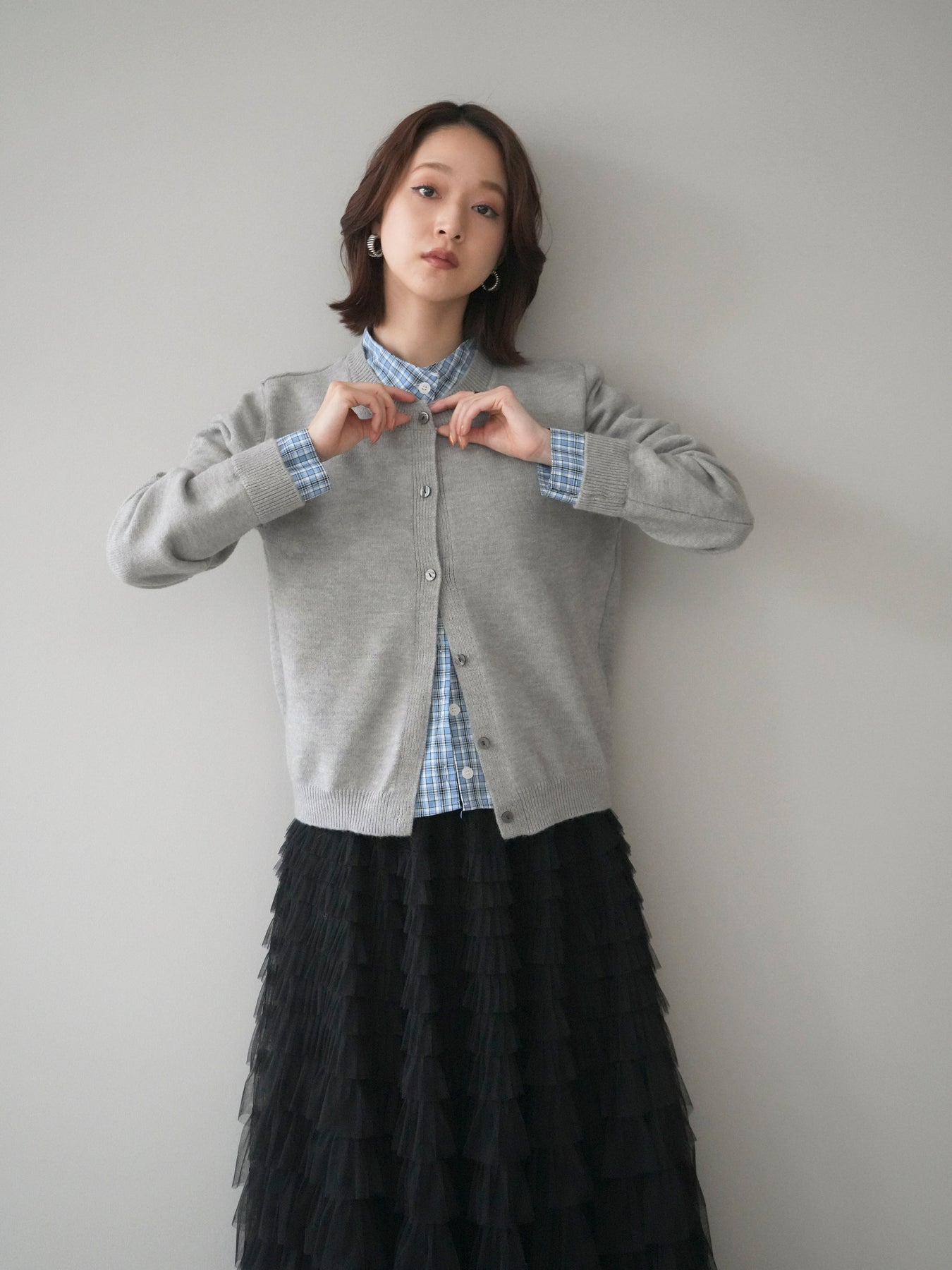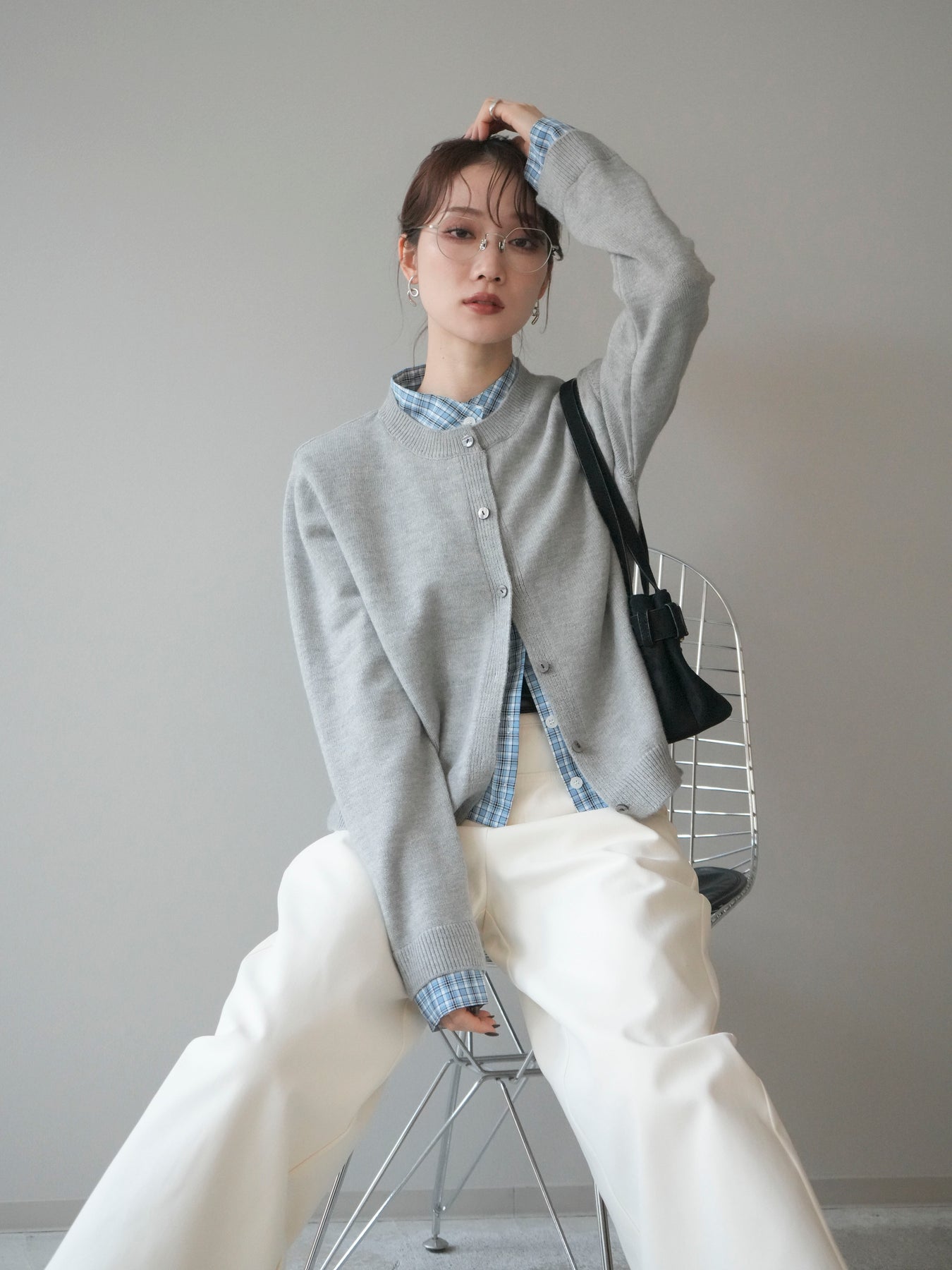 [予約]チェックシャツレイヤードデザインニットカーディガン/gray