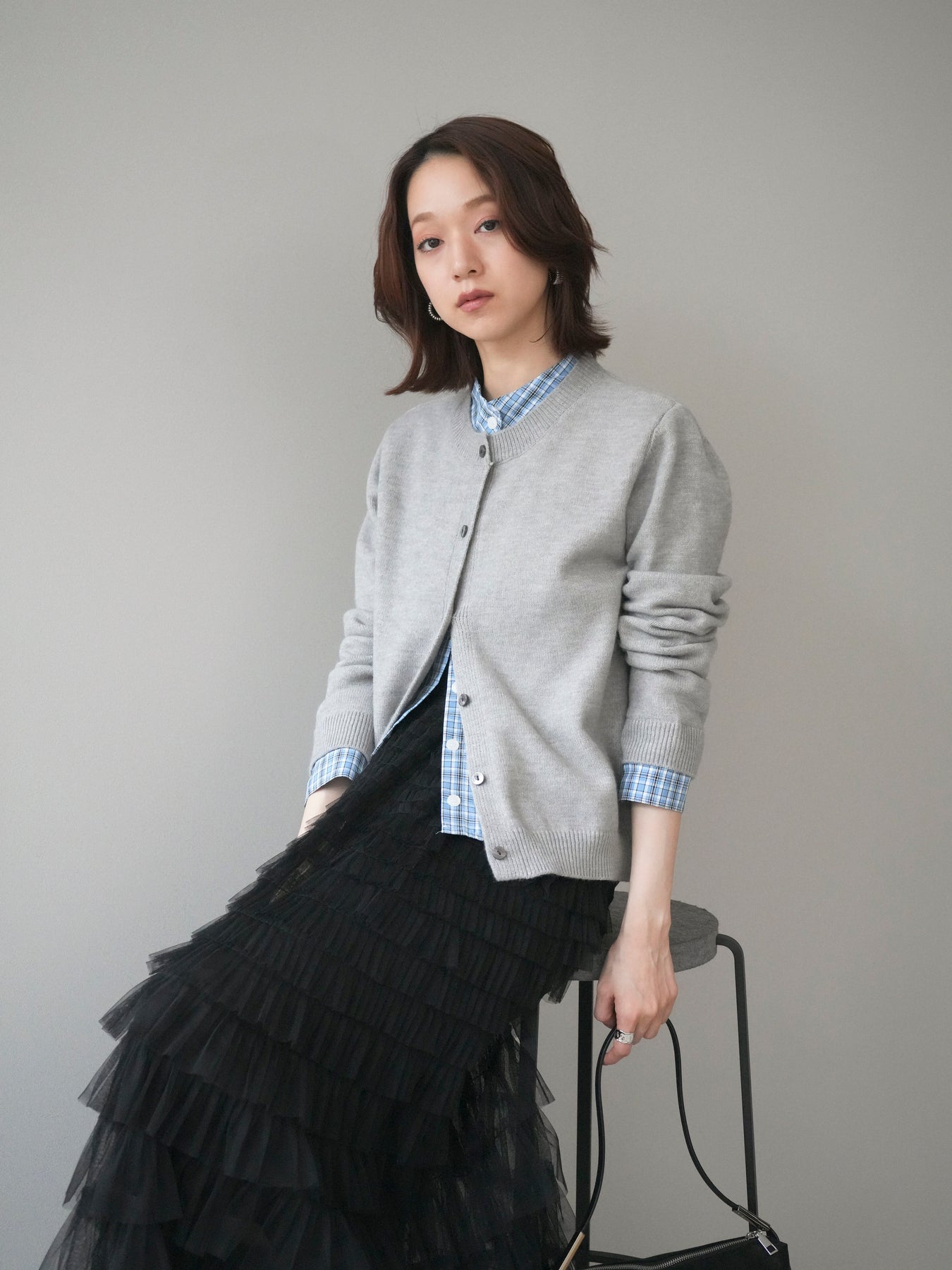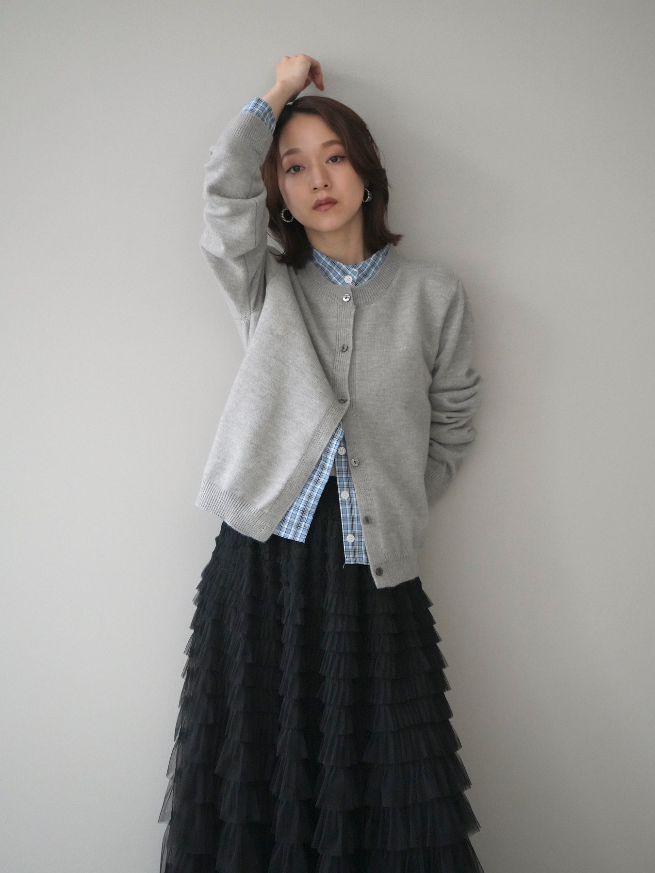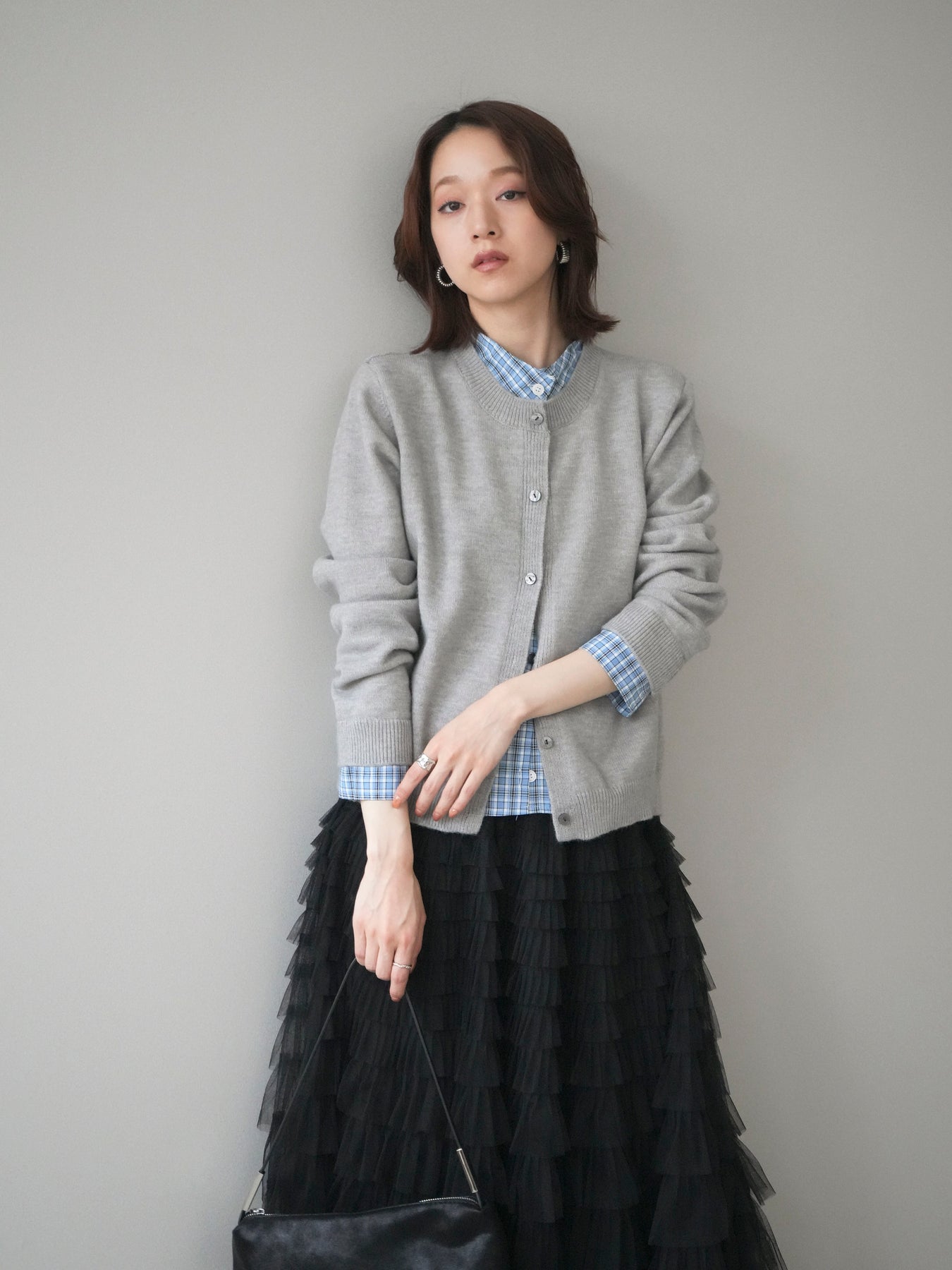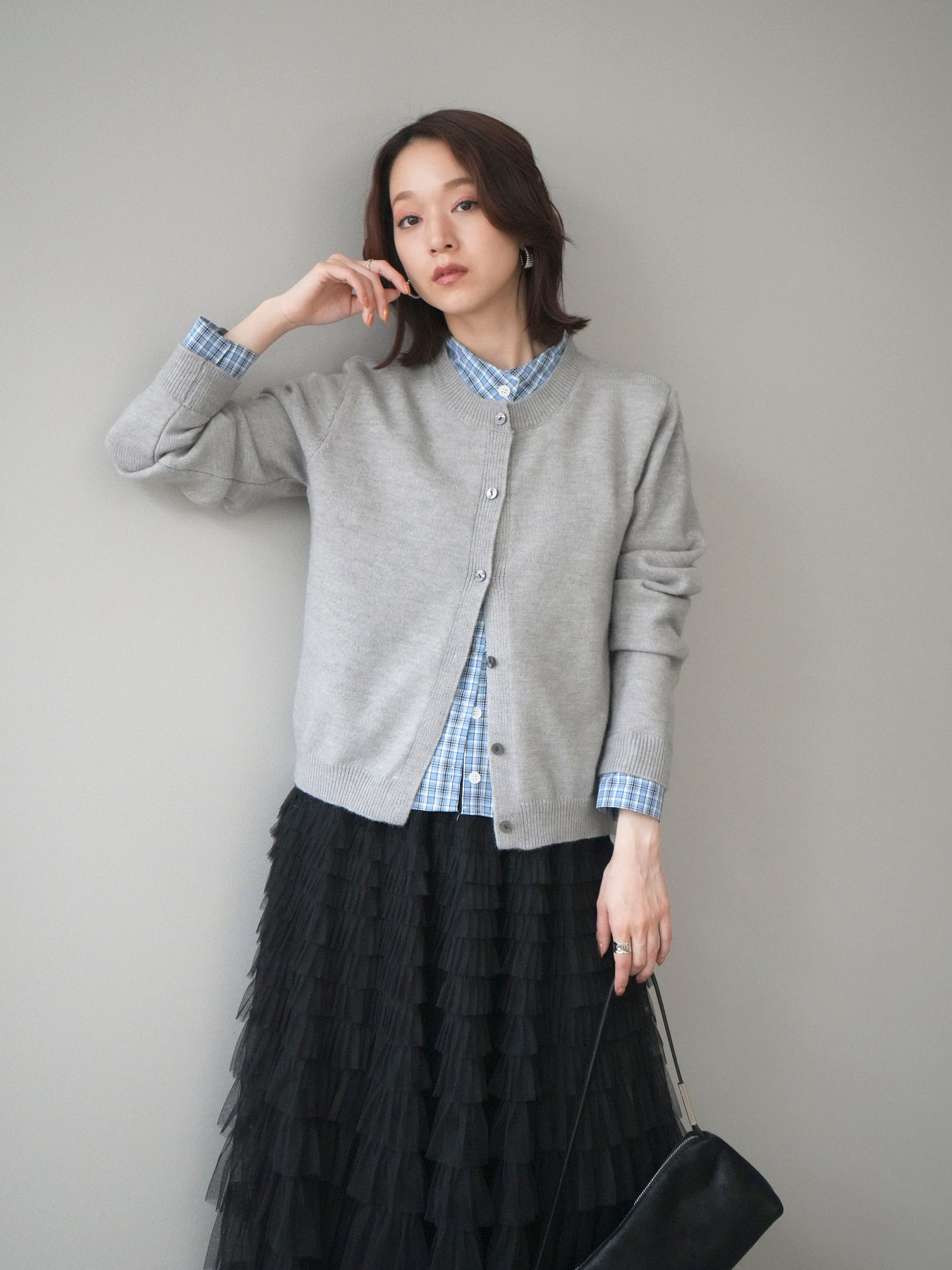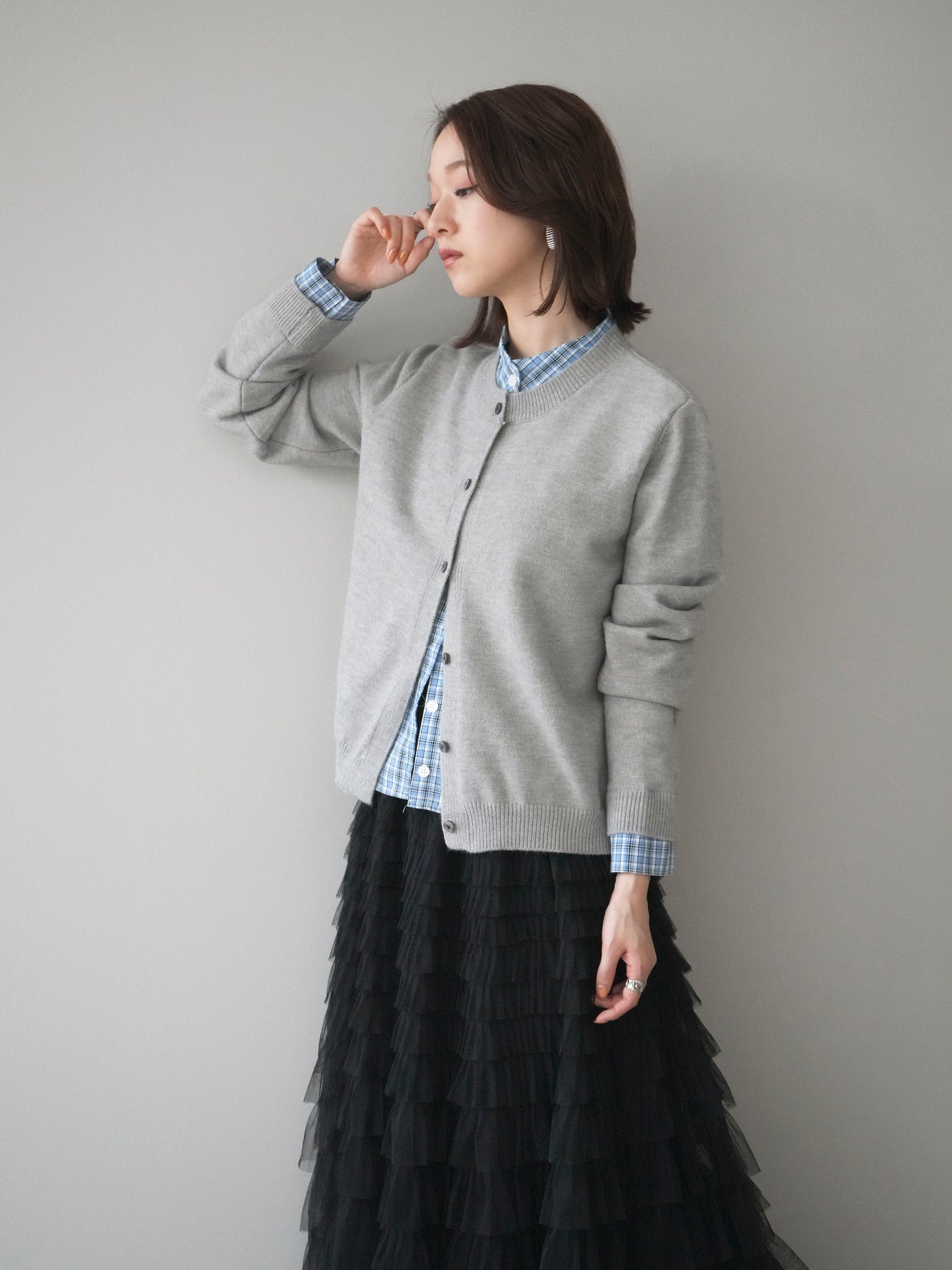 [予約]チェックシャツレイヤードデザインニットカーディガン/gray
