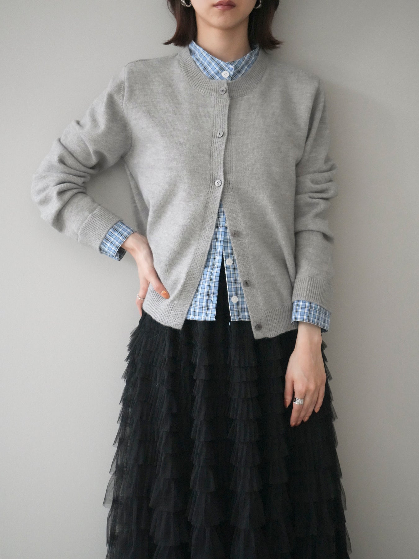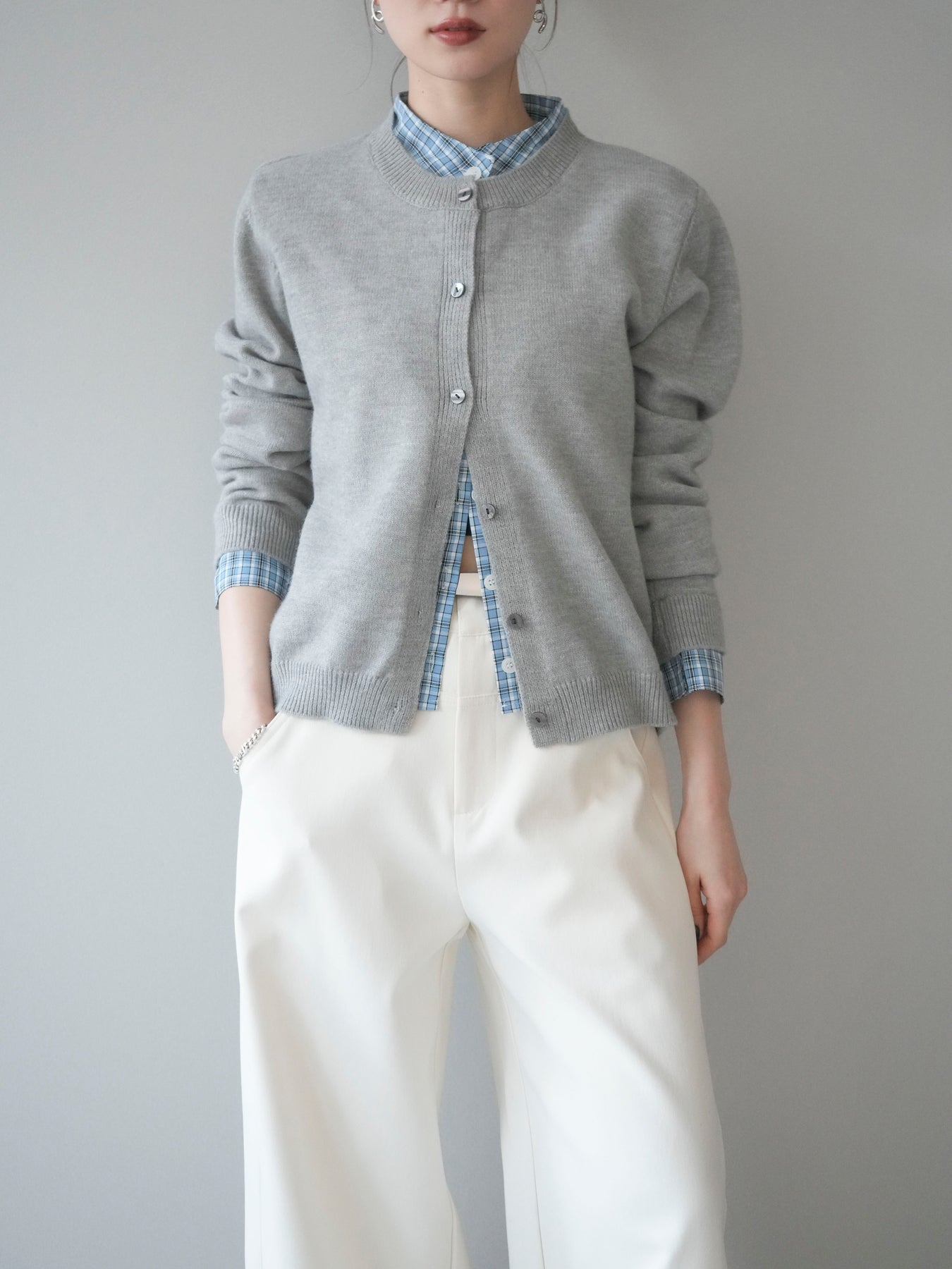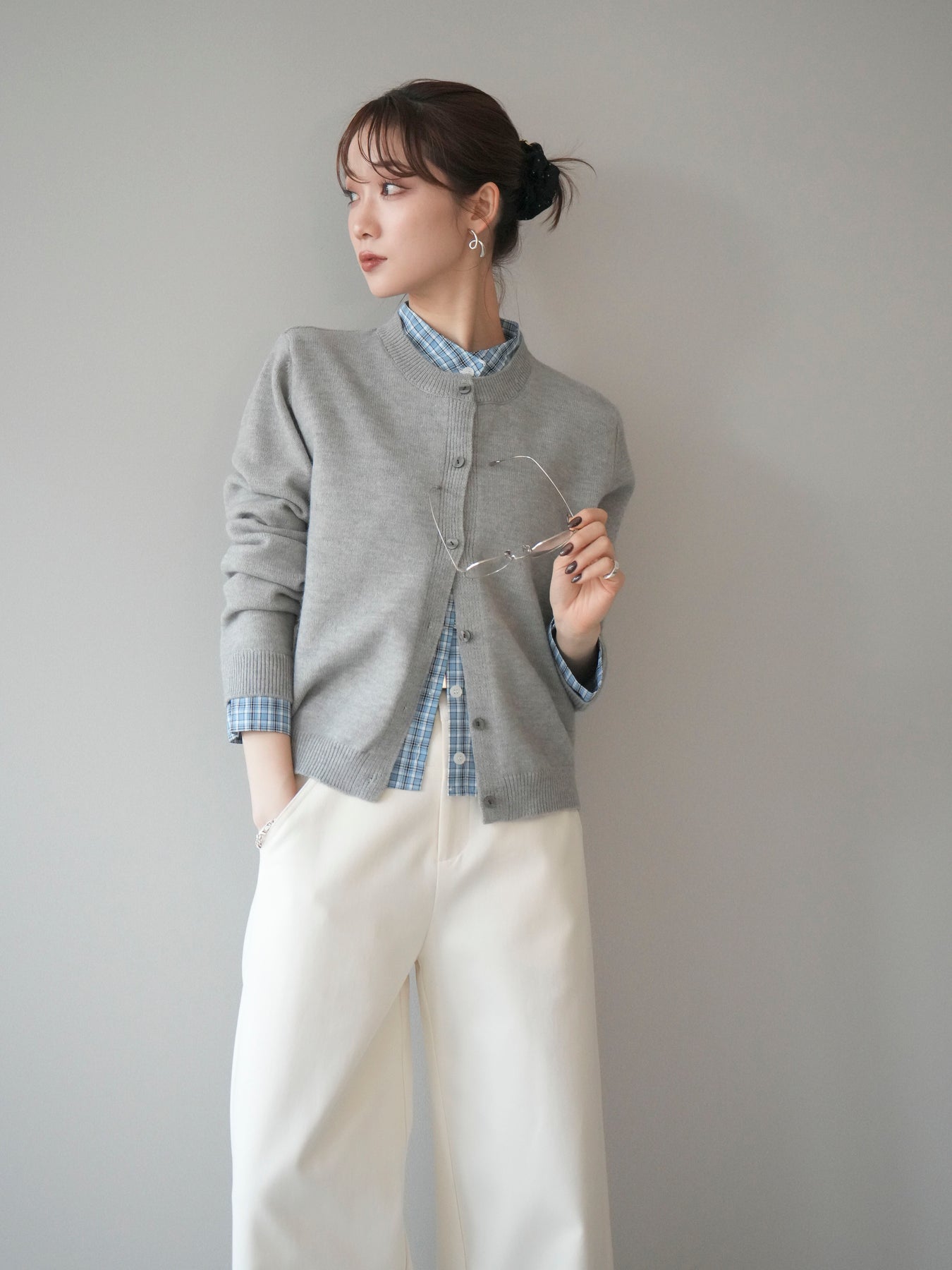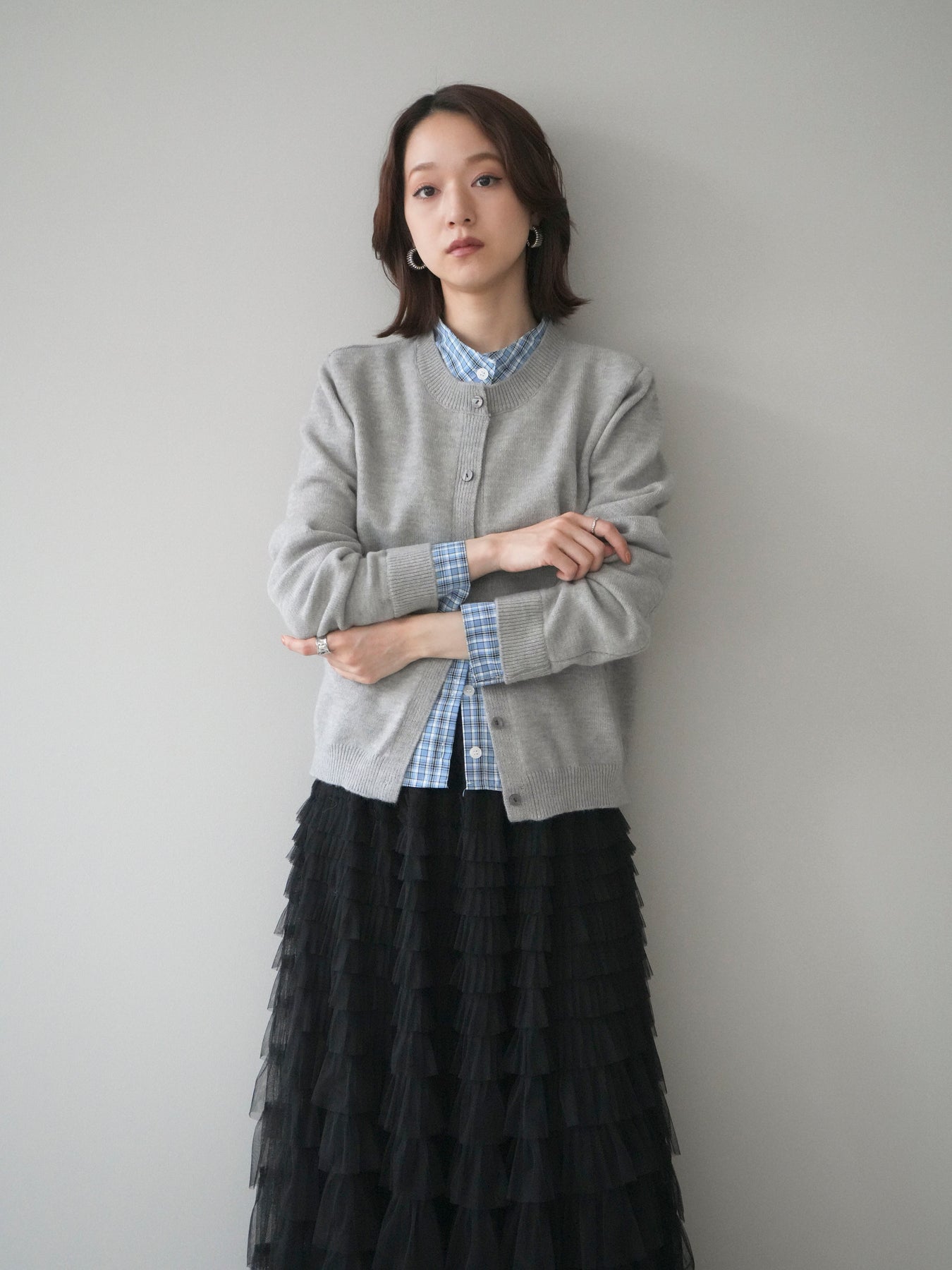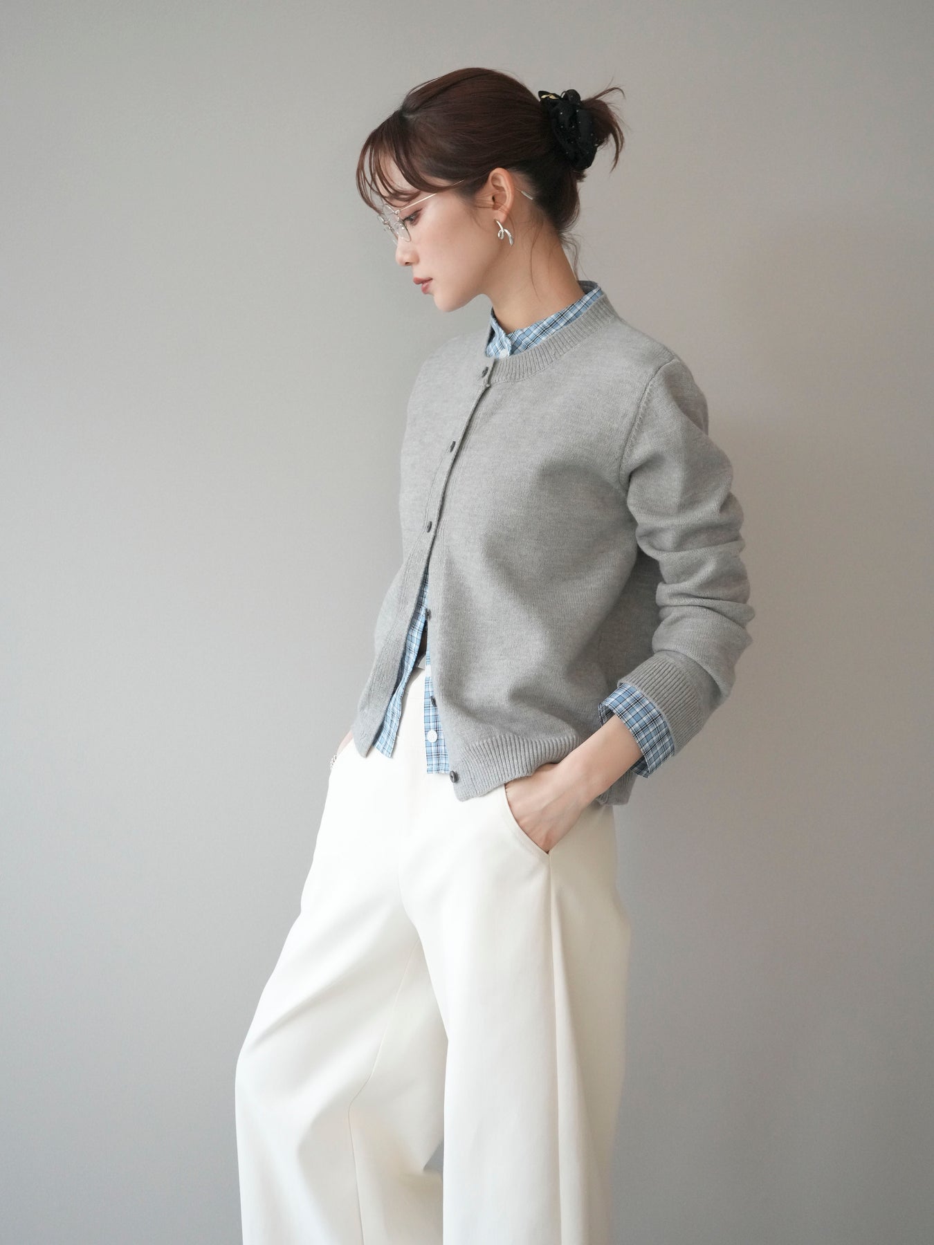 [予約]チェックシャツレイヤードデザインニットカーディガン/gray