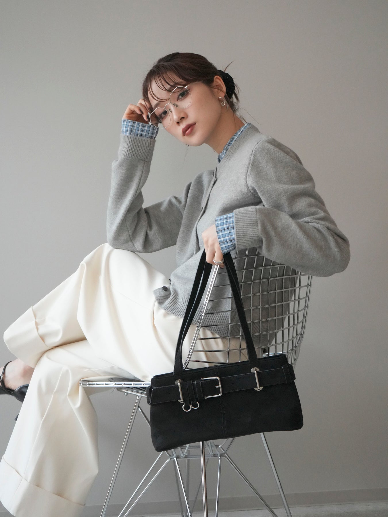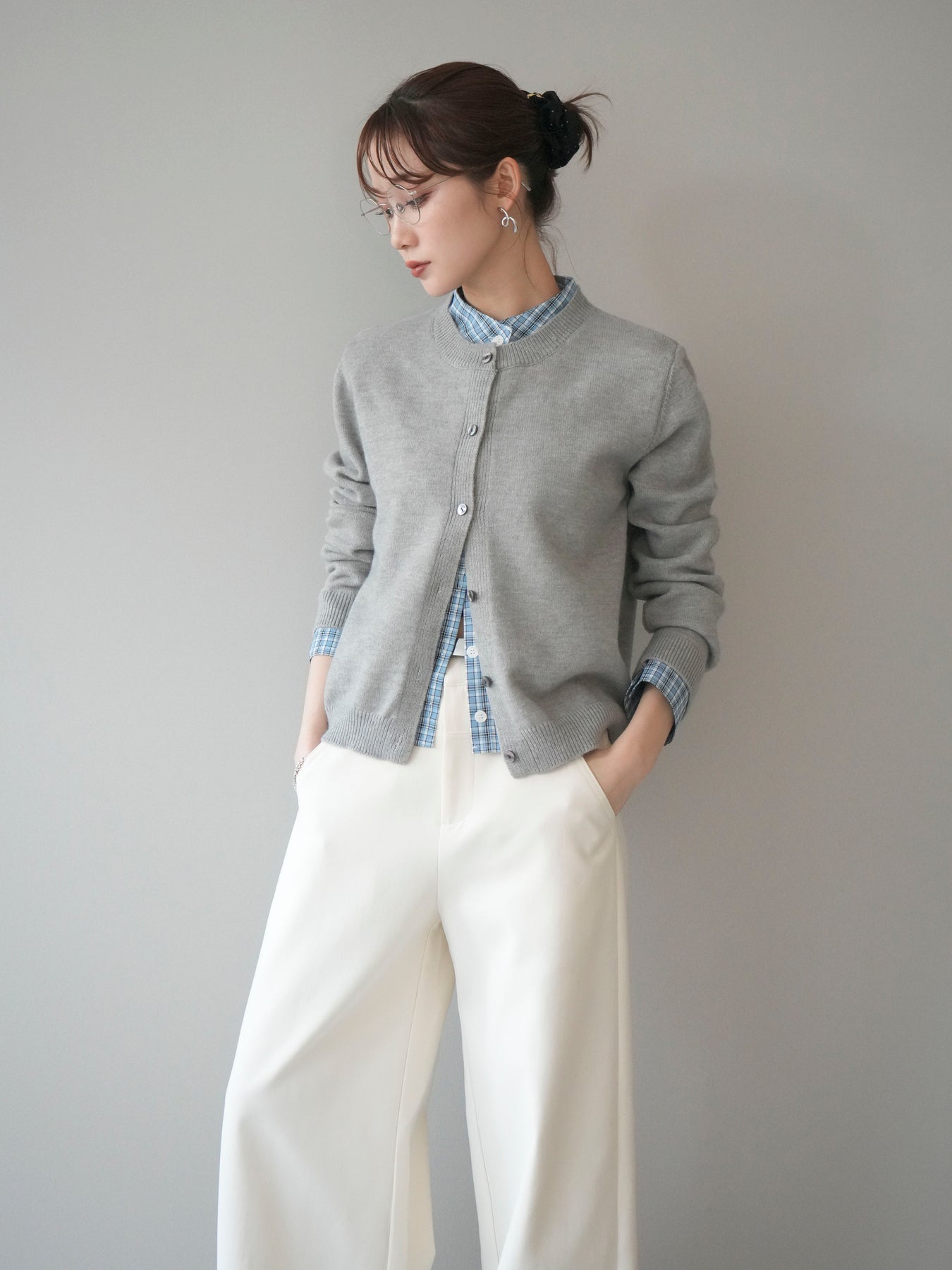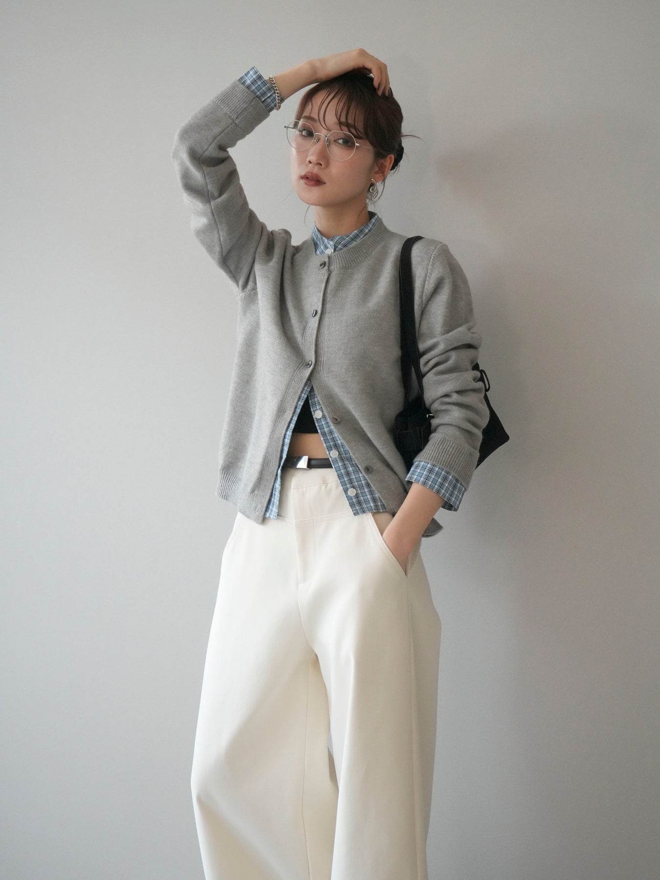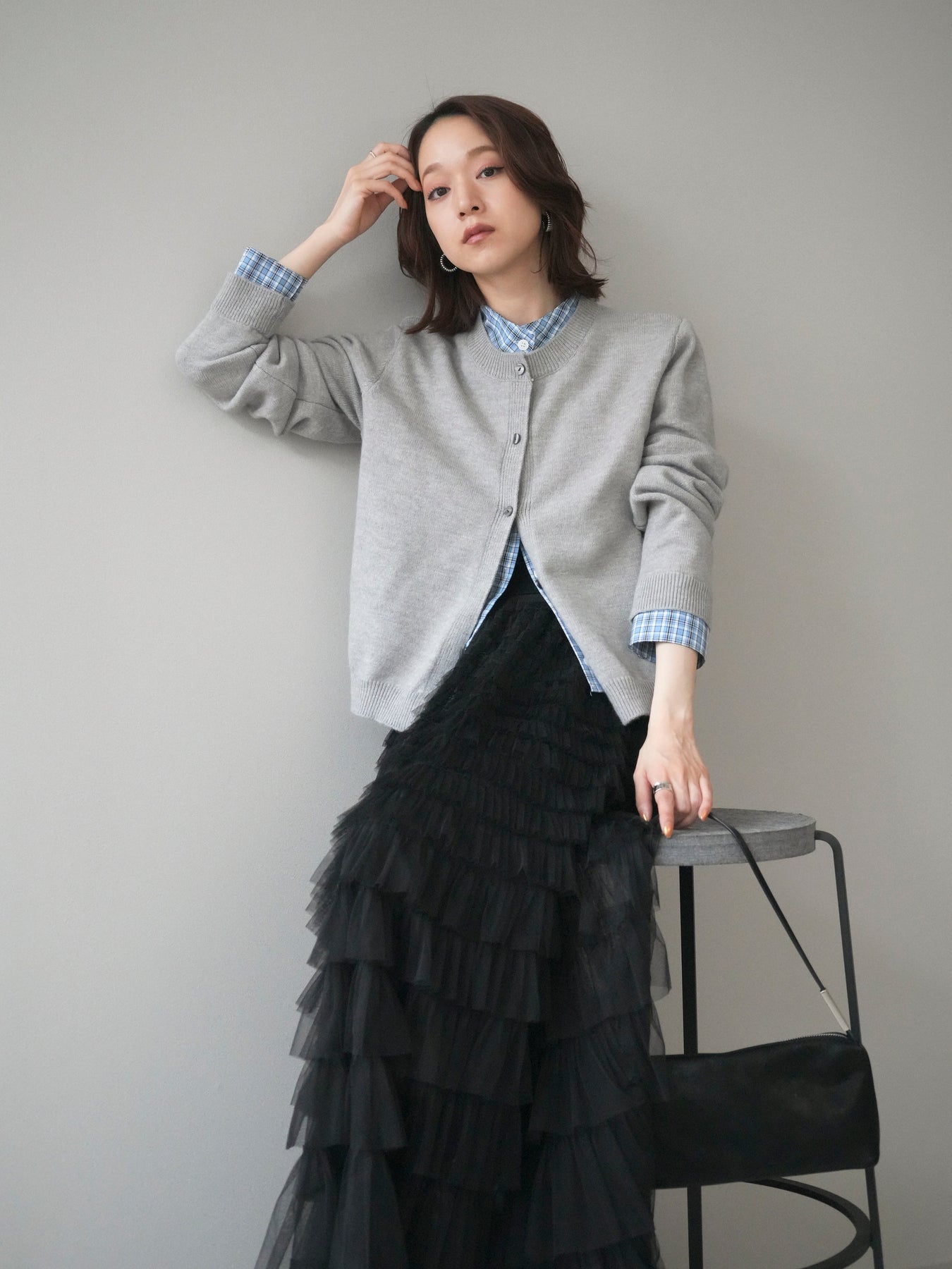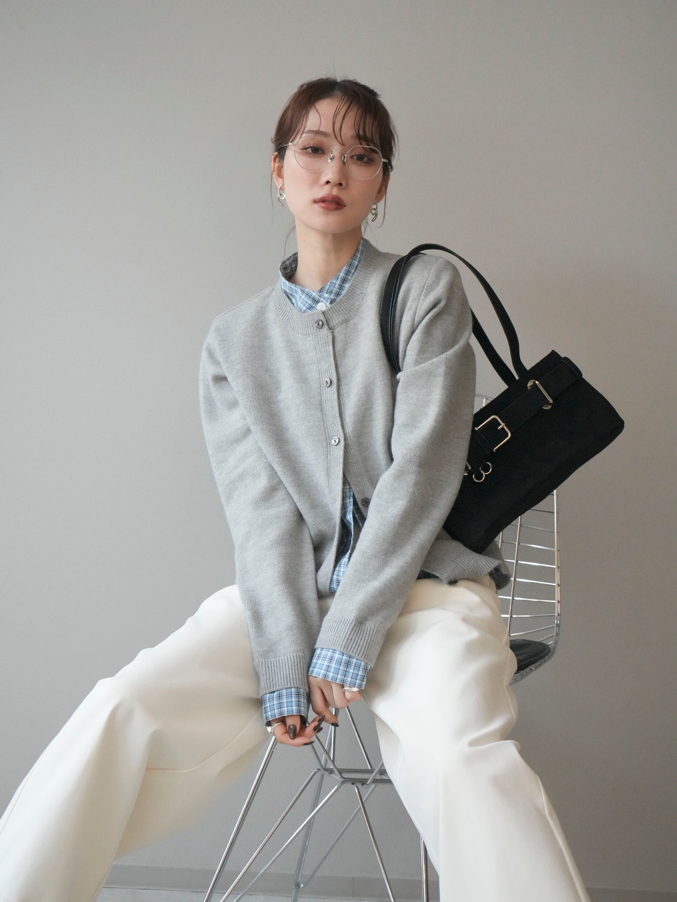 [予約]チェックシャツレイヤードデザインニットカーディガン/gray