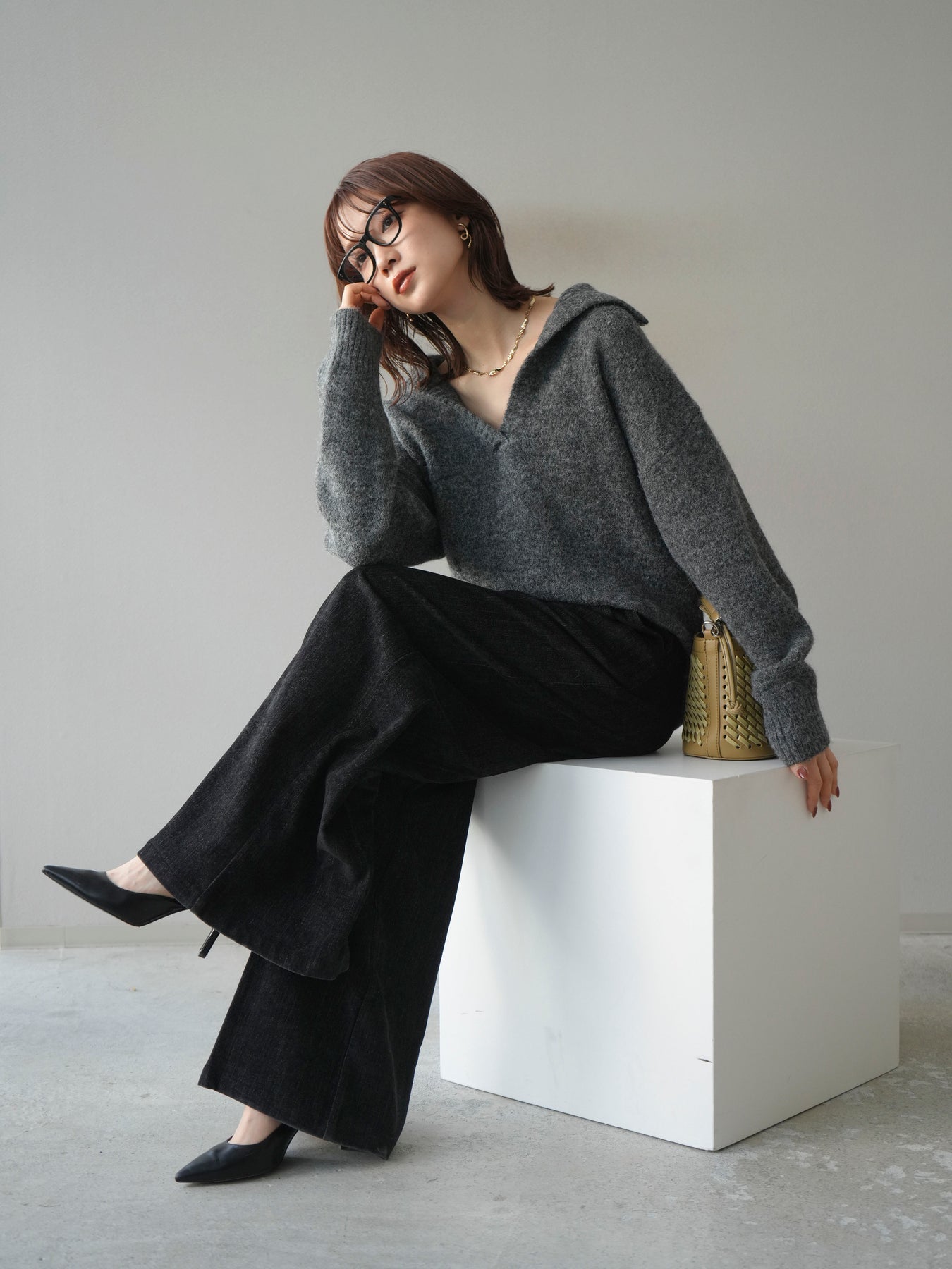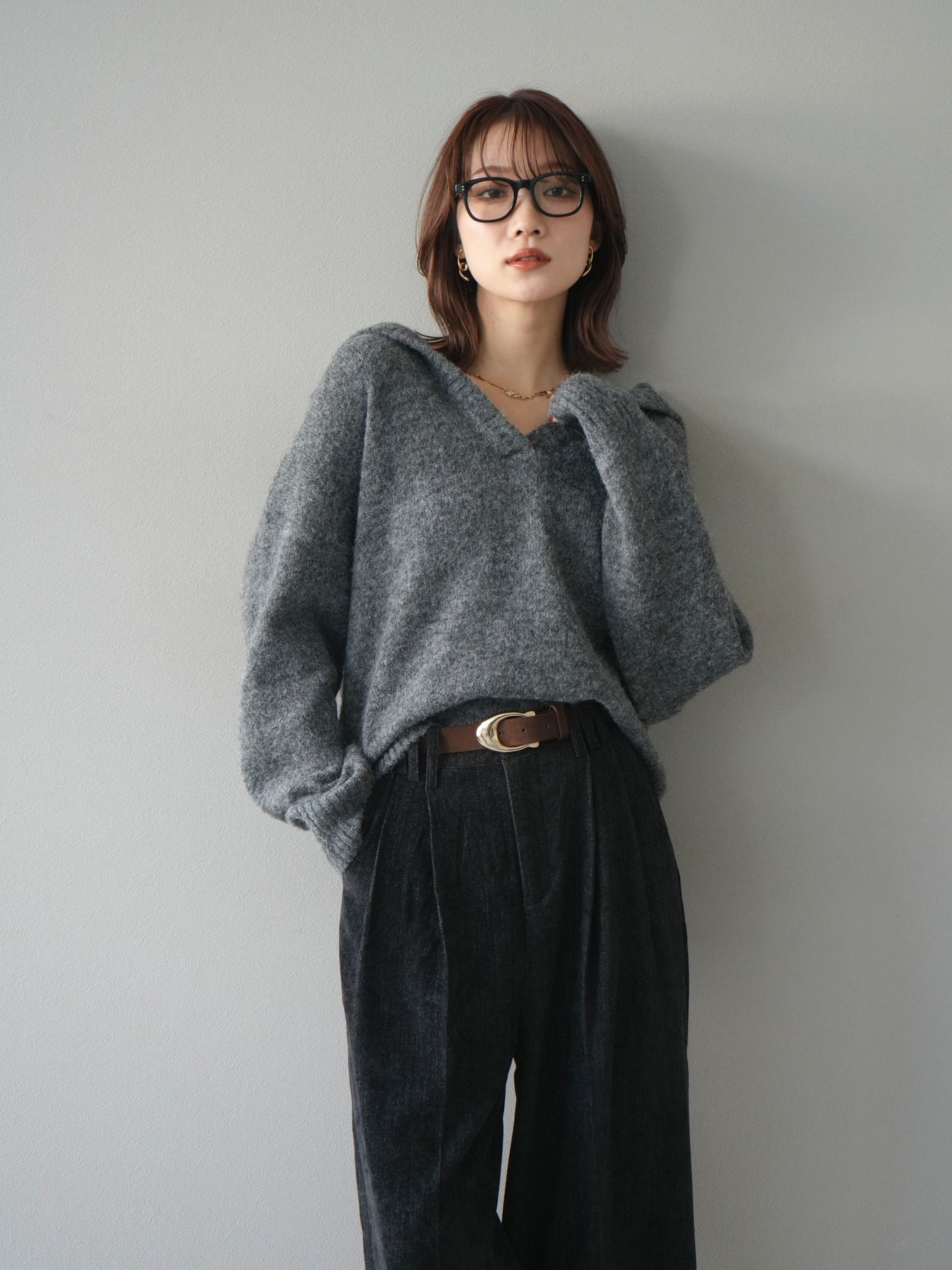 ふんわりとした柔らかな風合いが魅力のスキッパーニットプルオーバー。 深めのVネックラインが顔まわりをすっきりと見せ、抜け感のある大人の雰囲気を演出します。 襟付きのデザインでカジュアルになりすぎず、上品な印象に仕上げました。 ゆったりとしたシルエットでリラクシーな着心地ながら、着るだけでこなれたスタイルが完成します。 デニムやスラックス、スカートなど幅広いアイテムと相性が良く、シーズンの定番として長く活躍してくれる一着です。 ※ボトムス、キャミソール(インナー)以外の商品は一律でインナーは付属していません。