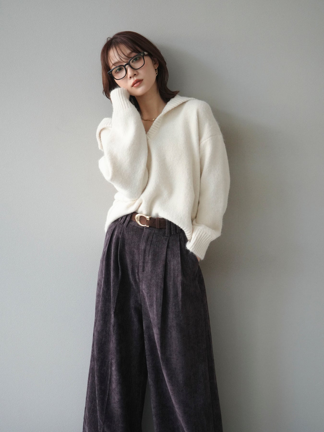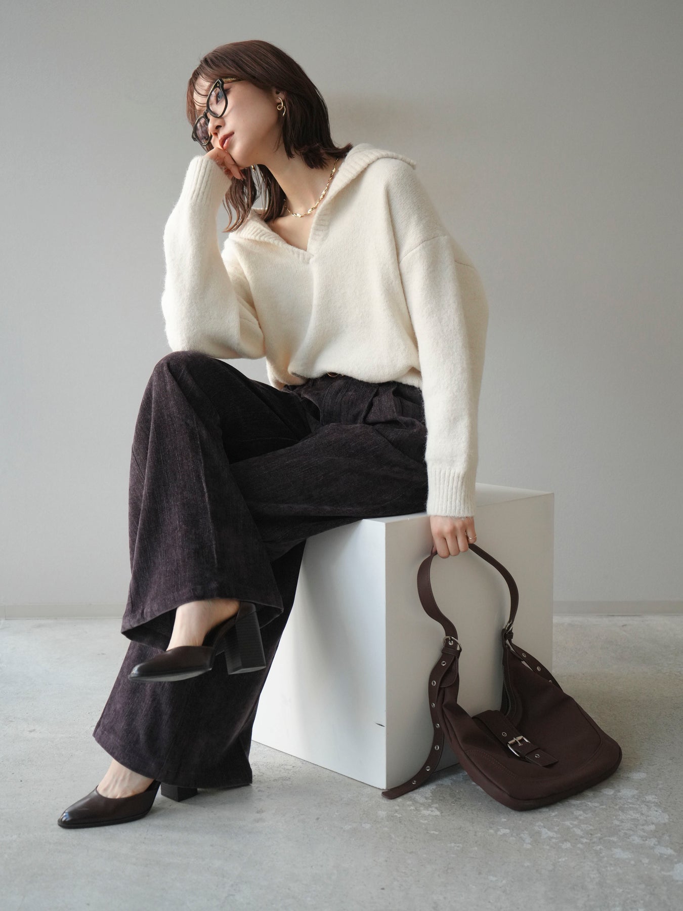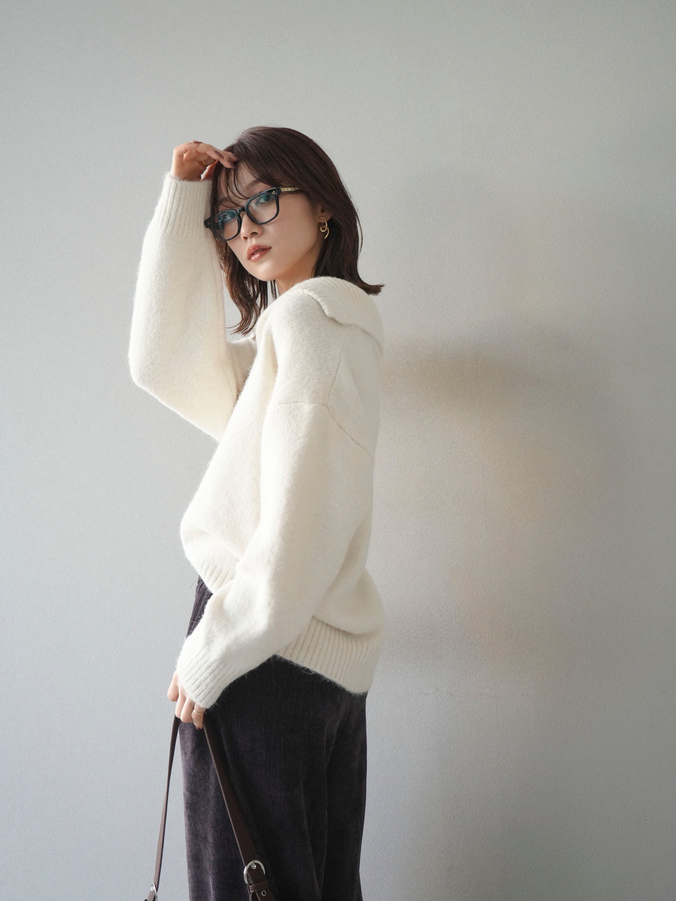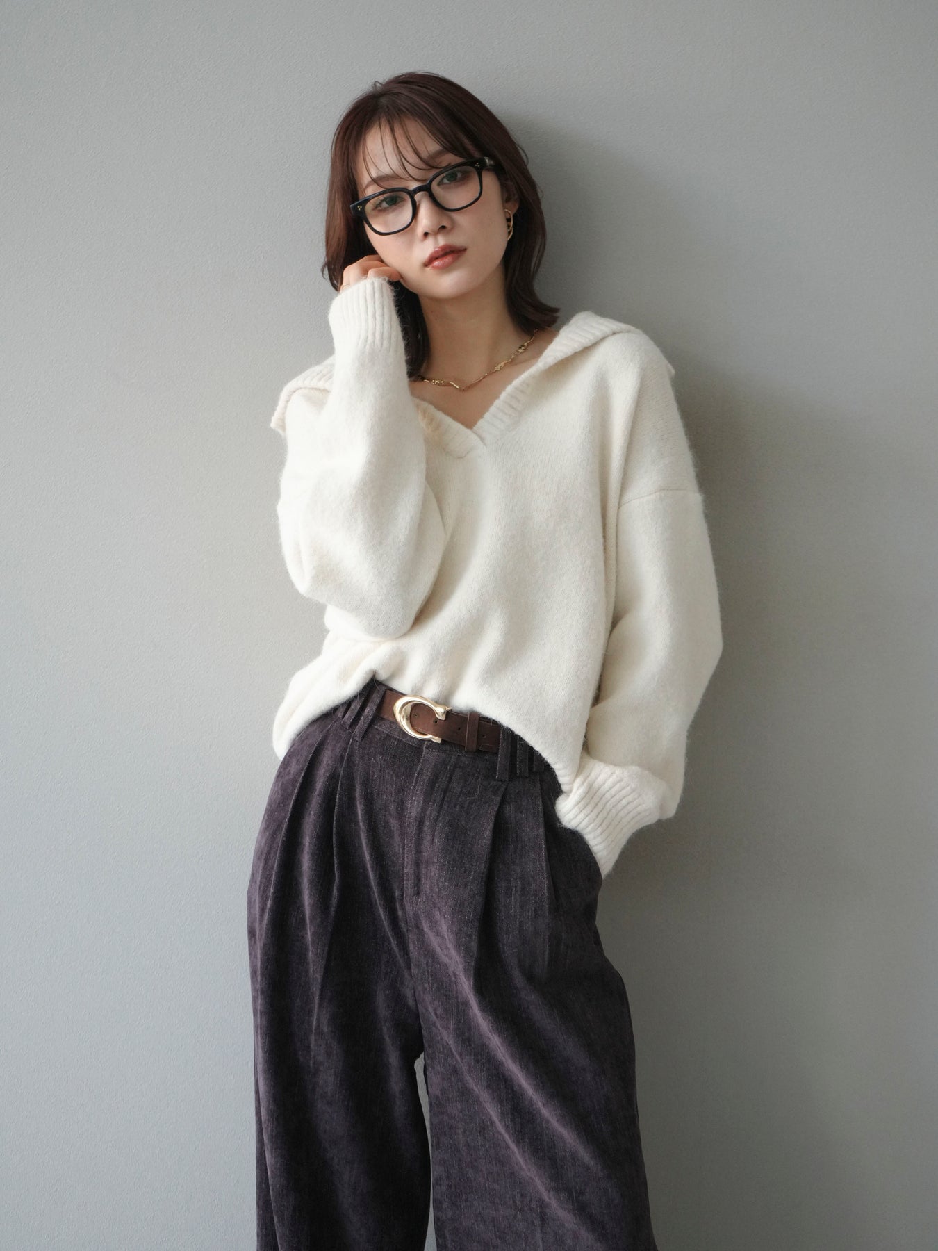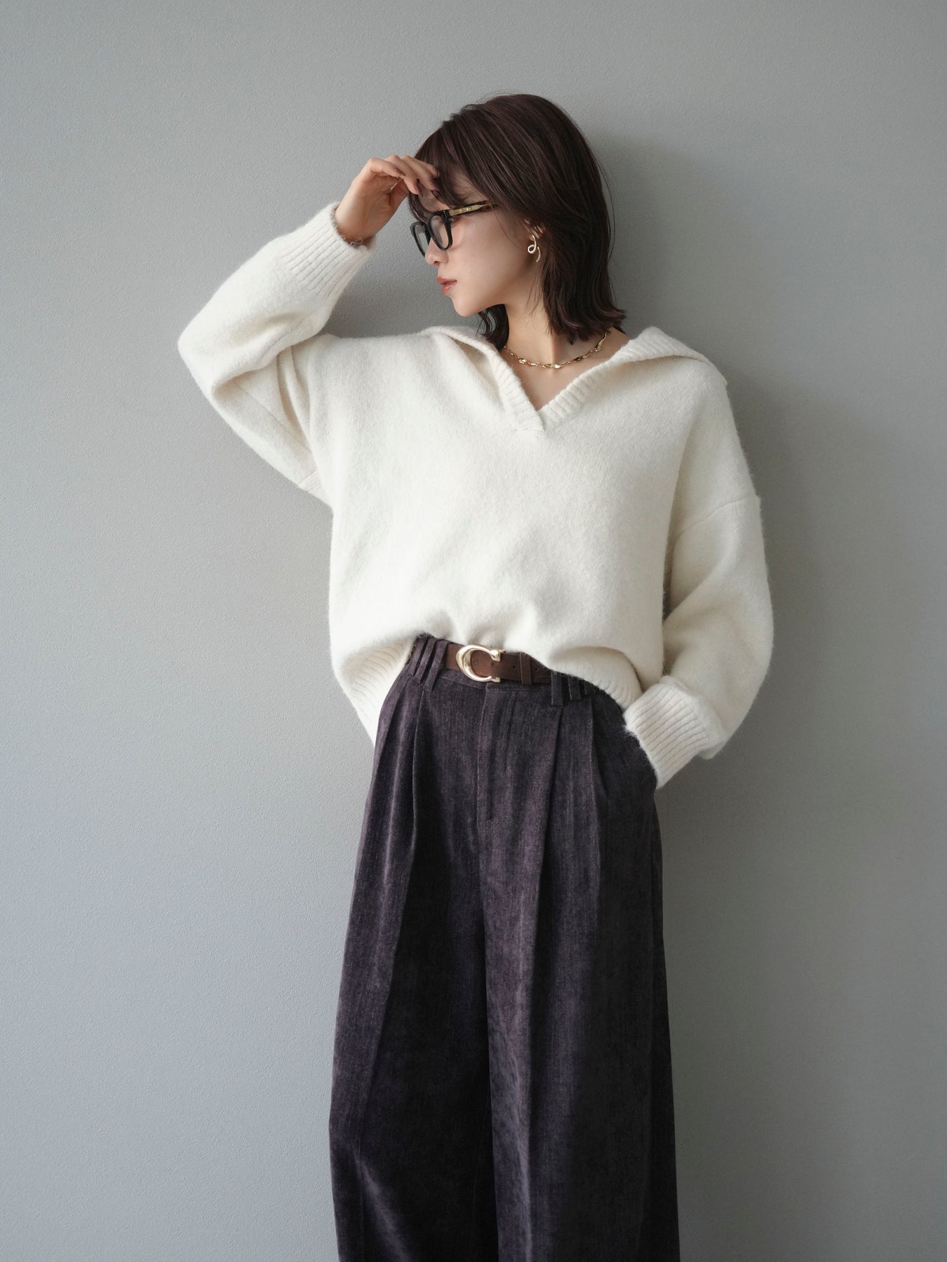 ふんわりとした柔らかな風合いが魅力のスキッパーニットプルオーバー。 深めのVネックラインが顔まわりをすっきりと見せ、抜け感のある大人の雰囲気を演出します。 襟付きのデザインでカジュアルになりすぎず、上品な印象に仕上げました。 ゆったりとしたシルエットでリラクシーな着心地ながら、着るだけでこなれたスタイルが完成します。 デニムやスラックス、スカートなど幅広いアイテムと相性が良く、シーズンの定番として長く活躍してくれる一着です。 ※ボトムス、キャミソール(インナー)以外の商品は一律でインナーは付属していません。