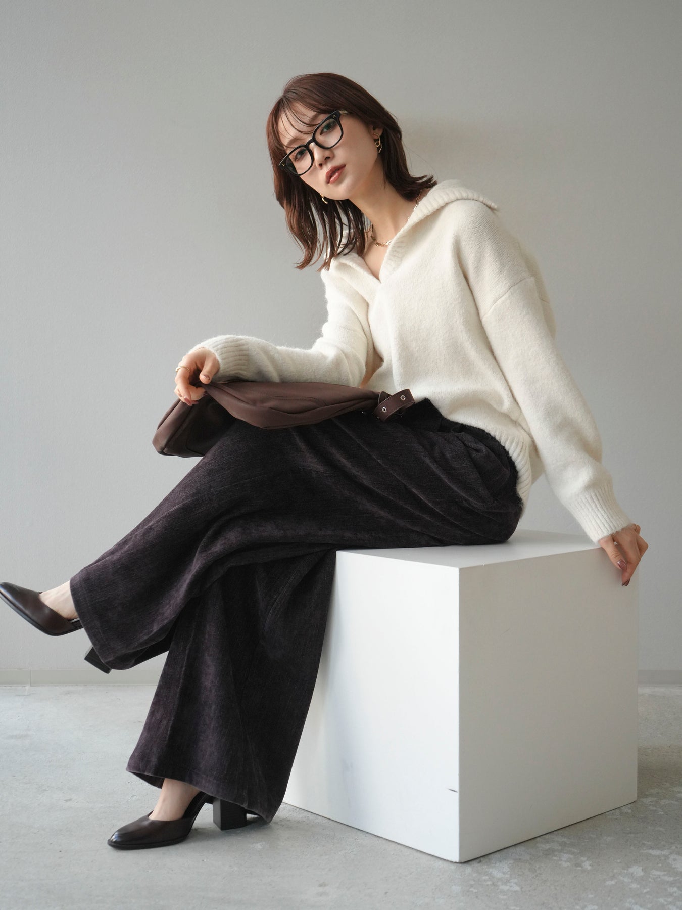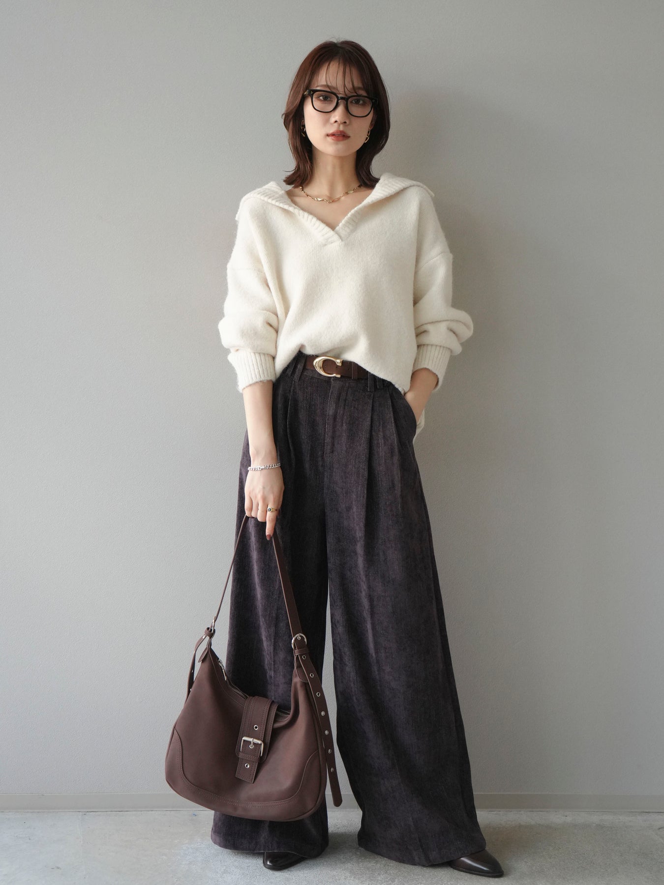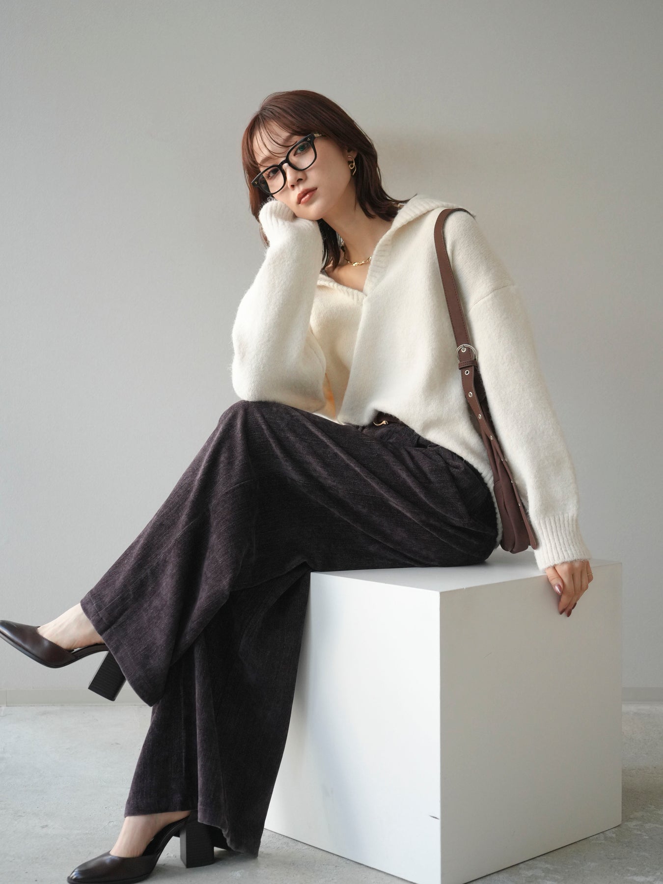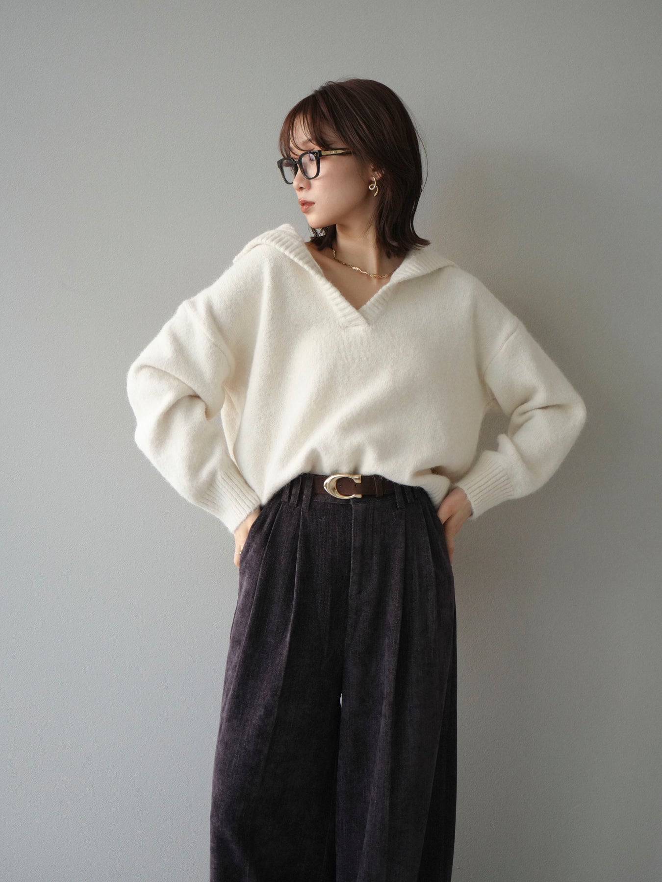 ふんわりとした柔らかな風合いが魅力のスキッパーニットプルオーバー。 深めのVネックラインが顔まわりをすっきりと見せ、抜け感のある大人の雰囲気を演出します。 襟付きのデザインでカジュアルになりすぎず、上品な印象に仕上げました。 ゆったりとしたシルエットでリラクシーな着心地ながら、着るだけでこなれたスタイルが完成します。 デニムやスラックス、スカートなど幅広いアイテムと相性が良く、シーズンの定番として長く活躍してくれる一着です。 ※ボトムス、キャミソール(インナー)以外の商品は一律でインナーは付属していません。