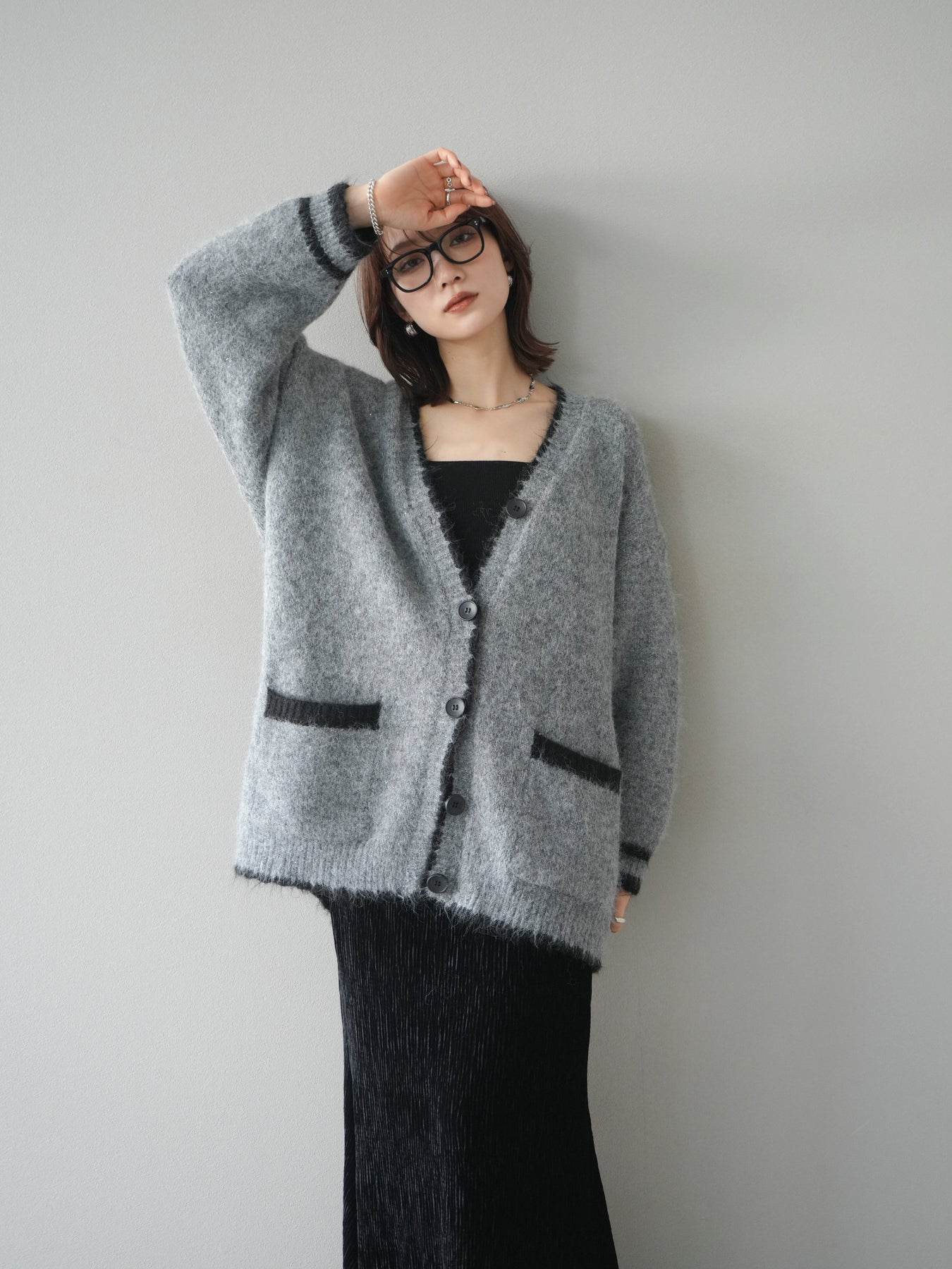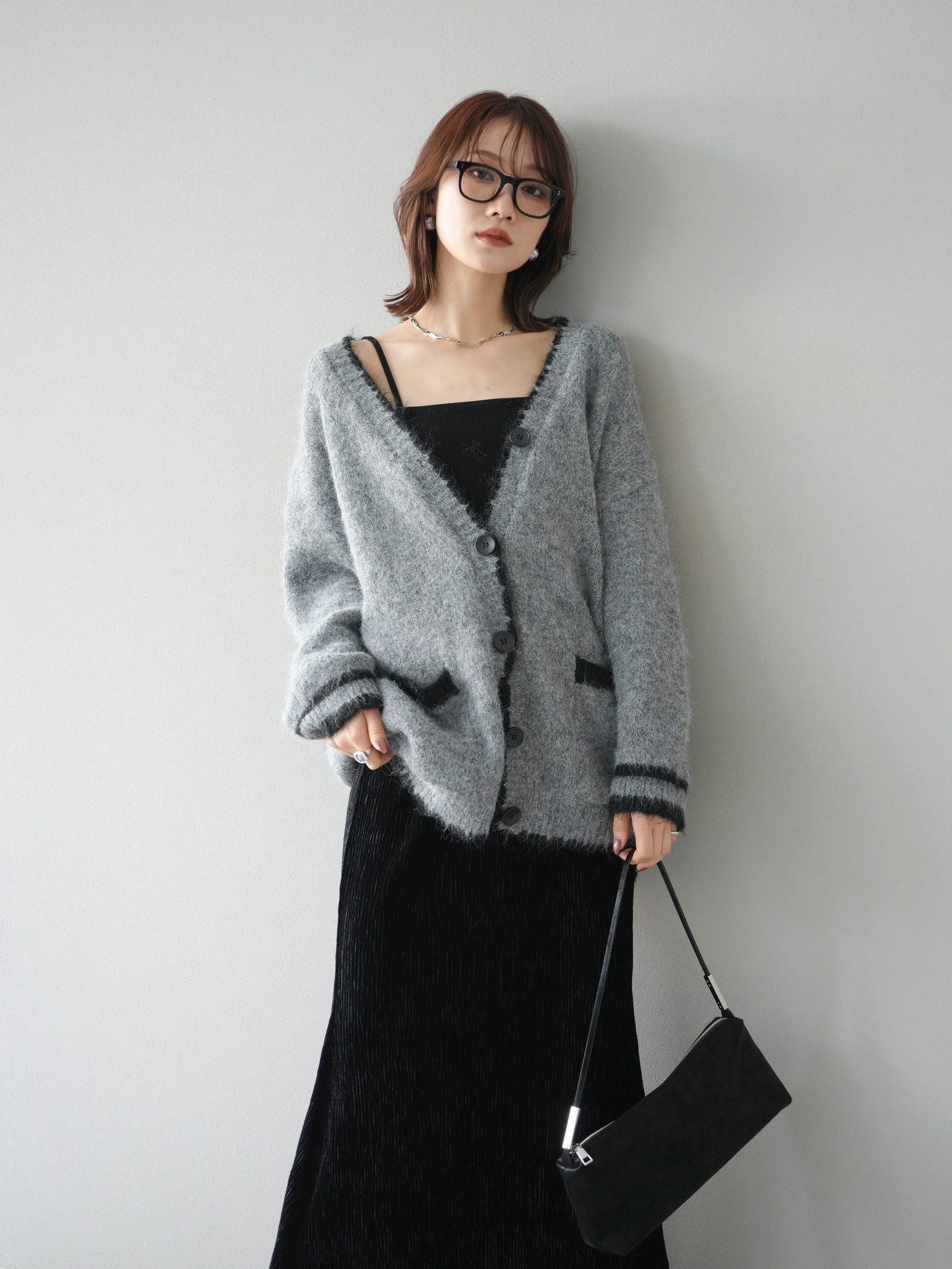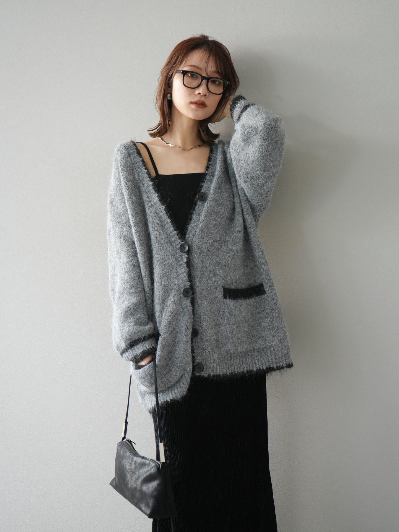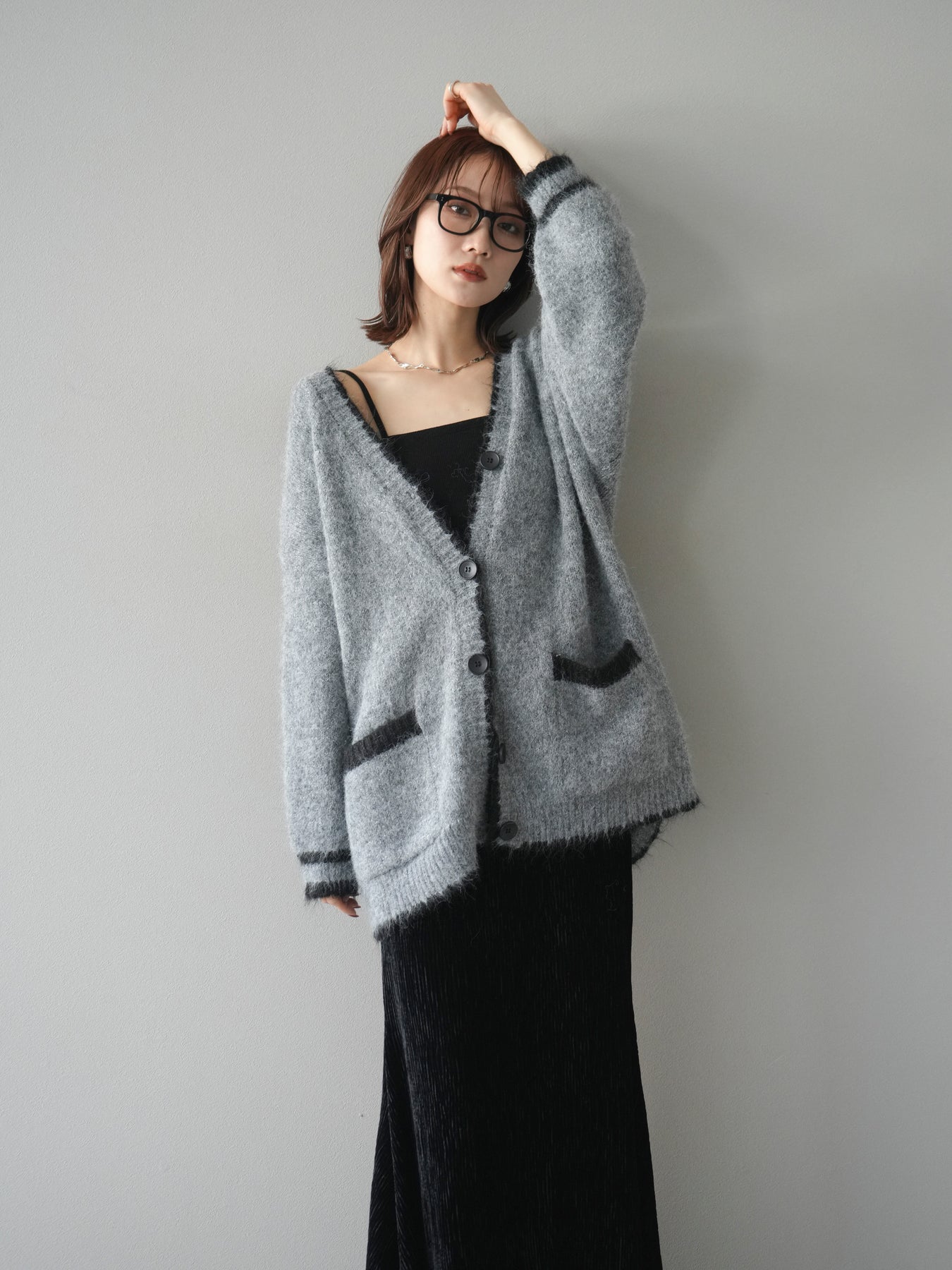 ふんわりとした柔らかなニットに、さりげないラメ糸が華やかさを添えるバイカラーカーディガン。 ゆるめのシルエットが抜け感を演出し、リラクシーな雰囲気ながらも上品に仕上がります。 配色のトリミングデザインが全体を引き締め、シンプルなコーディネートにアクセントをプラス。 軽く羽織るだけでスタイルがまとまり、デイリーからお出かけシーンまで幅広く活躍するアイテムです。 ※ボトムス、キャミソール(インナー)以外の商品は一律でインナーは付属していません。