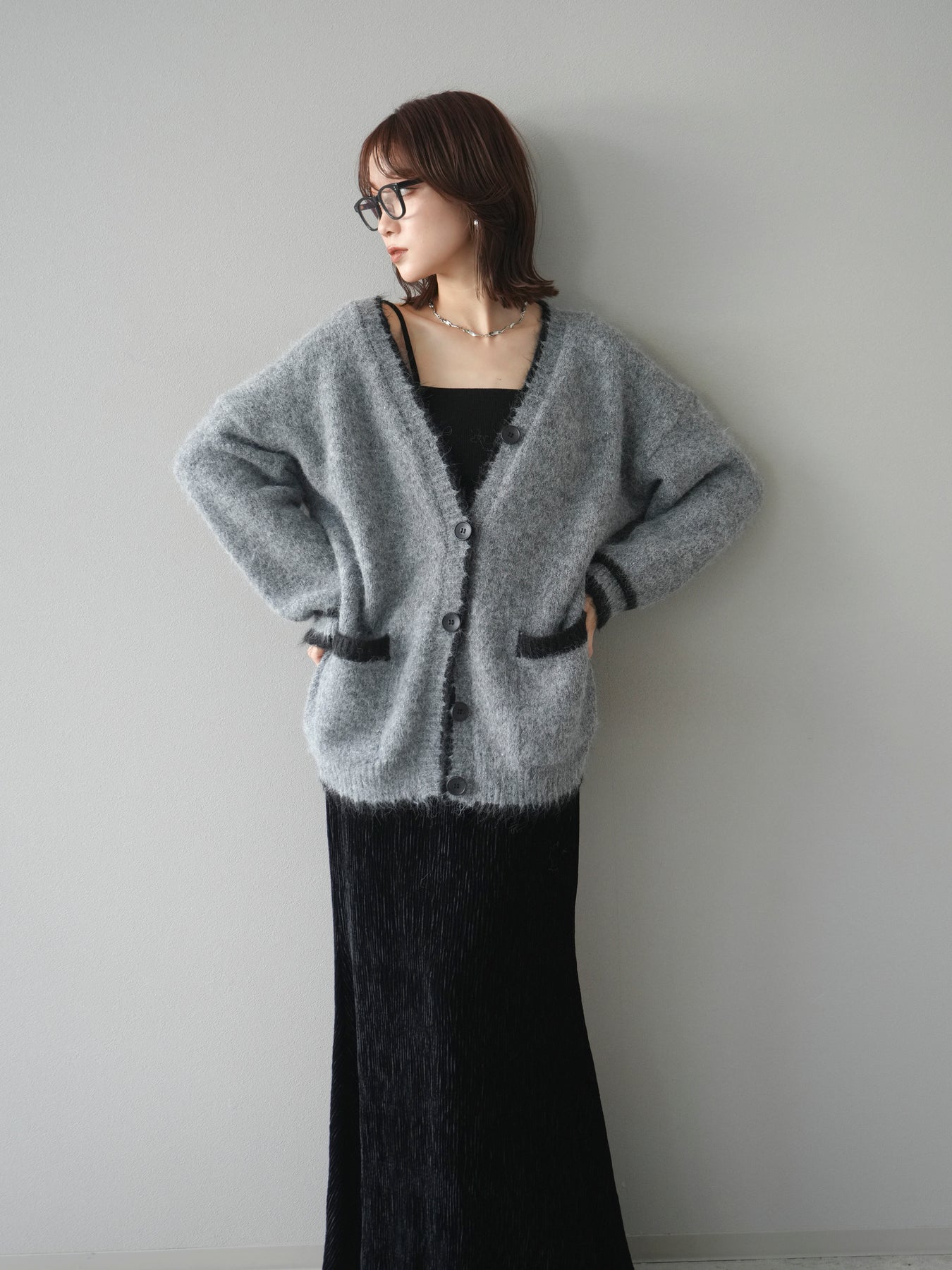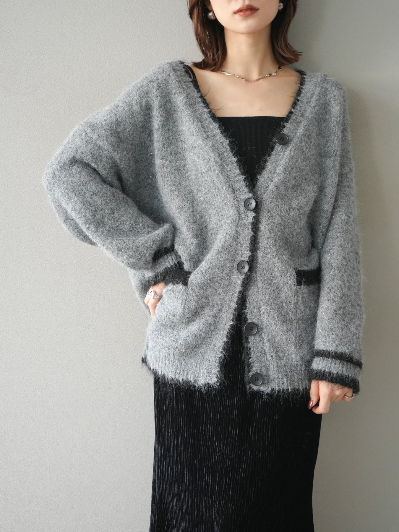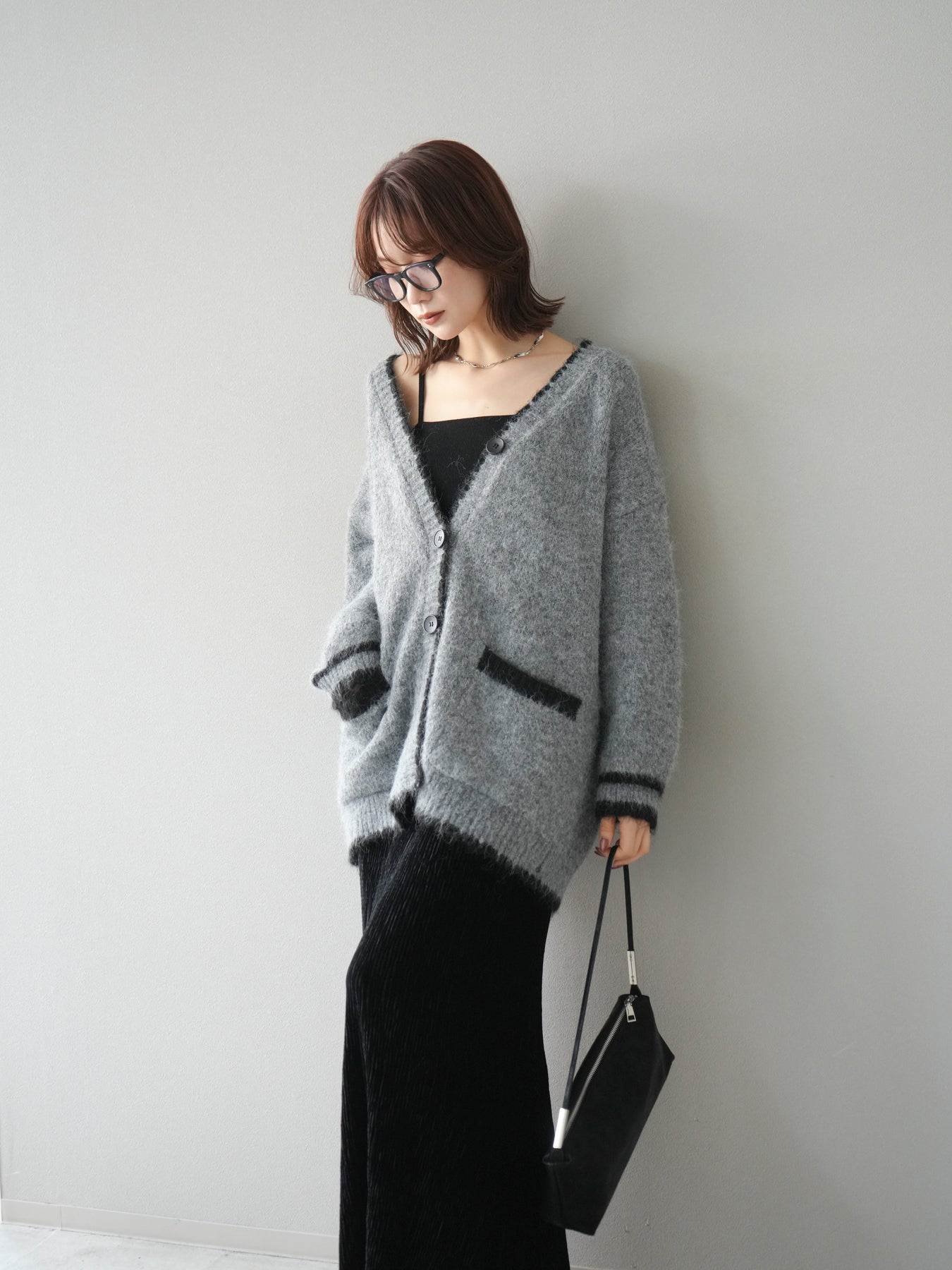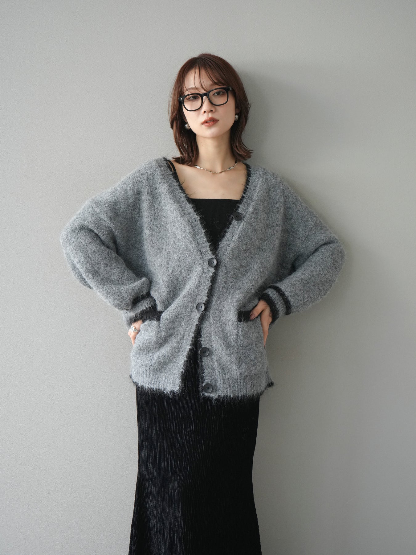 ふんわりとした柔らかなニットに、さりげないラメ糸が華やかさを添えるバイカラーカーディガン。 ゆるめのシルエットが抜け感を演出し、リラクシーな雰囲気ながらも上品に仕上がります。 配色のトリミングデザインが全体を引き締め、シンプルなコーディネートにアクセントをプラス。 軽く羽織るだけでスタイルがまとまり、デイリーからお出かけシーンまで幅広く活躍するアイテムです。 ※ボトムス、キャミソール(インナー)以外の商品は一律でインナーは付属していません。