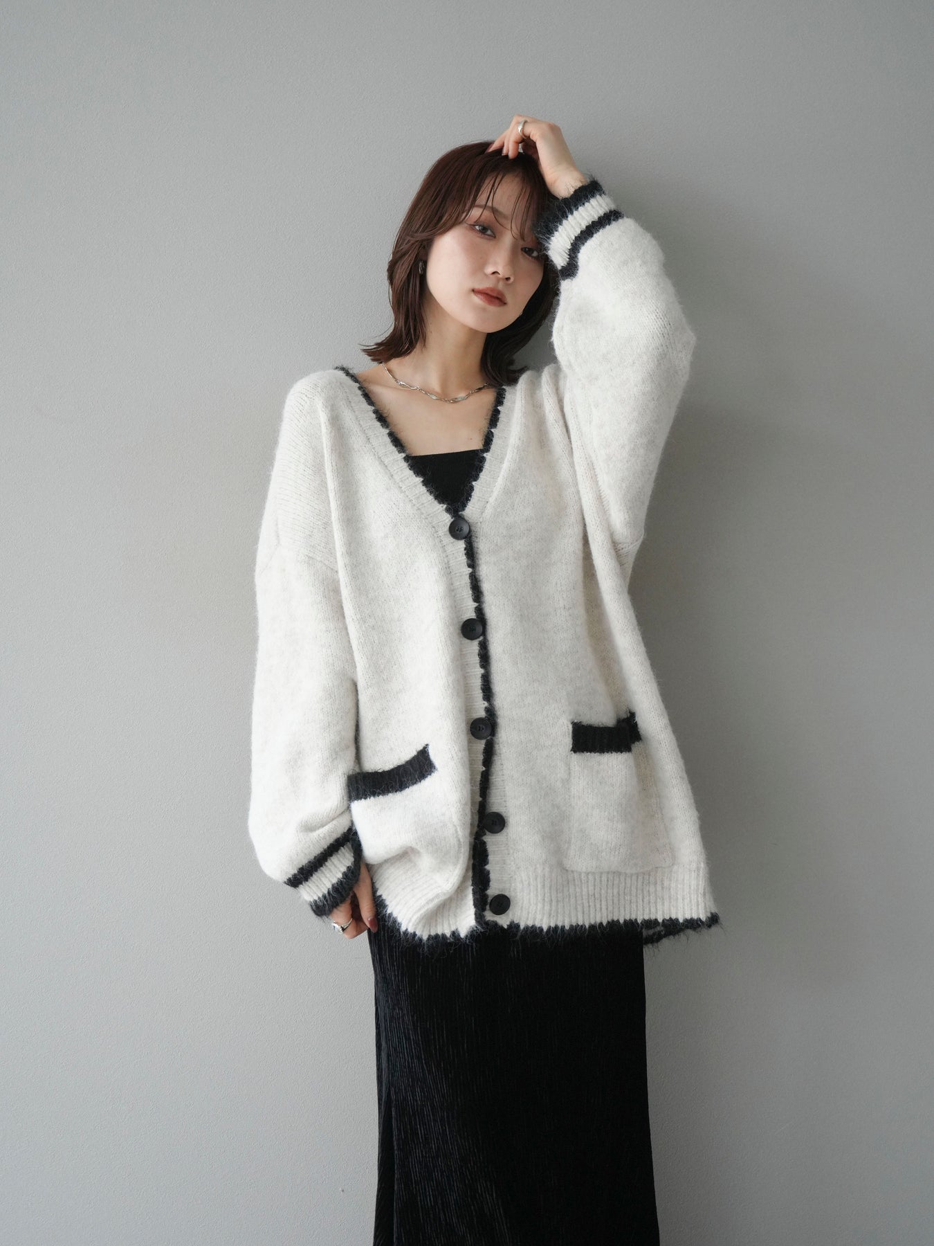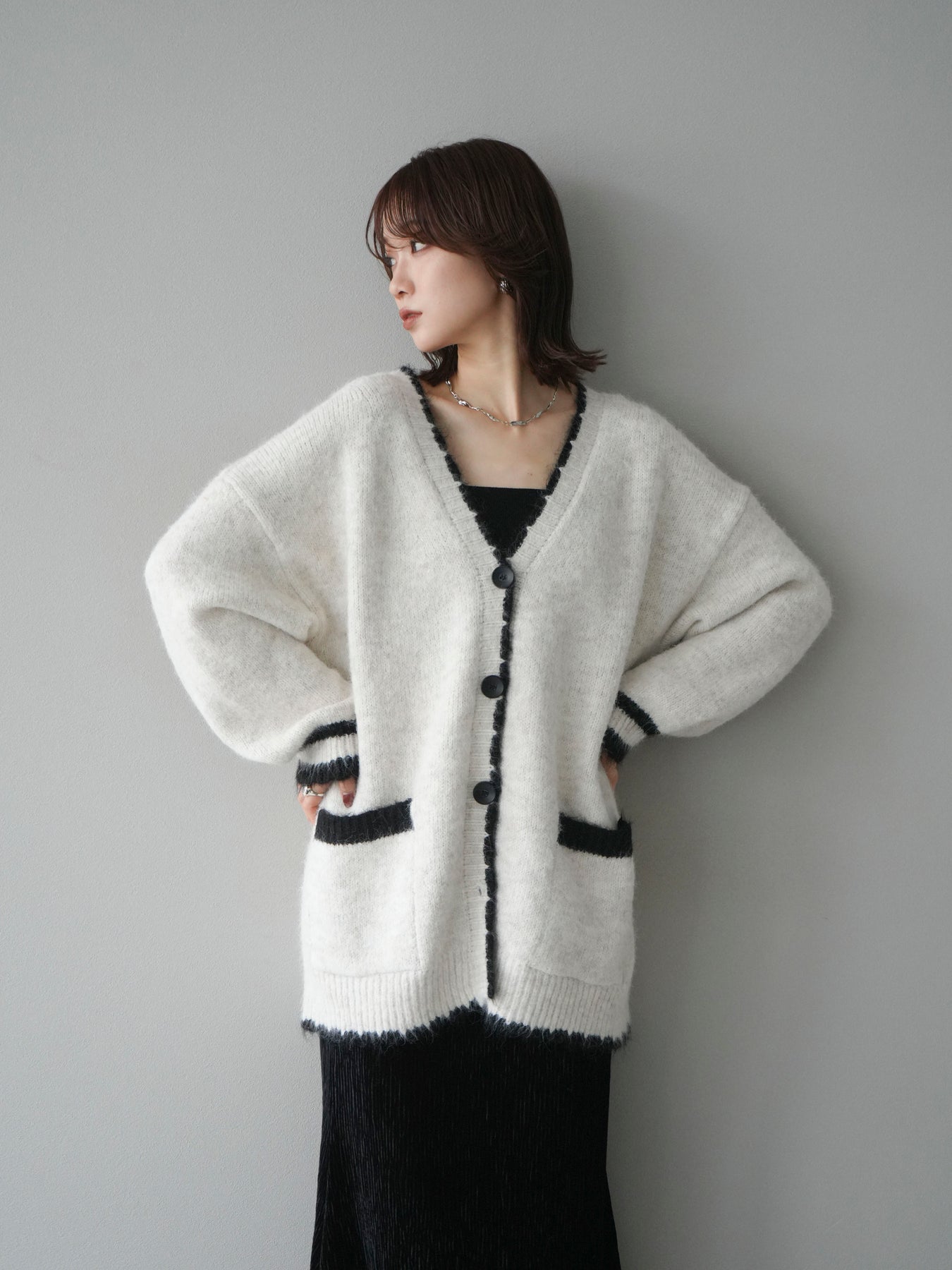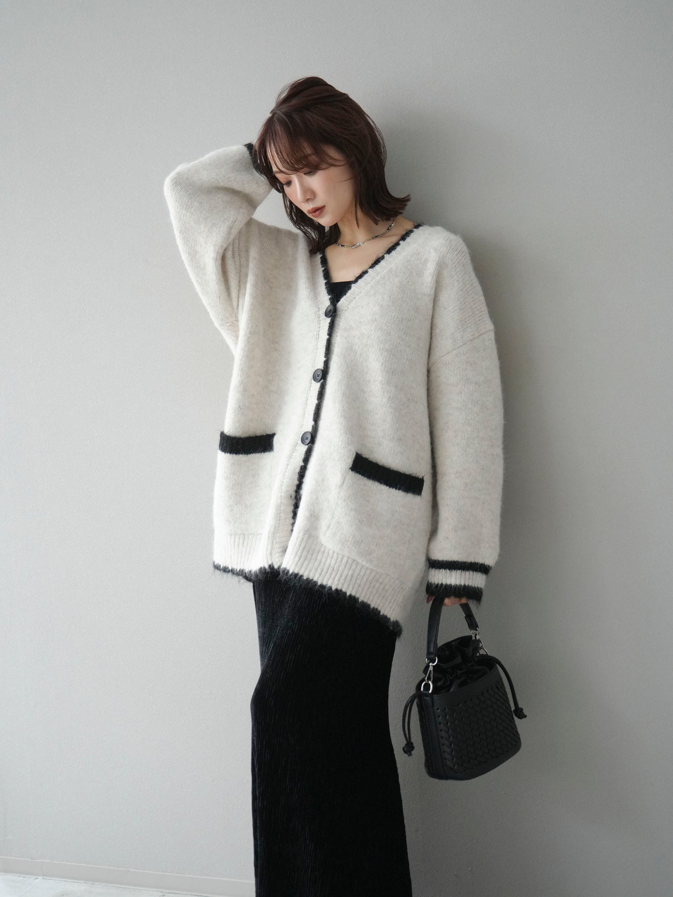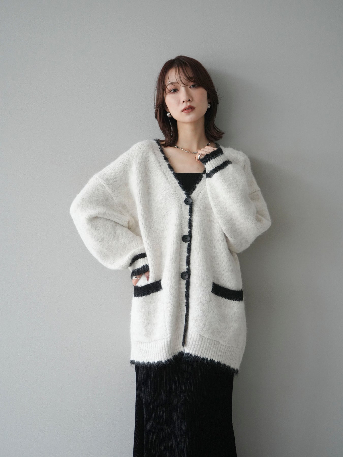 ふんわりとした柔らかなニットに、さりげないラメ糸が華やかさを添えるバイカラーカーディガン。 ゆるめのシルエットが抜け感を演出し、リラクシーな雰囲気ながらも上品に仕上がります。 配色のトリミングデザインが全体を引き締め、シンプルなコーディネートにアクセントをプラス。 軽く羽織るだけでスタイルがまとまり、デイリーからお出かけシーンまで幅広く活躍するアイテムです。 ※ボトムス、キャミソール(インナー)以外の商品は一律でインナーは付属していません。