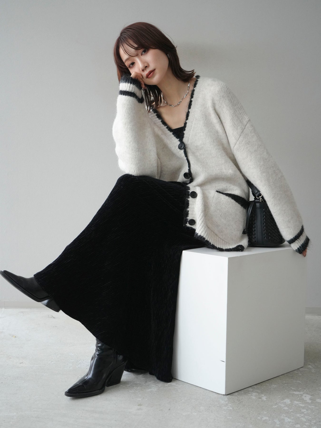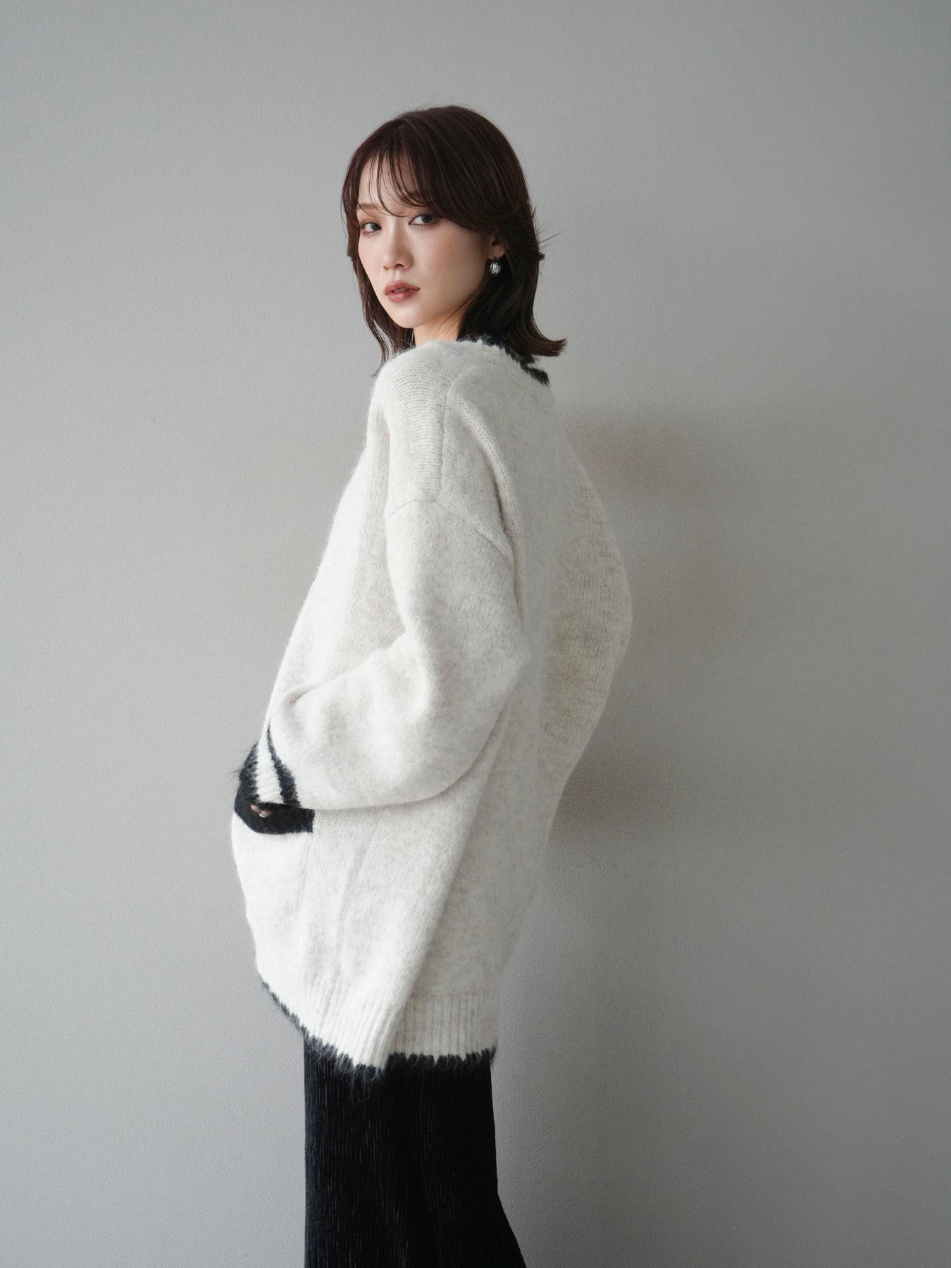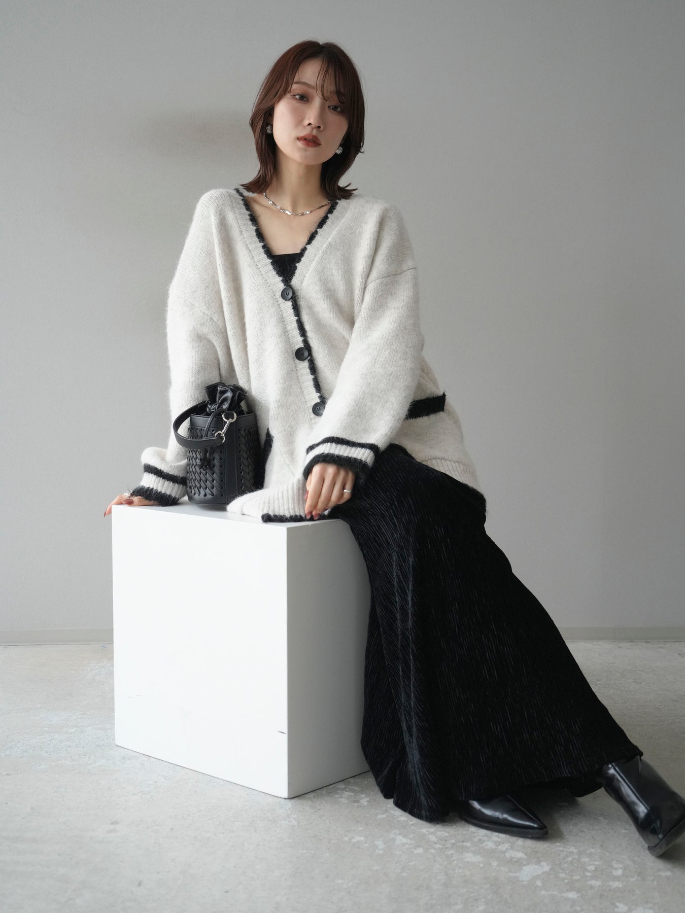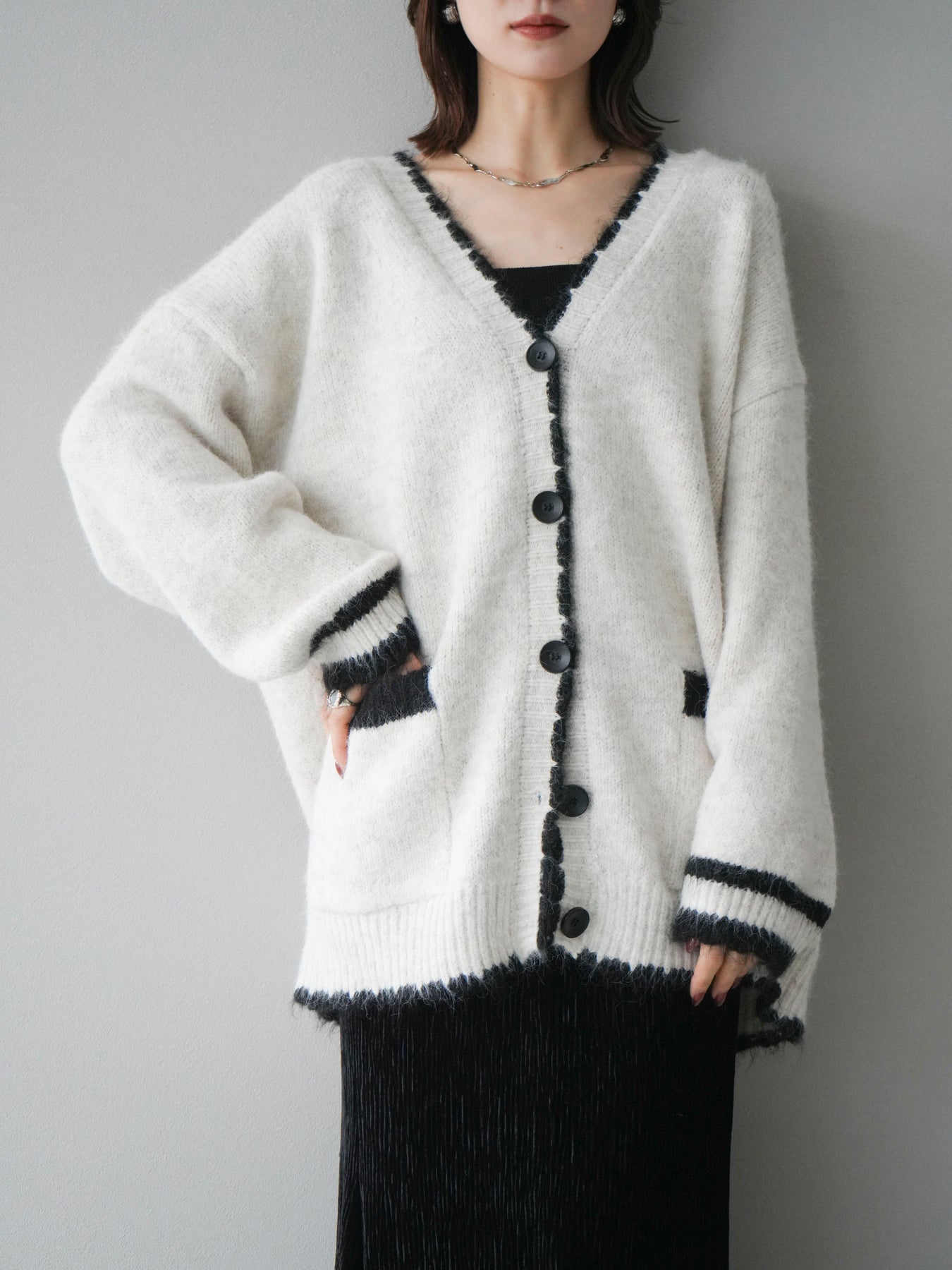 ふんわりとした柔らかなニットに、さりげないラメ糸が華やかさを添えるバイカラーカーディガン。 ゆるめのシルエットが抜け感を演出し、リラクシーな雰囲気ながらも上品に仕上がります。 配色のトリミングデザインが全体を引き締め、シンプルなコーディネートにアクセントをプラス。 軽く羽織るだけでスタイルがまとまり、デイリーからお出かけシーンまで幅広く活躍するアイテムです。 ※ボトムス、キャミソール(インナー)以外の商品は一律でインナーは付属していません。