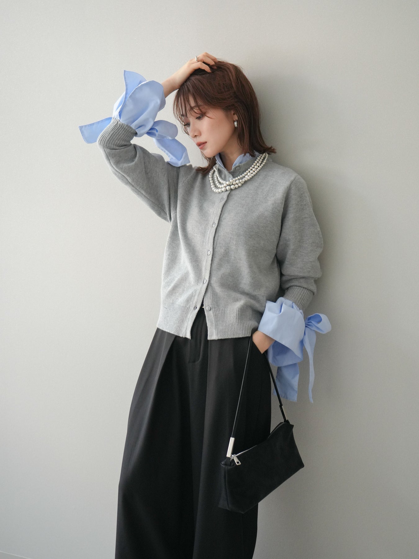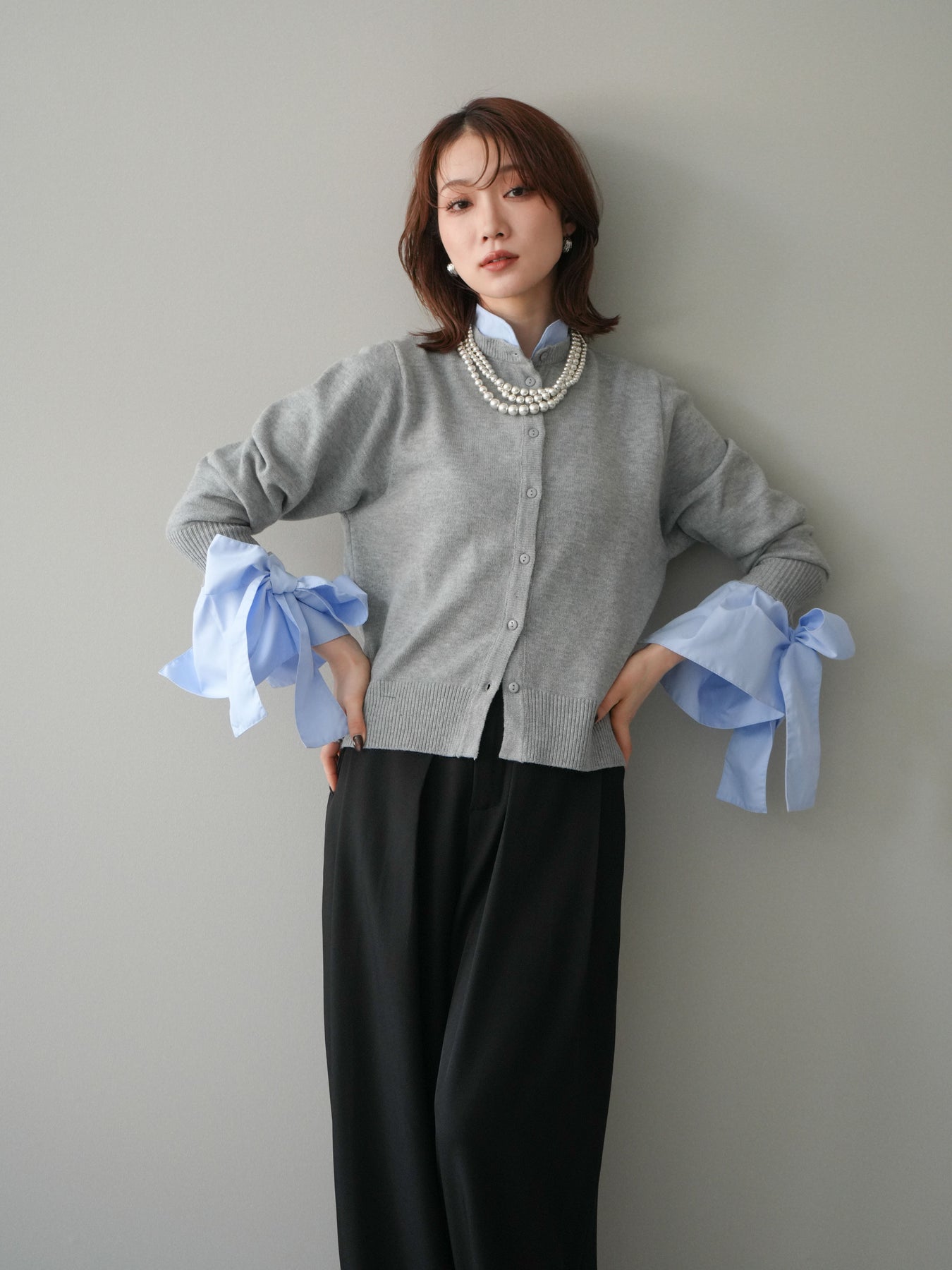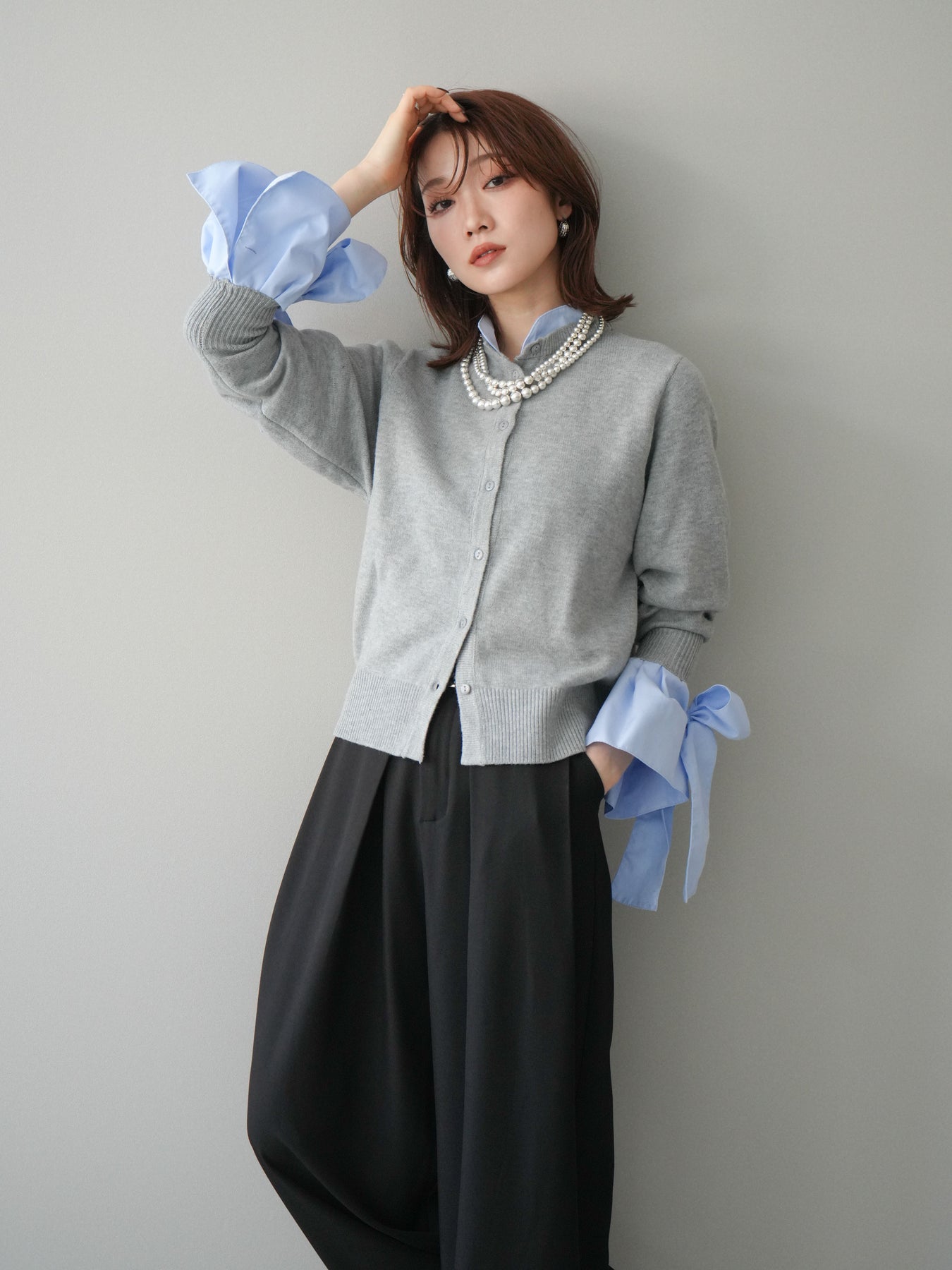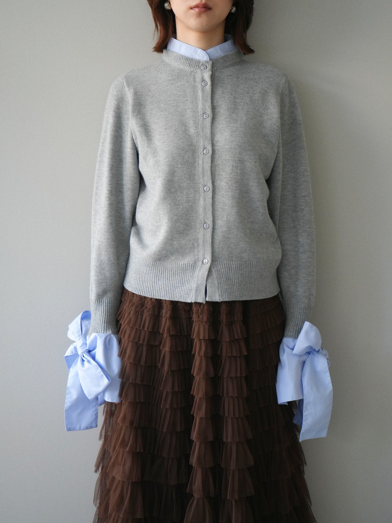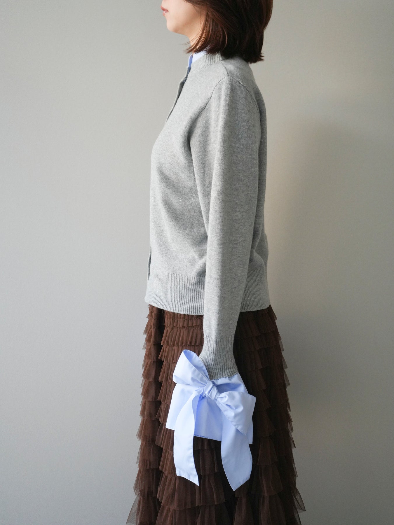 [予約]ウールライクリボンシャツカーディガン/gray