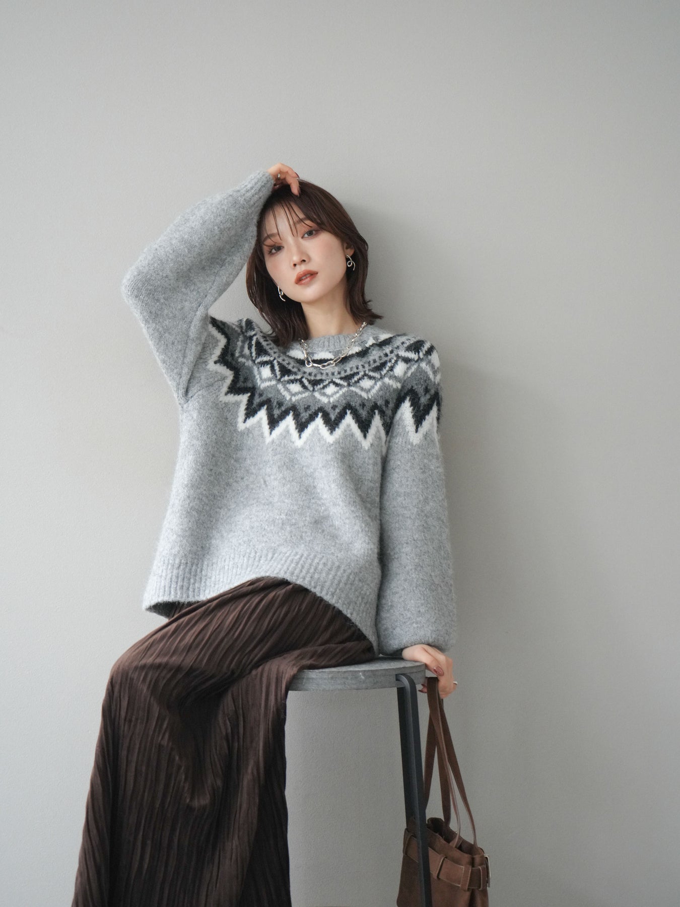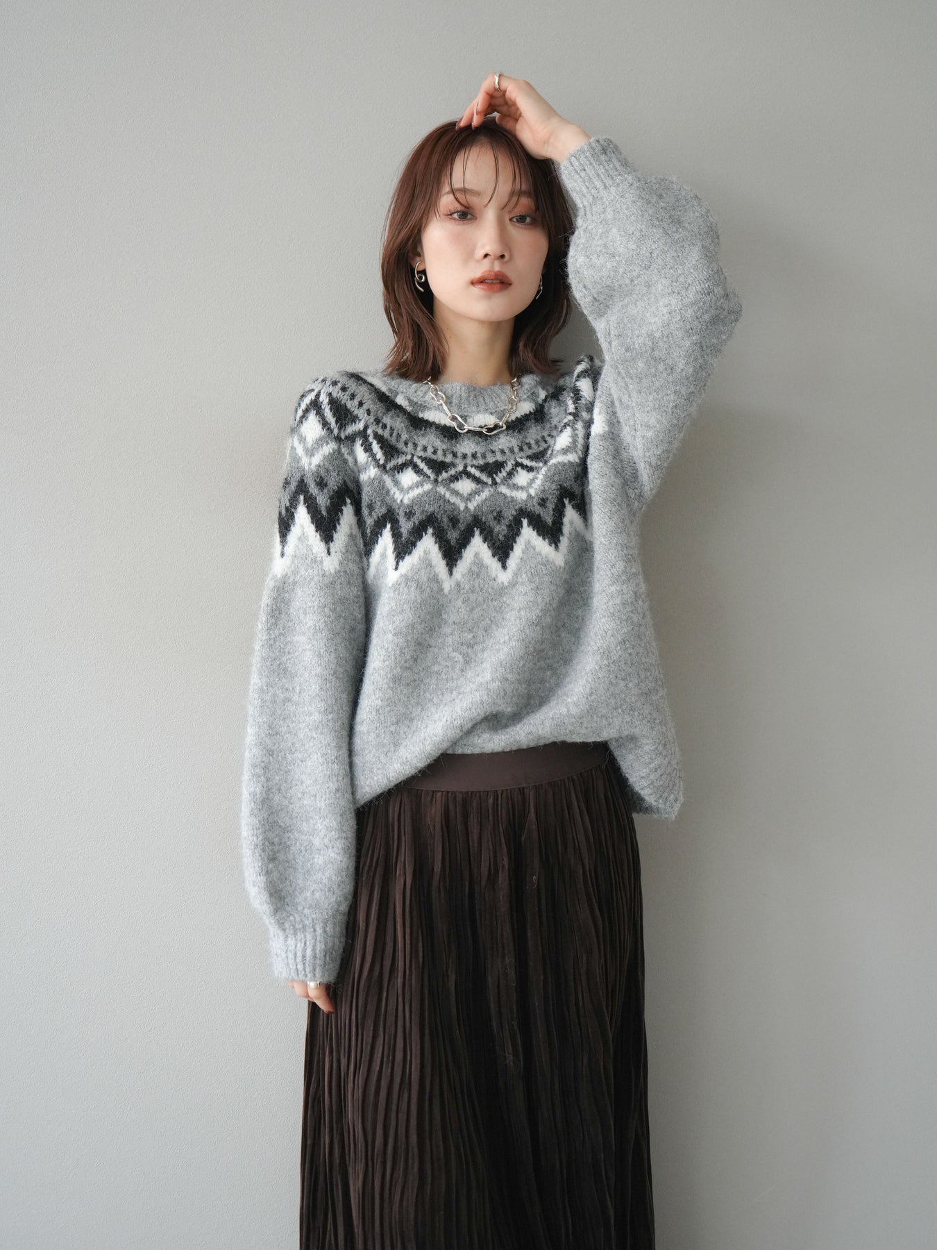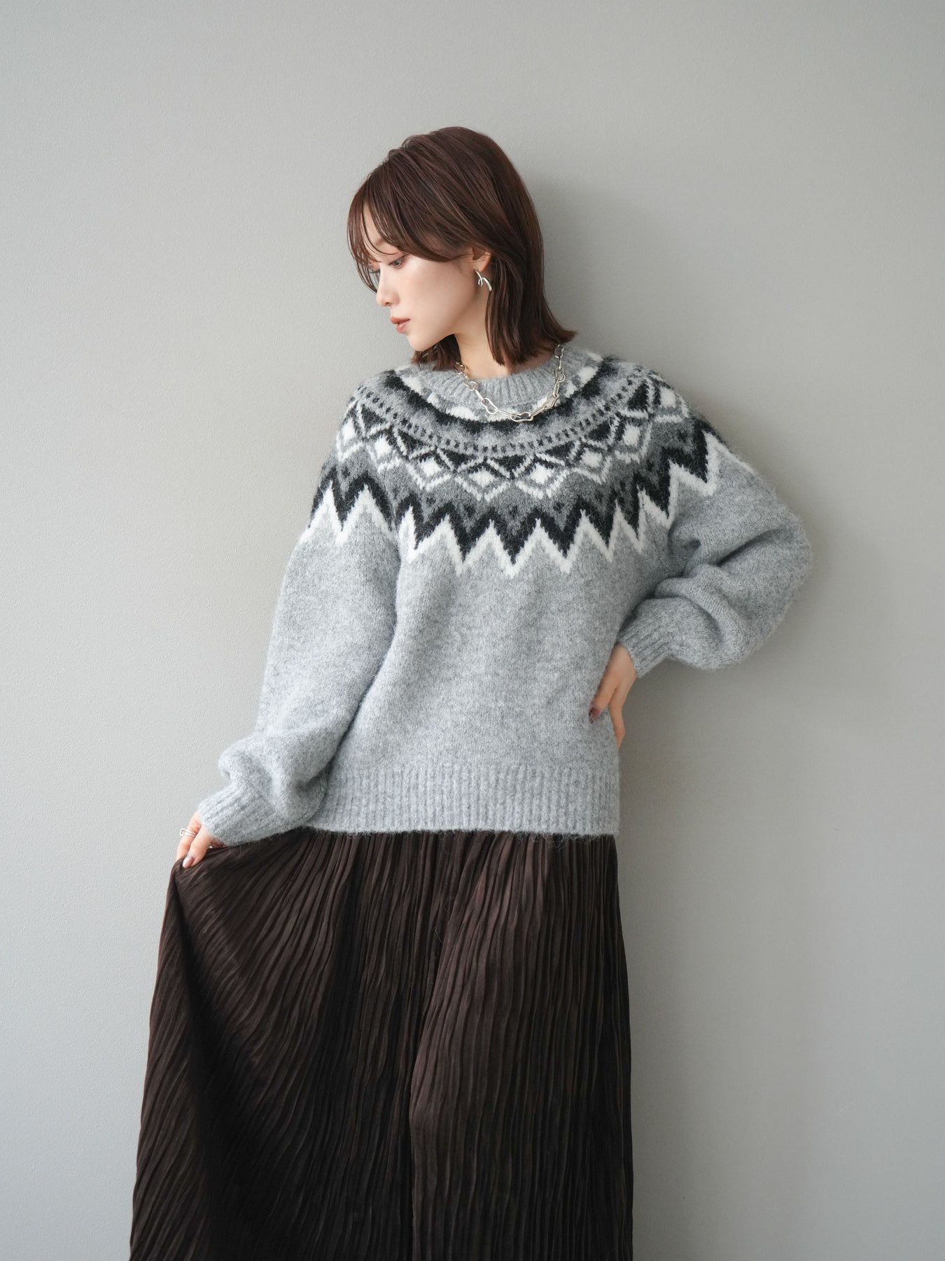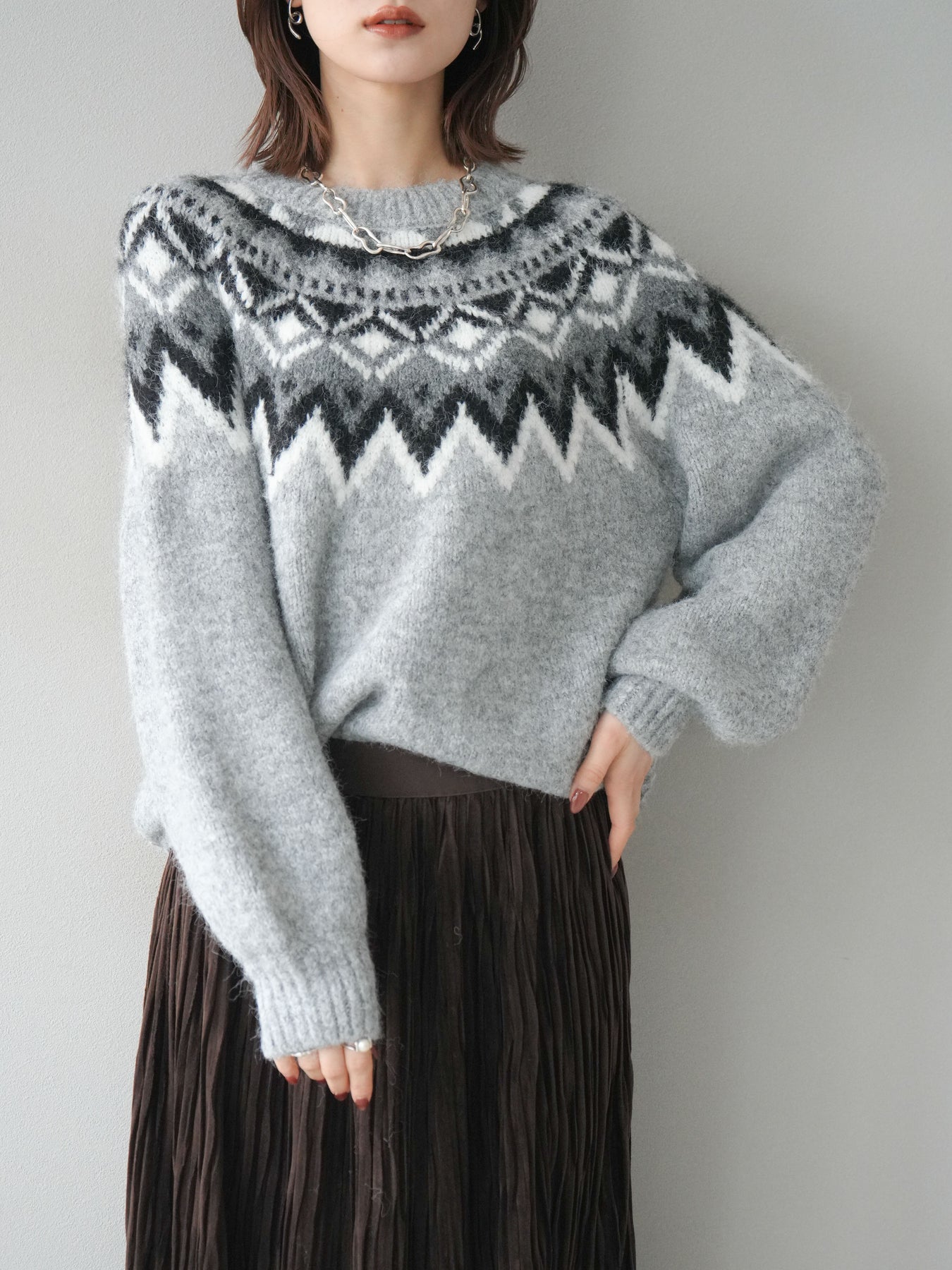 [予約]求心柄オーバーニットプルオーバー/gray