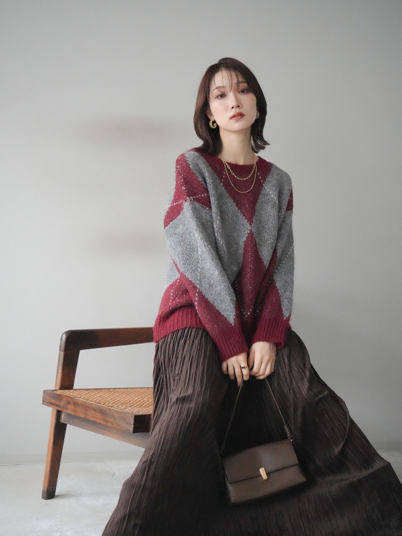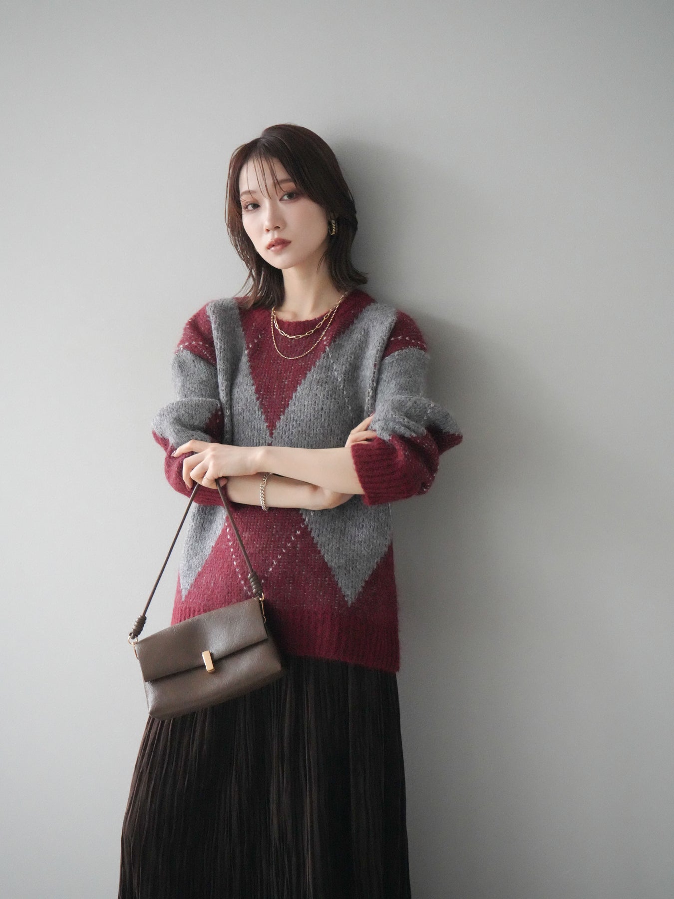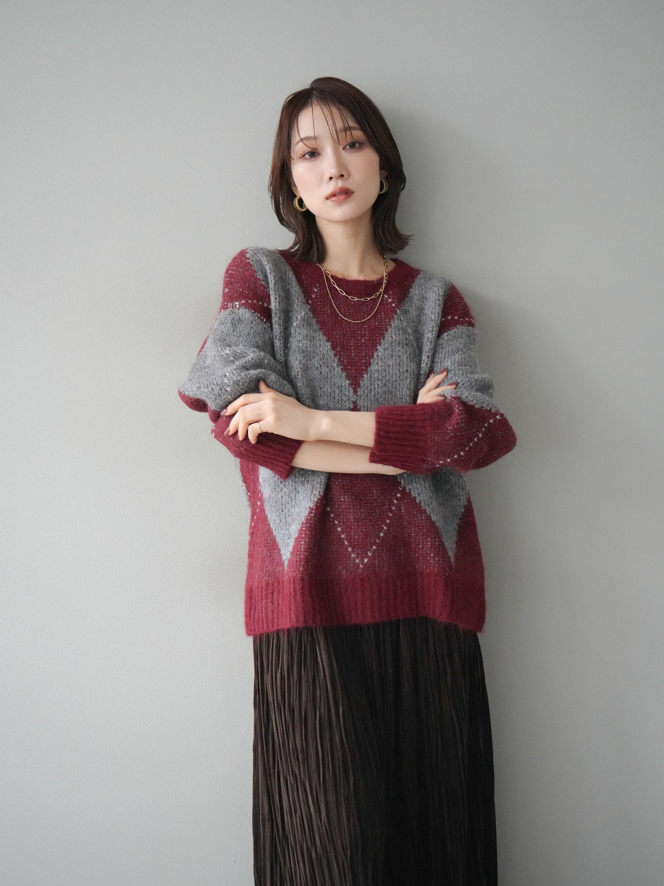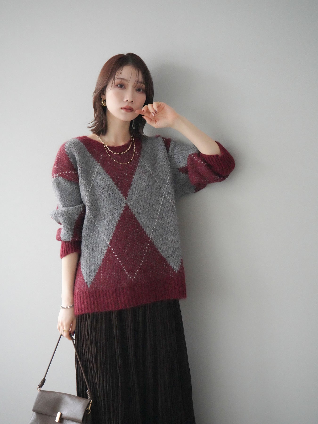 [予約]アーガイルオーバーニットプルオーバー/bordeaux