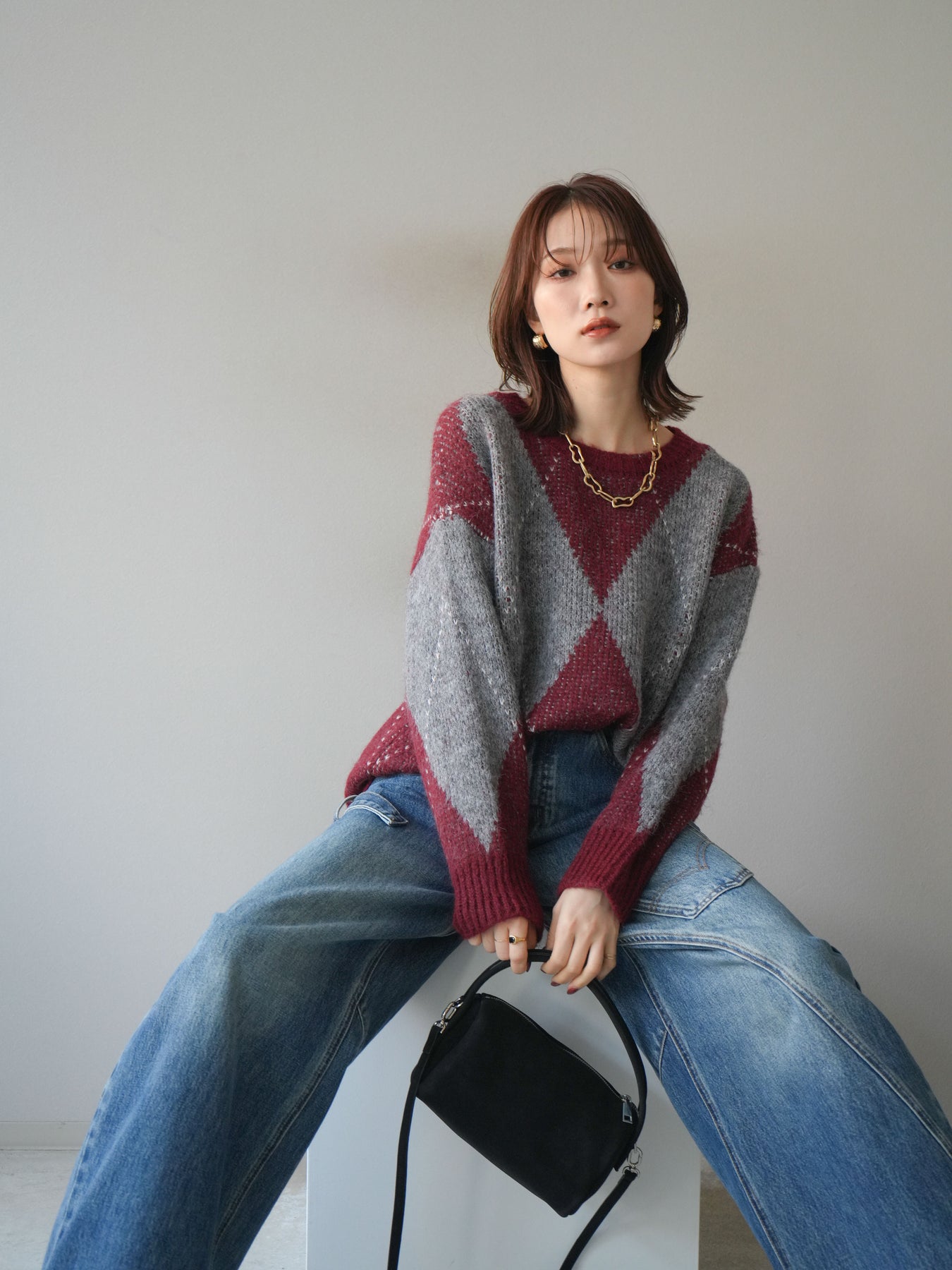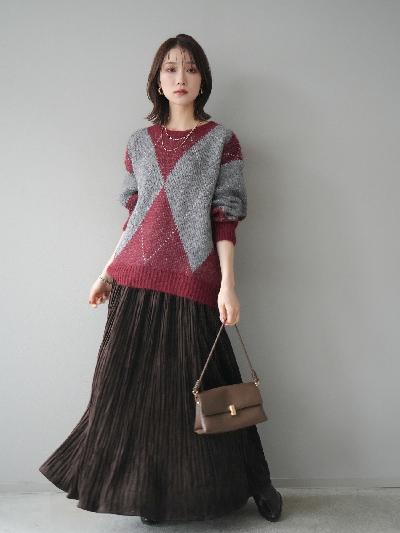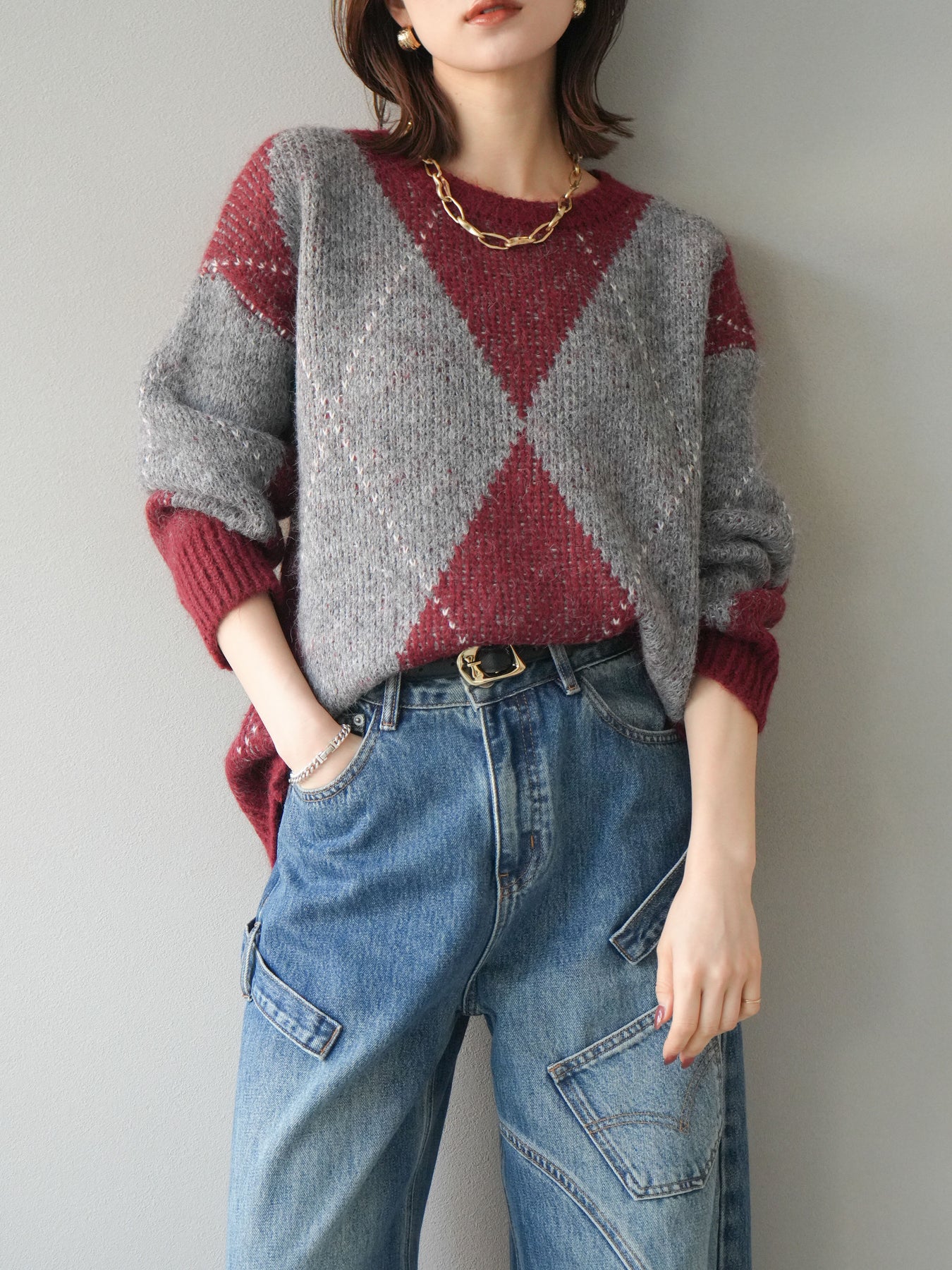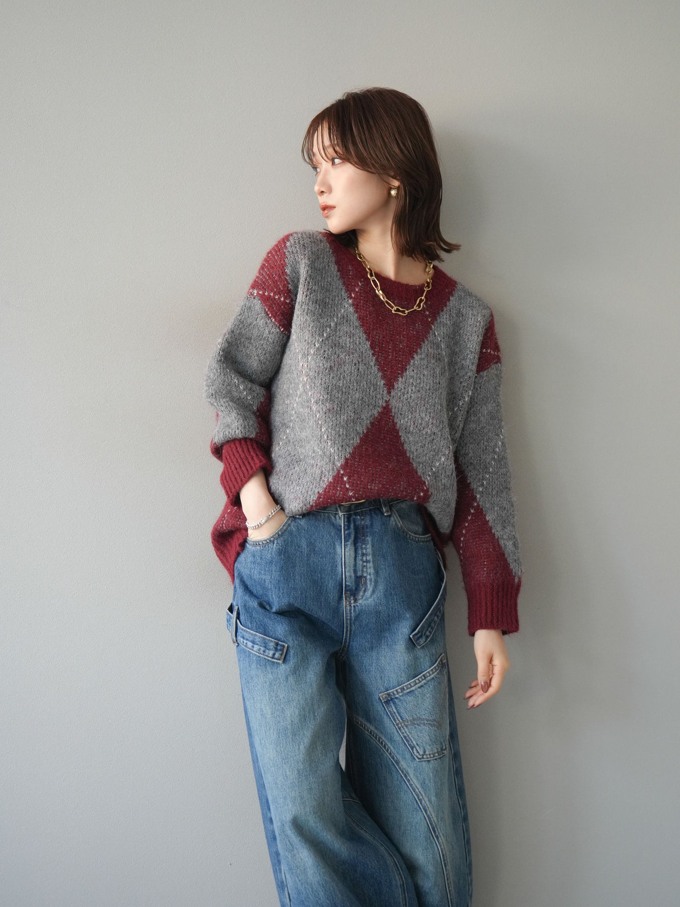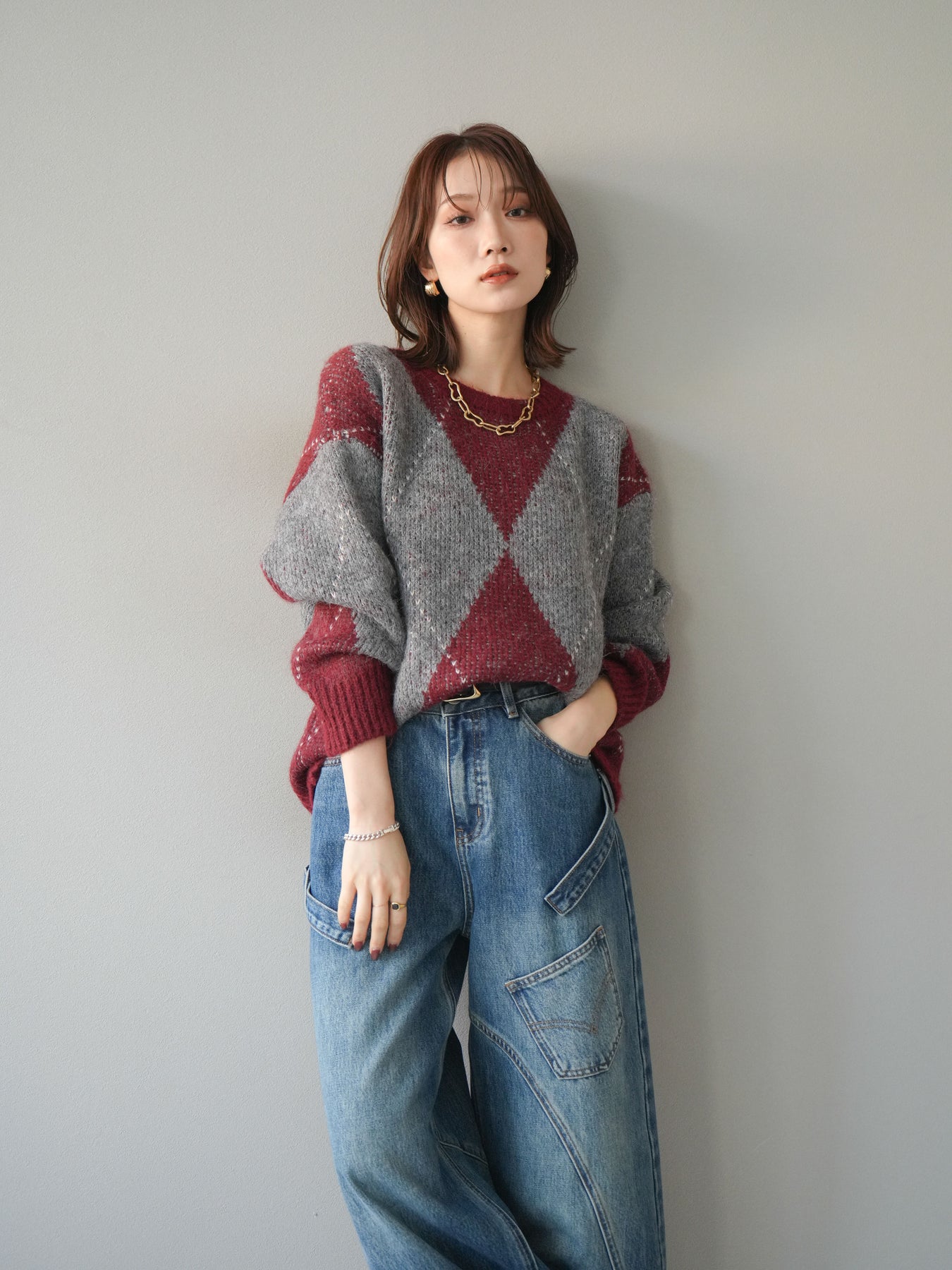 [予約]アーガイルオーバーニットプルオーバー/bordeaux