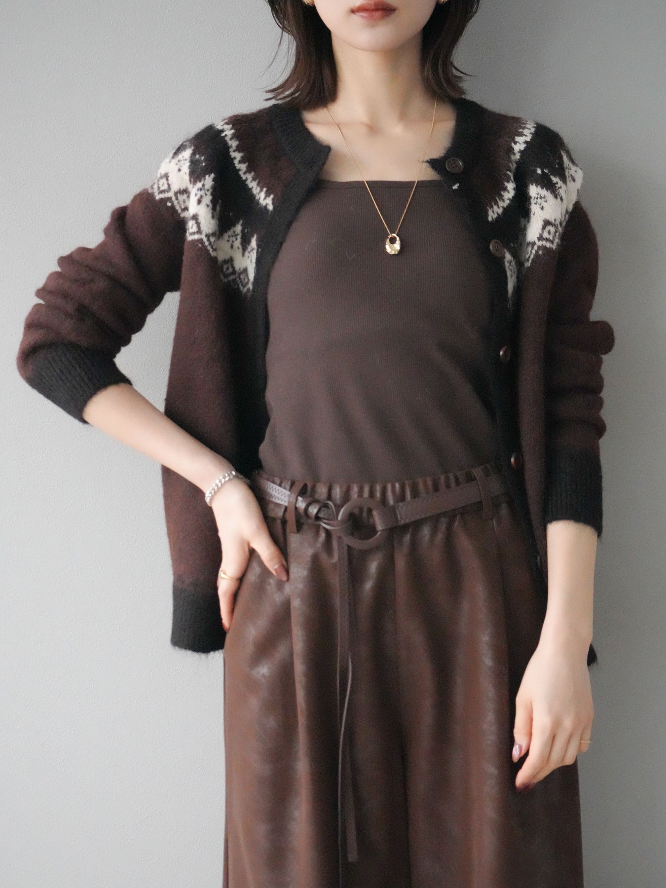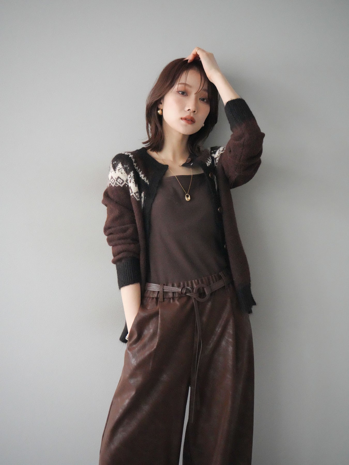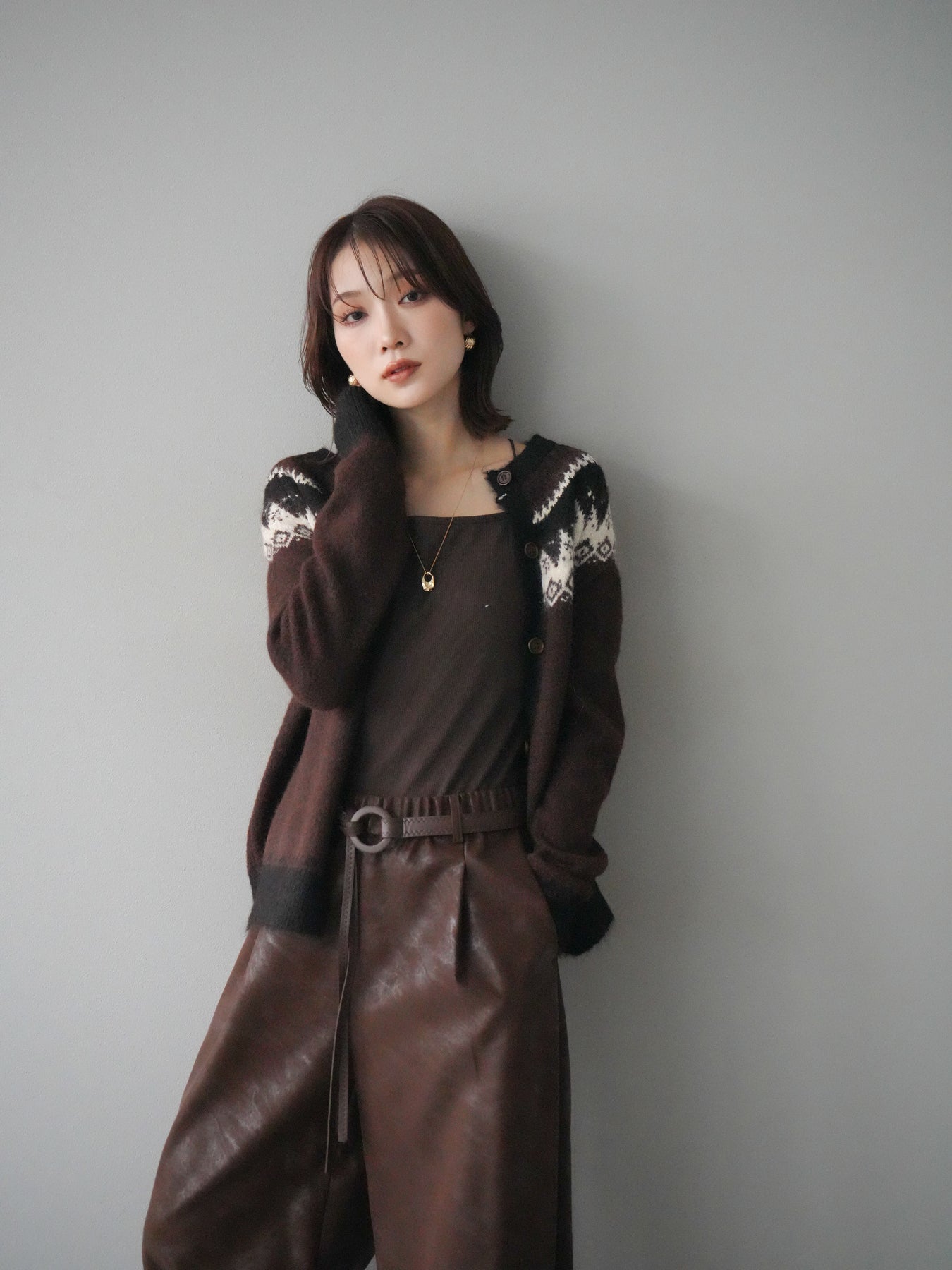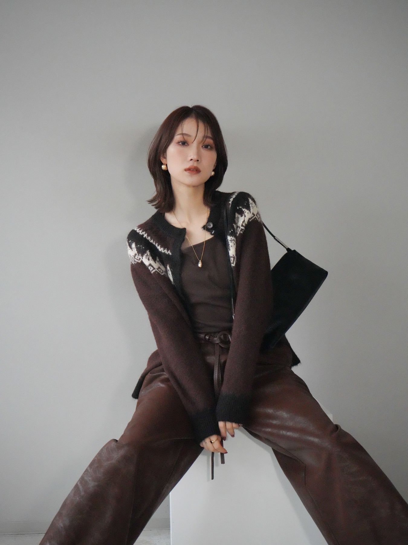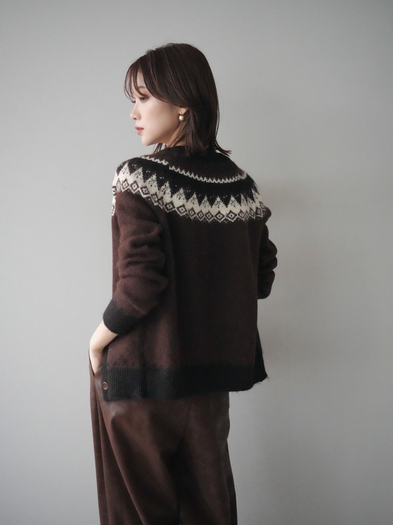 シーズンムードたっぷりのノルディック柄が目を惹くニットカーディガン。 ふんわりとした風合いのニット素材で、暖かみのある優しい着心地が魅力です。 クラシカルな柄デザインながらも、ゆったりとしたシルエットでこなれ感をプラス。 フロントのボタンを閉めてプルオーバー風にも、開けて羽織りとしても着こなせる万能アイテムです。 デニムやスカートなど、どんなボトムとも相性が良く、冬のデイリースタイルに活躍します。 ※ボトムス、キャミソール(インナー)以外の商品は一律でインナーは付属していません。