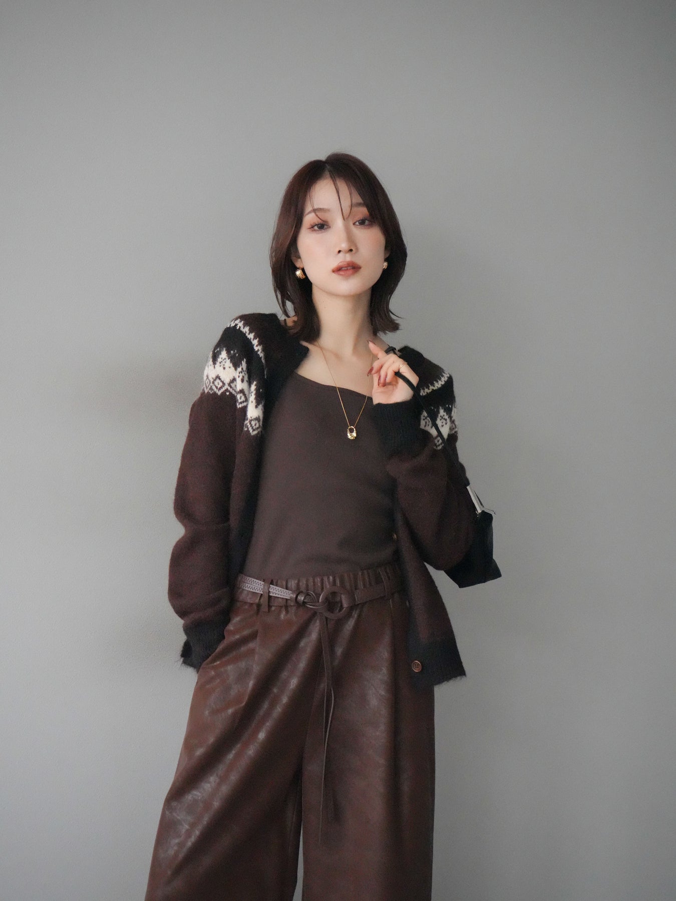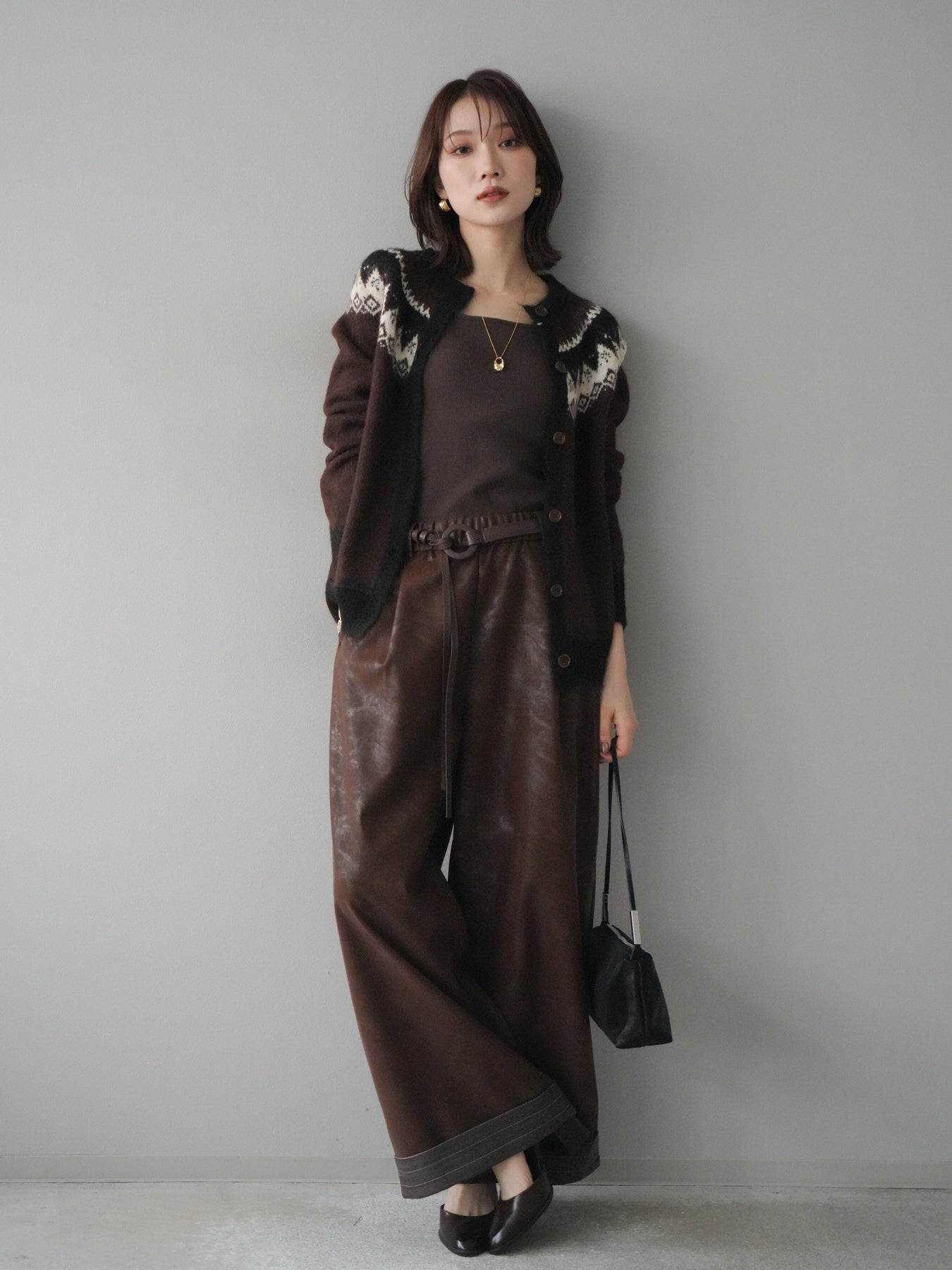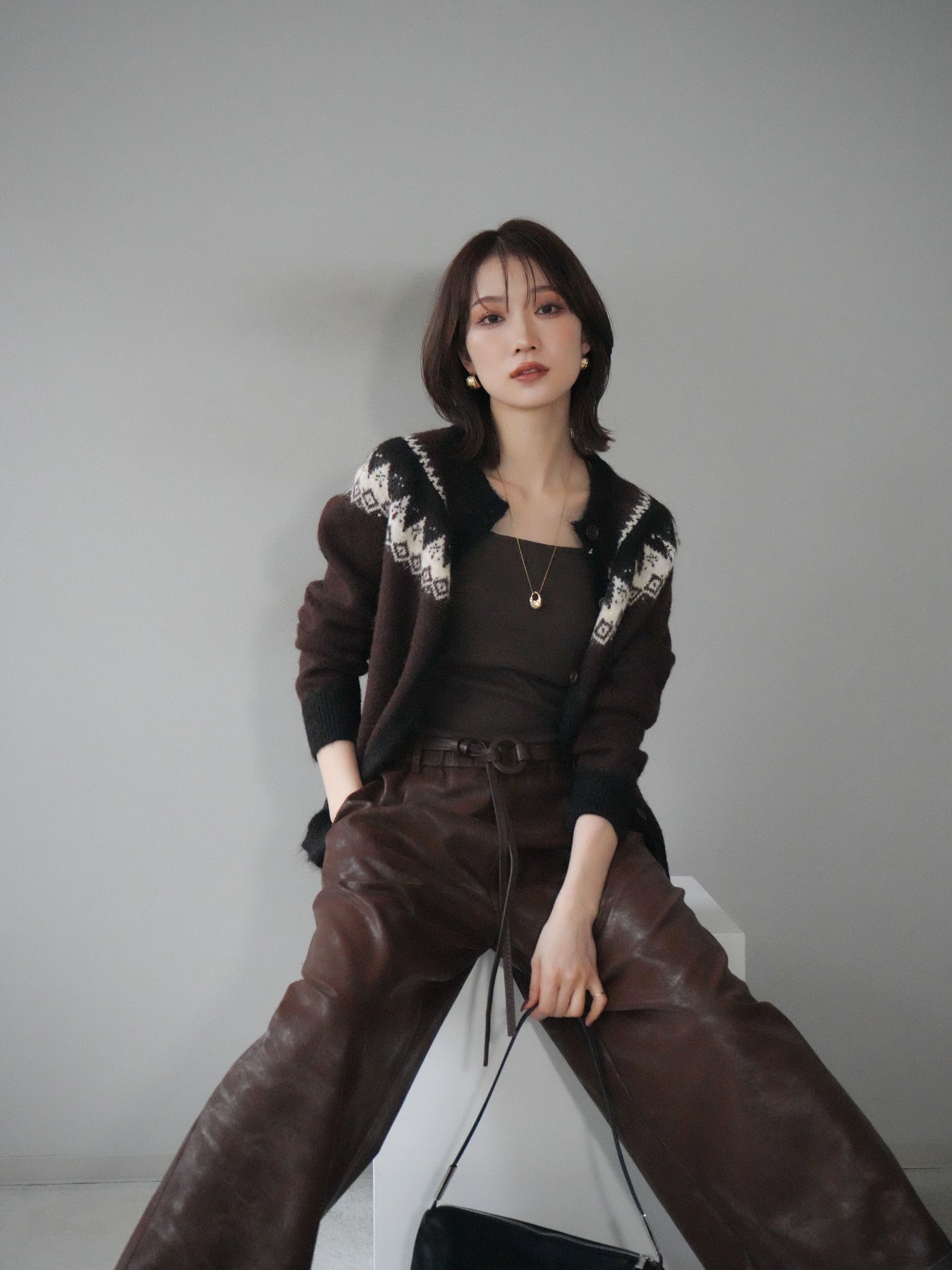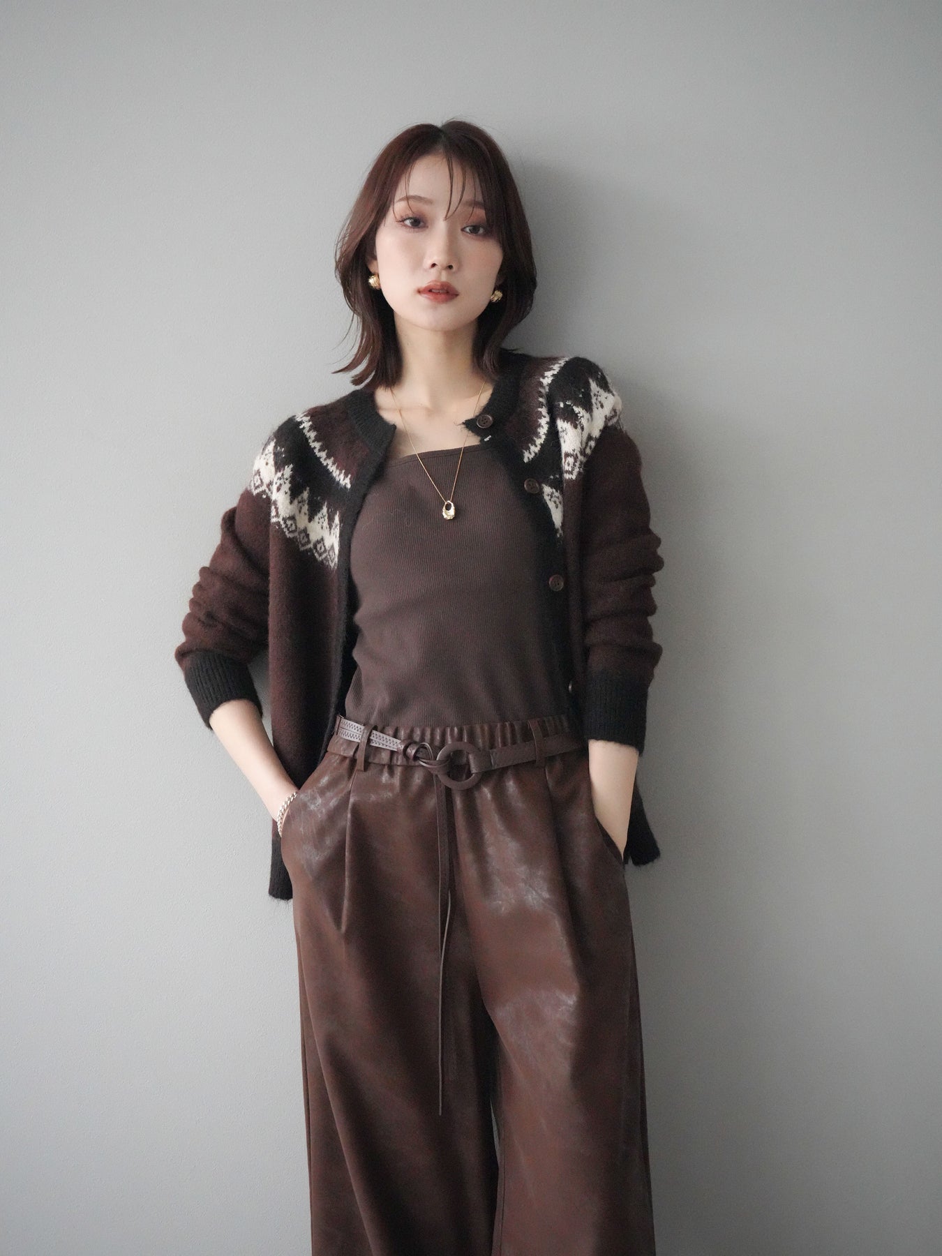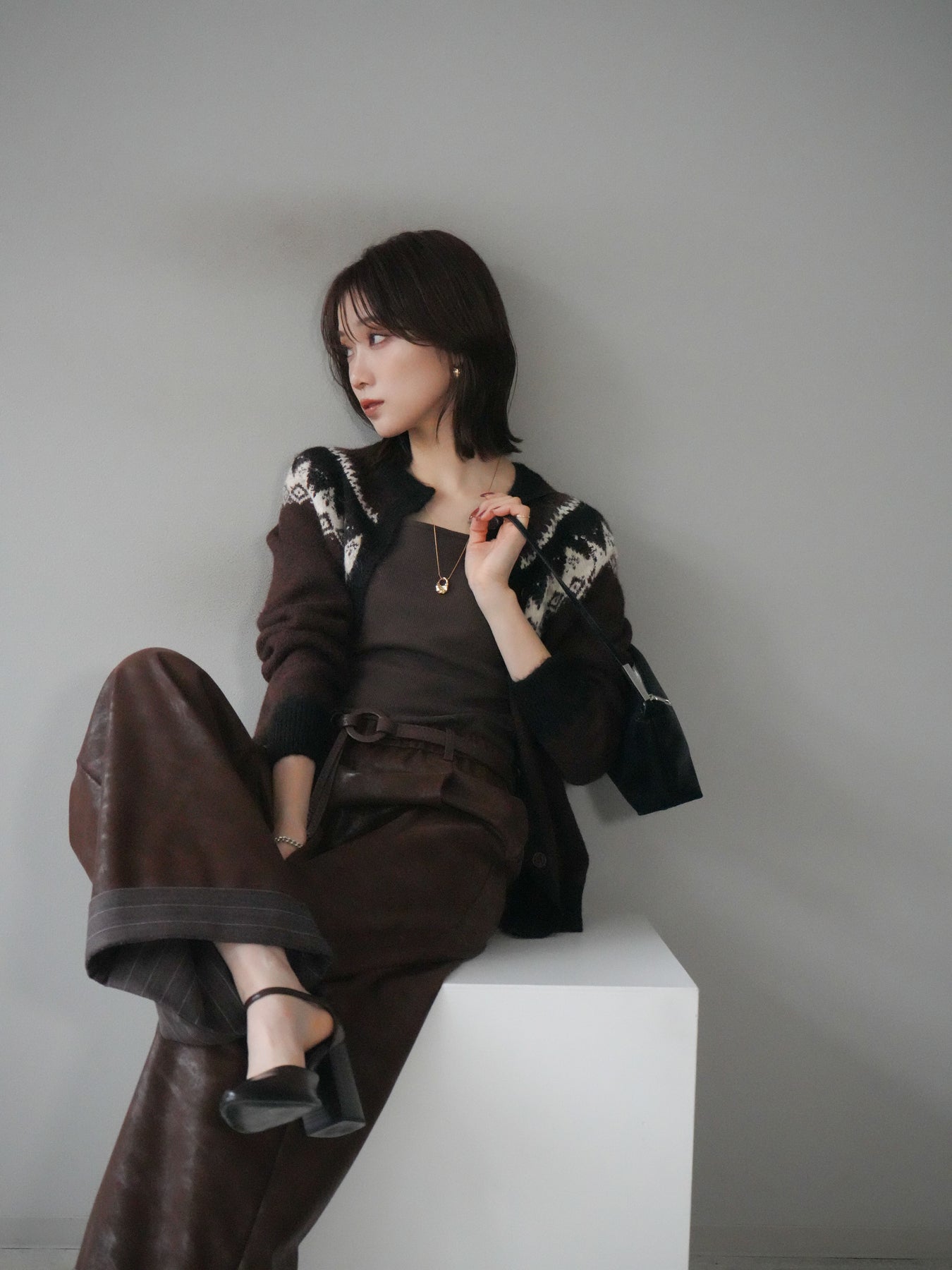 シーズンムードたっぷりのノルディック柄が目を惹くニットカーディガン。 ふんわりとした風合いのニット素材で、暖かみのある優しい着心地が魅力です。 クラシカルな柄デザインながらも、ゆったりとしたシルエットでこなれ感をプラス。 フロントのボタンを閉めてプルオーバー風にも、開けて羽織りとしても着こなせる万能アイテムです。 デニムやスカートなど、どんなボトムとも相性が良く、冬のデイリースタイルに活躍します。 ※ボトムス、キャミソール(インナー)以外の商品は一律でインナーは付属していません。