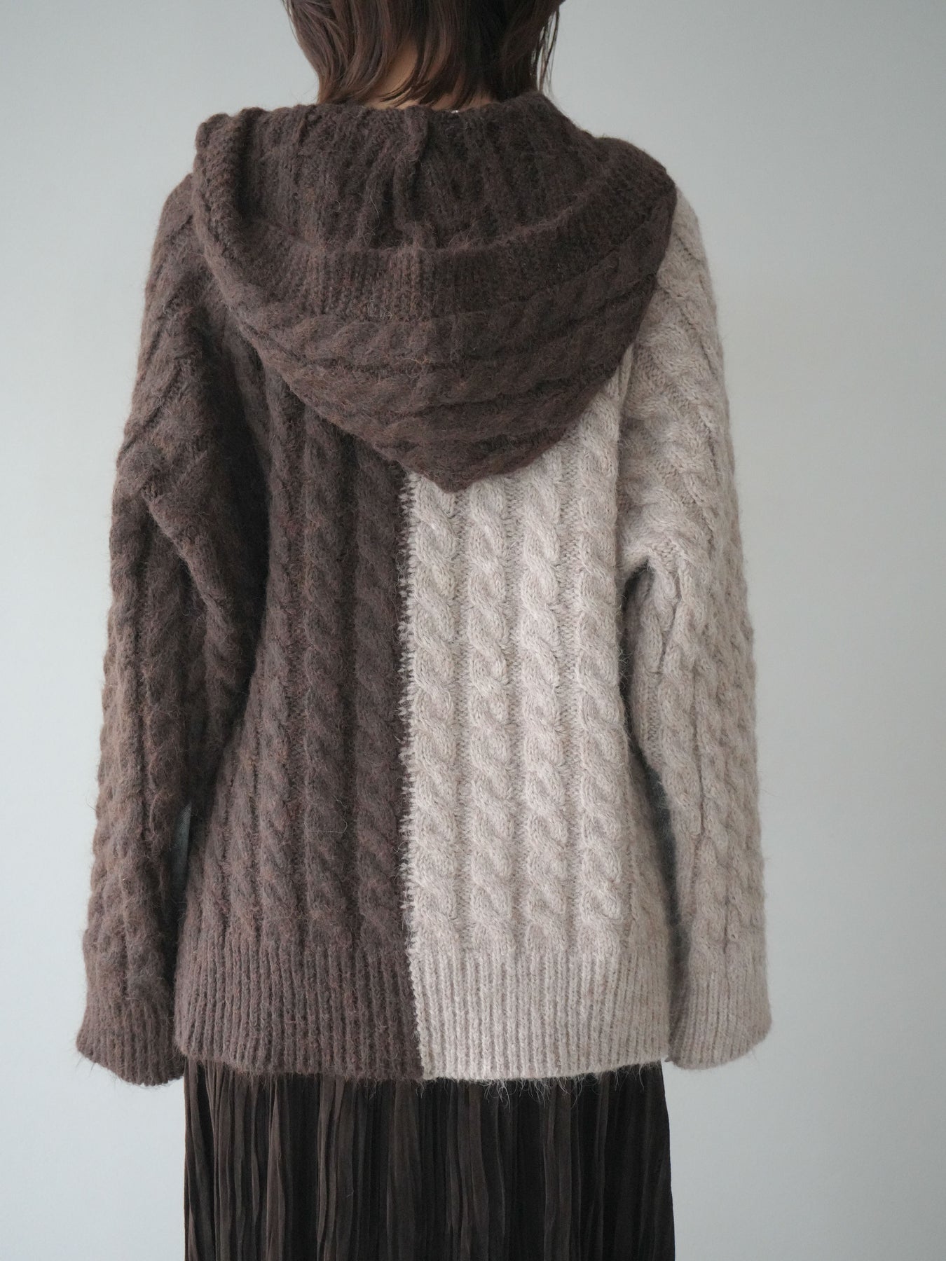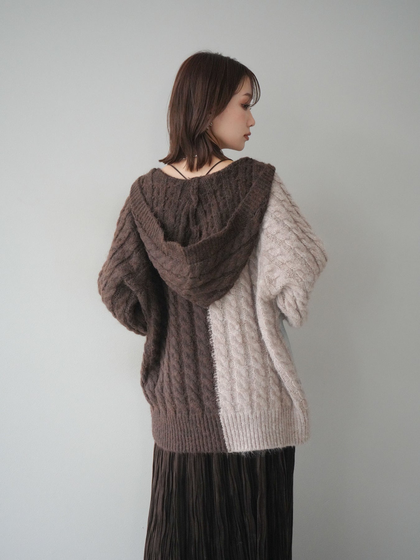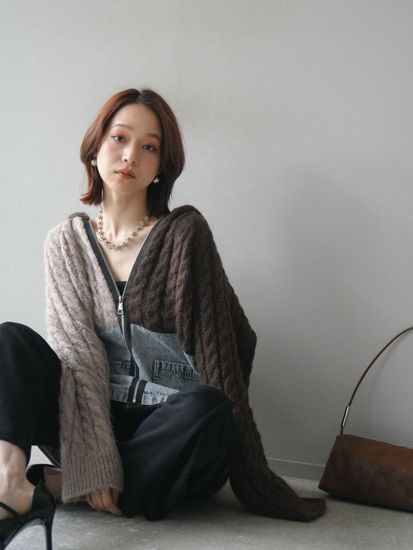 [予約]デニム×バイカラーニットZIPフーディ/brown