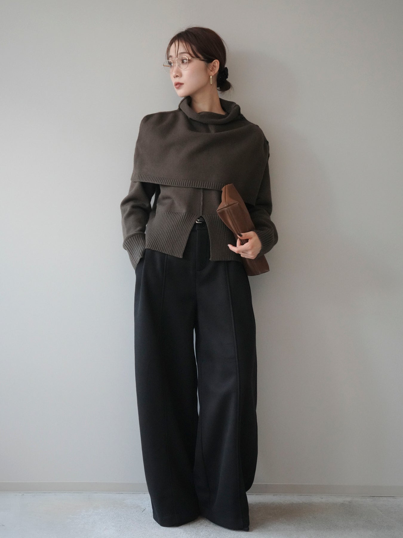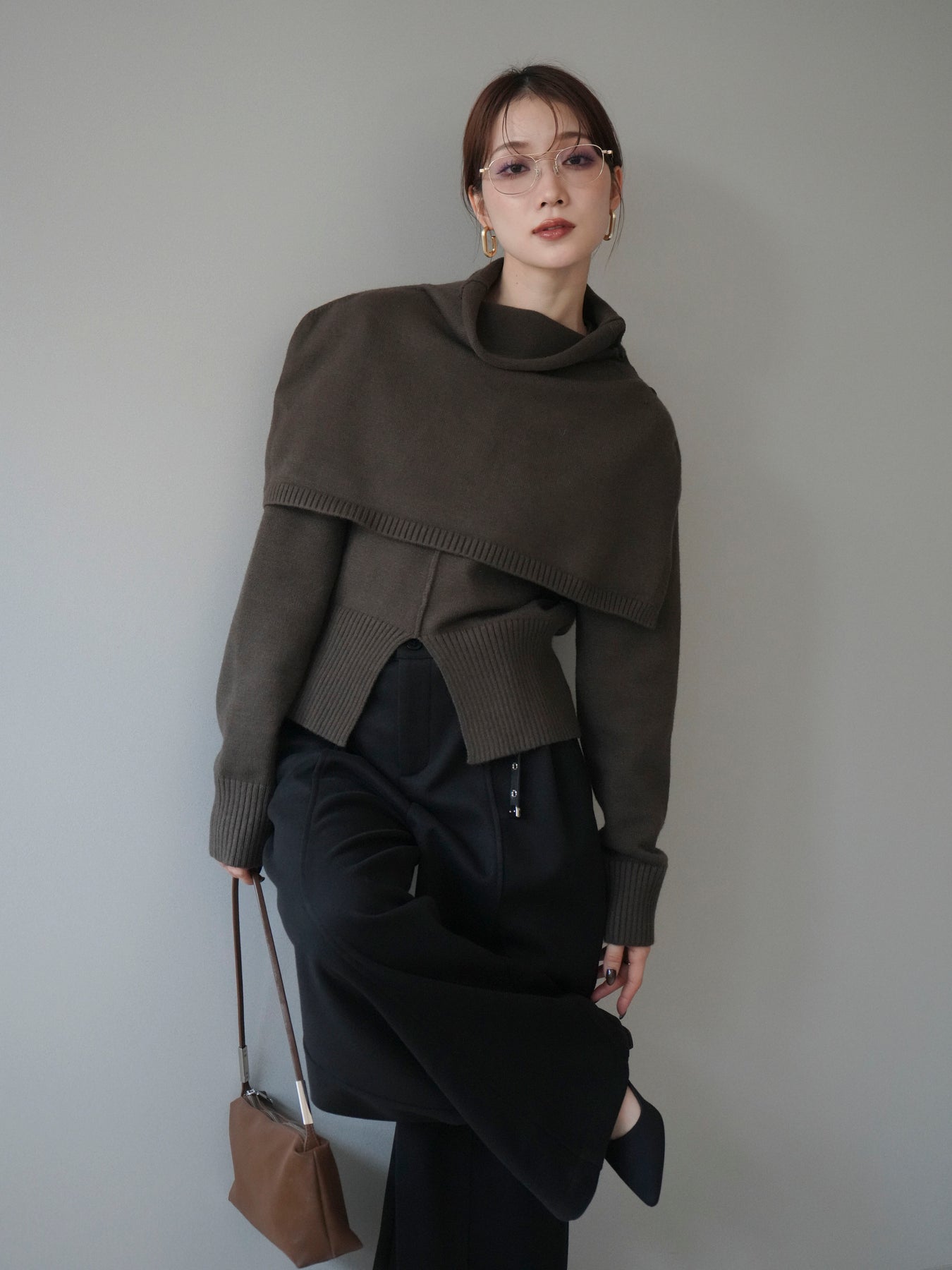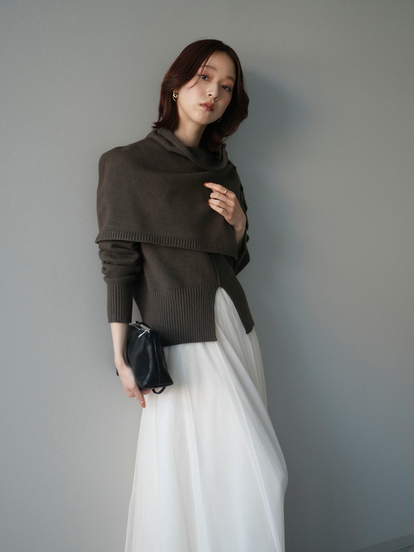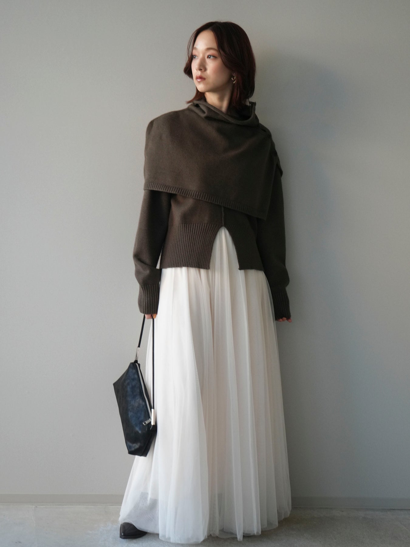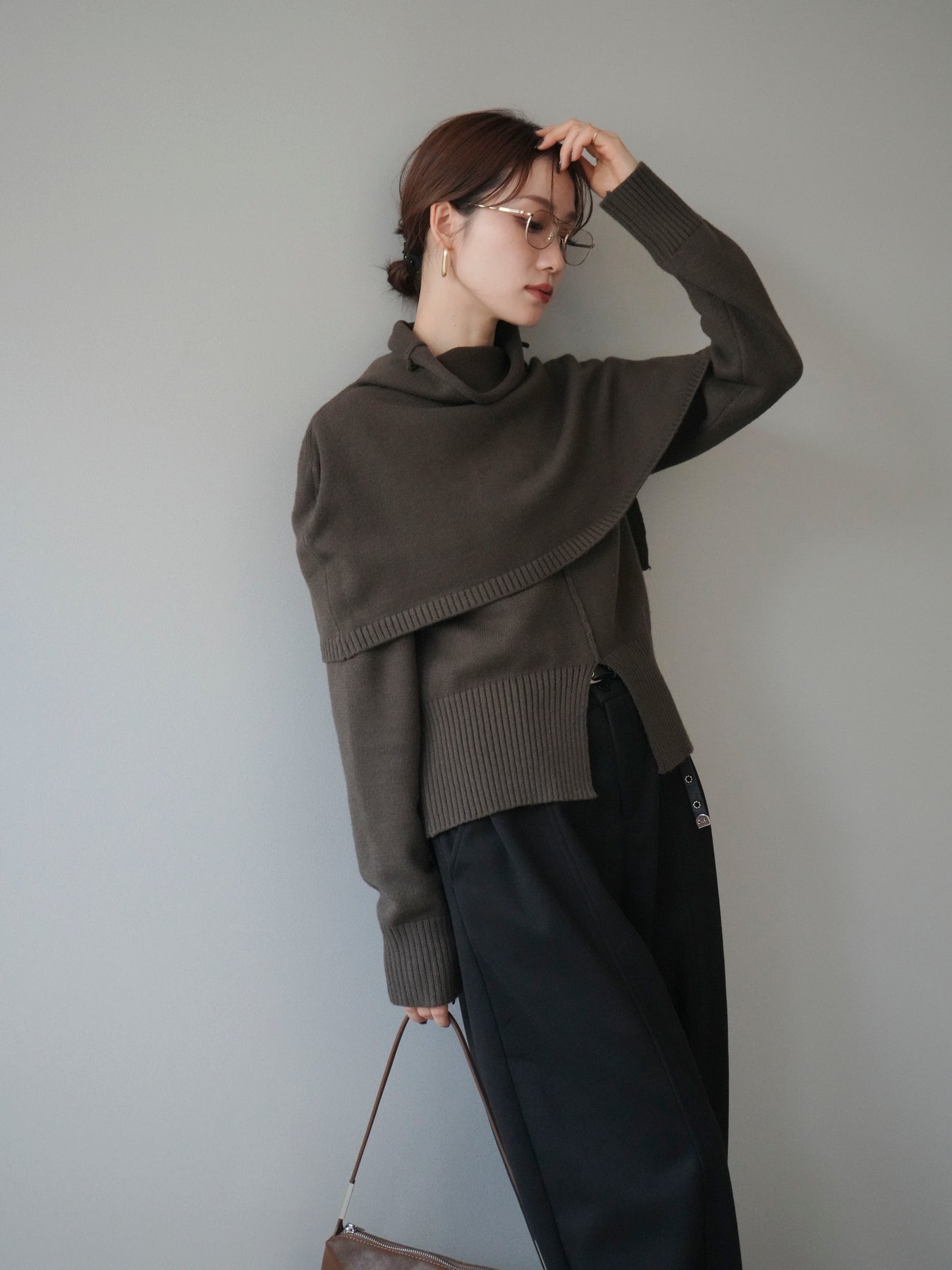 【ニット】肩幅51cm バスト96cm アームホール34cm 袖丈55cm 袖口20cm 着丈54cm 透け感なし 伸縮性あり 【スヌード】首元幅26cm 着丈42cm